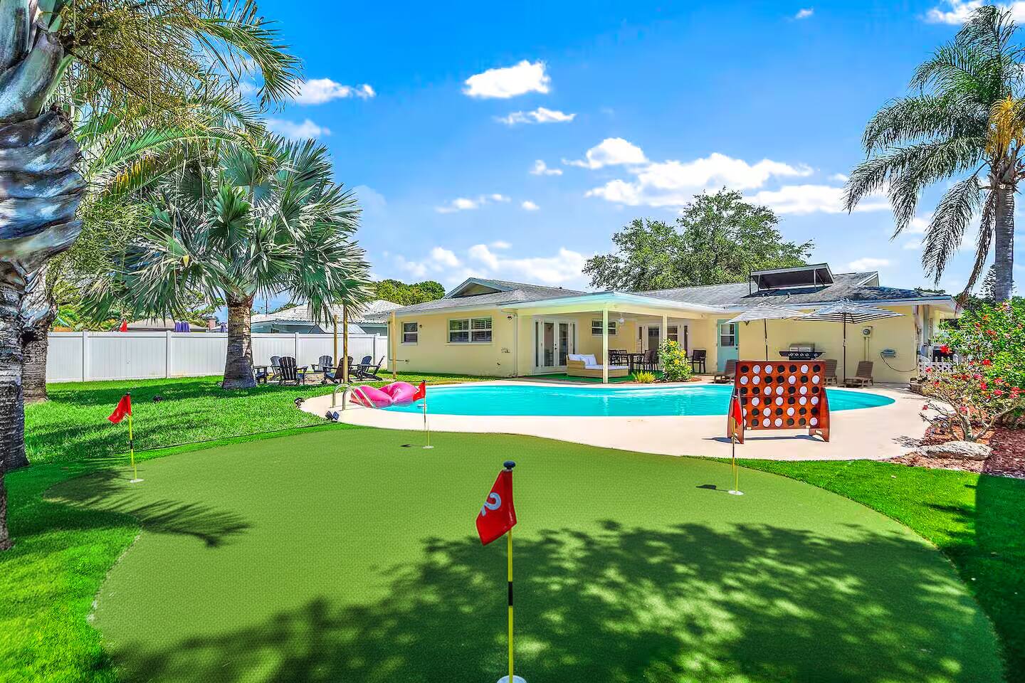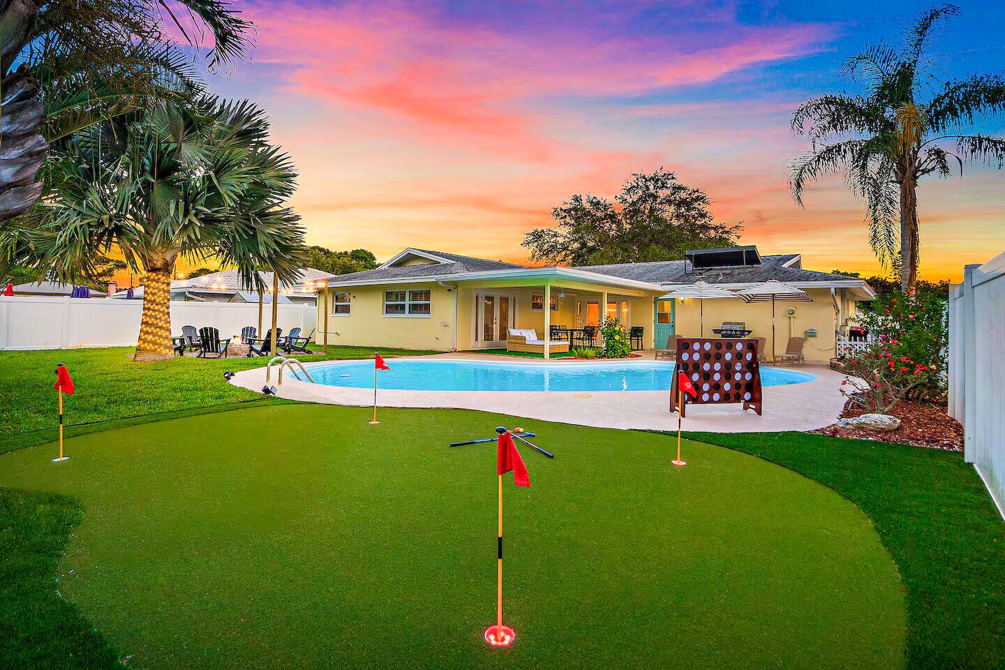 A luxury vacation unlike any other you can find! The quality of this home is unmatched; it feels like your own private oasis! Heated pool, mini golf, fire pit, and LOTS more entertainment! Whether you choose to visit the beautiful beaches just a few minutes away, or you decide to stay in and relax, this home is the perfect option! 5 min - Beautiful beach access 8 min - Seminole City Center 20 min - Clearwater 30 min - Tampa Experience Clearwater With Us & Learn More Below!