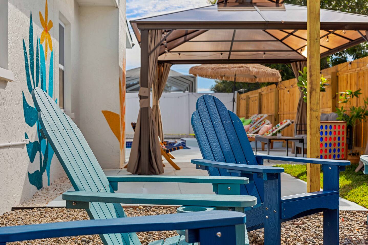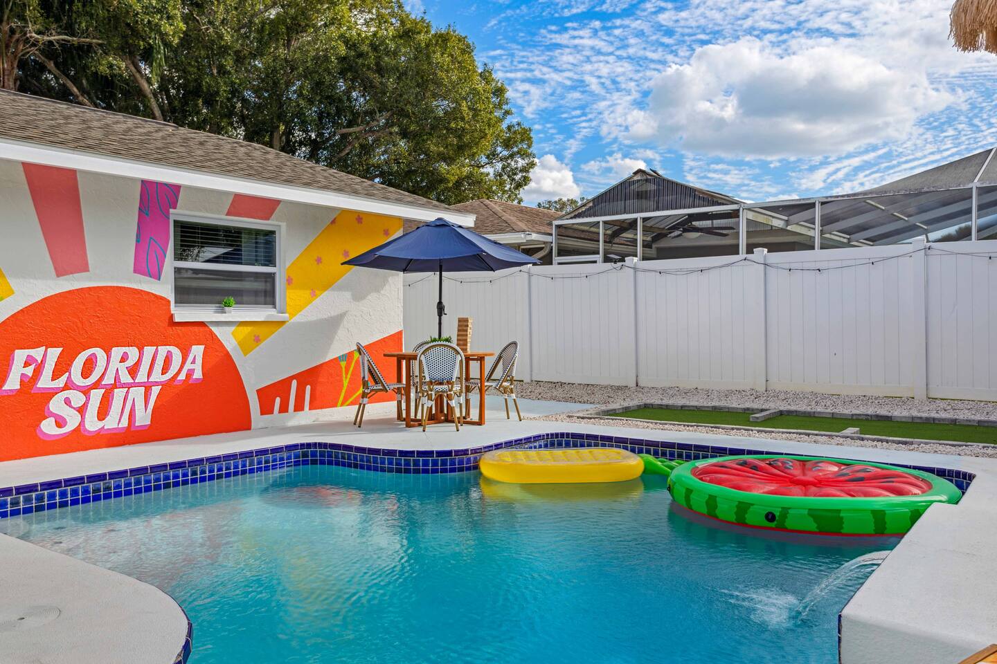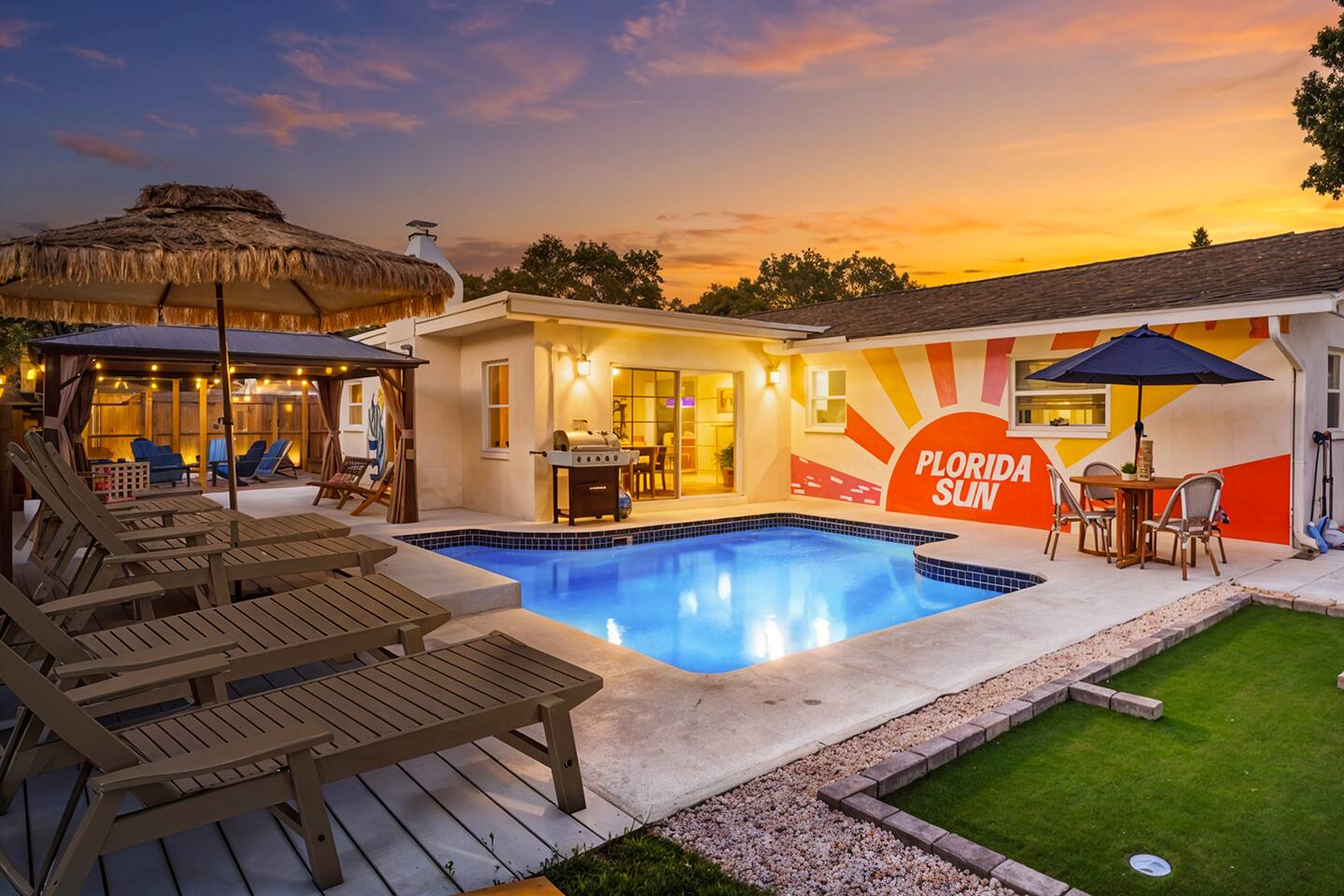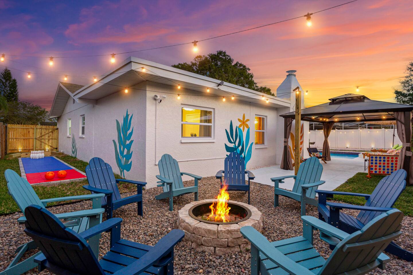 KEY FEATURES: ☀ 4 spacious bedrooms with fun, unique designs; 1 king, 1 queen, 4 fulls, & a sofa that converts into a full-size bed ☀ 2 full bathrooms ☀ Beautiful chef's kitchen with modern appliances & design ☀ Living room with of comfy seating and large smart TV ☀ Game room with pool table & smart TV ☀ Bright dining room that opens up to the main living area; great for entertaining! ☀ Amazing backyard with heated pool, mini golf, bowling, fire pit, and more ☀ Quiet, private neighborhood just minutes away from beautiful beaches Here Are A Few Kind Words From Our Past Guests: “This was a great place to stay! The morning light through the windows was so beautiful. Overall, just a relaxing experience. The hosts were super responsive whenever I had a question. I would stay again!” - Emily “Sabrina was very accommodating and communicative. the house is beautiful and very comfortable, close to nature hikes.” - Jennifer “This place was lovely! Exactly as pictured! Very clean and excellent host experience!!! I plan to come back again!” - Regina ☆☆ BEDROOMS ☆☆ There are four bedrooms in this home. The primary bedroom has a king bed & attached ensuite bathroom. The next bedroom has one queen bed. The third bedroom has two full beds, while the fourth bedroom has a full-over-full bunk bed. ☆☆ BATHROOMS ☆☆ All the bathrooms in this home are freshly renovated and beautifully modern! The primary bedroom's ensuite bathroom has a sink, toilet, & shower, while the hallway bathroom has a sink, toilet, & shower/tub combo. ☆☆ KITCHEN & DINING ☆☆ The kitchen is bright & open, with brand new stainless steel appliances. With lots of counter space and bar top seating, it's a great kitchen for entertaining! Just one room over is the dining room, which is bright and welcoming. The formal dining room seats 10 (plus additional seating in the game room), and there is also an additional dining table in the backyard. ☆☆ LIVING ROOM ☆☆ As you walk into the home, you're greeted with the big, open living room, which has comfy seating and fun, tropical design! It's a great place for your movie or game nights, where the whole family can sit together in this cozy space! ☆☆ GAME ROOM ☆☆ The game room in this home is bright and beautiful! Filled with a pool table, smart TV, & some additional seating, this is the perfect spot to unwind after exploring the nearby gorgeous beaches! ☆☆ OUTDOOR SPACE ☆☆ This backyard is everything you could ask for, and more! ☀ Heated pool ☀ Fire pit ☀ Mini golf ☀ Bowling ☀ Corn hole ☀ Giant Connect 4 ☀ Giant Jenga ☀ BBQ grill ☀ Covered lounge seating ☀ Outdoor dining ☀ Sun loungers There is so much to do here, that all of your friends & family will be thoroughly entertained throughout your entire stay. No matter the season, this backyard has it all. Book your stay with us today and you will NOT be disappointed. Get ready for a vacation you will never forget! ★☆ Book Now & Let Us Take Care Of You In Largo! ☆★