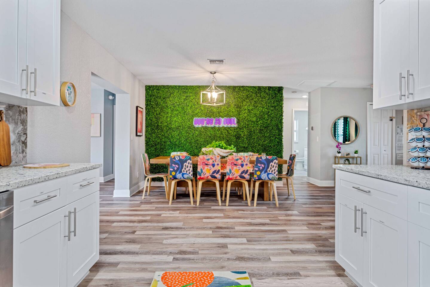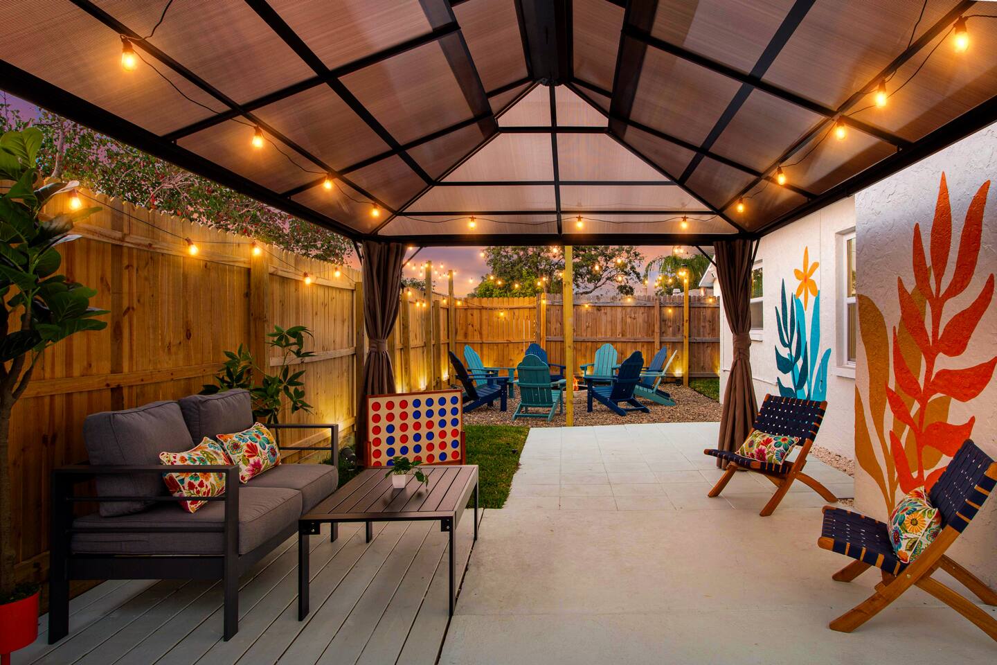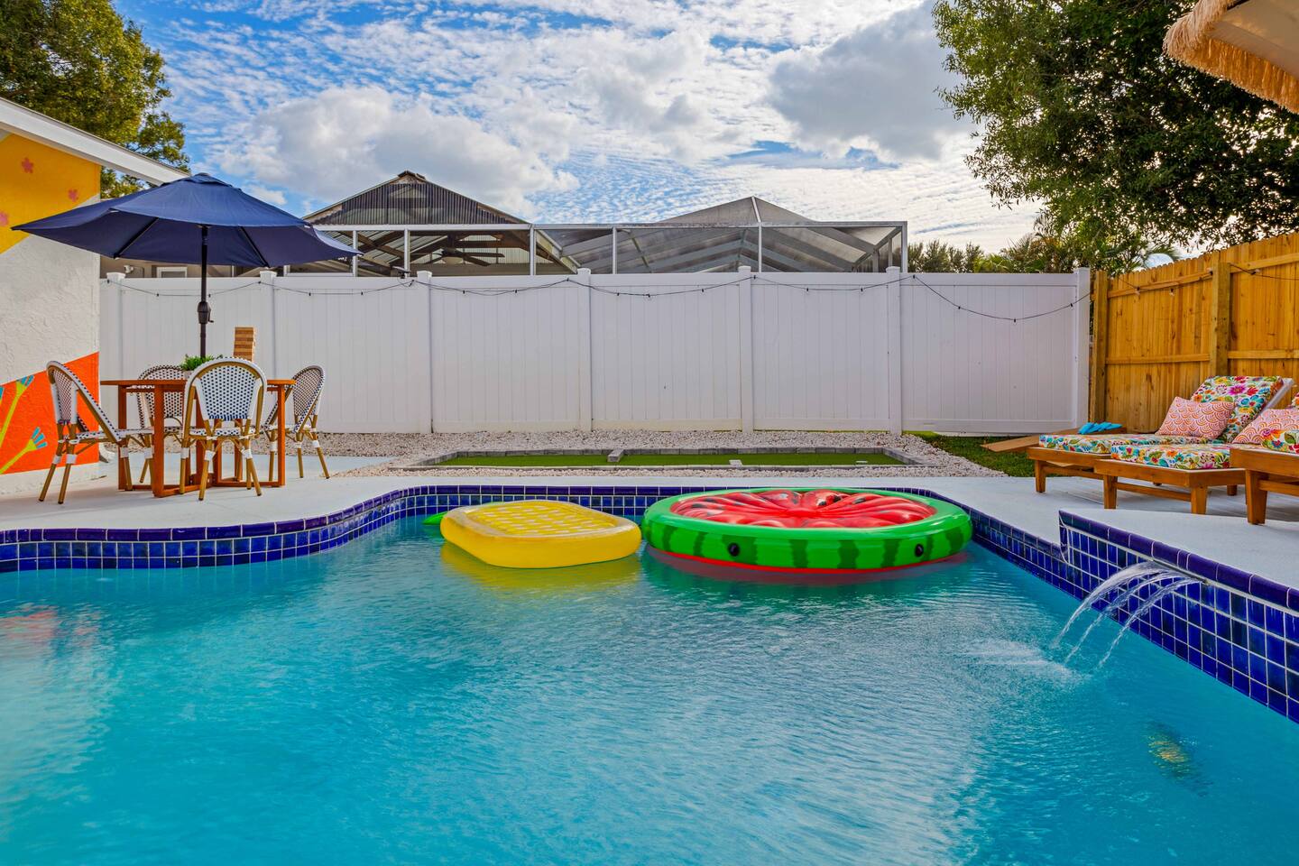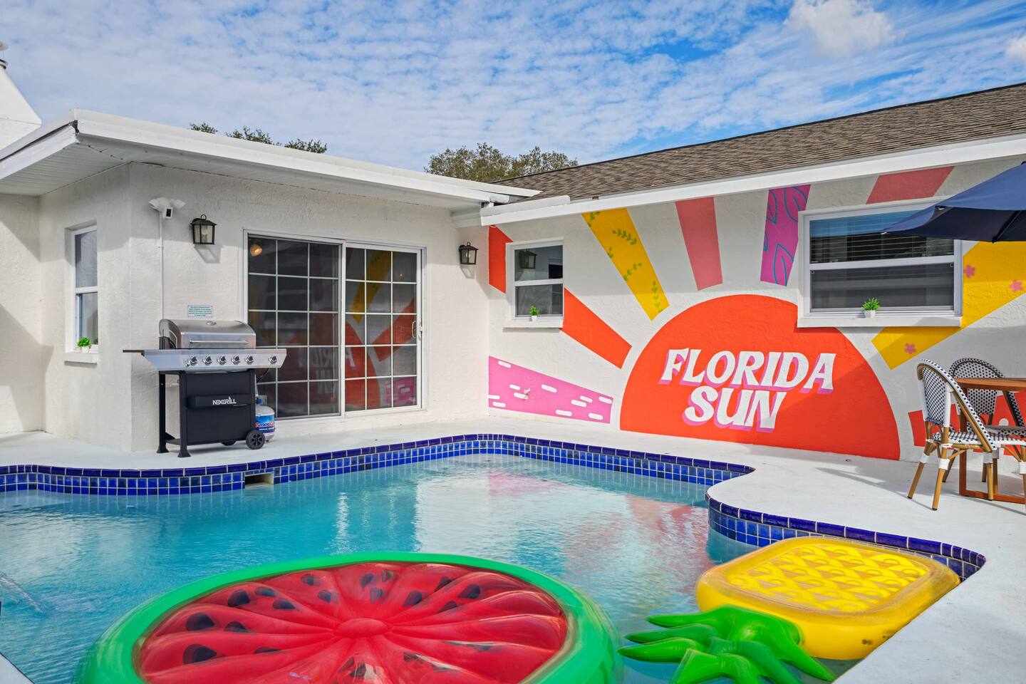 KEY FEATURES: ☀ 4 spacious bedrooms with fun, unique designs; 1 king, 1 queen, 4 fulls, & a sofa that converts into a full-size bed ☀ 2 full bathrooms ☀ Beautiful chef's kitchen with modern appliances & design ☀ Living room with of comfy seating and large smart TV ☀ Game room with pool table & smart TV ☀ Bright dining room that opens up to the main living area; great for entertaining! ☀ Amazing backyard with heated pool, mini golf, bowling, fire pit, and more ☀ Quiet, private neighborhood just minutes away from beautiful beaches Here Are A Few Kind Words From Our Past Guests: “This was a great place to stay! The morning light through the windows was so beautiful. Overall, just a relaxing experience. The hosts were super responsive whenever I had a question. I would stay again!” - Emily “Sabrina was very accommodating and communicative. the house is beautiful and very comfortable, close to nature hikes.” - Jennifer “This place was lovely! Exactly as pictured! Very clean and excellent host experience!!! I plan to come back again!” - Regina ☆☆ BEDROOMS ☆☆ There are four bedrooms in this home. The primary bedroom has a king bed & attached ensuite bathroom. The next bedroom has one queen bed. The third bedroom has two full beds, while the fourth bedroom has a full-over-full bunk bed. ☆☆ BATHROOMS ☆☆ All the bathrooms in this home are freshly renovated and beautifully modern! The primary bedroom's ensuite bathroom has a sink, toilet, & shower, while the hallway bathroom has a sink, toilet, & shower/tub combo. ☆☆ KITCHEN & DINING ☆☆ The kitchen is bright & open, with brand new stainless steel appliances. With lots of counter space and bar top seating, it's a great kitchen for entertaining! Just one room over is the dining room, which is bright and welcoming. The formal dining room seats 10 (plus additional seating in the game room), and there is also an additional dining table in the backyard. ☆☆ LIVING ROOM ☆☆ As you walk into the home, you're greeted with the big, open living room, which has comfy seating and fun, tropical design! It's a great place for your movie or game nights, where the whole family can sit together in this cozy space! ☆☆ GAME ROOM ☆☆ The game room in this home is bright and beautiful! Filled with a pool table, smart TV, & some additional seating, this is the perfect spot to unwind after exploring the nearby gorgeous beaches! ☆☆ OUTDOOR SPACE ☆☆ This backyard is everything you could ask for, and more! ☀ Heated pool ☀ Fire pit ☀ Mini golf ☀ Bowling ☀ Corn hole ☀ Giant Connect 4 ☀ Giant Jenga ☀ BBQ grill ☀ Covered lounge seating ☀ Outdoor dining ☀ Sun loungers There is so much to do here, that all of your friends & family will be thoroughly entertained throughout your entire stay. No matter the season, this backyard has it all. Book your stay with us today and you will NOT be disappointed. Get ready for a vacation you will never forget! ★☆ Book Now & Let Us Take Care Of You In Largo! ☆★
