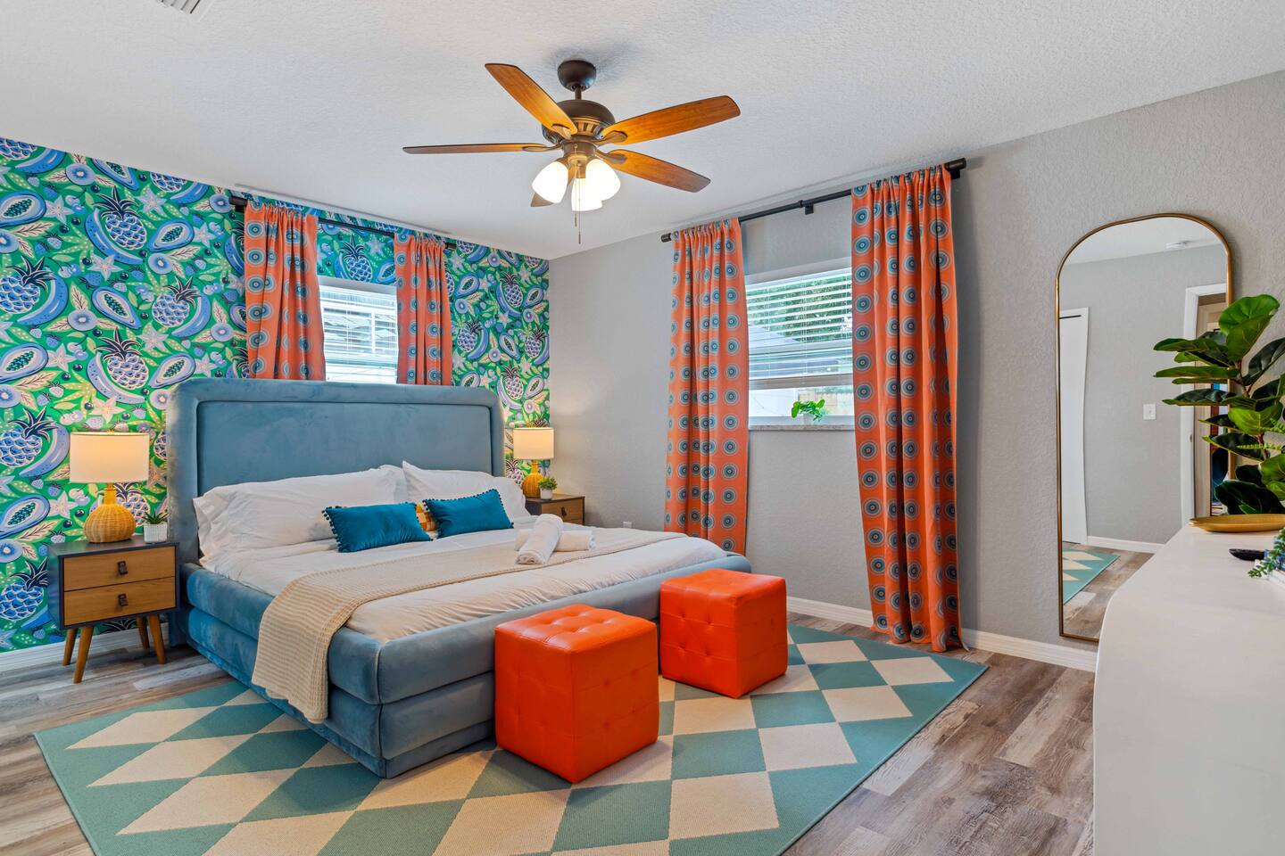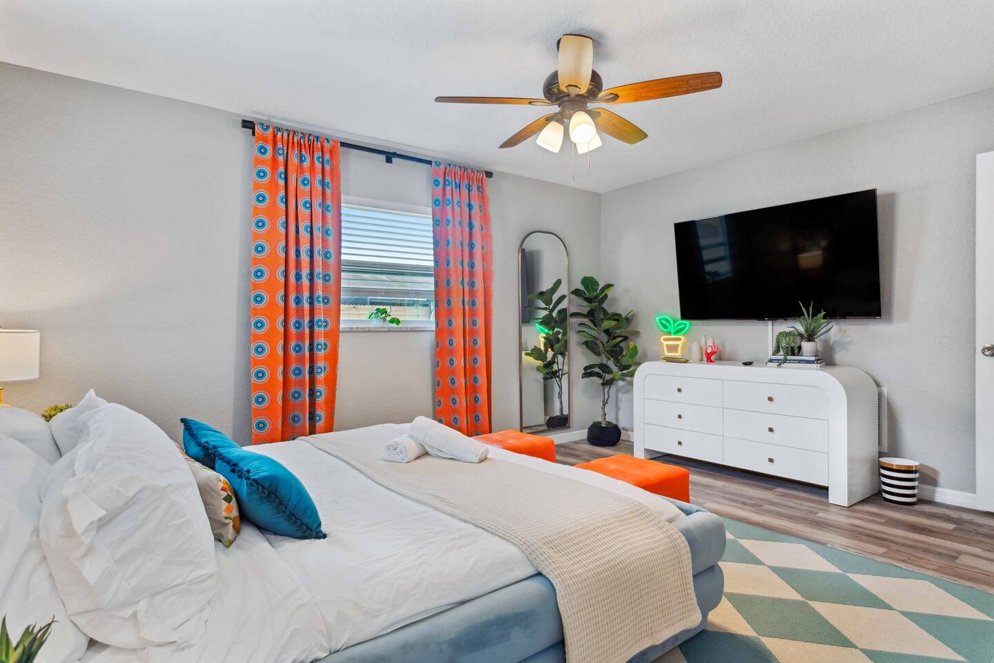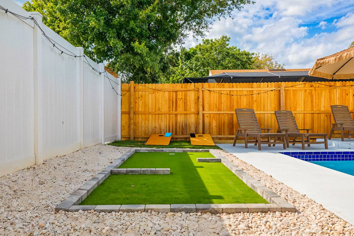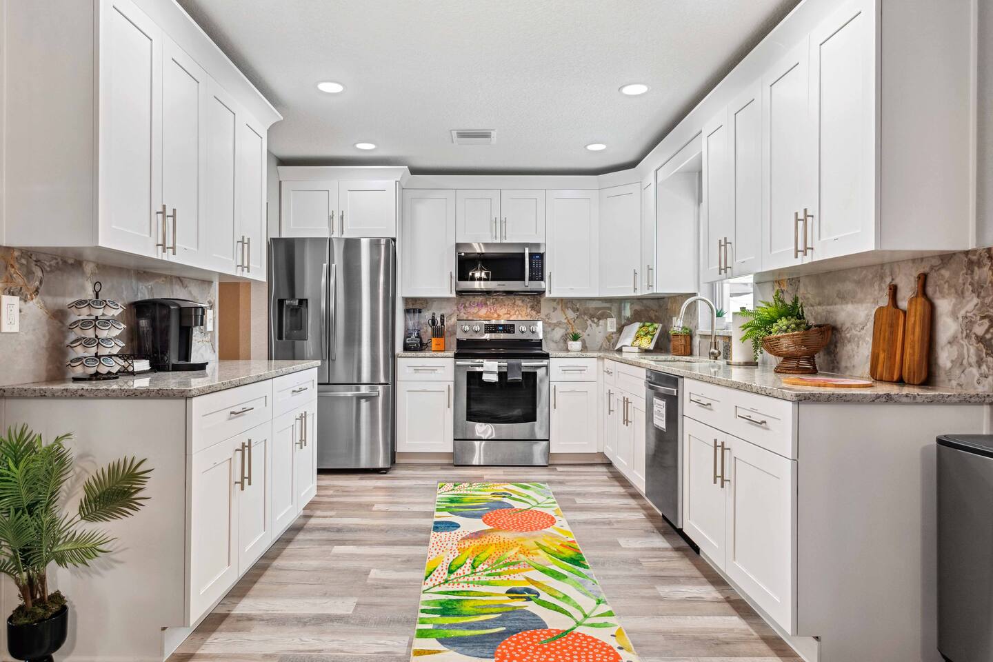 KEY FEATURES: ☀ 4 spacious bedrooms with fun, unique designs; 1 king, 1 queen, 4 fulls, & a sofa that converts into a full-size bed ☀ 2 full bathrooms ☀ Beautiful chef's kitchen with modern appliances & design ☀ Living room with of comfy seating and large smart TV ☀ Game room with pool table & smart TV ☀ Bright dining room that opens up to the main living area; great for entertaining! ☀ Amazing backyard with heated pool, mini golf, bowling, fire pit, and more ☀ Quiet, private neighborhood just minutes away from beautiful beaches Here Are A Few Kind Words From Our Past Guests: “This was a great place to stay! The morning light through the windows was so beautiful. Overall, just a relaxing experience. The hosts were super responsive whenever I had a question. I would stay again!” - Emily “Sabrina was very accommodating and communicative. the house is beautiful and very comfortable, close to nature hikes.” - Jennifer “This place was lovely! Exactly as pictured! Very clean and excellent host experience!!! I plan to come back again!” - Regina ☆☆ BEDROOMS ☆☆ There are four bedrooms in this home. The primary bedroom has a king bed & attached ensuite bathroom. The next bedroom has one queen bed. The third bedroom has two full beds, while the fourth bedroom has a full-over-full bunk bed. ☆☆ BATHROOMS ☆☆ All the bathrooms in this home are freshly renovated and beautifully modern! The primary bedroom's ensuite bathroom has a sink, toilet, & shower, while the hallway bathroom has a sink, toilet, & shower/tub combo. ☆☆ KITCHEN & DINING ☆☆ The kitchen is bright & open, with brand new stainless steel appliances. With lots of counter space and bar top seating, it's a great kitchen for entertaining! Just one room over is the dining room, which is bright and welcoming. The formal dining room seats 10 (plus additional seating in the game room), and there is also an additional dining table in the backyard. ☆☆ LIVING ROOM ☆☆ As you walk into the home, you're greeted with the big, open living room, which has comfy seating and fun, tropical design! It's a great place for your movie or game nights, where the whole family can sit together in this cozy space! ☆☆ GAME ROOM ☆☆ The game room in this home is bright and beautiful! Filled with a pool table, smart TV, & some additional seating, this is the perfect spot to unwind after exploring the nearby gorgeous beaches! ☆☆ OUTDOOR SPACE ☆☆ This backyard is everything you could ask for, and more! ☀ Heated pool ☀ Fire pit ☀ Mini golf ☀ Bowling ☀ Corn hole ☀ Giant Connect 4 ☀ Giant Jenga ☀ BBQ grill ☀ Covered lounge seating ☀ Outdoor dining ☀ Sun loungers There is so much to do here, that all of your friends & family will be thoroughly entertained throughout your entire stay. No matter the season, this backyard has it all. Book your stay with us today and you will NOT be disappointed. Get ready for a vacation you will never forget! ★☆ Book Now & Let Us Take Care Of You In Largo! ☆★