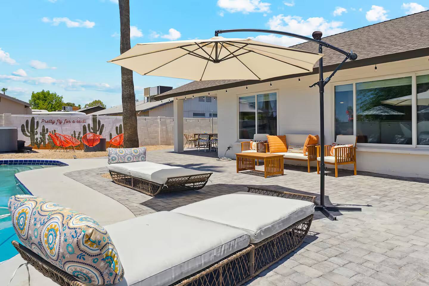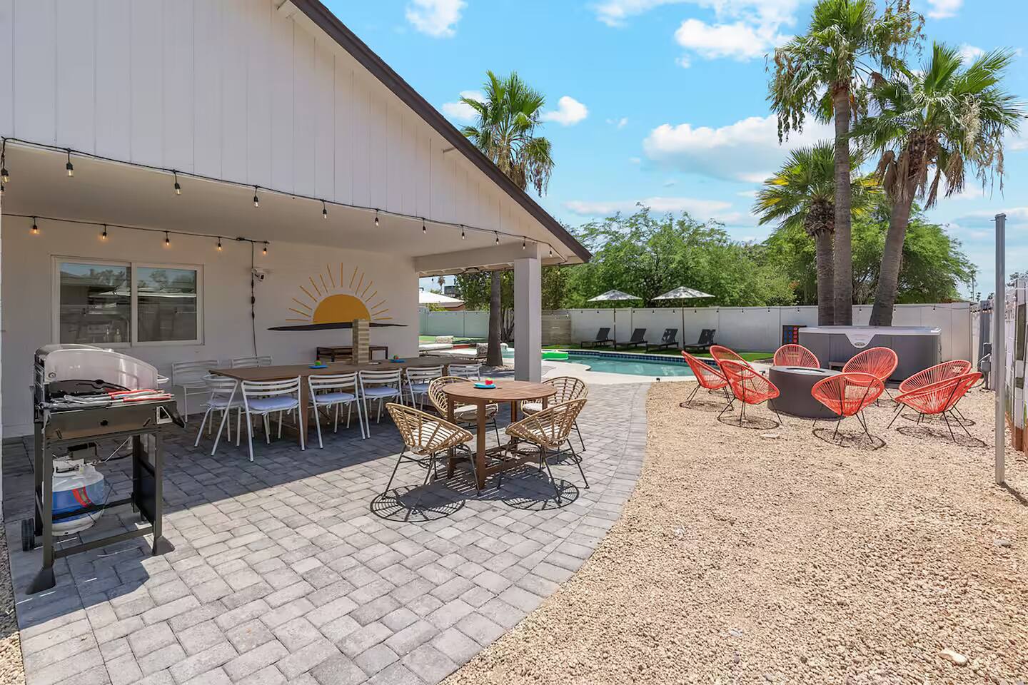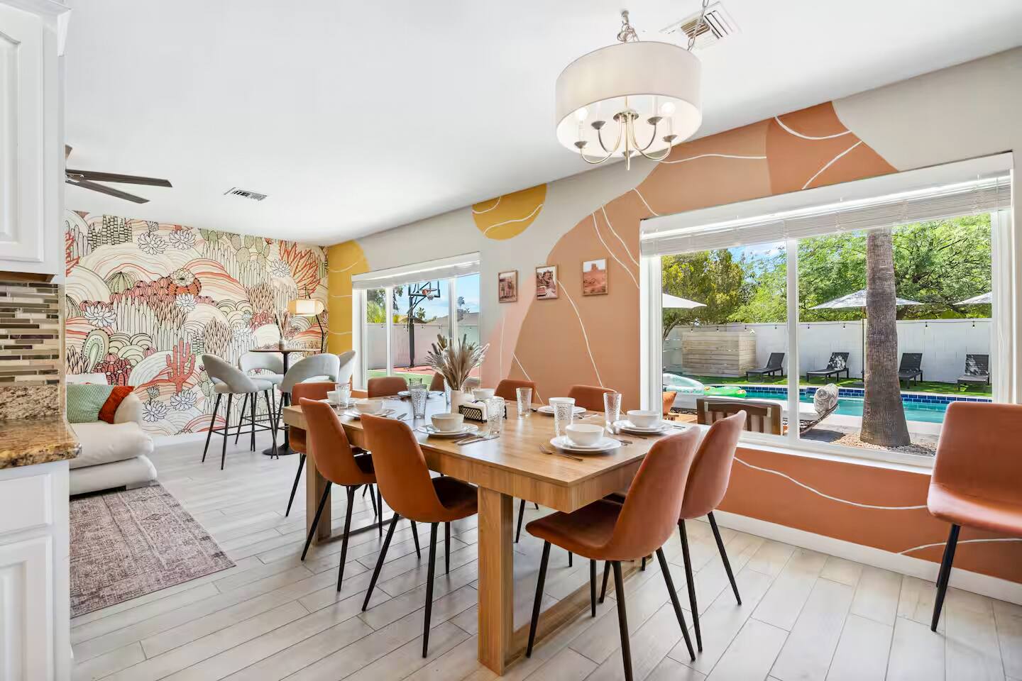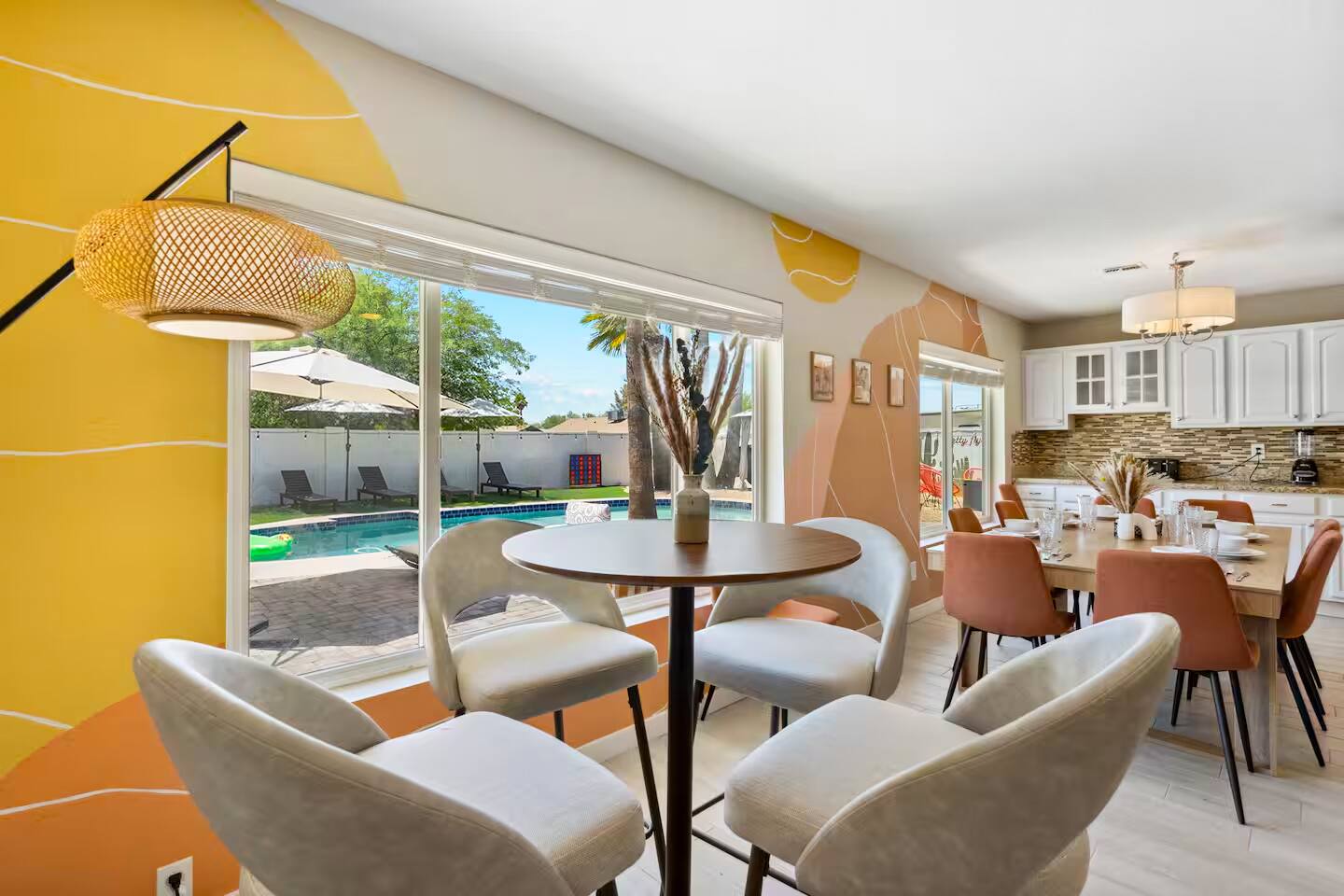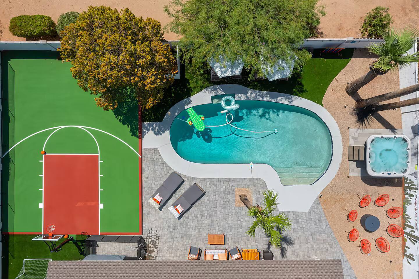 KEY FEATURES: ☀ 5 beautiful bedrooms 4 queens, 2 fulls, 3 twins, & 1 trundle bed ☀ 2 full bathrooms ☀ Modern kitchen with new, stainless steel appliances ☀ Open living room with lots of comfy seating & smart TV ☀ Dining room with seating to comfortably accommodate 12 ☀ Fun game room with pool table, arcade games, & smart TV ☀ AMAZING backyard; heated pool, hot tub, basketball, mini golf, and much more! Here Are A Few Kind Words From Our Past Guests: “This was a great place to stay! The morning light through the windows was so beautiful. Overall, just a relaxing experience. The hosts were super responsive whenever I had a question. I would stay again!” - Emily “Sabrina was very accommodating and communicative. the house is beautiful and very comfortable, close to nature hikes.” - Jennifer “This place was lovely! Exactly as pictured! Very clean and excellent host experience!!! I plan to come back again!” - Regina ☆☆ BEDROOMS ☆☆ This home has 5 gorgeous bedrooms. The master bedroom has a queen bed, smart TV, direct access to the backyard, and a private attached ensuite bathroom. Down the hall, there are two more bedrooms with 1 queen bed in each, and a fourth bedroom with a twin-over-full bunk bed. On the other end of the home is the largest bedroom, equipped with a queen, full, 2 twins, & a trundle bed, along with some comfy lounge seating, smart TV, and games! ☆☆ BATHROOMS ☆☆ There are two full bathrooms in this home. The master ensuite bathroom has a sink, toilet, and shower/tub combo. The hallway bathroom also has a sink, toilet, and shower/tub combo. ☆☆ KITCHEN & DINING ☆☆ The modern kitchen is located right off of the main living areas, and is loaded with all new stainless steel appliances & a coffee station (including a Keurig & coffee pods). The dining room is right next to the kitchen, with enough seating to comfortably fit 12 people. ☆☆ LIVING ROOM ☆☆ In the living room, you’ll be greeted with lots of comfy seating, a big smart TV, beautiful design, and lots of natural light with views of the resort-style backyard. This is the perfect spot to host your movie nights & games with your friends and family! ☆☆ GAME ROOM ☆☆ Keep your family and friends entertained throughout your stay in our amenity-filled game room! Pool table, arcade games, board games, card games, and a smart TV. Whether your reason for staying is to explore the town or stay at home and relax, this place will be the perfect spot to unwind! ☆☆ OUTDOOR SPACE ☆☆ This backyard is everything you could ask for, and more! ☀ Heated pool ☀ Hot tub ☀ Basketball court ☀ Mini golf ☀ Corn hole ☀ Fire pit ☀ Giant Jenga ☀ Giant Connect 4 ☀ BBQ grill ☀ Outdoor lounge seating ☀ Sun bathing chairs ☀ Covered outdoor dining There is so much to do here, that all of your friends & family will be thoroughly entertained throughout your entire stay. No matter the season, this backyard has it all. Book your stay with us today and you will NOT be disappointed. Get ready for a vacation you will never forget! ★☆ Book Now & Let Us Take Care Of You In Scottsdale! ☆★