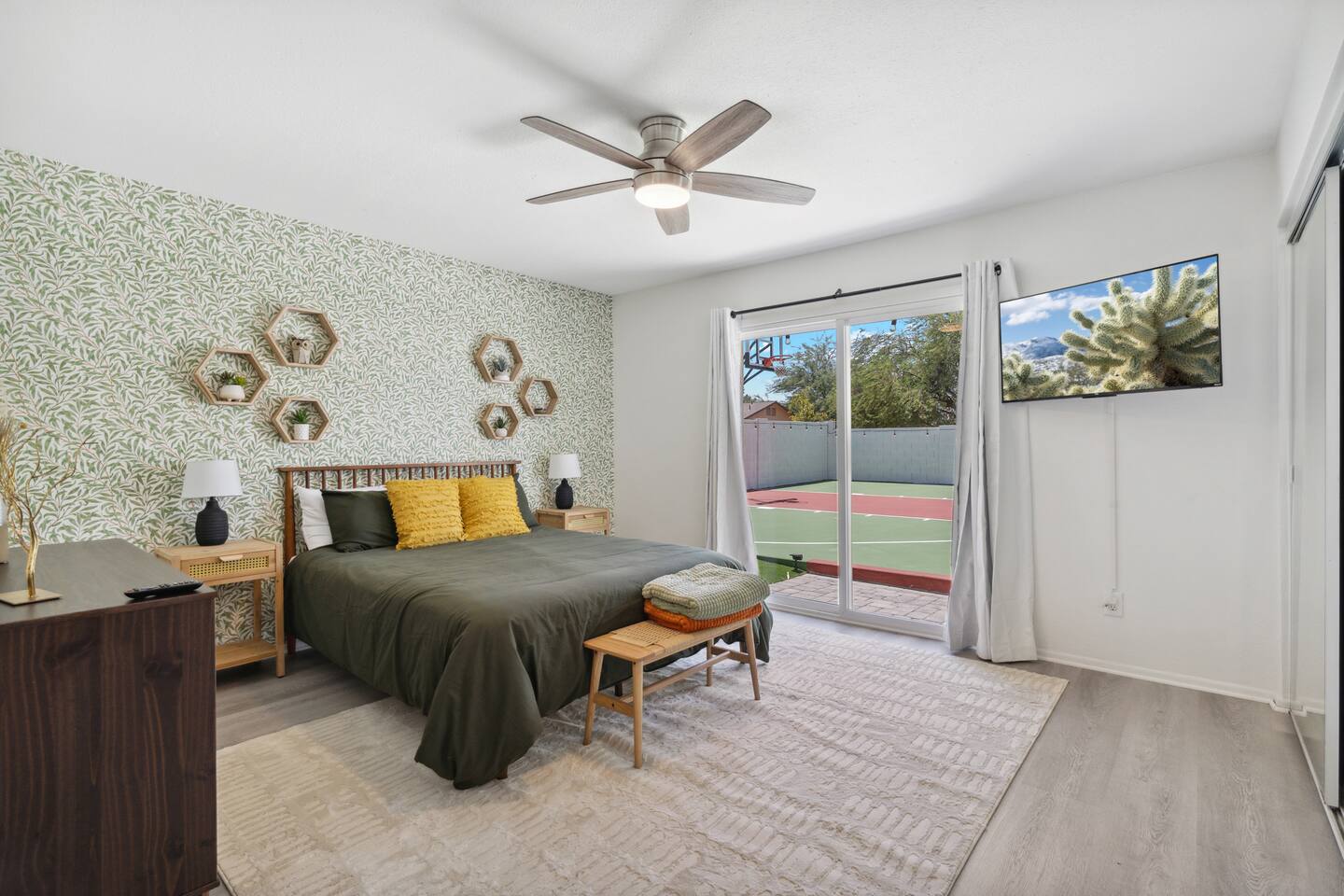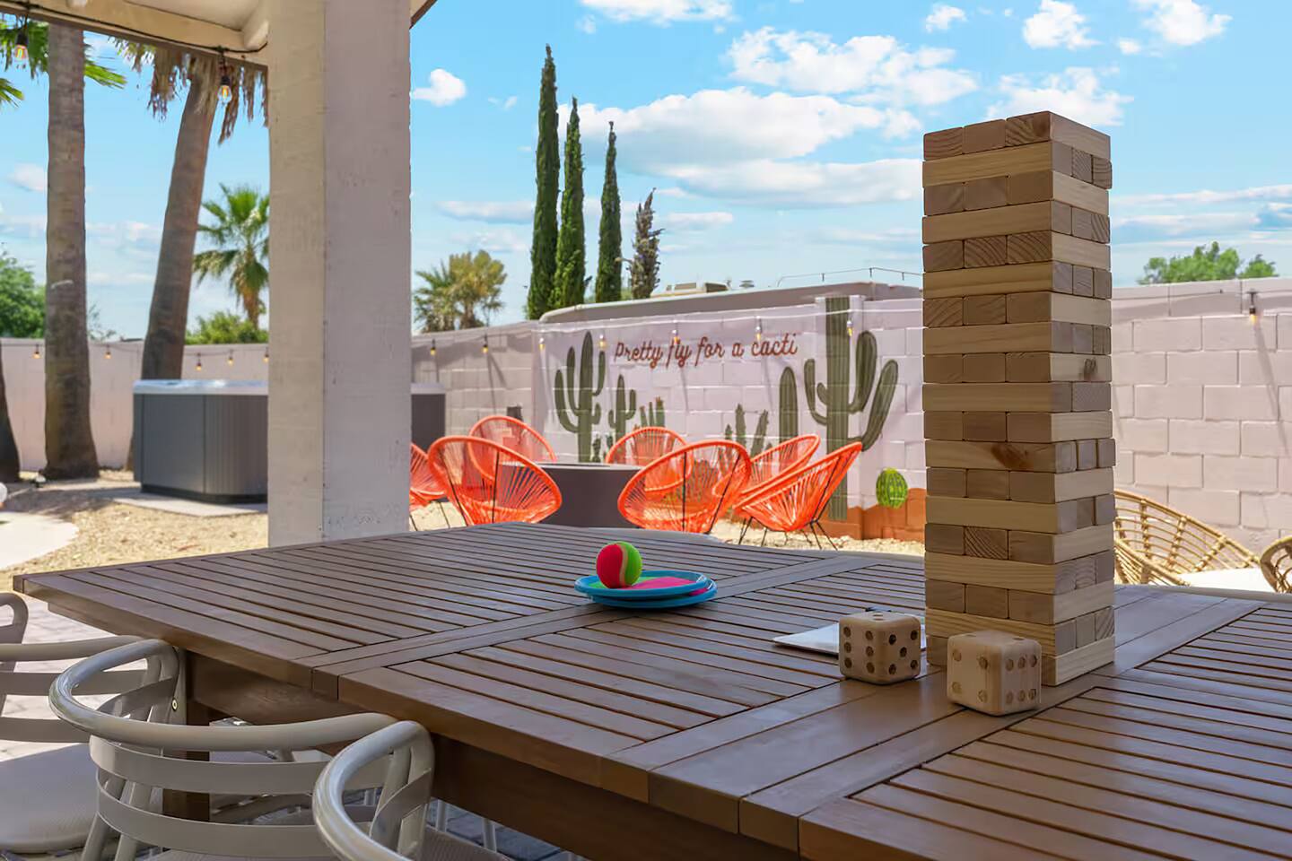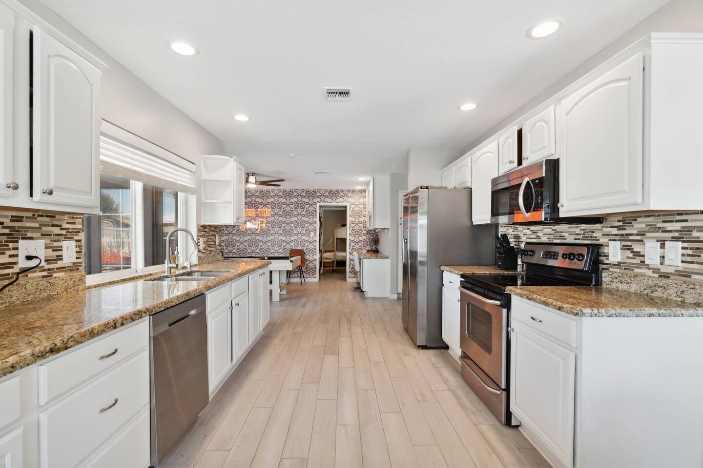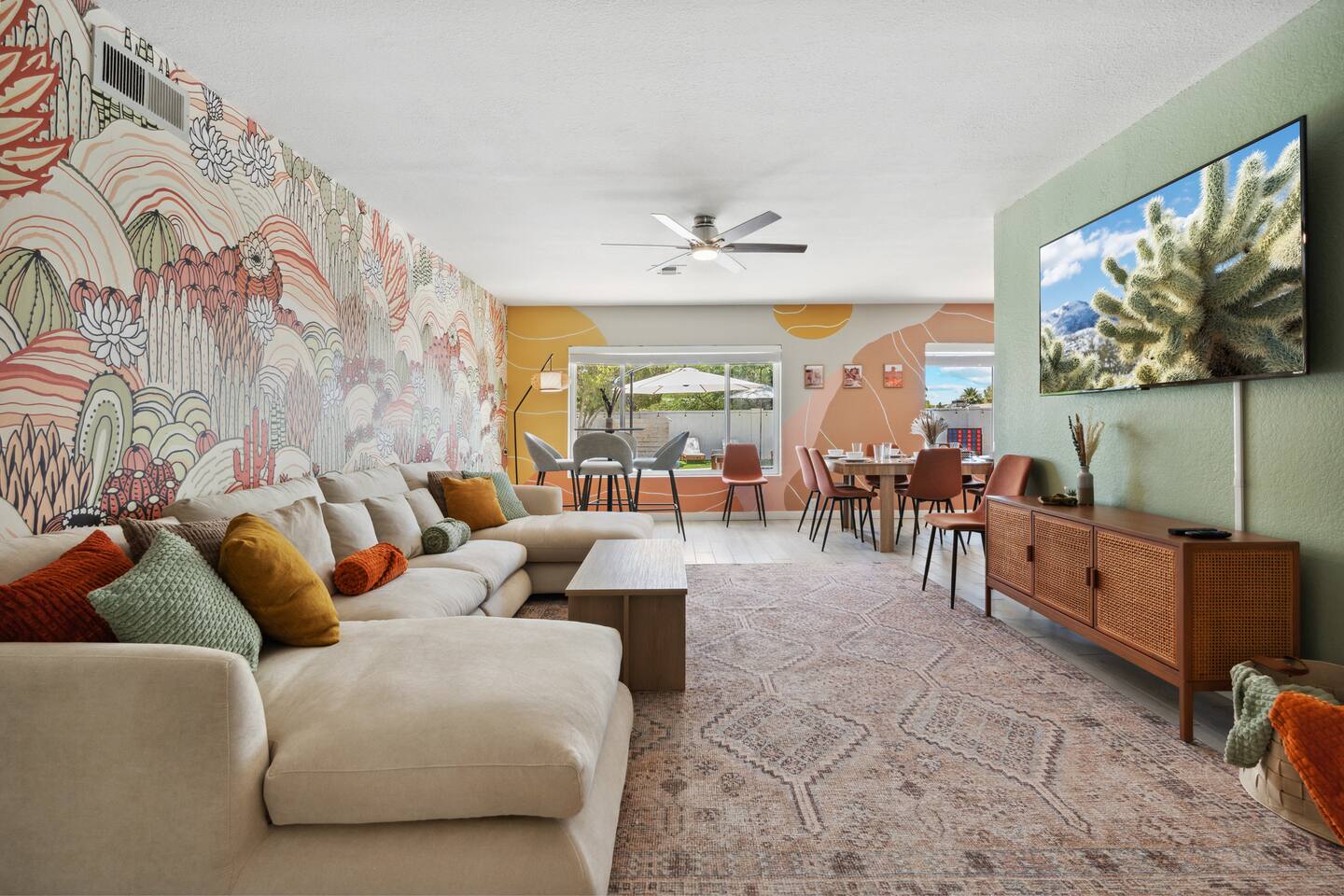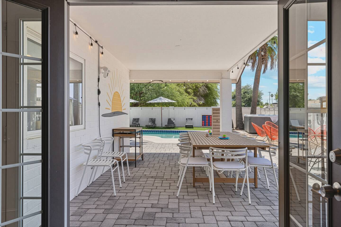 KEY FEATURES: ☀ 5 beautiful bedrooms 4 queens, 2 fulls, 3 twins, & 1 trundle bed ☀ 2 full bathrooms ☀ Modern kitchen with new, stainless steel appliances ☀ Open living room with lots of comfy seating & smart TV ☀ Dining room with seating to comfortably accommodate 12 ☀ Fun game room with pool table, arcade games, & smart TV ☀ AMAZING backyard; heated pool, hot tub, basketball, mini golf, and much more! Here Are A Few Kind Words From Our Past Guests: “This was a great place to stay! The morning light through the windows was so beautiful. Overall, just a relaxing experience. The hosts were super responsive whenever I had a question. I would stay again!” - Emily “Sabrina was very accommodating and communicative. the house is beautiful and very comfortable, close to nature hikes.” - Jennifer “This place was lovely! Exactly as pictured! Very clean and excellent host experience!!! I plan to come back again!” - Regina ☆☆ BEDROOMS ☆☆ This home has 5 gorgeous bedrooms. The master bedroom has a queen bed, smart TV, direct access to the backyard, and a private attached ensuite bathroom. Down the hall, there are two more bedrooms with 1 queen bed in each, and a fourth bedroom with a twin-over-full bunk bed. On the other end of the home is the largest bedroom, equipped with a queen, full, 2 twins, & a trundle bed, along with some comfy lounge seating, smart TV, and games! ☆☆ BATHROOMS ☆☆ There are two full bathrooms in this home. The master ensuite bathroom has a sink, toilet, and shower/tub combo. The hallway bathroom also has a sink, toilet, and shower/tub combo. ☆☆ KITCHEN & DINING ☆☆ The modern kitchen is located right off of the main living areas, and is loaded with all new stainless steel appliances & a coffee station (including a Keurig & coffee pods). The dining room is right next to the kitchen, with enough seating to comfortably fit 12 people. ☆☆ LIVING ROOM ☆☆ In the living room, you’ll be greeted with lots of comfy seating, a big smart TV, beautiful design, and lots of natural light with views of the resort-style backyard. This is the perfect spot to host your movie nights & games with your friends and family! ☆☆ GAME ROOM ☆☆ Keep your family and friends entertained throughout your stay in our amenity-filled game room! Pool table, arcade games, board games, card games, and a smart TV. Whether your reason for staying is to explore the town or stay at home and relax, this place will be the perfect spot to unwind! ☆☆ OUTDOOR SPACE ☆☆ This backyard is everything you could ask for, and more! ☀ Heated pool ☀ Hot tub ☀ Basketball court ☀ Mini golf ☀ Corn hole ☀ Fire pit ☀ Giant Jenga ☀ Giant Connect 4 ☀ BBQ grill ☀ Outdoor lounge seating ☀ Sun bathing chairs ☀ Covered outdoor dining There is so much to do here, that all of your friends & family will be thoroughly entertained throughout your entire stay. No matter the season, this backyard has it all. Book your stay with us today and you will NOT be disappointed. Get ready for a vacation you will never forget! ★☆ Book Now & Let Us Take Care Of You In Scottsdale! ☆★