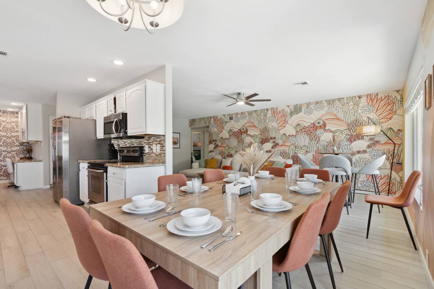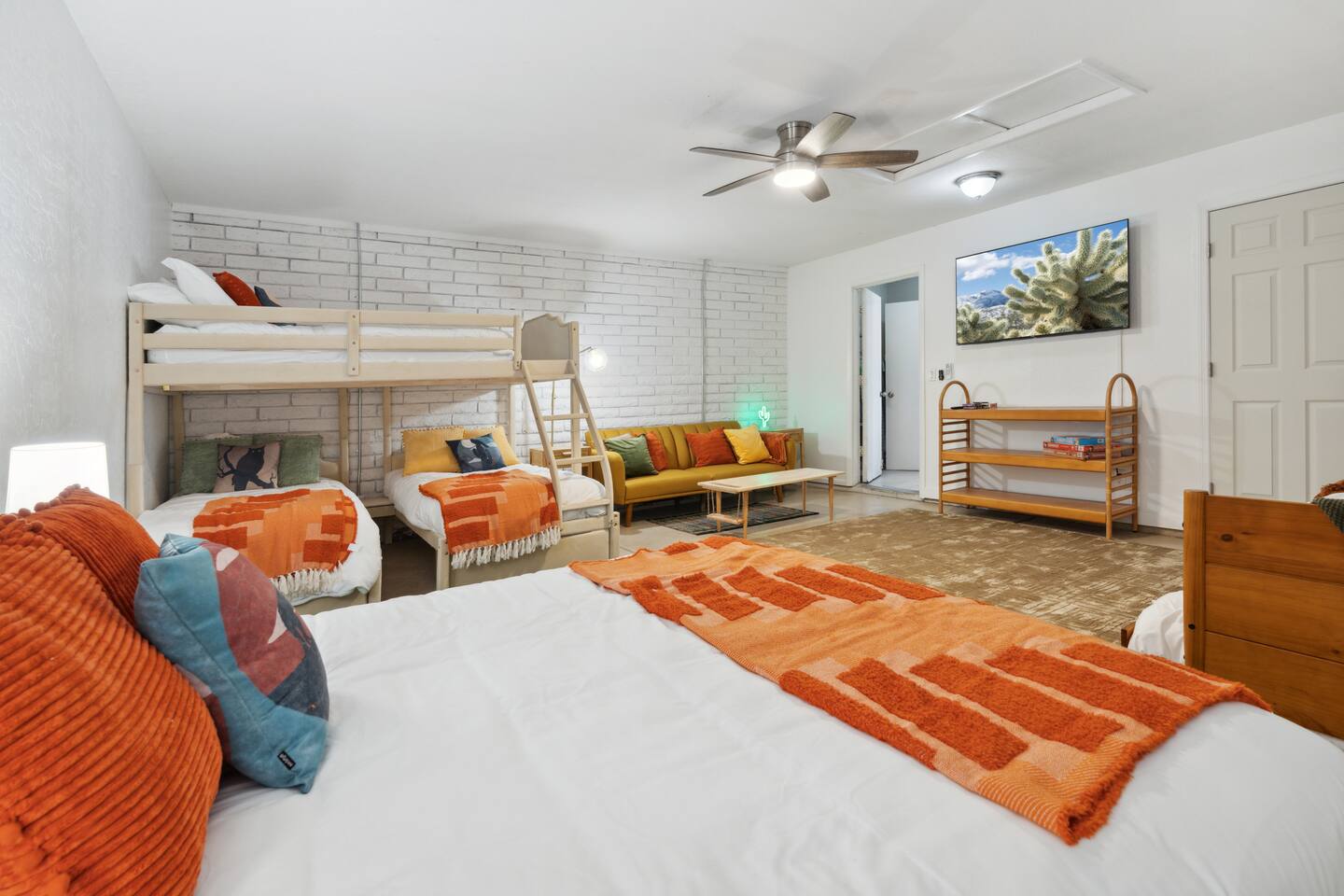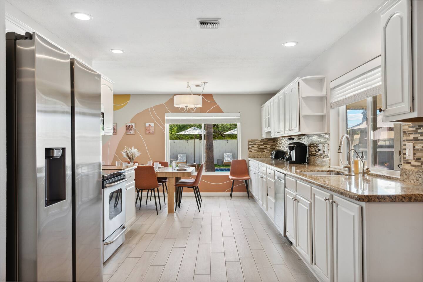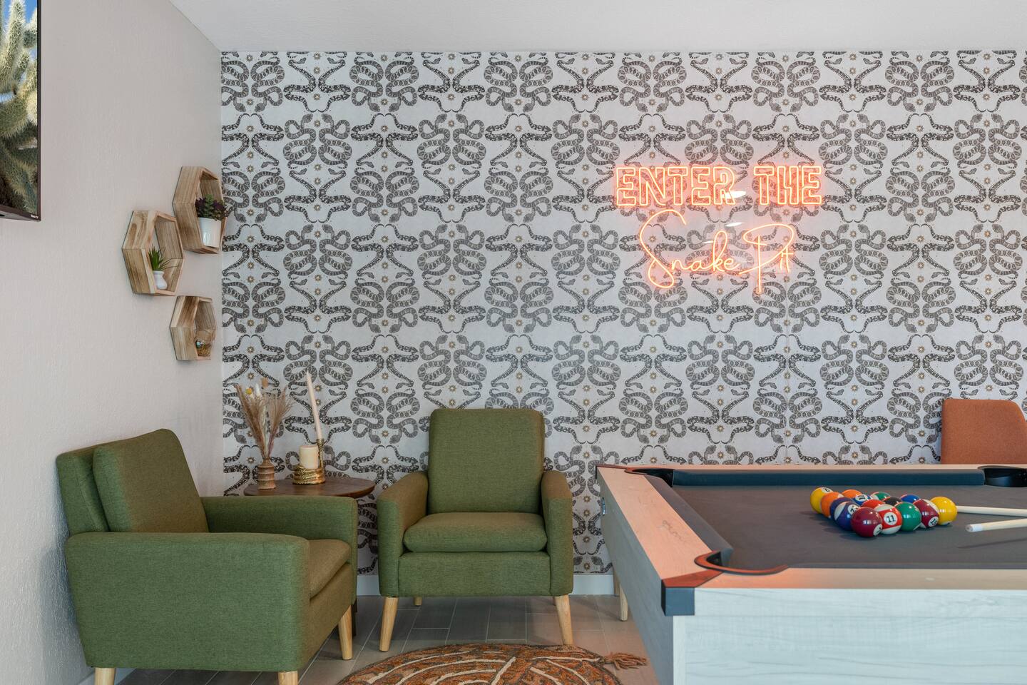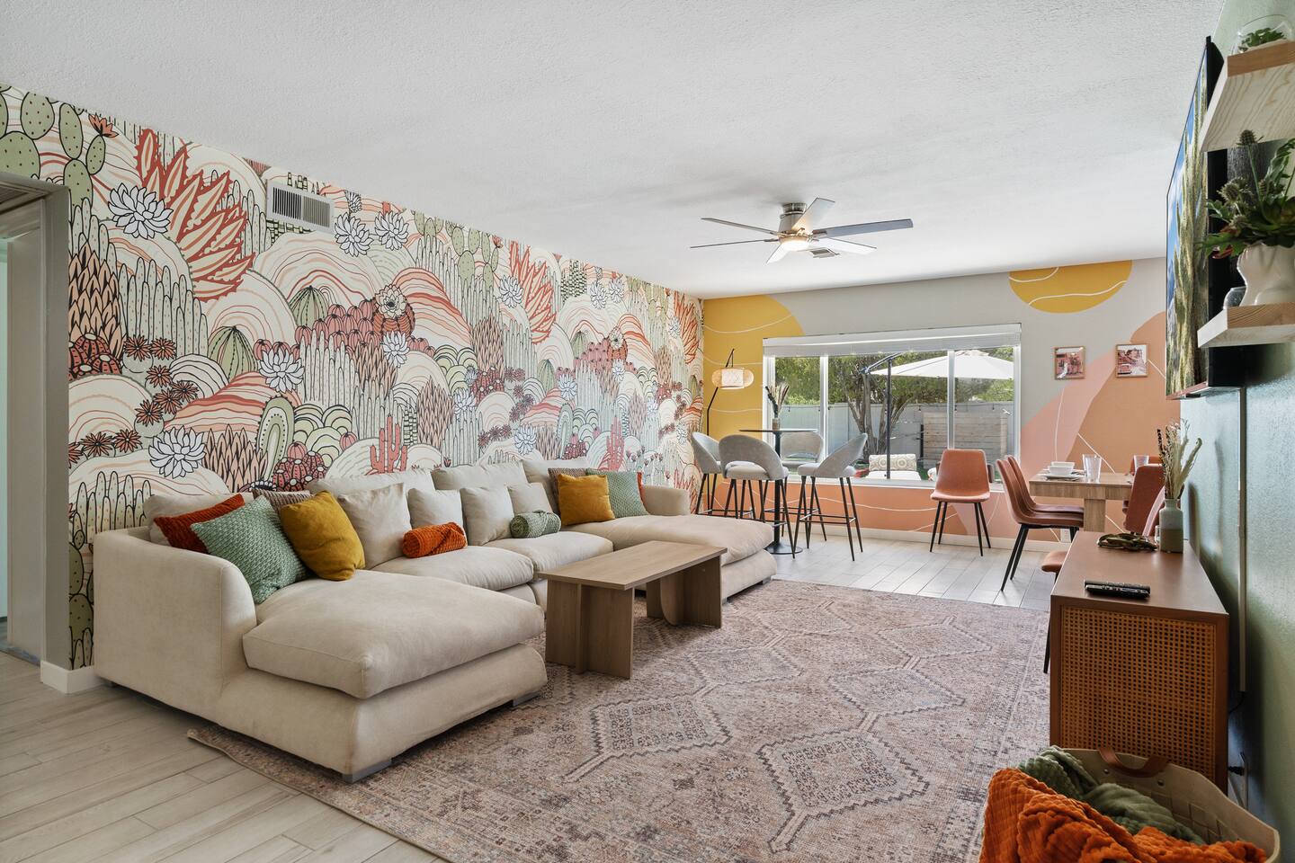 KEY FEATURES: ☀ 5 beautiful bedrooms 4 queens, 2 fulls, 3 twins, & 1 trundle bed ☀ 2 full bathrooms ☀ Modern kitchen with new, stainless steel appliances ☀ Open living room with lots of comfy seating & smart TV ☀ Dining room with seating to comfortably accommodate 12 ☀ Fun game room with pool table, arcade games, & smart TV ☀ AMAZING backyard; heated pool, hot tub, basketball, mini golf, and much more! Here Are A Few Kind Words From Our Past Guests: “This was a great place to stay! The morning light through the windows was so beautiful. Overall, just a relaxing experience. The hosts were super responsive whenever I had a question. I would stay again!” - Emily “Sabrina was very accommodating and communicative. the house is beautiful and very comfortable, close to nature hikes.” - Jennifer “This place was lovely! Exactly as pictured! Very clean and excellent host experience!!! I plan to come back again!” - Regina ☆☆ BEDROOMS ☆☆ This home has 5 gorgeous bedrooms. The master bedroom has a queen bed, smart TV, direct access to the backyard, and a private attached ensuite bathroom. Down the hall, there are two more bedrooms with 1 queen bed in each, and a fourth bedroom with a twin-over-full bunk bed. On the other end of the home is the largest bedroom, equipped with a queen, full, 2 twins, & a trundle bed, along with some comfy lounge seating, smart TV, and games! ☆☆ BATHROOMS ☆☆ There are two full bathrooms in this home. The master ensuite bathroom has a sink, toilet, and shower/tub combo. The hallway bathroom also has a sink, toilet, and shower/tub combo. ☆☆ KITCHEN & DINING ☆☆ The modern kitchen is located right off of the main living areas, and is loaded with all new stainless steel appliances & a coffee station (including a Keurig & coffee pods). The dining room is right next to the kitchen, with enough seating to comfortably fit 12 people. ☆☆ LIVING ROOM ☆☆ In the living room, you’ll be greeted with lots of comfy seating, a big smart TV, beautiful design, and lots of natural light with views of the resort-style backyard. This is the perfect spot to host your movie nights & games with your friends and family! ☆☆ GAME ROOM ☆☆ Keep your family and friends entertained throughout your stay in our amenity-filled game room! Pool table, arcade games, board games, card games, and a smart TV. Whether your reason for staying is to explore the town or stay at home and relax, this place will be the perfect spot to unwind! ☆☆ OUTDOOR SPACE ☆☆ This backyard is everything you could ask for, and more! ☀ Heated pool ☀ Hot tub ☀ Basketball court ☀ Mini golf ☀ Corn hole ☀ Fire pit ☀ Giant Jenga ☀ Giant Connect 4 ☀ BBQ grill ☀ Outdoor lounge seating ☀ Sun bathing chairs ☀ Covered outdoor dining There is so much to do here, that all of your friends & family will be thoroughly entertained throughout your entire stay. No matter the season, this backyard has it all. Book your stay with us today and you will NOT be disappointed. Get ready for a vacation you will never forget! ★☆ Book Now & Let Us Take Care Of You In Scottsdale! ☆★