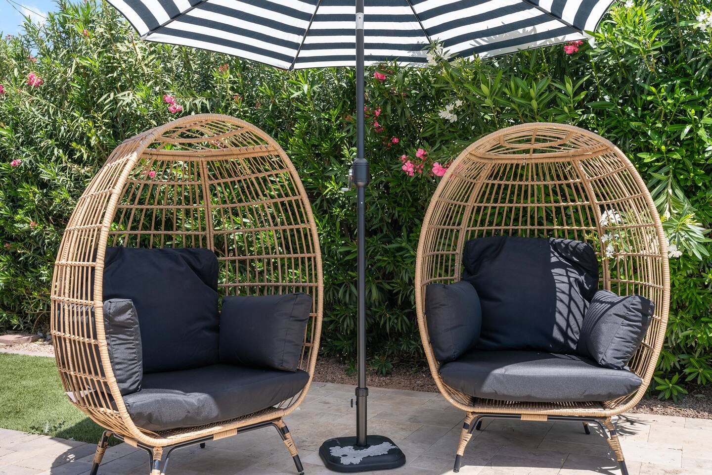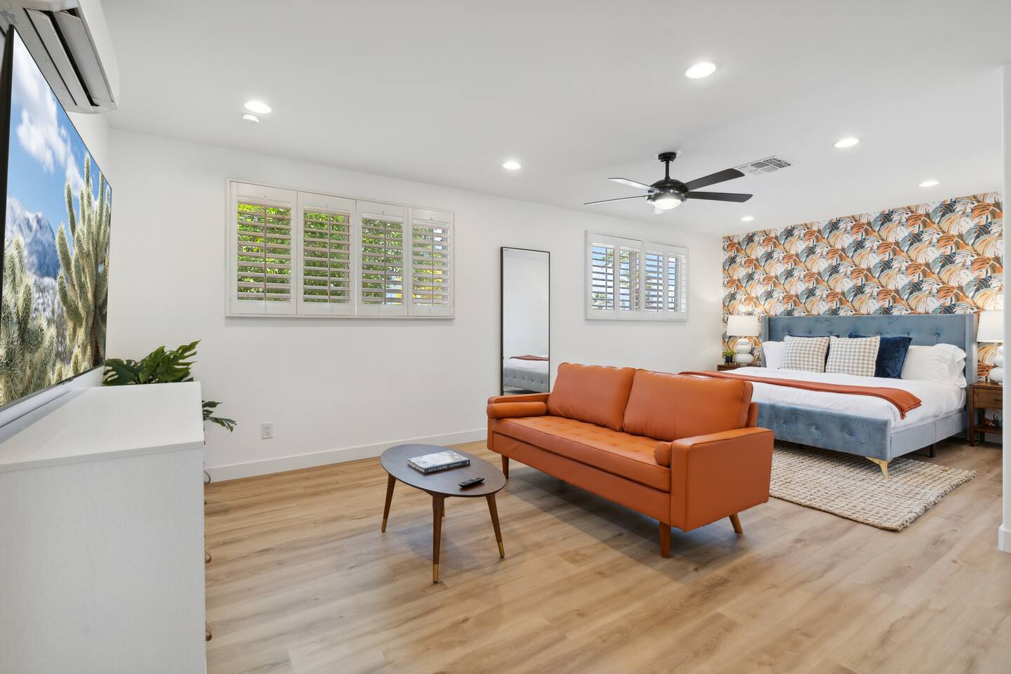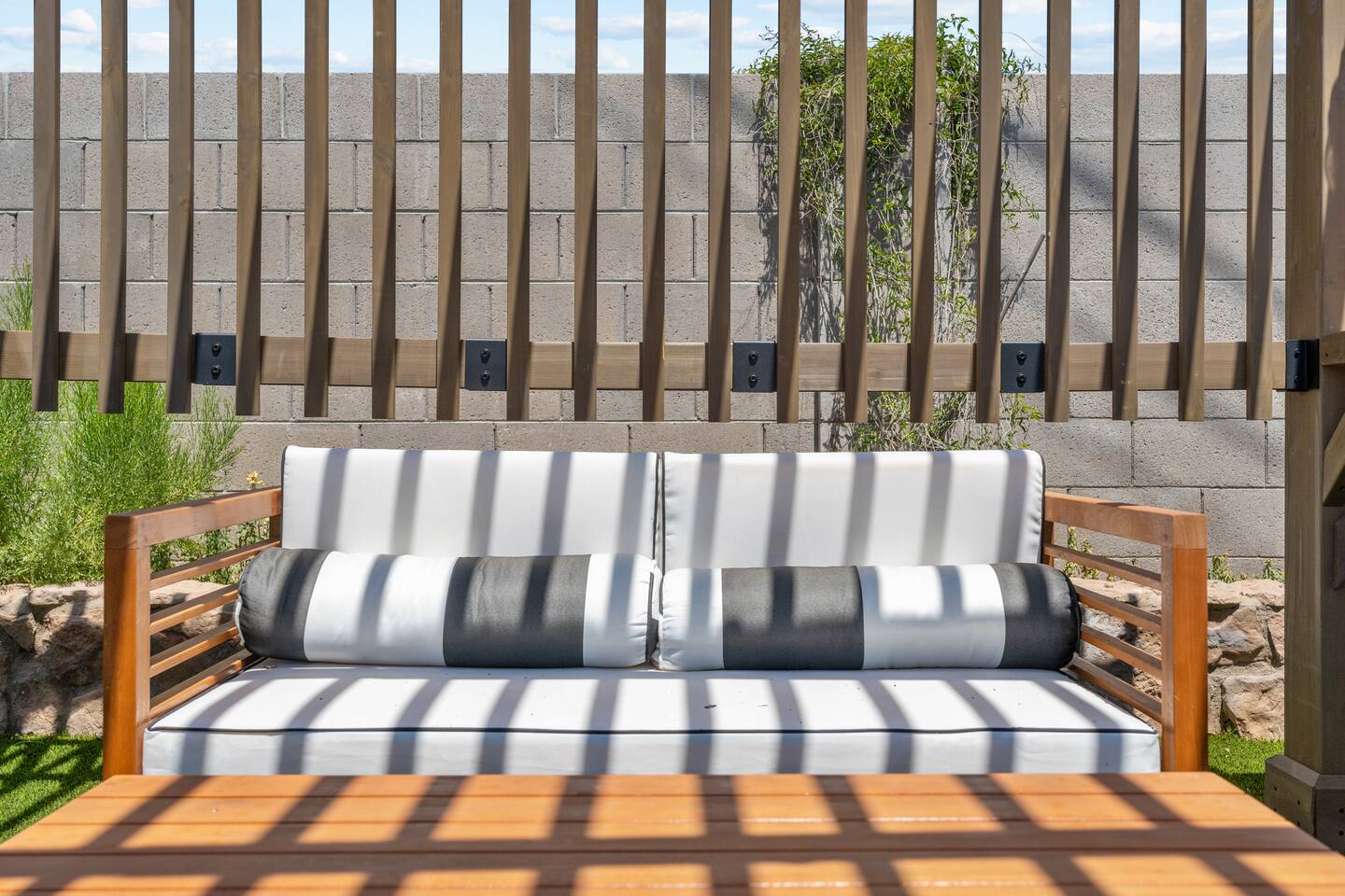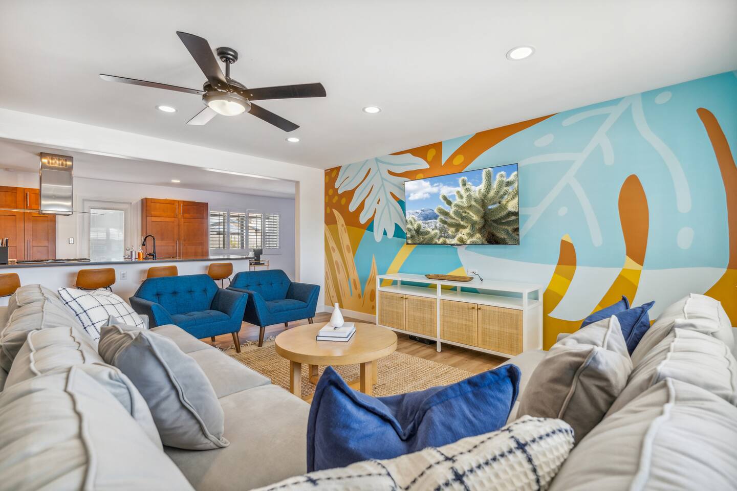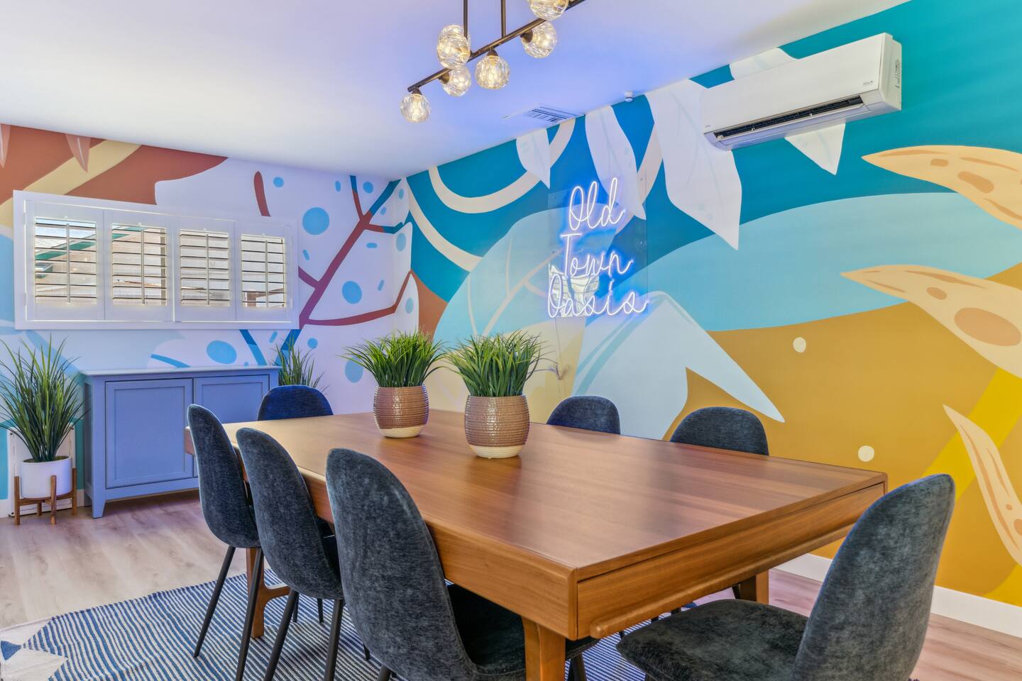 KEY FEATURES: ☀ 4 beautiful bedrooms; 1 king, 2 queens, 2 fulls (bunk), & 2 twins (bunk) ☀ 3 full bathrooms ☀ Modern, open kitchen with new appliances ☀ Great space for entertaining in the living room with lots of comfy seating & smart TV ☀ Dining room with seating to comfortably accommodate 8 (plus 4 countertop seats & outdoor dining) ☀ Fun, vibrant game room with pool table, foosball, arcade games, sauna, and more! ☀ AMAZING backyard, loaded with amenities!; heated pool, hot tub, mini golf, fire pit, and so much more! Here Are A Few Kind Words From Our Past Guests: “This was a great place to stay! The morning light through the windows was so beautiful. Overall, just a relaxing experience. The hosts were super responsive whenever I had a question. I would stay again!” - Emily “Sabrina was very accommodating and communicative. the house is beautiful and very comfortable, close to nature hikes.” - Jennifer “This place was lovely! Exactly as pictured! Very clean and excellent host experience!!! I plan to come back again!” - Regina ☆☆ BEDROOMS ☆☆ This home has four beautifully designed bedrooms. Right off of the main living space is the master bedroom, with a king bed, sitting area, smart TV, and private ensuite bathroom. On the other end of the open living area are the three remaining bedrooms. The next bedroom has a queen bed, private ensuite bathroom, and direct access to the amazing backyard. As you go down the hallway, you'll find the two remaining bedrooms; one with a king bed, the other with two bunk beds (two full beds & two twin beds). These last two bedrooms share one full bathroom, accessible from the hallway. ☆☆ BATHROOMS ☆☆ There are three full bathrooms in this home. The master ensuite bathroom is modern and luxurious, with a sink, toilet, and walk-in shower. The secondary bedroom's private ensuite bathroom also has a similar layout, with a sink, toilet, and walk-in shower. The third bathroom, which is accessible from the hallway, has a sink, toilet, and shower/tub combo. ☆☆ KITCHEN & DINING ☆☆ The modern kitchen is located right off of the main living areas, and is loaded with all the kitchen essentials & a coffee station (including a Keurig & coffee pods). It opens up to the rest of the living area, making this a great spot for entertaining! The dining room is right next to the kitchen, with enough seating to comfortably fit 8 people, plus 4 countertop seats in the kitchen & more dining options outside. ☆☆ LIVING ROOM ☆☆ In the living room, you’ll be greeted with lots of comfy seating, a big smart TV, and fun, vibrant design throughout! This is the perfect spot to host your movie nights & games with your friends and family, or to unwind together after exploring a night out in the town, or even just to relax after a full day of activities in the backyard! ☆☆ GAME ROOM ☆☆ Keep your family and friends entertained throughout your stay in our amenity-filled game room! Pool table, foosball, arcade games, sauna, high-top seating, and a smart TV. Whether your reason for staying is to explore the town or stay at home and relax, this place will be the perfect spot to enjoy! ☆☆ OUTDOOR SPACE ☆☆ This backyard is everything you could ask for, and more! ☀ Heated pool ☀ Hot tub (+ bar seating around hot tub; super cool!) ☀ Mini golf ☀ Fire pit ☀ Corn hole ☀ BBQ grill ☀ Sun lounging chairs ☀ Covered outdoor lounge seating ☀ Covered outdoor dining area There is so much to do here, that all of your friends & family will be thoroughly entertained throughout your entire stay. No matter the season, this backyard has it all. Book your stay with us today and you will NOT be disappointed. Get ready for a vacation you will never forget! ★☆ Book Now & Let Us Take Care Of You In Scottsdale! ☆★