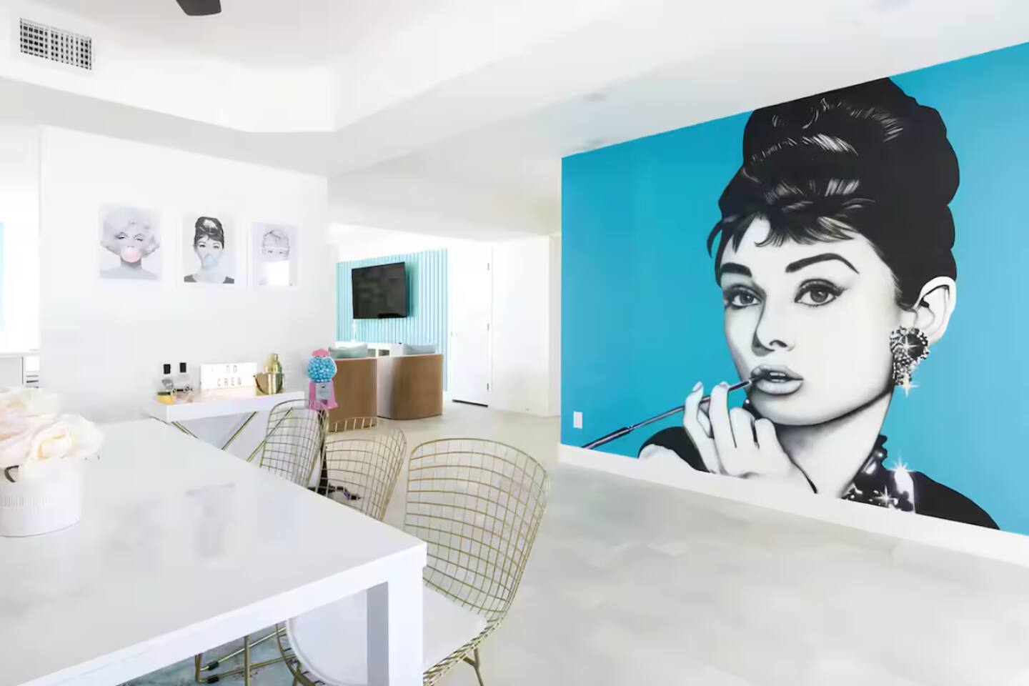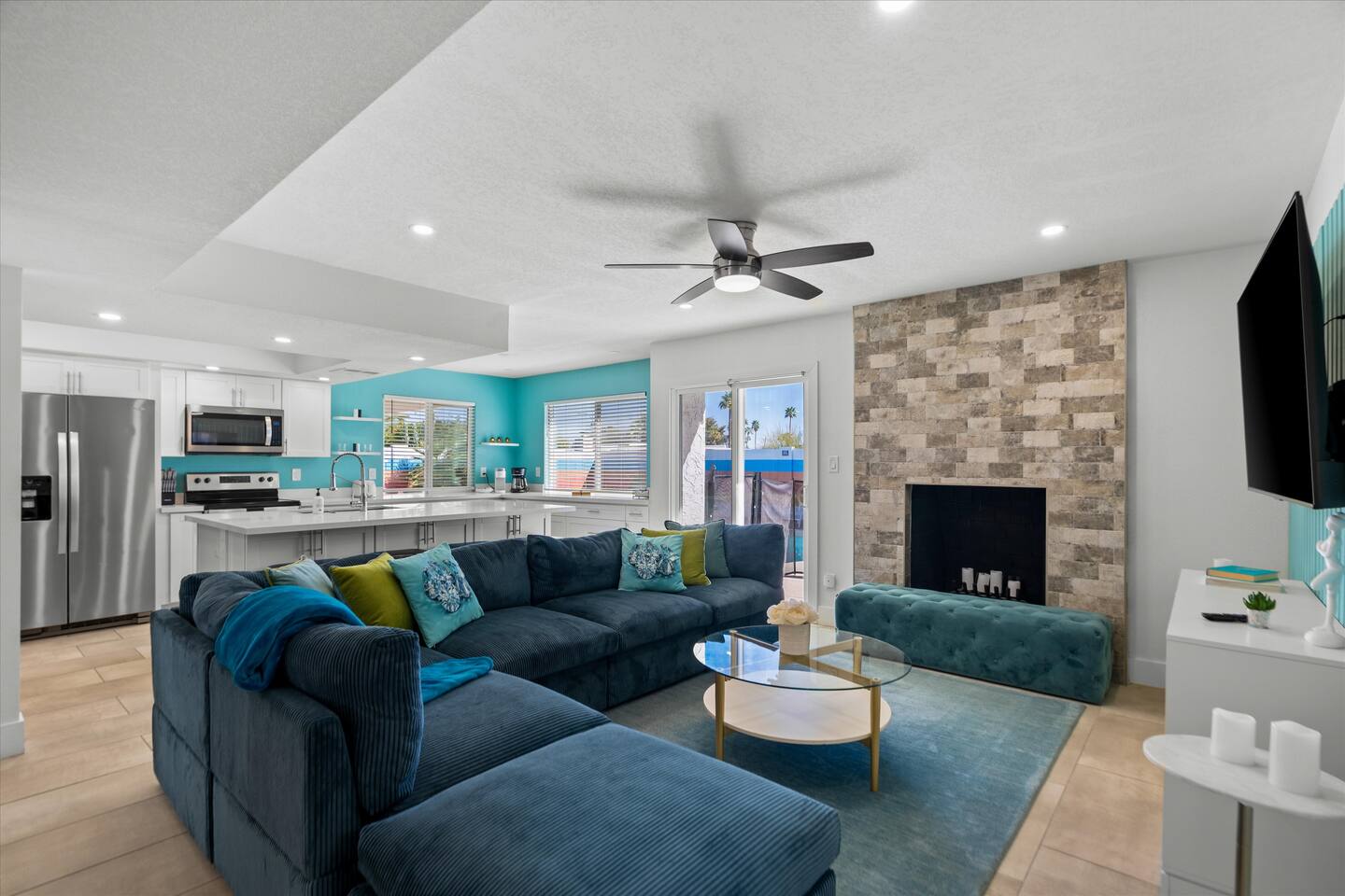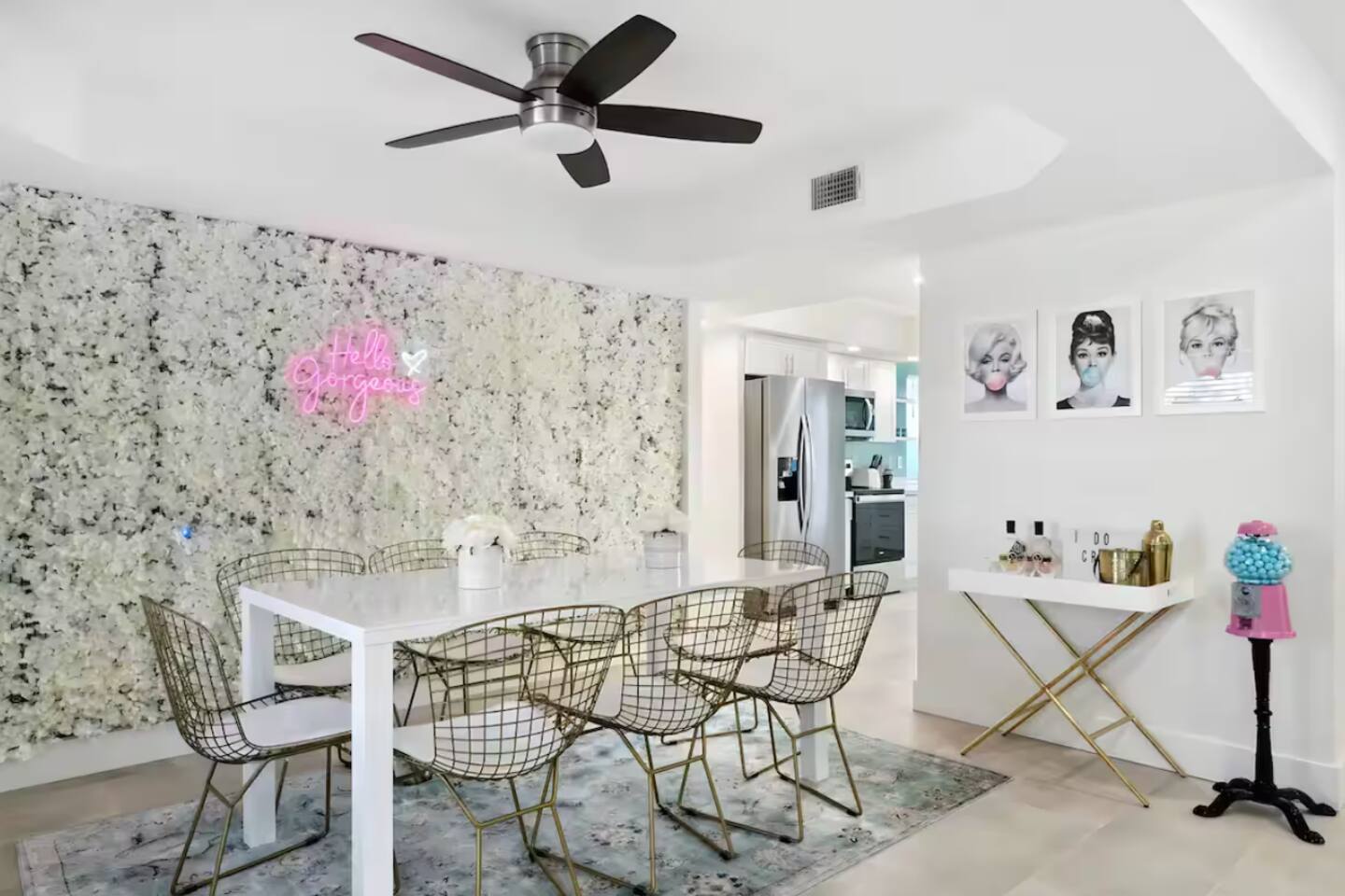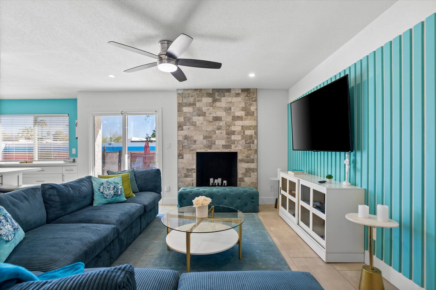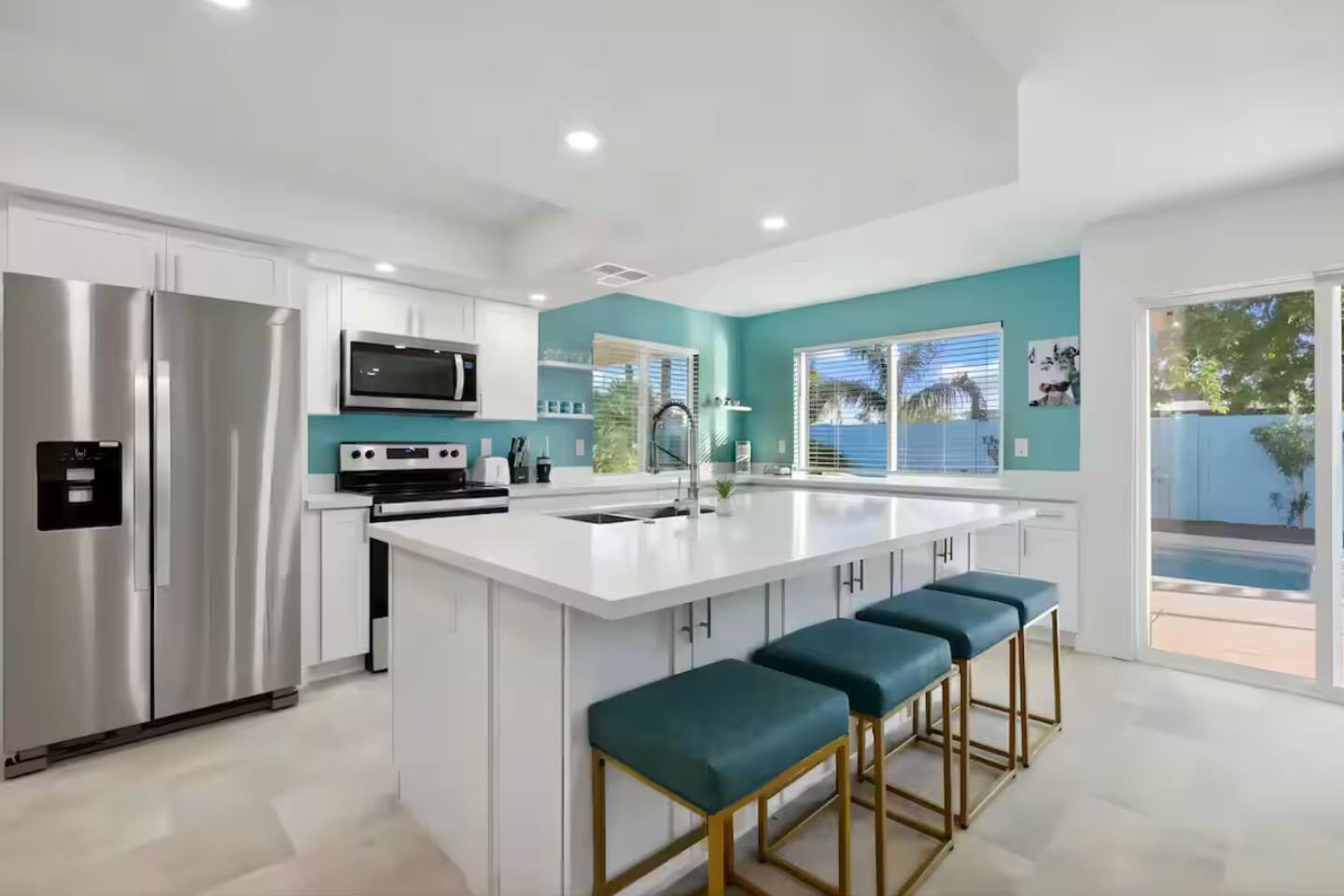 **Request a booking to receive a 3D tour!** KEY FEATURES: ☀ Large, fully fenced yard with heated pool, fire pit, and more ☀ 4 large bedrooms; 2 queens, 4 fulls, 1 twin ☀ 2 full bathrooms + 1 half bath ☀ Modern kitchen w/ stainless steel appliances ☀ Open-concept living area w/ jaw-dropping murals + tons of natural light ☀ Private backyard w/ heated pool + fire pit ☀ High-speed WiFi + Smart TV ☀ Located in a great neighborhood just a short drive from all that Scottsdale has to offer! Here Are A Few Kind Words From Our Past Guests: “This was a great place to stay! The morning light through the windows was so beautiful. Overall, just a relaxing experience. The hosts were super responsive whenever I had a question. I would stay again!”- Emily “Sabrina was very accommodating and communicative. the house is beautiful and very comfortable, close to nature hikes.”- Jennifer “This place was lovely! Exactly as pictured! Very clean and excellent host experience!!! I plan to come back again!”- Regina ☆☆ BEDROOMS ☆☆ Four of the most beautifully designed bedrooms you will find! The master bedroom can sleep up to 8, with four full beds (two bunks) and an attached ensuite bathroom. Right down the hall are the remaining three bedrooms. Two of the other bedrooms have one queen bed in each, while the last one has one twin daybed. Each room takes on a fun, unique design, with vibrant murals and wallpaper, a wall of flowers, and bright neon signs. Such a vibrant, yet peaceful design! ☆☆ BATHROOMS ☆☆ Two and a half gorgeous, completely remodeled bathrooms. One is attached the the master bedroom, and comes fully equipped with two sinks, a walk-in shower, and a stand-alone tub. The next bathroom has access directly from the hallway, and is shared by the remaining bedrooms. This second bathroom has 1 sink and a shower/tub combo. The half bathroom is located right off of the living space, conveniently placed for easy access to the main gathering area in this home. ☆☆ KITCHEN & DINING ☆☆ You will be BLOWN AWAY when you walk into this home and you are greeted by the hyper-realistic mural on the large dining room wall. On top of this, the dining room has tons of space and opens right up to the rest of the living area in this home. You will enjoy your classy, 5-course dinners right here in the dining room, right next to the flower wall and fun neon sign (and of course, classy art and decor spread throughout this space). The next room over is the modern, completely remodeled kitchen, equipped with all brand new stainless steel appliances (and, of course, a stocked coffee station with a Keurig, coffee pods, and unique, classy coffee mugs). This space is made for entertaining - this whole area opens up to the rest of the home, so you will never miss a beat cooking in the kitchen while the rest of the group is gathered in the living room! ☆☆ LIVING ROOM ☆☆ Let the family and friends gather around the 65 inch smart TV in this grand, open living room! The modern, vibrant design continues here with lots of comfy seating gathered around the fireplace (non-operational) and direct access to the backyard, with even more fun amenities! ☆☆ BACKYARD ☆☆ Let the entertainment continue as you walk out into the private, open yard space! Here you will find a heated pool (heating available upon request), fire pit (wood-burning), lounge chairs and a bright blue mural, perfect for those influencer photo-ops. Welcome to your true Scottsdale Escape - your dream destination awaits! ★☆ Book Today & Let Us Take Care Of You In Scottsdale! ☆★