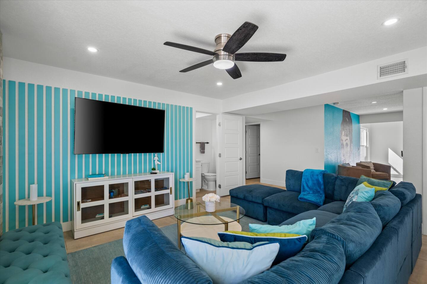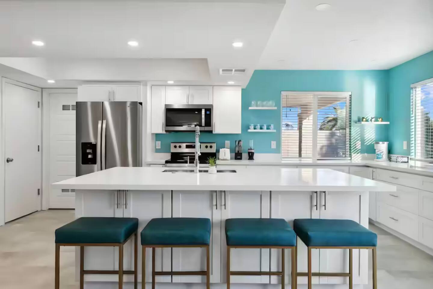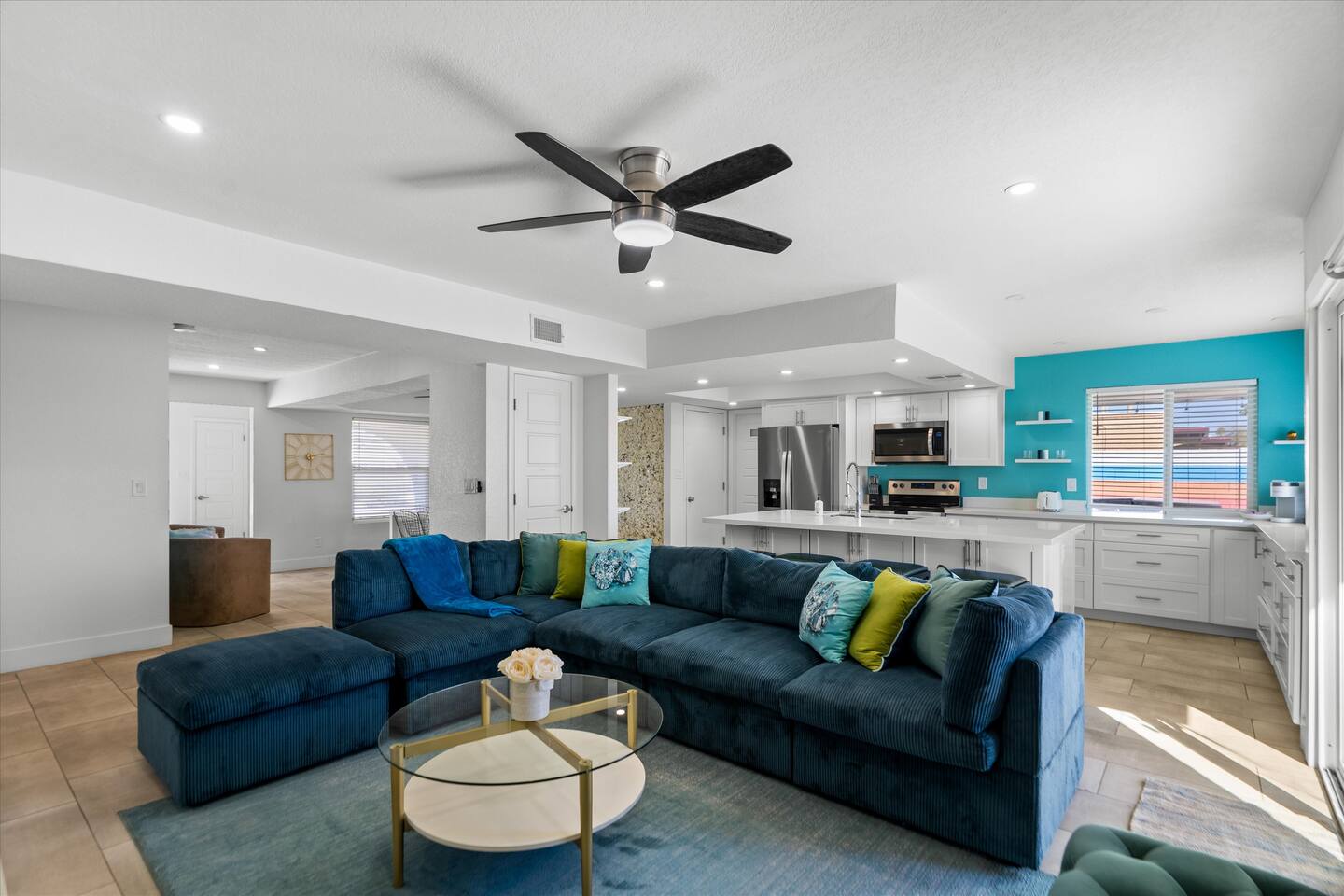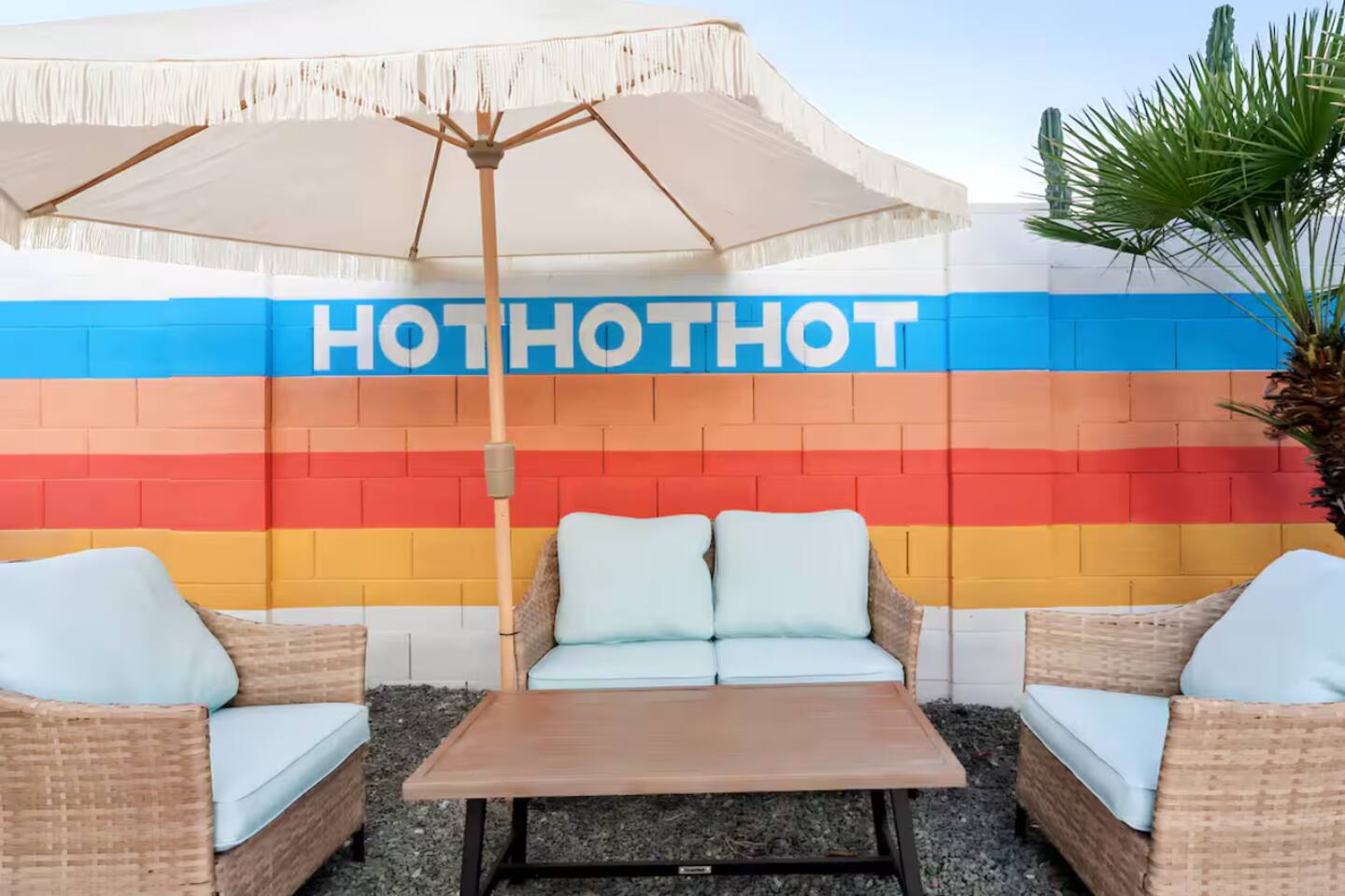 **Request a booking to receive a 3D tour!** KEY FEATURES: ☀ Large, fully fenced yard with heated pool, fire pit, and more ☀ 4 large bedrooms; 2 queens, 4 fulls, 1 twin ☀ 2 full bathrooms + 1 half bath ☀ Modern kitchen w/ stainless steel appliances ☀ Open-concept living area w/ jaw-dropping murals + tons of natural light ☀ Private backyard w/ heated pool + fire pit ☀ High-speed WiFi + Smart TV ☀ Located in a great neighborhood just a short drive from all that Scottsdale has to offer! Here Are A Few Kind Words From Our Past Guests: “This was a great place to stay! The morning light through the windows was so beautiful. Overall, just a relaxing experience. The hosts were super responsive whenever I had a question. I would stay again!”- Emily “Sabrina was very accommodating and communicative. the house is beautiful and very comfortable, close to nature hikes.”- Jennifer “This place was lovely! Exactly as pictured! Very clean and excellent host experience!!! I plan to come back again!”- Regina ☆☆ BEDROOMS ☆☆ Four of the most beautifully designed bedrooms you will find! The master bedroom can sleep up to 8, with four full beds (two bunks) and an attached ensuite bathroom. Right down the hall are the remaining three bedrooms. Two of the other bedrooms have one queen bed in each, while the last one has one twin daybed. Each room takes on a fun, unique design, with vibrant murals and wallpaper, a wall of flowers, and bright neon signs. Such a vibrant, yet peaceful design! ☆☆ BATHROOMS ☆☆ Two and a half gorgeous, completely remodeled bathrooms. One is attached the the master bedroom, and comes fully equipped with two sinks, a walk-in shower, and a stand-alone tub. The next bathroom has access directly from the hallway, and is shared by the remaining bedrooms. This second bathroom has 1 sink and a shower/tub combo. The half bathroom is located right off of the living space, conveniently placed for easy access to the main gathering area in this home. ☆☆ KITCHEN & DINING ☆☆ You will be BLOWN AWAY when you walk into this home and you are greeted by the hyper-realistic mural on the large dining room wall. On top of this, the dining room has tons of space and opens right up to the rest of the living area in this home. You will enjoy your classy, 5-course dinners right here in the dining room, right next to the flower wall and fun neon sign (and of course, classy art and decor spread throughout this space). The next room over is the modern, completely remodeled kitchen, equipped with all brand new stainless steel appliances (and, of course, a stocked coffee station with a Keurig, coffee pods, and unique, classy coffee mugs). This space is made for entertaining - this whole area opens up to the rest of the home, so you will never miss a beat cooking in the kitchen while the rest of the group is gathered in the living room! ☆☆ LIVING ROOM ☆☆ Let the family and friends gather around the 65 inch smart TV in this grand, open living room! The modern, vibrant design continues here with lots of comfy seating gathered around the fireplace (non-operational) and direct access to the backyard, with even more fun amenities! ☆☆ BACKYARD ☆☆ Let the entertainment continue as you walk out into the private, open yard space! Here you will find a heated pool (heating available upon request), fire pit (wood-burning), lounge chairs and a bright blue mural, perfect for those influencer photo-ops. Welcome to your true Scottsdale Escape - your dream destination awaits! ★☆ Book Today & Let Us Take Care Of You In Scottsdale! ☆★