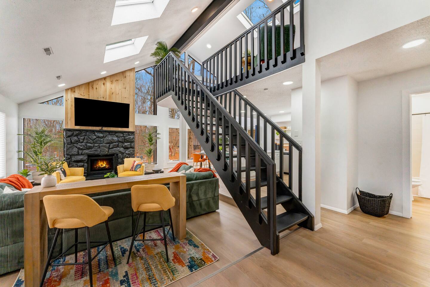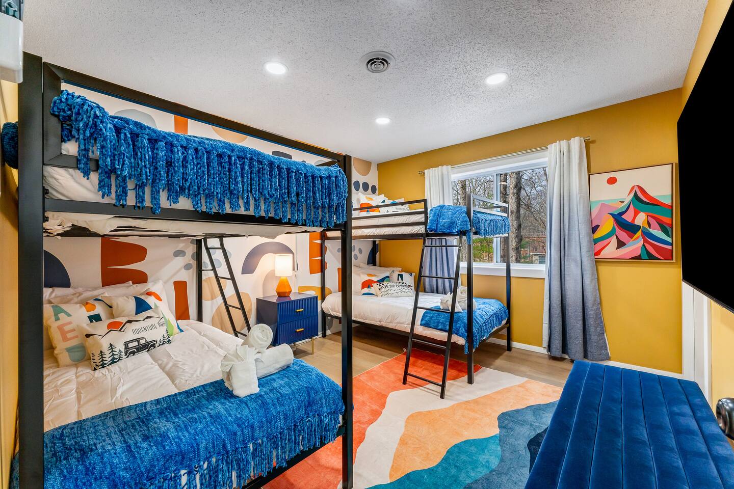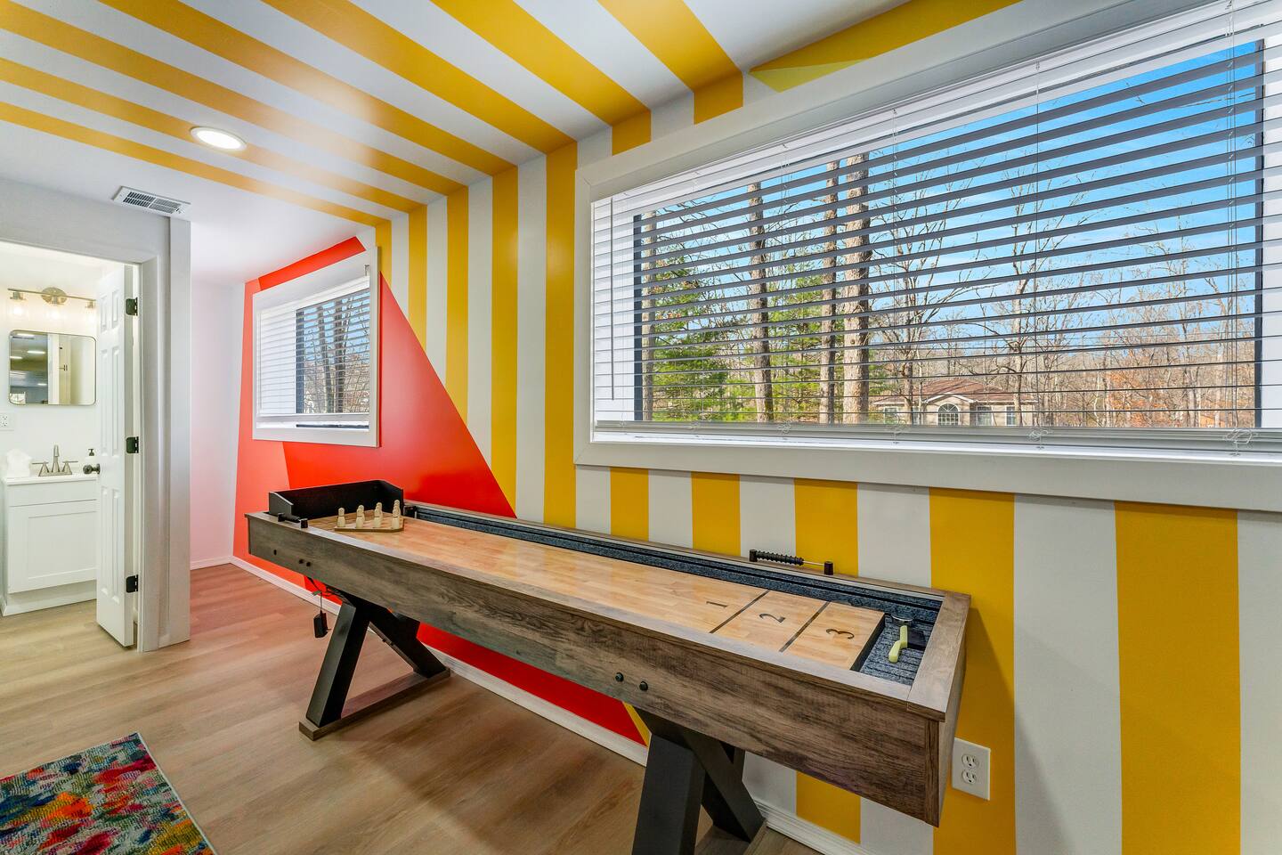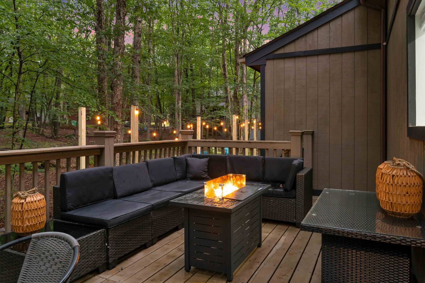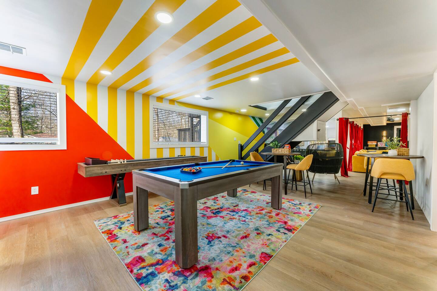 **During the summer months (Memorial Day weekend - Labor Day weekend), you will receive amenity badges that allow you to access the following amenities. If you’re staying with us outside of these dates, these amenities will be closed.** ☀ Lakes (with beach access - swimming allowed!) ☀ Pools ☀ Tennis courts ☀ Basketball courts ☀ Volleyball courts ☀ Dog park ☀ Playground areas KEY FEATURES: ☀ 5 beautiful bedrooms; 4 kings & 4 twin beds (2 twin-over-twin bunks) ☀ 3 full, modern bathrooms ☀ New, modern kitchen ☀ HUGE living room with lots of comfy seating & smart TV ☀ Stylish dining room that opens up to the rest of the living space ☀ Super fun game rooms with pool table, poker table, air hockey, & more! ☀ A private MOVIE THEATER with a massive projector screen ☀ A private back deck with a fire pit & outdoor dining ☀ A private pickleball/basketball court right in the backyard! Here Are A Few Kind Words From Our Past Guests: “This was a great place to stay! The morning light through the windows was so beautiful. Overall, just a relaxing experience. The hosts were super responsive whenever I had a question. I would stay again!” - Emily “Sabrina was very accommodating and communicative. the house is beautiful and very comfortable, close to nature hikes.” - Jennifer “This place was lovely! Exactly as pictured! Very clean and excellent host experience!!! I plan to come back again!” - Regina ☆☆ BEDROOMS ☆☆ These 5 bedrooms in this home are truly designed for style & comfort, each with their own smart TV! There are 3 bedrooms on the main level. The master bedroom has a king bed, seating area, and a private ensuite bathroom. The second bedroom has two twin-over-twin bunk beds (4 twin beds total) — each bunk has a 150-pound weight limit. The third bedroom has a king bed. Downstairs, the fourth & fifth bedrooms have 1 king bed in each. ☆☆ BATHROOMS ☆☆ There are 3 full, modern bathrooms throughout this home. On the main floor, the master ensuite bathroom has a sink, toilet, walk-in shower, and soaking tub. Right down the hall, the second bathroom has a sink, toilet, and shower/tub combo. Downstairs, the third bathroom has a sink, toilet, and walk-in shower only. ☆☆ KITCHEN & DINING ☆☆ The new, modern kitchen is located right off of the main living areas, and is loaded with all you'll need during your stay (including a coffee maker & coffee pods). The dining room is right next to the kitchen, with enough seating to comfortably fit 8 more people (+ 4 countertop seats & outdoor dining). This space is truly sleek & stylish! ☆☆ LIVING ROOM ☆☆ In the living room, you’ll be greeted with tall vaulted ceilings, WALLS of windows, skylights, lots of comfy seating & a big smart TV. This is the perfect spot to gather with your friends and family! ☆☆ GAME ROOMS ☆☆ The main game room space is located on the lower level, filled with a pool table/ping pong table combo, shuffleboard, air hockey, foosball, arcade games, Giant Connect 4, a big smart TV, and lots of seating throughout. Such a fun space to provide you with all the entertainment you need during your stay! As you enter the loft, you will find a wonderful surprise of a truly unique poker room, filled with a poker table & a wall of 4 TVs, perfect for watching all of your favorite sports at once! ☆☆ MOVIE THEATER ☆☆ Right next to the game room is your very own, private movie theater! With a huge sectional couch and a HUGE projector screen, this is a DREAM spot to host your movie nights with your friends and family! ★☆ Book Now & Let Us Take Care Of You In The Poconos! ☆★