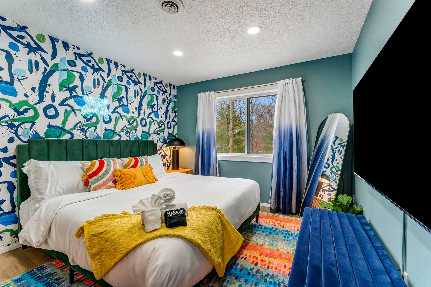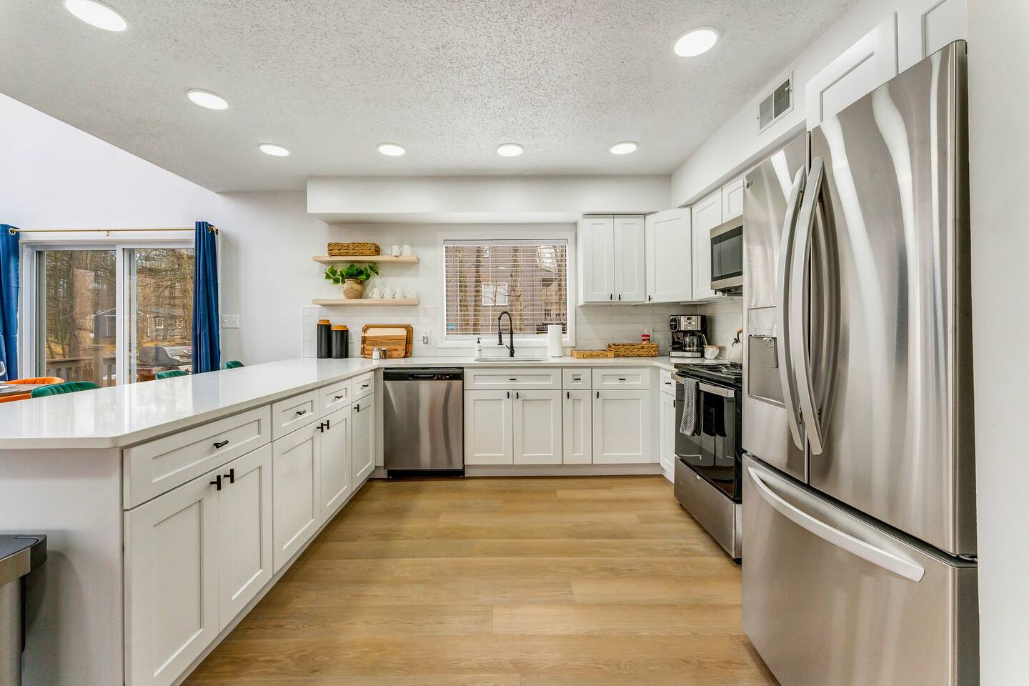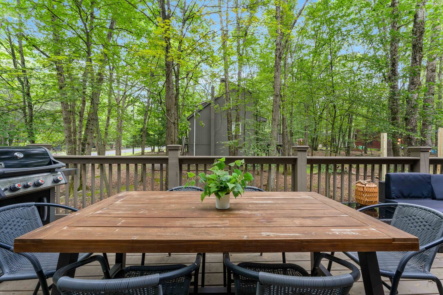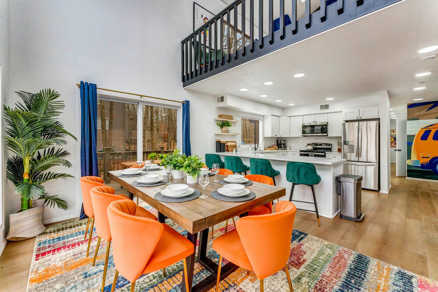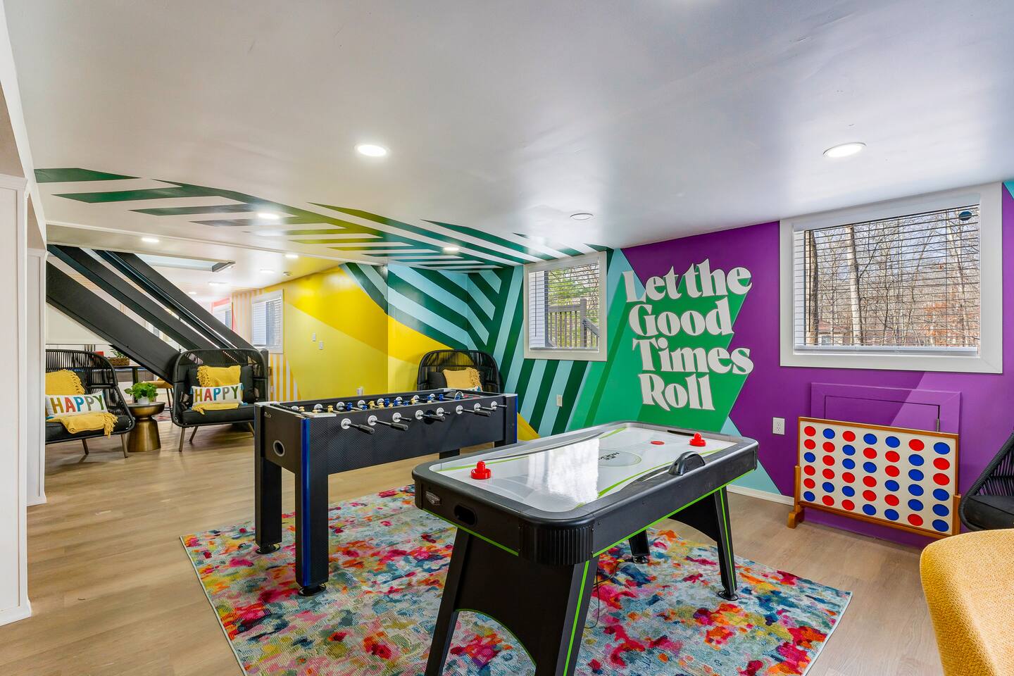**During the summer months (Memorial Day weekend - Labor Day weekend), you will receive amenity badges that allow you to access the following amenities. If you’re staying with us outside of these dates, these amenities will be closed.** ☀ Lakes (with beach access - swimming allowed!) ☀ Pools ☀ Tennis courts ☀ Basketball courts ☀ Volleyball courts ☀ Dog park ☀ Playground areas KEY FEATURES: ☀ 5 beautiful bedrooms; 4 kings & 4 twin beds (2 twin-over-twin bunks) ☀ 3 full, modern bathrooms ☀ New, modern kitchen ☀ HUGE living room with lots of comfy seating & smart TV ☀ Stylish dining room that opens up to the rest of the living space ☀ Super fun game rooms with pool table, poker table, air hockey, & more! ☀ A private MOVIE THEATER with a massive projector screen ☀ A private back deck with a fire pit & outdoor dining ☀ A private pickleball/basketball court right in the backyard! Here Are A Few Kind Words From Our Past Guests: “This was a great place to stay! The morning light through the windows was so beautiful. Overall, just a relaxing experience. The hosts were super responsive whenever I had a question. I would stay again!” - Emily “Sabrina was very accommodating and communicative. the house is beautiful and very comfortable, close to nature hikes.” - Jennifer “This place was lovely! Exactly as pictured! Very clean and excellent host experience!!! I plan to come back again!” - Regina ☆☆ BEDROOMS ☆☆ These 5 bedrooms in this home are truly designed for style & comfort, each with their own smart TV! There are 3 bedrooms on the main level. The master bedroom has a king bed, seating area, and a private ensuite bathroom. The second bedroom has two twin-over-twin bunk beds (4 twin beds total) — each bunk has a 150-pound weight limit. The third bedroom has a king bed. Downstairs, the fourth & fifth bedrooms have 1 king bed in each. ☆☆ BATHROOMS ☆☆ There are 3 full, modern bathrooms throughout this home. On the main floor, the master ensuite bathroom has a sink, toilet, walk-in shower, and soaking tub. Right down the hall, the second bathroom has a sink, toilet, and shower/tub combo. Downstairs, the third bathroom has a sink, toilet, and walk-in shower only. ☆☆ KITCHEN & DINING ☆☆ The new, modern kitchen is located right off of the main living areas, and is loaded with all you'll need during your stay (including a coffee maker & coffee pods). The dining room is right next to the kitchen, with enough seating to comfortably fit 8 more people (+ 4 countertop seats & outdoor dining). This space is truly sleek & stylish! ☆☆ LIVING ROOM ☆☆ In the living room, you’ll be greeted with tall vaulted ceilings, WALLS of windows, skylights, lots of comfy seating & a big smart TV. This is the perfect spot to gather with your friends and family! ☆☆ GAME ROOMS ☆☆ The main game room space is located on the lower level, filled with a pool table/ping pong table combo, shuffleboard, air hockey, foosball, arcade games, Giant Connect 4, a big smart TV, and lots of seating throughout. Such a fun space to provide you with all the entertainment you need during your stay! As you enter the loft, you will find a wonderful surprise of a truly unique poker room, filled with a poker table & a wall of 4 TVs, perfect for watching all of your favorite sports at once! ☆☆ MOVIE THEATER ☆☆ Right next to the game room is your very own, private movie theater! With a huge sectional couch and a HUGE projector screen, this is a DREAM spot to host your movie nights with your friends and family! ★☆ Book Now & Let Us Take Care Of You In The Poconos! ☆★