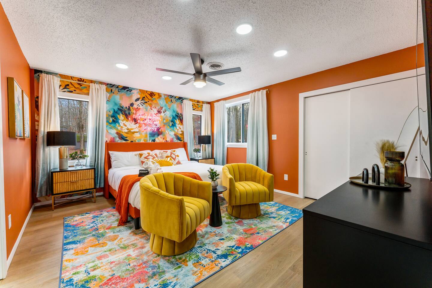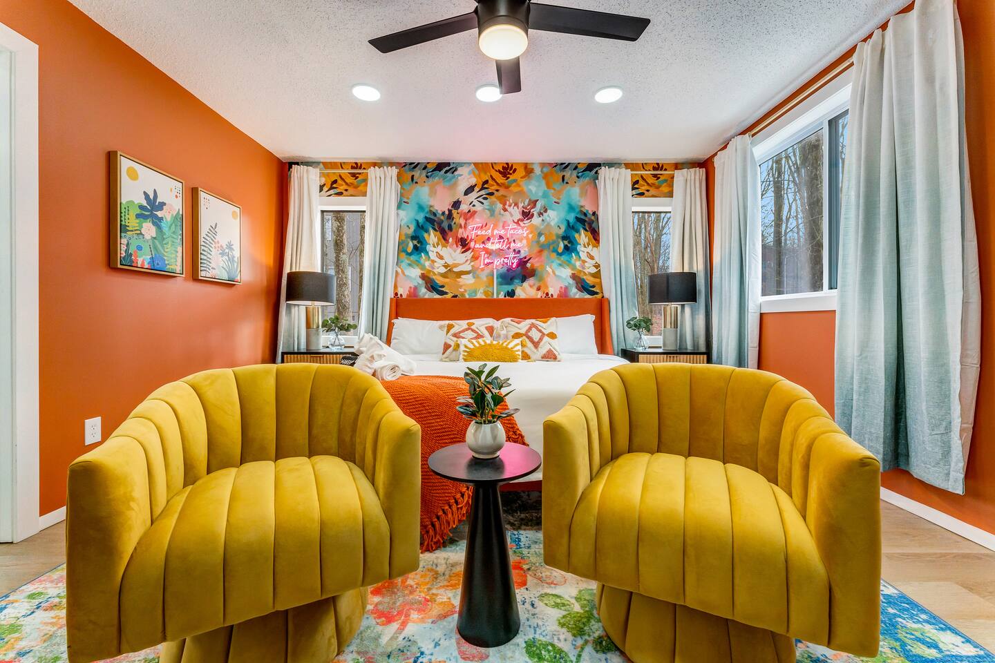 Pet Fee: $50 fee per pet, per night, maximum of 4 pets (vaccination records required). This property includes security features, such as Schlage smart locks and Ring floodlight cameras, for your safety and peace of mind. Our home is situated within a gated community, and it is required for all guests to complete the Guest Registration and Lease Form. It’s a standard procedure aimed at enhancing safety for all residents and guests. Additionally, the HOA strictly enforces a 4-car limit per reservation, and once the reservation has started, cars cannot be switched, so please plan accordingly. Smoking: Smoking or vaping of any kind is strictly prohibited inside the home or on the property. A violation of this policy will result in a minimum $250 fine to cover deep cleaning and odor removal.