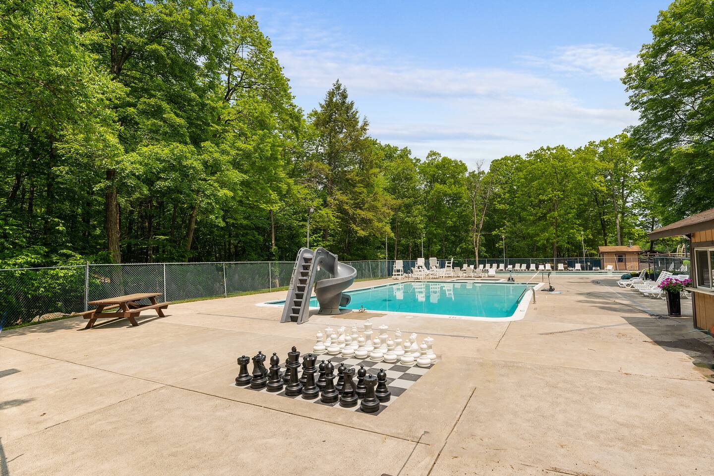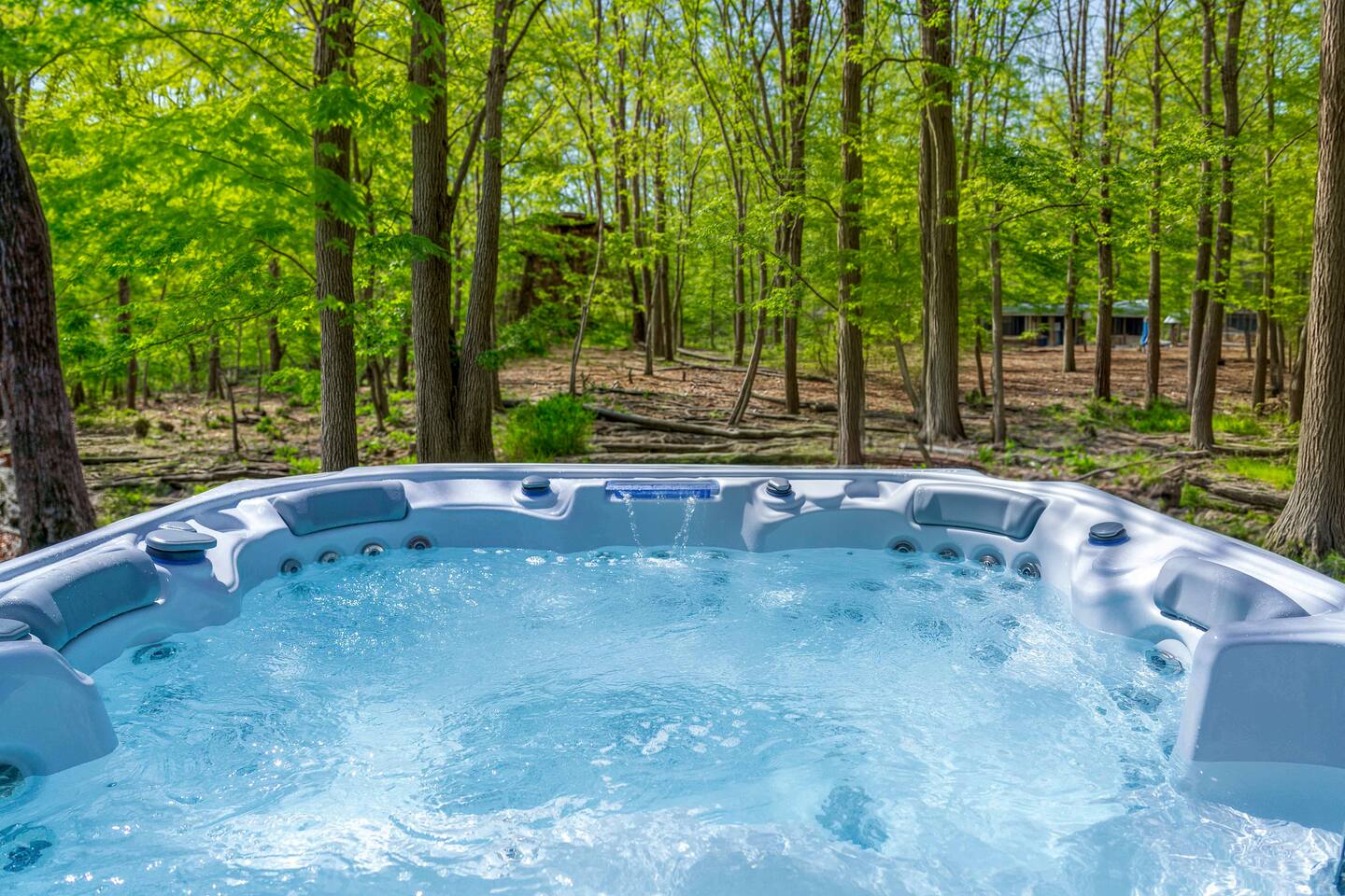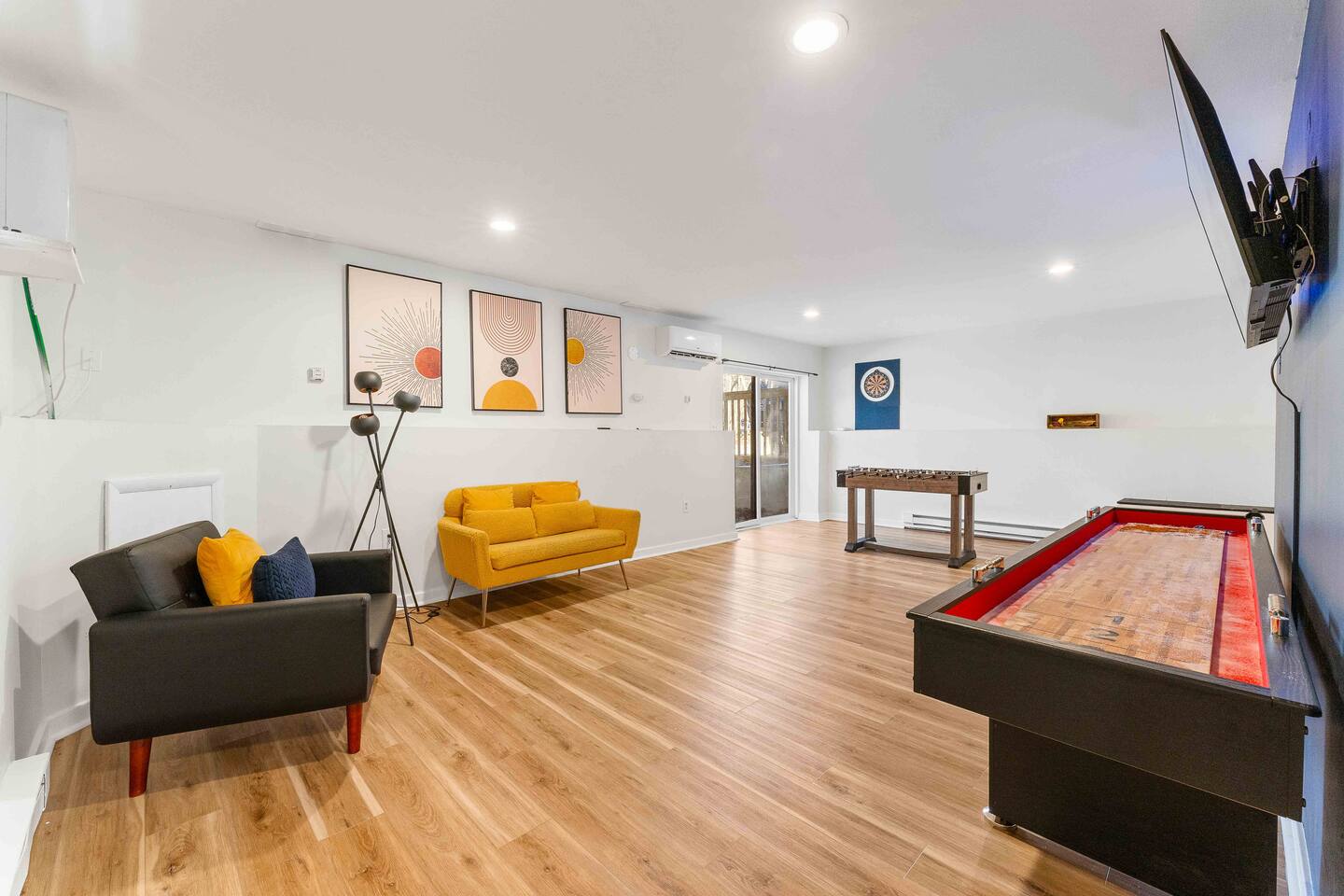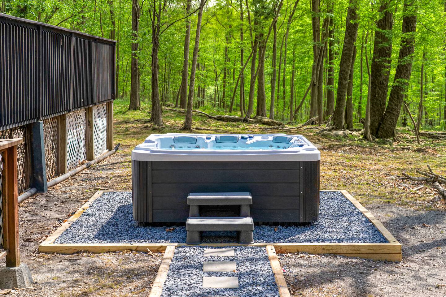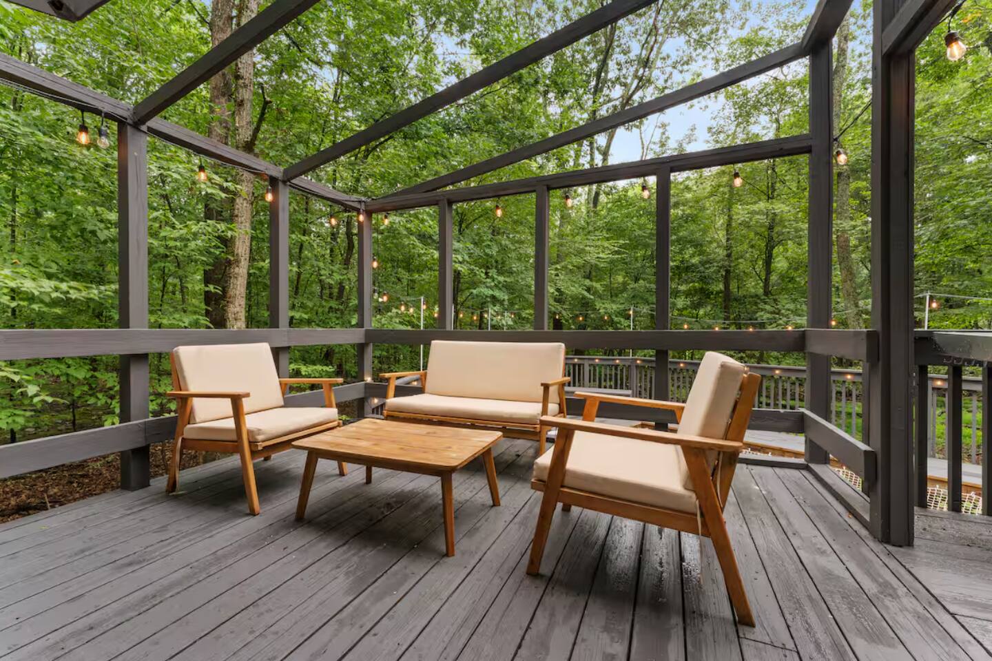 **During the summer months (Memorial Day weekend - Labor Day weekend), you will receive amenity badges that allow you to access the following amenities. If you’re staying with us outside of these dates, these amenities will be closed.** ☀ Lakes (with beach access - swimming allowed!) ☀ Pools ☀ Tennis courts ☀ Basketball courts ☀ Volleyball courts ☀ Dog park ☀ Playground areas KEY FEATURES: ☀ 5 gorgeous bedrooms; 4 kings, 1 full, and 2 twin beds (including one full-over-twin trundle) ☀ 3 full bathrooms; 1 on each floor! ☀ Modern kitchen ☀ Open, lofty living room with tall ceilings & comfy seating ☀ Beautiful dining area with direct access to the living room & back deck ☀ Private sunroom lounge chairs ☀ Stunning wraparound deck with gorgeous views of the surrounding forest & hot tub ☀ Massive net built into the deck to provide an immersive hammock experience ☀ Amenities loaded all around the outdoor space Here Are A Few Kind Words From Our Past Guests: “This was a great place to stay! The morning light through the windows was so beautiful. Overall, just a relaxing experience. The hosts were super responsive whenever I had a question. I would stay again!” - Emily “Sabrina was very accommodating and communicative. the house is beautiful and very comfortable, close to nature hikes.” - Jennifer “This place was lovely! Exactly as pictured! Very clean and excellent host experience!!! I plan to come back again!” - Regina ☆☆ BEDROOMS ☆☆ Right off of the game room on the bottom floor is a bedroom with a king bed & ensuite bathroom. Right across the hall is a second bedroom with a twin bed + a full-over-twin trundle. The top floor is filled with the remaining three bedrooms, each with king beds & gorgeous views of the Poconos forest. ☆☆ BATHROOMS ☆☆ Each floor has its own bathroom! On the bottom floor, the king bedroom has its own ensuite. The main level has a full common bathroom that is shared with the living spaces & kitchen. The top level has another full bathroom that is shared between all 3 remaining bedrooms. ☆☆ KITCHEN & DINING ☆☆ Beautiful, completely remodeled space! Modern appliances and open concept that flows into the dining room, with direct access to both the living space & out onto the deck. ☆☆ LIVING ROOM ☆☆ STUNNING central living room! Opens up right into the rest of the house, with high vaulted ceilings and beautiful modern design, coupled with the original cabin-charm of this house. Comfy seating, a smart TV, and lots of natural light pouring in, you will not want to leave this space! Right downstairs is an additional bonus lounge! With games (foosball and shuffleboard), more comfy seating, and another smart TV. This is such a unique space that you can enjoy under the snow falling on the lofty skylights, or as the sun beams shine through the walls of windows, no matter the season! ☆☆ OUTDOOR SPACE ☆☆ This is an outdoor space unlike any other in the Poconos! HUGE deck, tons of seating all around, lounge seating inside the sunroom, and a MASSIVE built-in net on the lower level of the deck, the provide you a fully immersive hammock experience as you enjoy the serene surrounding nature and listen to the peaceful sounds of the nearby running creek! Right down the steps from the deck, there is a private hot tub that backs up to the serene woodlands. Along with the peaceful setting of this home, you will also be able to enjoy grilling on the outdoor BBQ, cozying up next to the fire pit (propane), and exploring all around the private serenity of this home, as it's located at the end of a cul-de-sac with no other homes behind it! ★☆ Book Now & Let Us Take Care Of You In The Poconos! ☆★