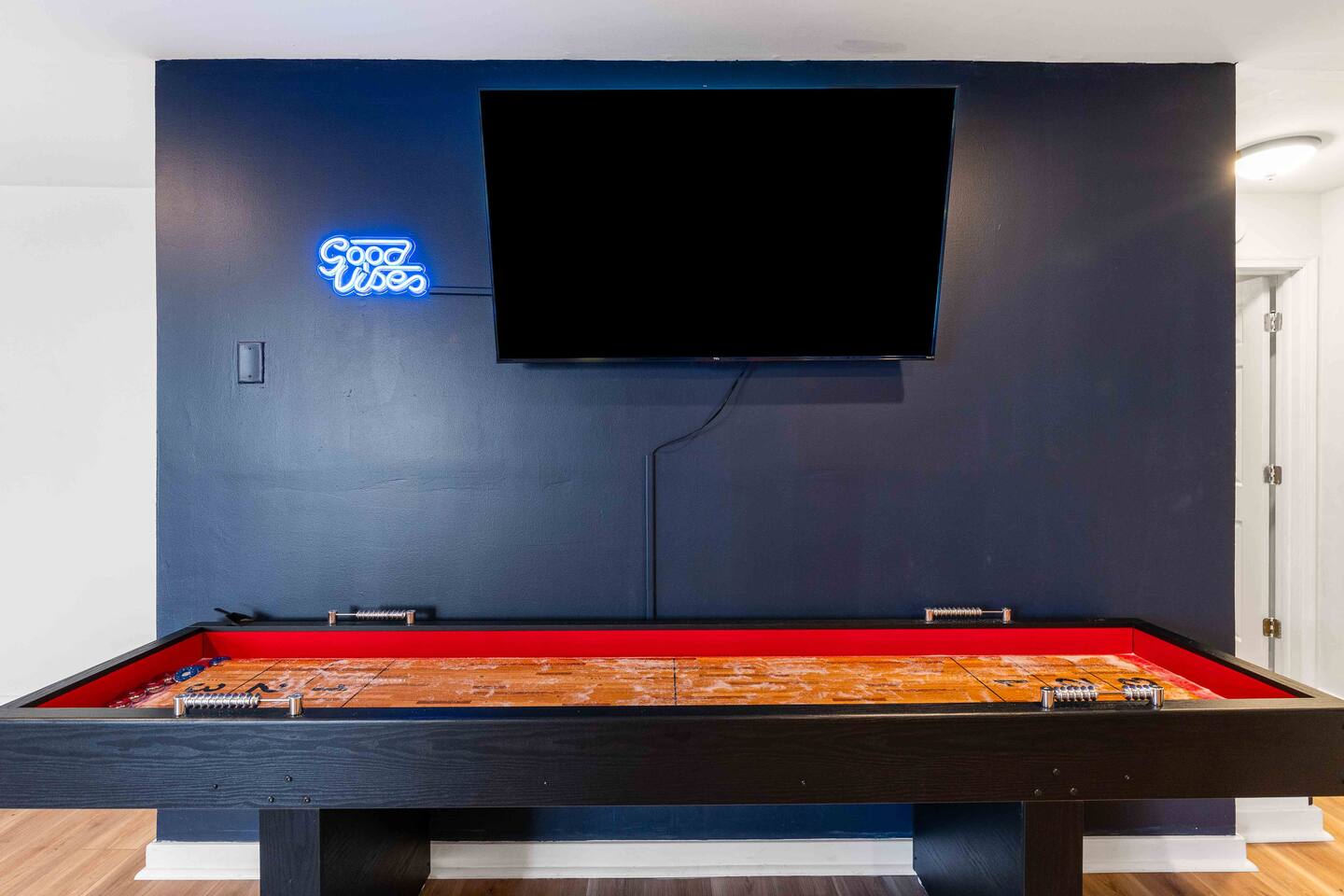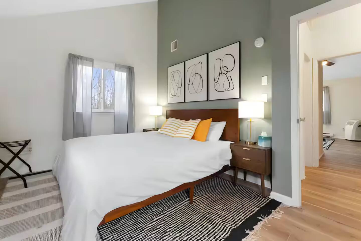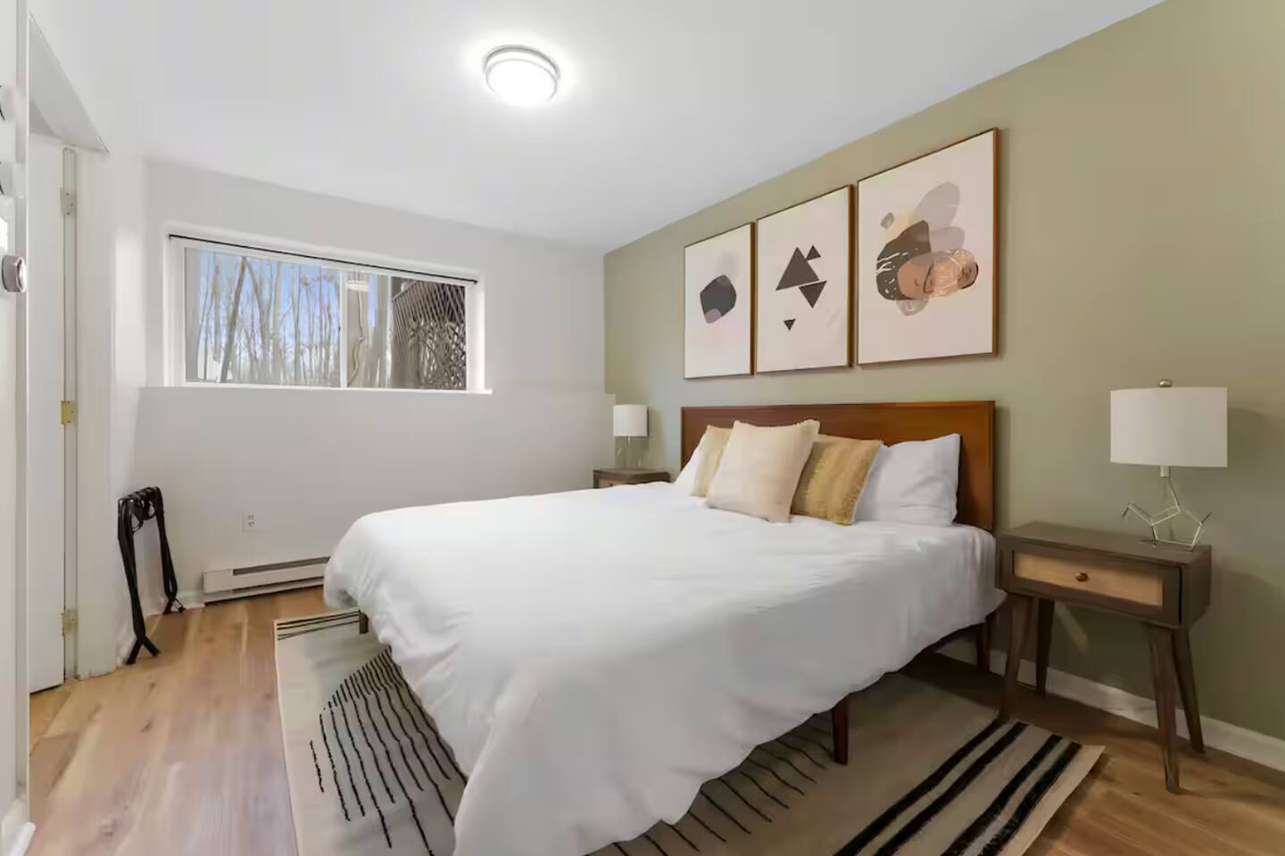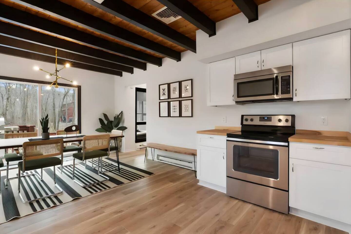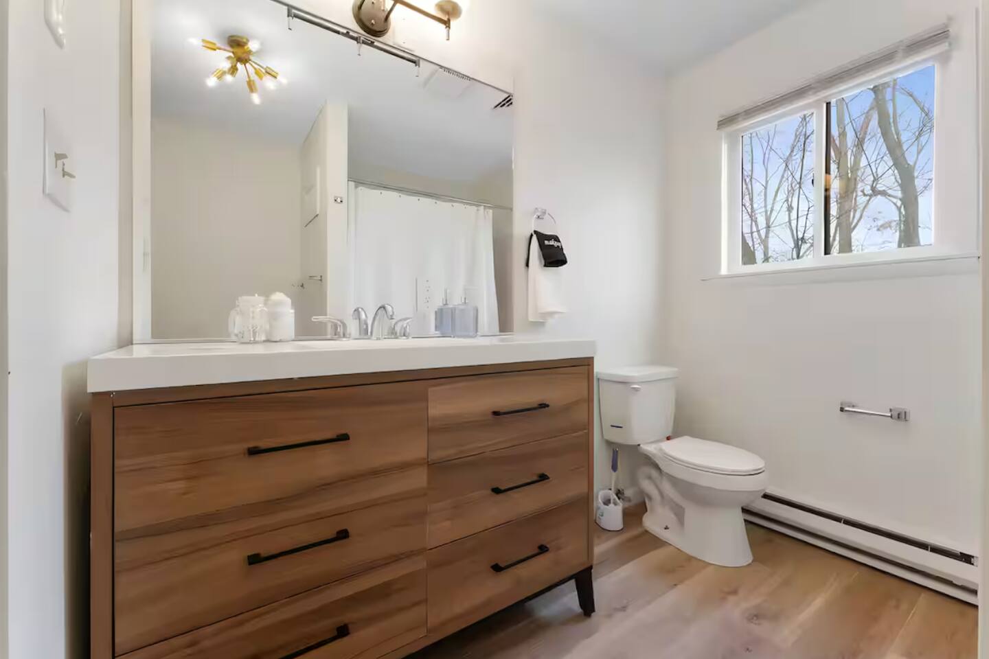 **During the summer months (Memorial Day weekend - Labor Day weekend), you will receive amenity badges that allow you to access the following amenities. If you’re staying with us outside of these dates, these amenities will be closed.** ☀ Lakes (with beach access - swimming allowed!) ☀ Pools ☀ Tennis courts ☀ Basketball courts ☀ Volleyball courts ☀ Dog park ☀ Playground areas KEY FEATURES: ☀ 5 gorgeous bedrooms; 4 kings, 1 full, and 2 twin beds (including one full-over-twin trundle) ☀ 3 full bathrooms; 1 on each floor! ☀ Modern kitchen ☀ Open, lofty living room with tall ceilings & comfy seating ☀ Beautiful dining area with direct access to the living room & back deck ☀ Private sunroom lounge chairs ☀ Stunning wraparound deck with gorgeous views of the surrounding forest & hot tub ☀ Massive net built into the deck to provide an immersive hammock experience ☀ Amenities loaded all around the outdoor space Here Are A Few Kind Words From Our Past Guests: “This was a great place to stay! The morning light through the windows was so beautiful. Overall, just a relaxing experience. The hosts were super responsive whenever I had a question. I would stay again!” - Emily “Sabrina was very accommodating and communicative. the house is beautiful and very comfortable, close to nature hikes.” - Jennifer “This place was lovely! Exactly as pictured! Very clean and excellent host experience!!! I plan to come back again!” - Regina ☆☆ BEDROOMS ☆☆ Right off of the game room on the bottom floor is a bedroom with a king bed & ensuite bathroom. Right across the hall is a second bedroom with a twin bed + a full-over-twin trundle. The top floor is filled with the remaining three bedrooms, each with king beds & gorgeous views of the Poconos forest. ☆☆ BATHROOMS ☆☆ Each floor has its own bathroom! On the bottom floor, the king bedroom has its own ensuite. The main level has a full common bathroom that is shared with the living spaces & kitchen. The top level has another full bathroom that is shared between all 3 remaining bedrooms. ☆☆ KITCHEN & DINING ☆☆ Beautiful, completely remodeled space! Modern appliances and open concept that flows into the dining room, with direct access to both the living space & out onto the deck. ☆☆ LIVING ROOM ☆☆ STUNNING central living room! Opens up right into the rest of the house, with high vaulted ceilings and beautiful modern design, coupled with the original cabin-charm of this house. Comfy seating, a smart TV, and lots of natural light pouring in, you will not want to leave this space! Right downstairs is an additional bonus lounge! With games (foosball and shuffleboard), more comfy seating, and another smart TV. This is such a unique space that you can enjoy under the snow falling on the lofty skylights, or as the sun beams shine through the walls of windows, no matter the season! ☆☆ OUTDOOR SPACE ☆☆ This is an outdoor space unlike any other in the Poconos! HUGE deck, tons of seating all around, lounge seating inside the sunroom, and a MASSIVE built-in net on the lower level of the deck, the provide you a fully immersive hammock experience as you enjoy the serene surrounding nature and listen to the peaceful sounds of the nearby running creek! Right down the steps from the deck, there is a private hot tub that backs up to the serene woodlands. Along with the peaceful setting of this home, you will also be able to enjoy grilling on the outdoor BBQ, cozying up next to the fire pit (propane), and exploring all around the private serenity of this home, as it's located at the end of a cul-de-sac with no other homes behind it! ★☆ Book Now & Let Us Take Care Of You In The Poconos! ☆★
