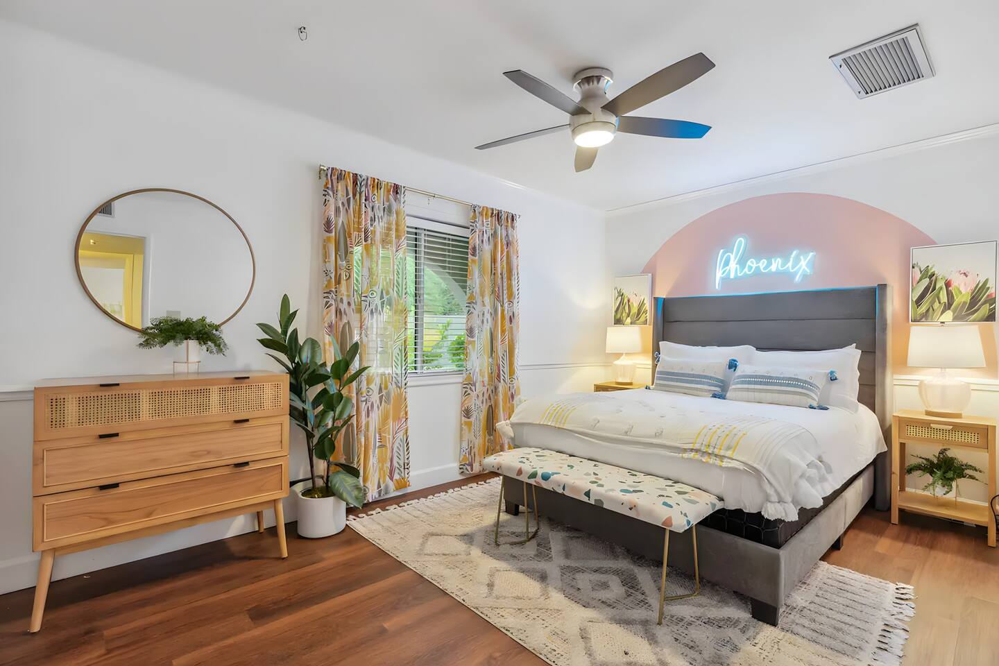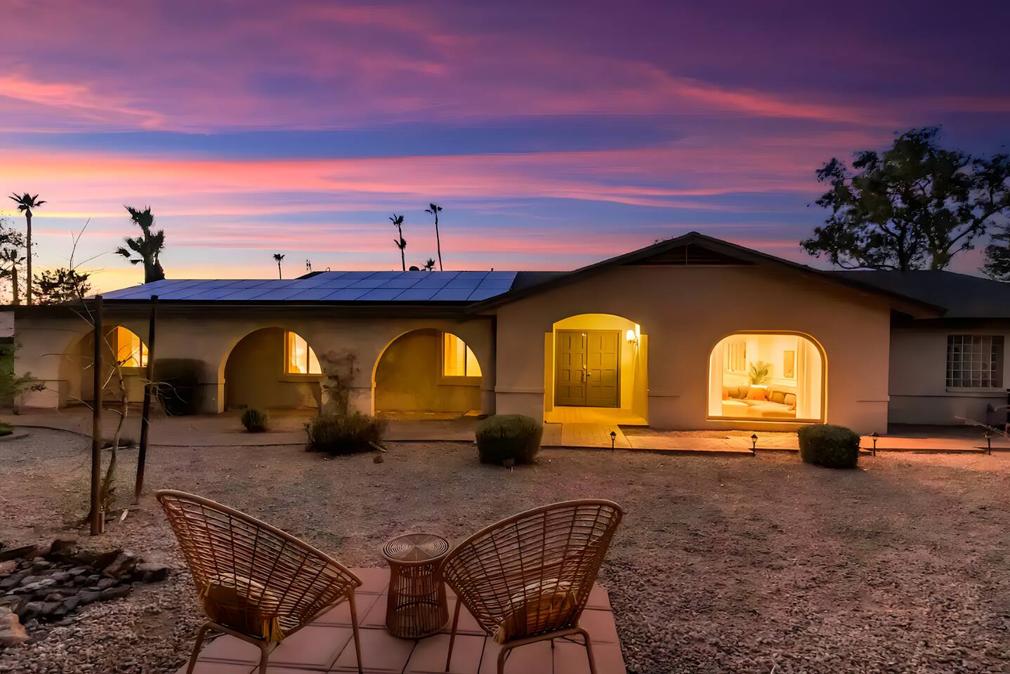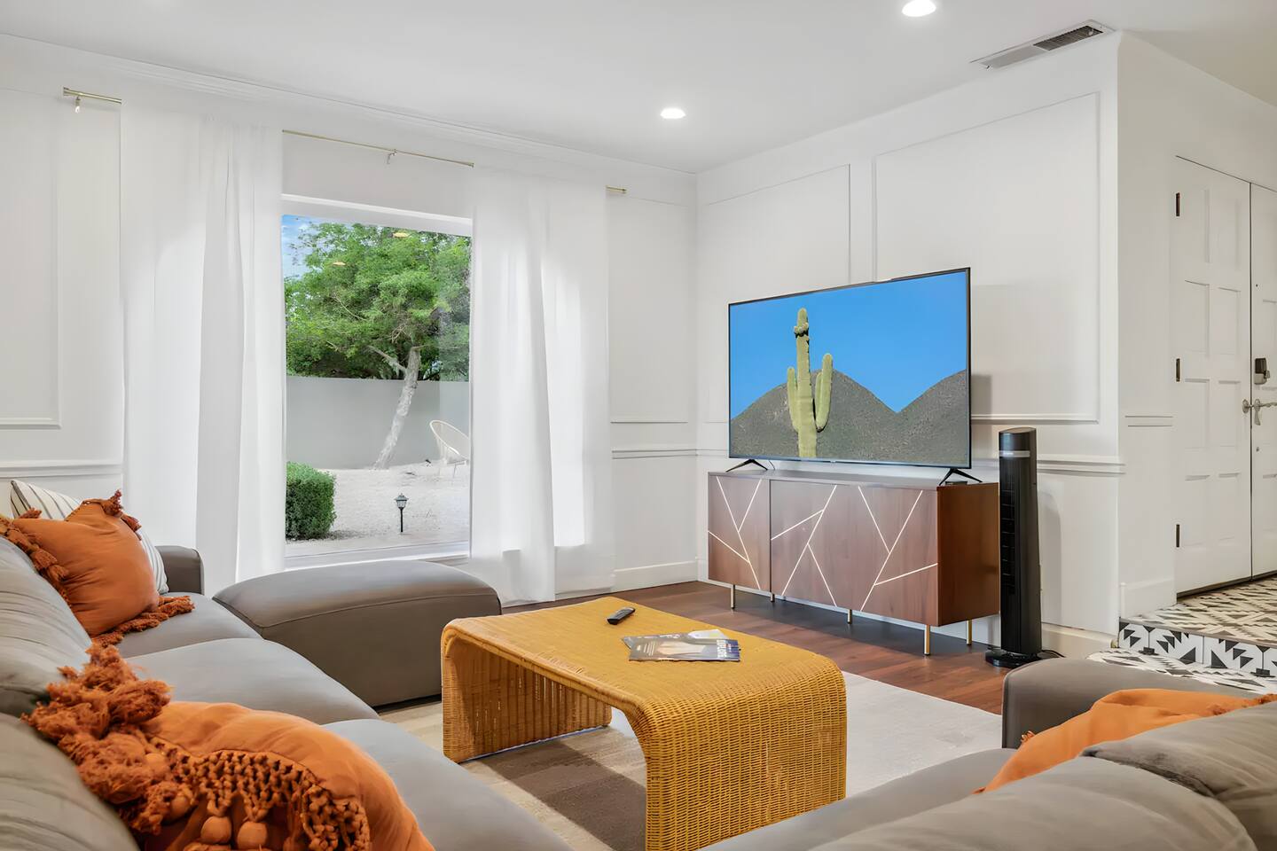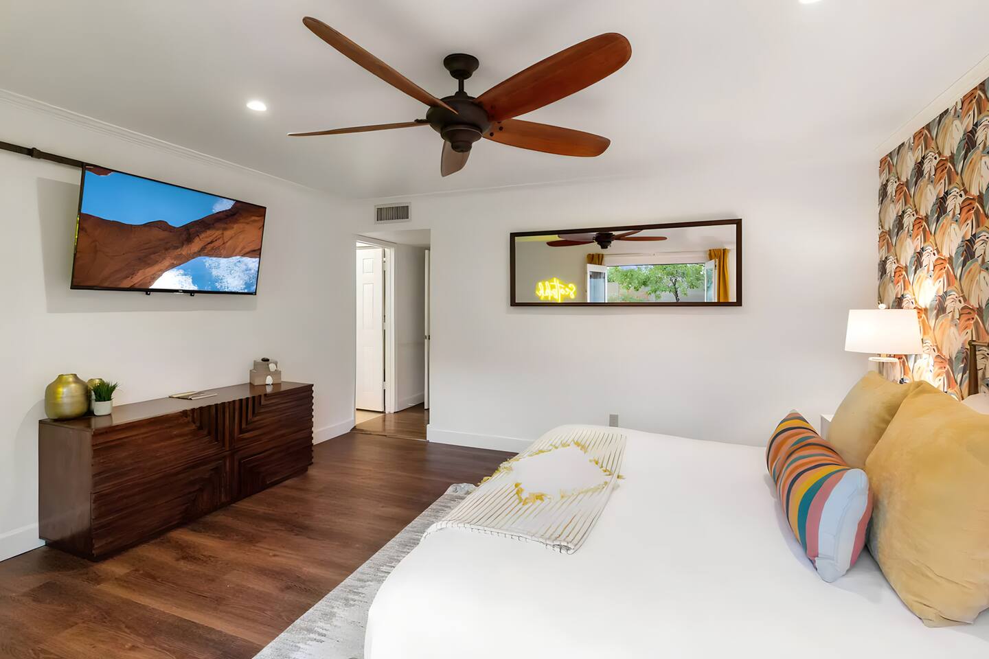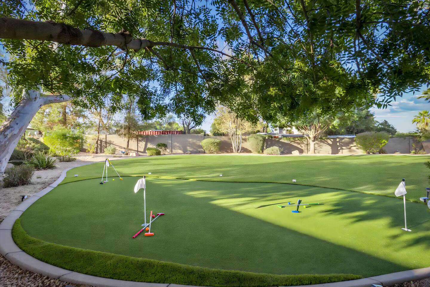 5 bedrooms, 3 baths. Amazing backyard - perfect for entertaining! Hot tub seats 8 comfortably. Heated pool (safety gate around the back patio before entering the pool area), grill with bar, wood-burning fire pit, outdoor seating, fun for kids. Granite, wood floors, fireplace, front courtyard, french doors, washer/dryer. The pool & yard are lit at night. 4 smart TV’s. Super clean - feels like a hotel home.