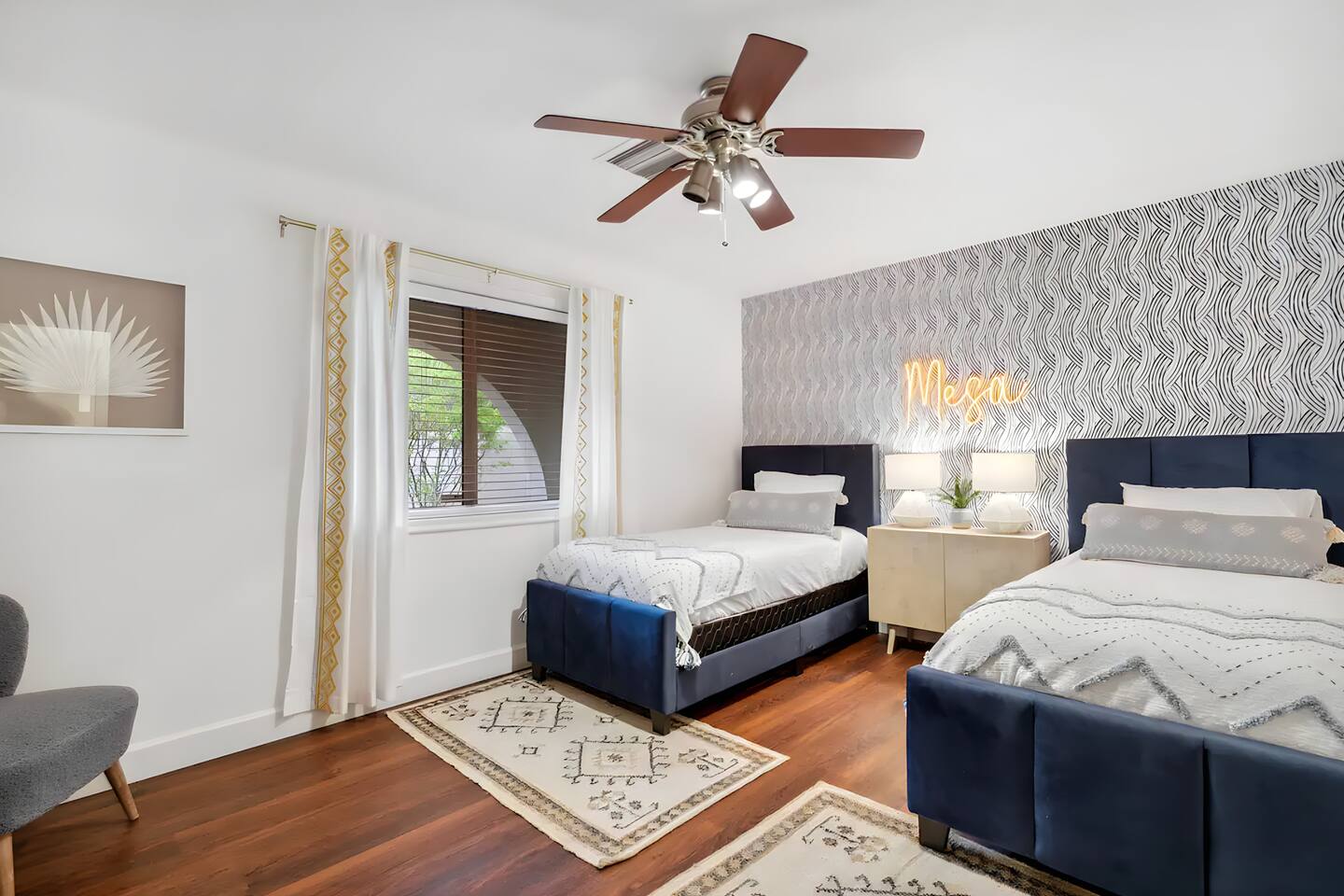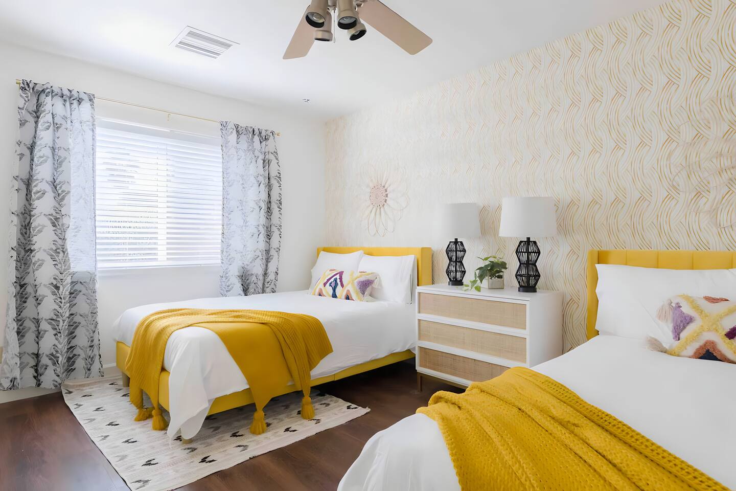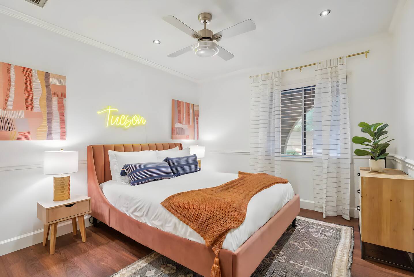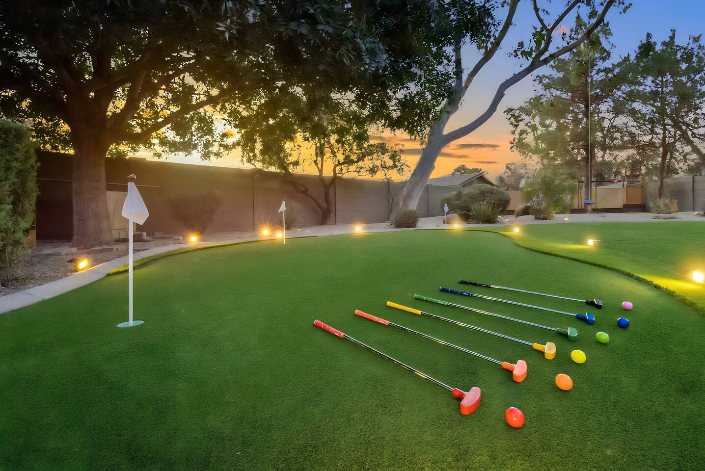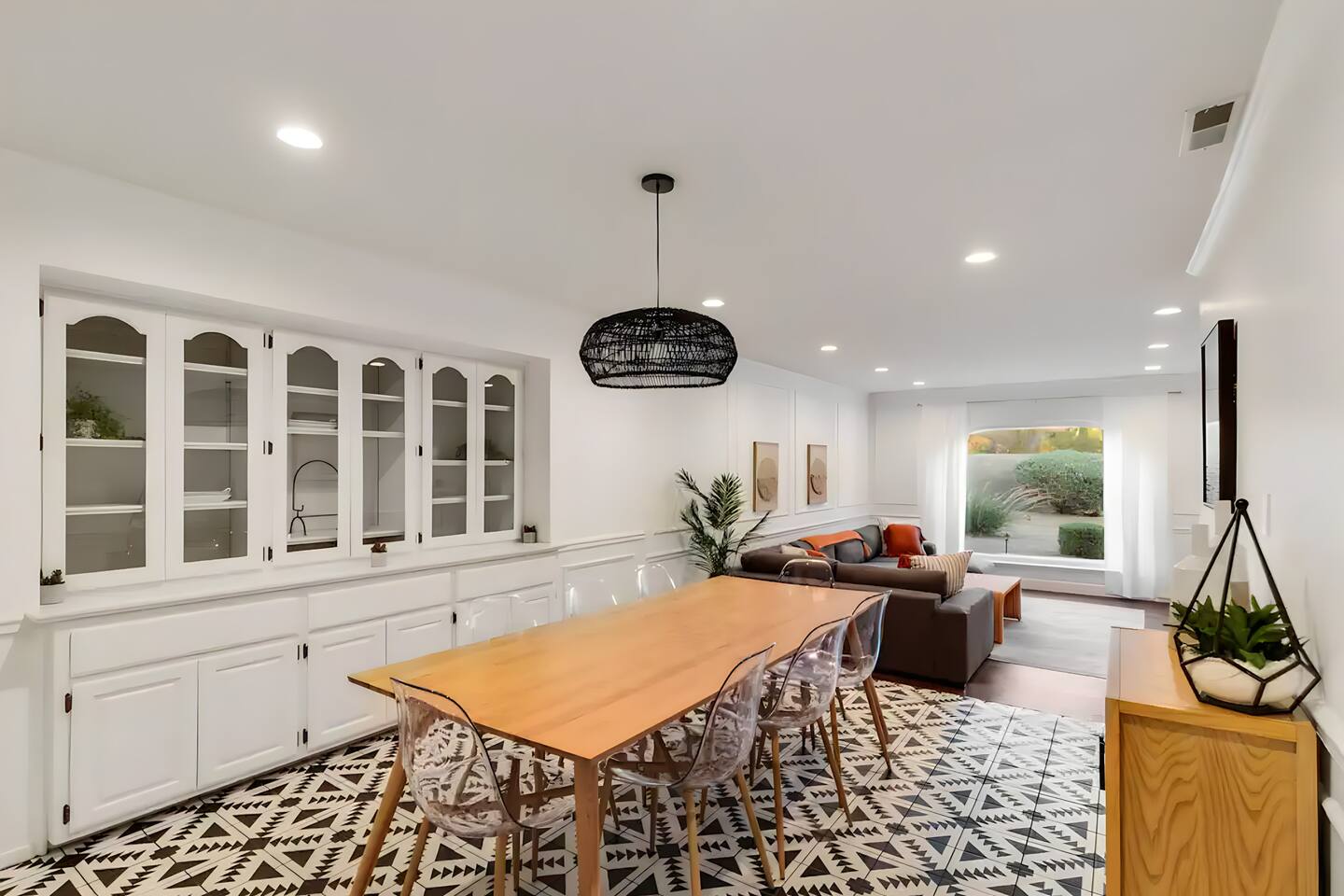 5 bedrooms, 3 baths. Amazing backyard - perfect for entertaining! Hot tub seats 8 comfortably. Heated pool (safety gate around the back patio before entering the pool area), grill with bar, wood-burning fire pit, outdoor seating, fun for kids. Granite, wood floors, fireplace, front courtyard, french doors, washer/dryer. The pool & yard are lit at night. 4 smart TV’s. Super clean - feels like a hotel home.
