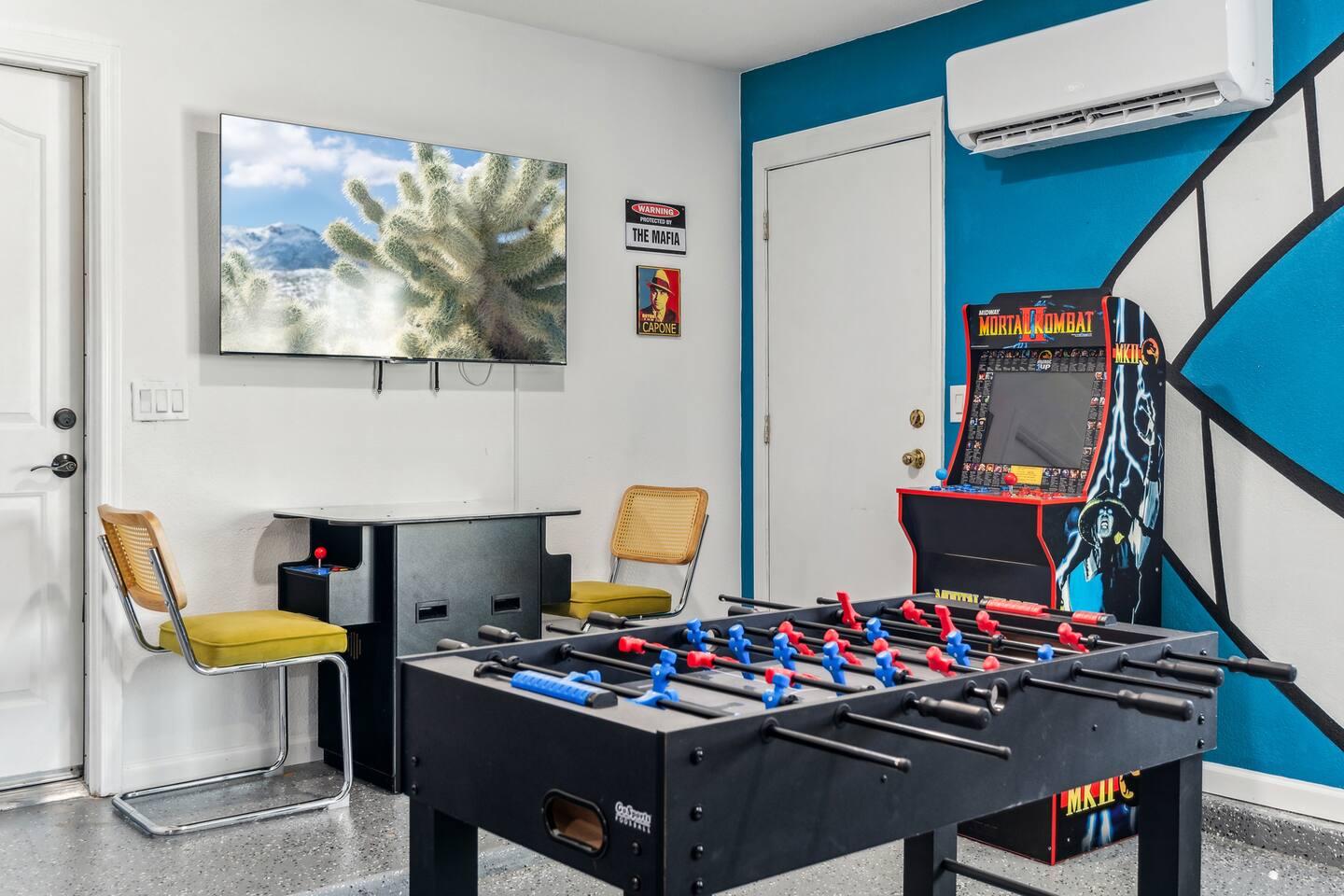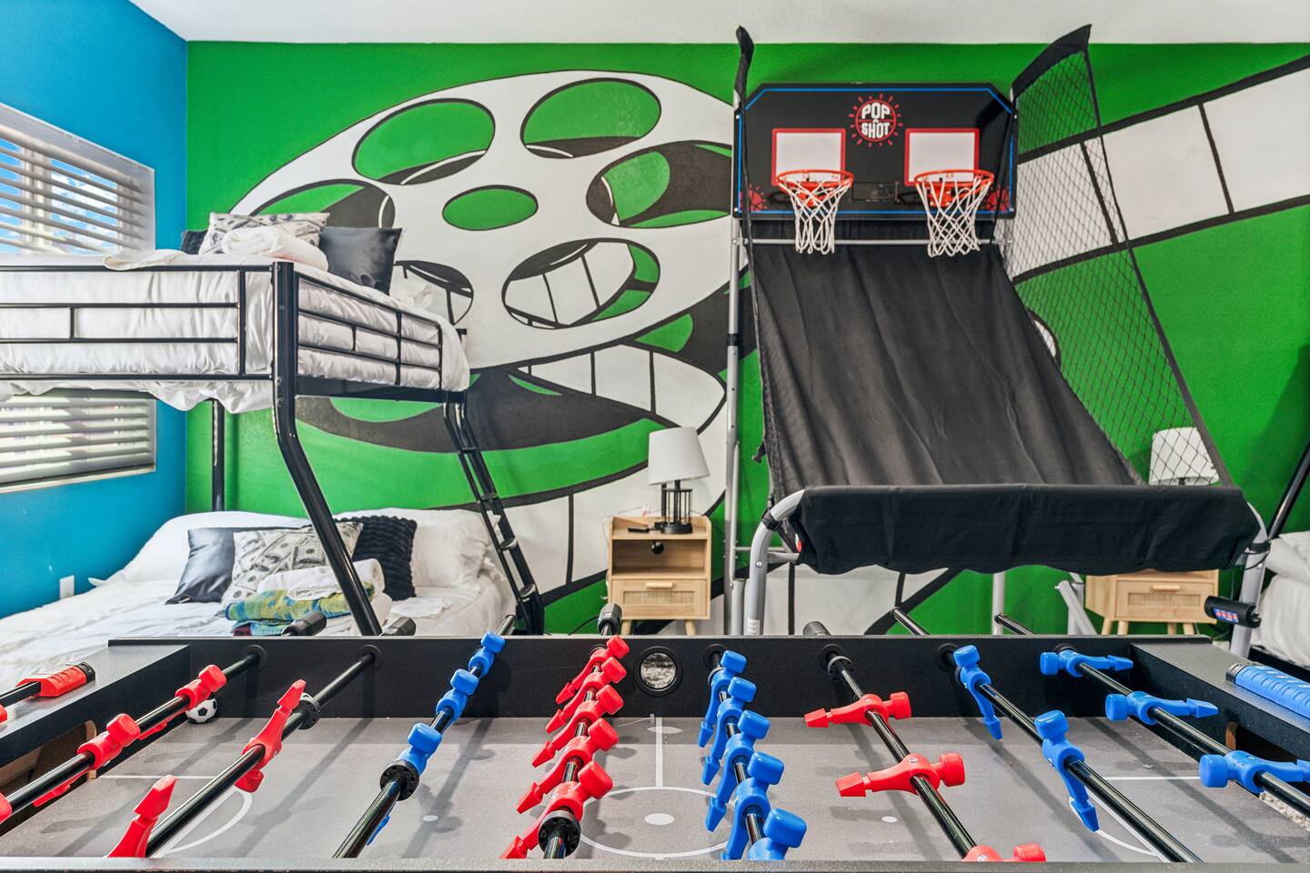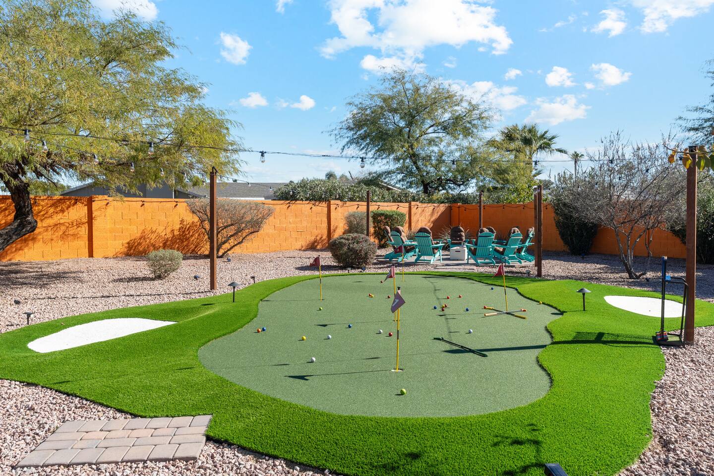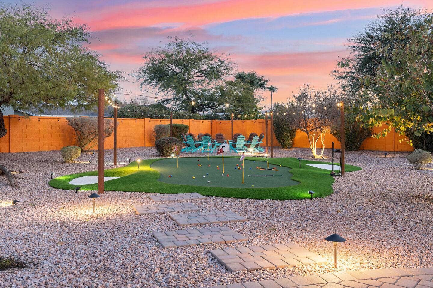 KEY FEATURES: ☀ 5 beautiful bedrooms; 3 kings, 4 fulls, & 4 twin beds ☀ 2.5 modern bathrooms ☀ Modern kitchen with new, stainless steel appliances ☀ Open living room with lots of comfy seating & smart TV ☀ Dining room with seating to comfortably accommodate 14 (+ outdoor dining options) ☀ Bright, vibrant game room with pool table! ☀ UNBELIEVABLE backyard; heated pool, hot tub, fire pit, mini golf, basketball court, & much more! Here Are A Few Kind Words From Our Past Guests: “This was a great place to stay! The morning light through the windows was so beautiful. Overall, just a relaxing experience. The hosts were super responsive whenever I had a question. I would stay again!” - Emily “Sabrina was very accommodating and communicative. the house is beautiful and very comfortable, close to nature hikes.” - Jennifer “This place was lovely! Exactly as pictured! Very clean and excellent host experience!!! I plan to come back again!” - Regina ☆☆ BEDROOMS ☆☆ You'll find 5 bedrooms throughout this home. Downstairs, there is a FUN filled bunk bedroom, with two twin-over-full bunk beds, smart TV, shuffleboard, and arcade game. Upstairs are the four remaining bedrooms. Three bedrooms have one king bed & a smart TV in each, while the fifth bedroom has two twin-over-full bunk beds & an private ensuite bathroom. ☆☆ BATHROOMS ☆☆ There are two and a half modern bathrooms throughout the home. Downstairs, the half bathroom has a sink & toilet only. Upstairs, the private master ensuite has two sinks, a toilet, walk-in shower, and a soaking tub. The hallway bathroom upstairs also has two sinks, a toilet, & shower/tub combo. ☆☆ KITCHEN & DINING ☆☆ The modern kitchen is located right off of the main living areas, and is loaded with all new stainless steel appliances & a coffee station (including a Keurig & coffee pods). The dining room is right next to the kitchen, with enough seating to comfortably fit 14 people (between two dining tables), + lots of room for outdoor dining! ☆☆ LIVING ROOM ☆☆ In the living room, you’ll be greeted with lots of comfy seating, a big smart TV, and a beautiful, bright design that is carried throughout the rest of the home. This is the perfect spot to host your movie nights & games with your friends and family! ☆☆ GAME ROOM ☆☆ Right next to the main living areas, you'll find the pool table room, along with a comfy sofa & smart TV. It will take your breath away as you enter this home! ☆☆ OUTDOOR SPACE ☆☆ This backyard is everything you could ask for, and more! ☀ Heated pool ☀ Hot tub ☀ Mini golf ☀ Basketball court ☀ Pickleball court ☀ Bowling ☀ Ping pong ☀ Giant chess ☀ Frisbee golf ☀ Fire pit ☀ Corn hole ☀ Jungle gym ☀ Giant Jenga ☀ BBQ grill ☀ Sun bathing chairs ☀ Lounge seating ☀ Covered outdoor dining There is so much to do here, that all of your friends & family will be thoroughly entertained throughout your entire stay. No matter the season, this backyard has it all. Book your stay with us today and you will NOT be disappointed. Get ready for a vacation you will never forget! ★☆ Book Now & Let Us Take Care Of You In Scottsdale! ☆★