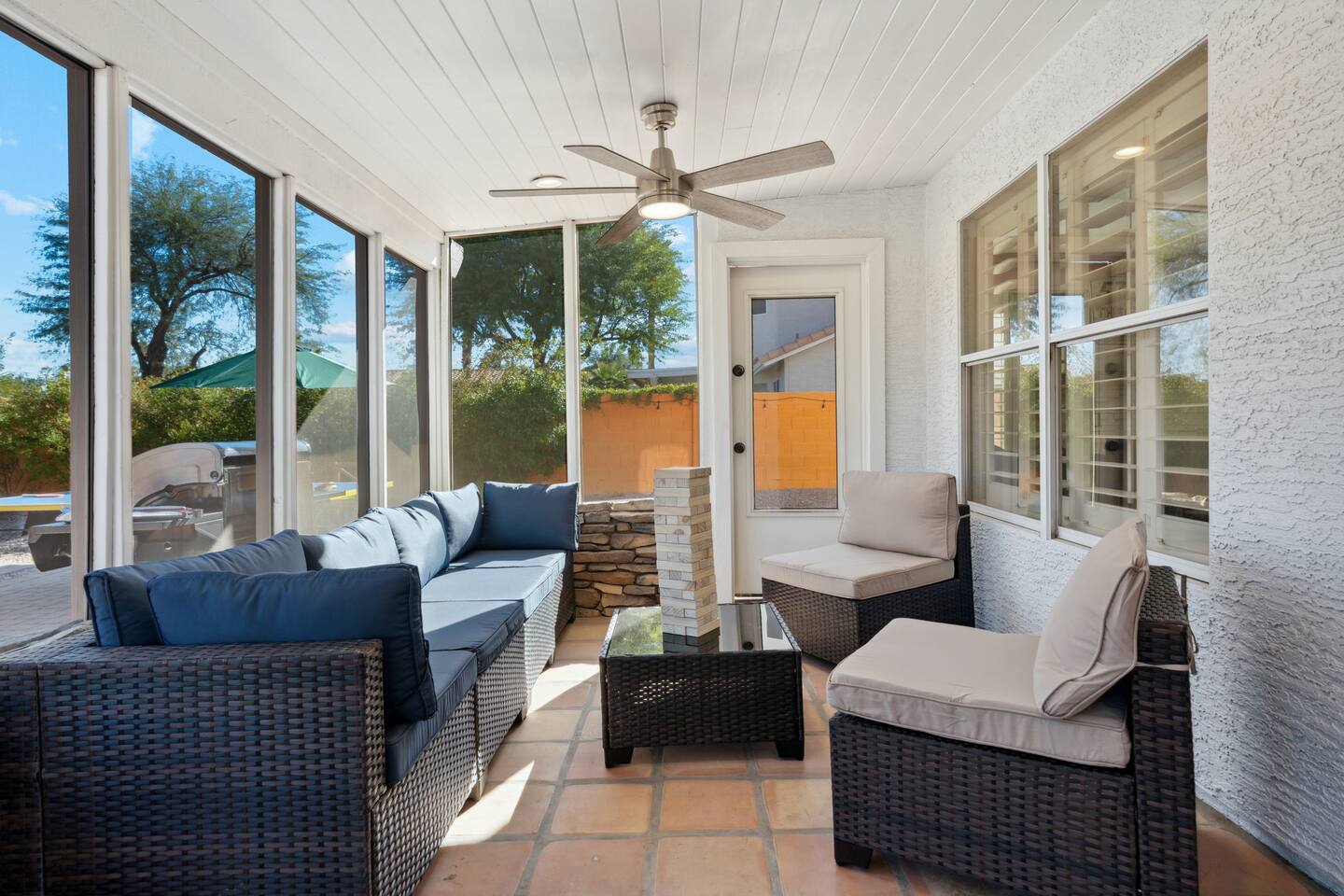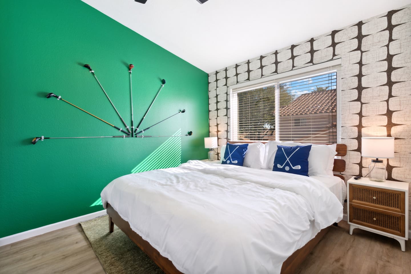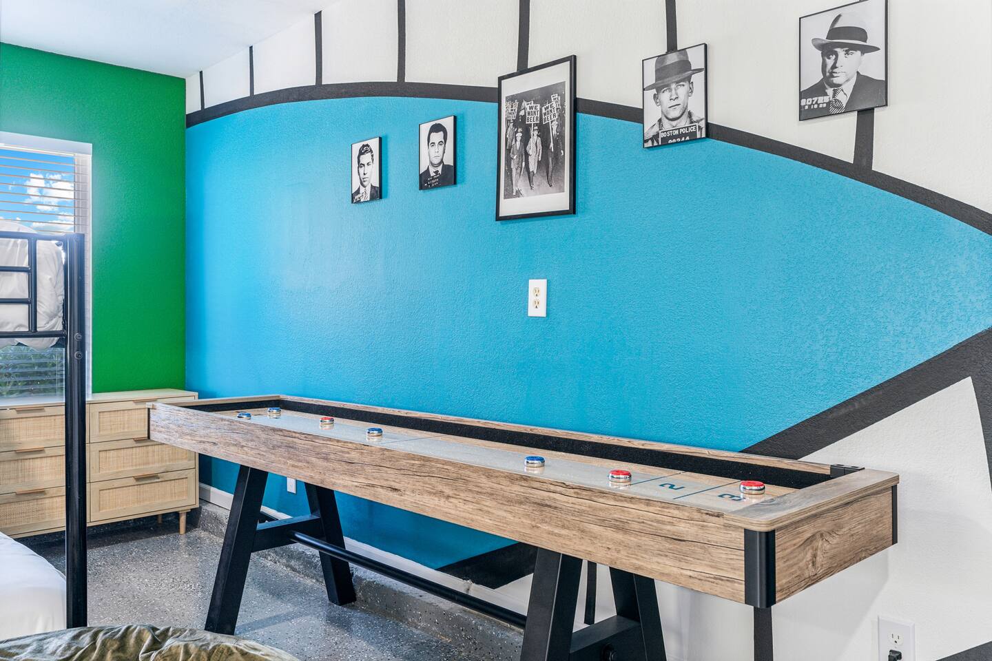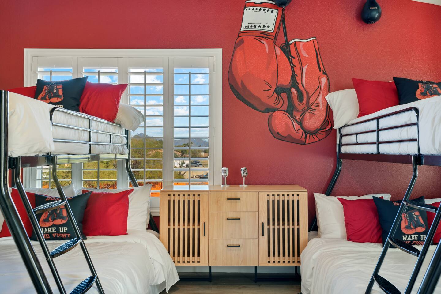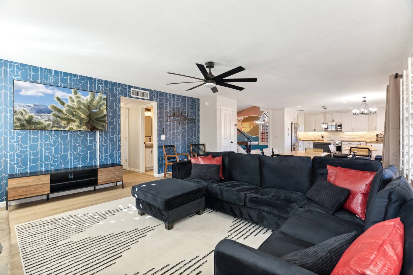 KEY FEATURES: ☀ 5 beautiful bedrooms; 3 kings, 4 fulls, & 4 twin beds ☀ 2.5 modern bathrooms ☀ Modern kitchen with new, stainless steel appliances ☀ Open living room with lots of comfy seating & smart TV ☀ Dining room with seating to comfortably accommodate 14 (+ outdoor dining options) ☀ Bright, vibrant game room with pool table! ☀ UNBELIEVABLE backyard; heated pool, hot tub, fire pit, mini golf, basketball court, & much more! Here Are A Few Kind Words From Our Past Guests: “This was a great place to stay! The morning light through the windows was so beautiful. Overall, just a relaxing experience. The hosts were super responsive whenever I had a question. I would stay again!” - Emily “Sabrina was very accommodating and communicative. the house is beautiful and very comfortable, close to nature hikes.” - Jennifer “This place was lovely! Exactly as pictured! Very clean and excellent host experience!!! I plan to come back again!” - Regina ☆☆ BEDROOMS ☆☆ You'll find 5 bedrooms throughout this home. Downstairs, there is a FUN filled bunk bedroom, with two twin-over-full bunk beds, smart TV, shuffleboard, and arcade game. Upstairs are the four remaining bedrooms. Three bedrooms have one king bed & a smart TV in each, while the fifth bedroom has two twin-over-full bunk beds & an private ensuite bathroom. ☆☆ BATHROOMS ☆☆ There are two and a half modern bathrooms throughout the home. Downstairs, the half bathroom has a sink & toilet only. Upstairs, the private master ensuite has two sinks, a toilet, walk-in shower, and a soaking tub. The hallway bathroom upstairs also has two sinks, a toilet, & shower/tub combo. ☆☆ KITCHEN & DINING ☆☆ The modern kitchen is located right off of the main living areas, and is loaded with all new stainless steel appliances & a coffee station (including a Keurig & coffee pods). The dining room is right next to the kitchen, with enough seating to comfortably fit 14 people (between two dining tables), + lots of room for outdoor dining! ☆☆ LIVING ROOM ☆☆ In the living room, you’ll be greeted with lots of comfy seating, a big smart TV, and a beautiful, bright design that is carried throughout the rest of the home. This is the perfect spot to host your movie nights & games with your friends and family! ☆☆ GAME ROOM ☆☆ Right next to the main living areas, you'll find the pool table room, along with a comfy sofa & smart TV. It will take your breath away as you enter this home! ☆☆ OUTDOOR SPACE ☆☆ This backyard is everything you could ask for, and more! ☀ Heated pool ☀ Hot tub ☀ Mini golf ☀ Basketball court ☀ Pickleball court ☀ Bowling ☀ Ping pong ☀ Giant chess ☀ Frisbee golf ☀ Fire pit ☀ Corn hole ☀ Jungle gym ☀ Giant Jenga ☀ BBQ grill ☀ Sun bathing chairs ☀ Lounge seating ☀ Covered outdoor dining There is so much to do here, that all of your friends & family will be thoroughly entertained throughout your entire stay. No matter the season, this backyard has it all. Book your stay with us today and you will NOT be disappointed. Get ready for a vacation you will never forget! ★☆ Book Now & Let Us Take Care Of You In Scottsdale! ☆★