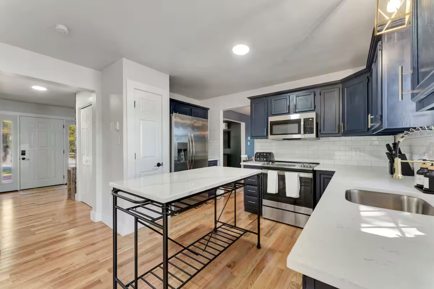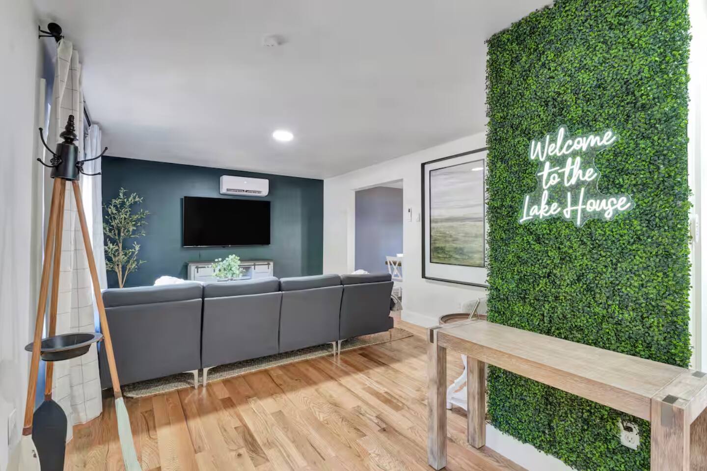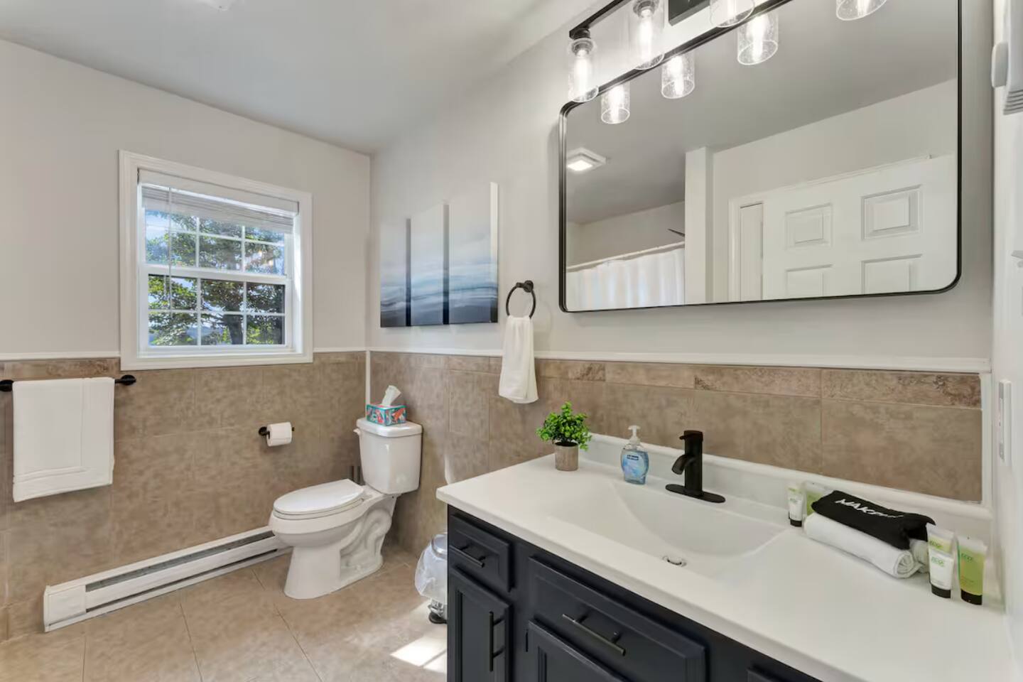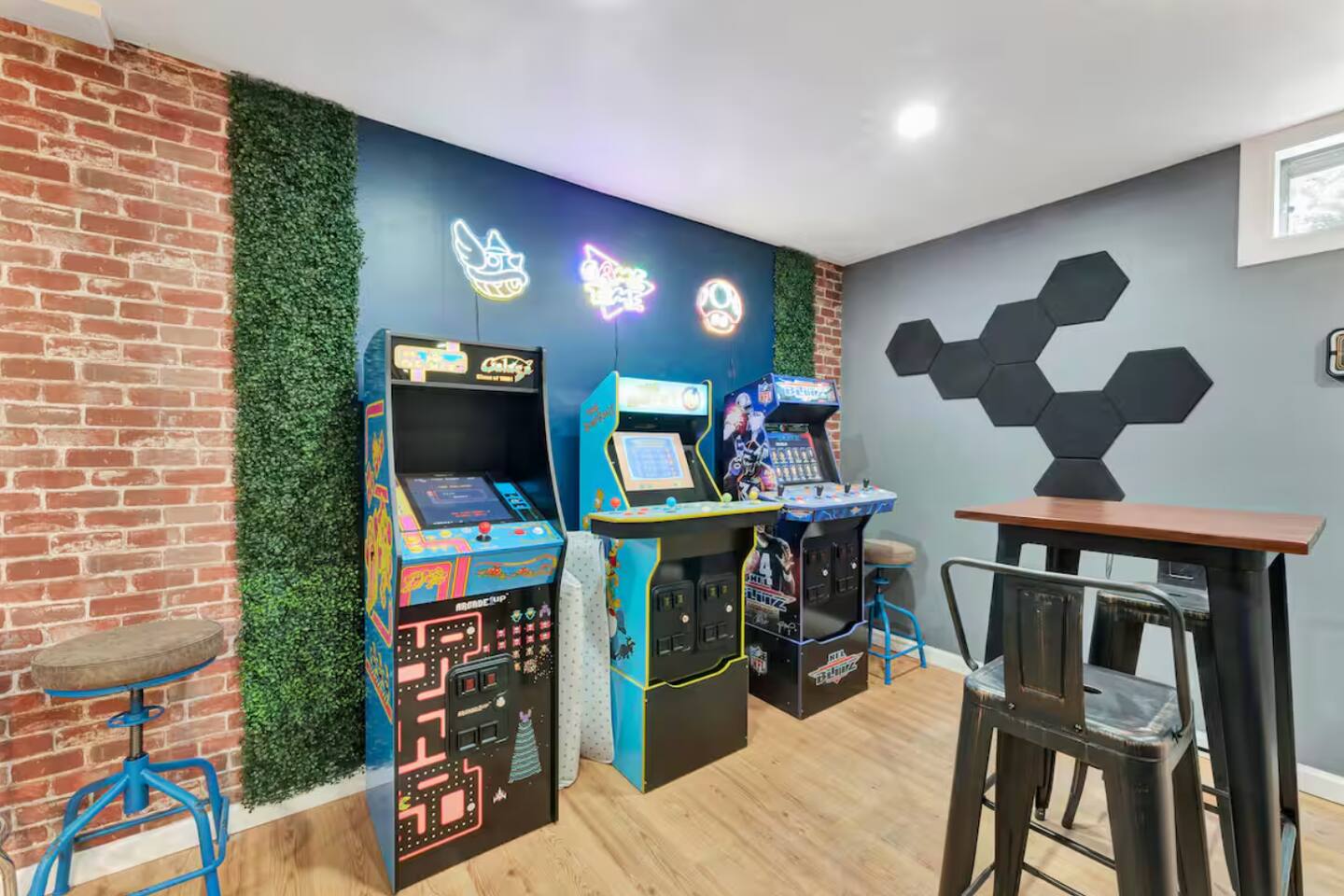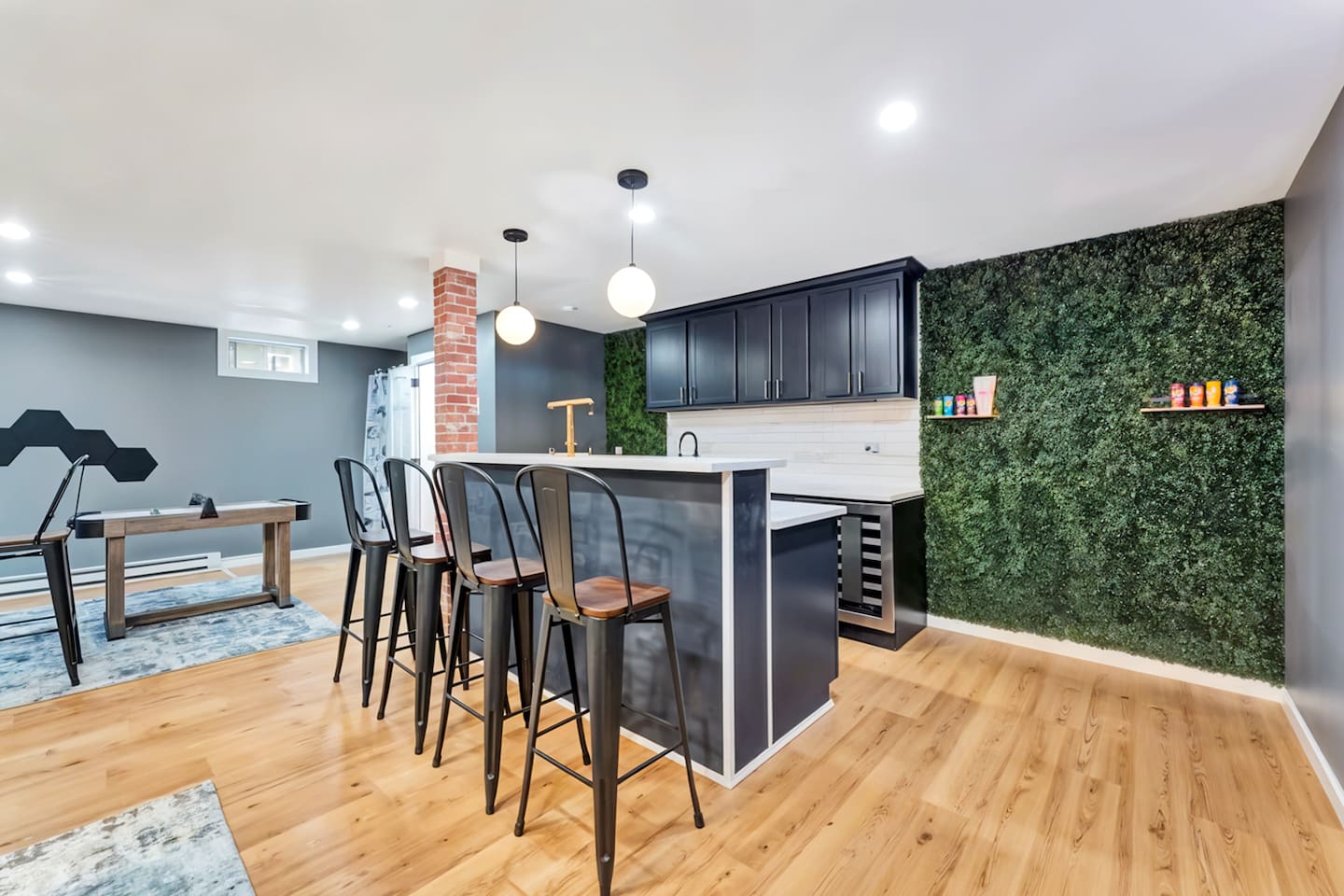 **During the summer months (Memorial Day weekend - Labor Day weekend), you will have the option to purchase amenity passes that allow you to access the following amenities** ☀ Lakes (with beach access - swimming allowed!) ☀ Pools ☀ Tennis courts ☀ Basketball courts ☀ Dog park ☀ Playground areas KEY FEATURES: ☀ 5 beautiful bedrooms; 2 kings, 2 queens, 2 fulls, 1 twin bed, & 1 trundle bed (beneath the bunk bed) ☀ 2 full bathrooms & 2 half bathrooms ☀ Modern kitchen with new, stainless steel appliances ☀ Open living room with lots of comfy seating & smart TV ☀ Dining room with seating to comfortably accommodate 10 (+ 4 more in the breakfast nook & additional dining on the back deck) ☀ AMAZING game room; pool table, arcade, movie theater, & more! ☀ STUNNING lakefront backyard; hot tub, wood burning fire pit, kayaks, jungle gym, & much more! Here Are A Few Kind Words From Our Past Guests: “This was a great place to stay! The morning light through the windows was so beautiful. Overall, just a relaxing experience. The hosts were super responsive whenever I had a question. I would stay again!” - Emily “Sabrina was very accommodating and communicative. the house is beautiful and very comfortable, close to nature hikes.” - Jennifer “This place was lovely! Exactly as pictured! Very clean and excellent host experience!!! I plan to come back again!” - Regina ☆☆ BEDROOMS ☆☆ You'll find 5 beautiful bedrooms throughout this home. On the main floor, the first bedroom has a king bed & smart TV. Upstairs, there is one bedroom with a king bed, two more bedrooms with a queen bed in each, and the fifth bedroom with a full-over-full bunk (+ trundle bed) & a twin bed. Each bedroom in this home has its own smart TV. ☆☆ BATHROOMS ☆☆ There are 2 full bathrooms & 2 half bathrooms in this home. One half bathroom is in the basement game room, while the other is on the main level. Upstairs, the master bedroom has a private ensuite bathroom, with a sink, toilet, and shower/tub combo. The other full bathroom is right down the hallway, also with a sink, toilet, and shower/tub combo. ☆☆ KITCHEN & DINING ☆☆ The modern kitchen is located right off of the main living areas, and is loaded with all new stainless steel appliances & a coffee station (including a Keurig & coffee pods). There is also a breakfast nook with a small dining table, enough to seat 4 people, with a great view of the lake right outside the back door! The dining room is right next to the kitchen, with enough seating to comfortably fit 10 people, also with gorgeous views of the lake! ☆☆ LIVING ROOM ☆☆ In the living room, you’ll be greeted with lots of comfy seating and a big smart TV. This is the perfect spot to host your movie nights & games with your friends and family! ☆☆ GAME ROOM ☆☆ Keep your family and friends entertained throughout your stay in our amenity-filled game room! Pool table, air hockey, foosball, basketball, arcade games, and a wet bar. Whether your reason for staying is to explore the town or stay at home and relax, this place will be the perfect spot to unwind! ☆☆ MOVIE THEATER ☆☆ Right next to the game room is a private movie theater room! With curtains to close off this space to be its own private theater, this is a truly unique experience that you will only find here. A HUGE 75 inch TV & comfy movie theater seats creates a cozy, private theater for just you and your family/friends to enjoy together! ☆☆ OUTDOOR SPACE ☆☆ This backyard is everything you could ask for, and more! ☀ Private beach-entry access to the lake ☀ Kayaks ☀ Surf boards ☀ Hot tub ☀ Fire pit (wood burning) ☀ Jungle gym ☀ Corn hole ☀ Ring toss ☀ Hammocks ☀ Sun loungers ☀ BBQ grill ☀ Outdoor lounge seating ☀ Outdoor dining There is so much to do here, that all of your friends & family will be thoroughly entertained throughout your entire stay. No matter the season, this backyard has it all. Book your stay with us today and you will NOT be disappointed. Get ready for a vacation you will never forget! ★☆ Book Now & Let Us Take Care Of You In The Poconos! ☆★