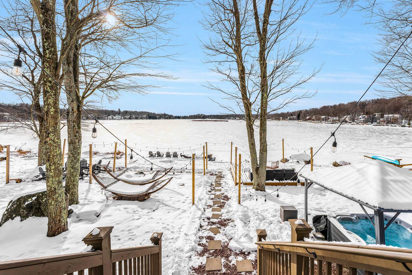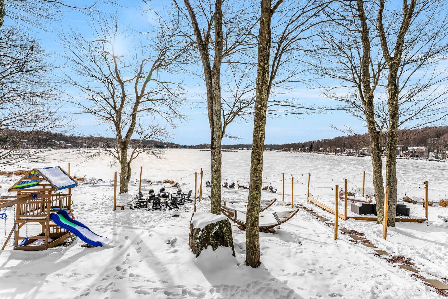 Welcome to the BEST vacation spot in all of the Poconos! Not only is the PRIVATE beach entry to the lake just steps from the back door, but this home itself has everything you could ever need to stay entertained throughout your entire stay. Hot tub, fire pit, kayaks, jungle gym, pool table, movie theater, arcade games, and much more. Your dream Poconos vacation awaits! 10 min - Mount Pocono 15 min - Kalahari 30 min - Big Boulder, Jack Frost Experience The Poconos With Us & Learn More Below!