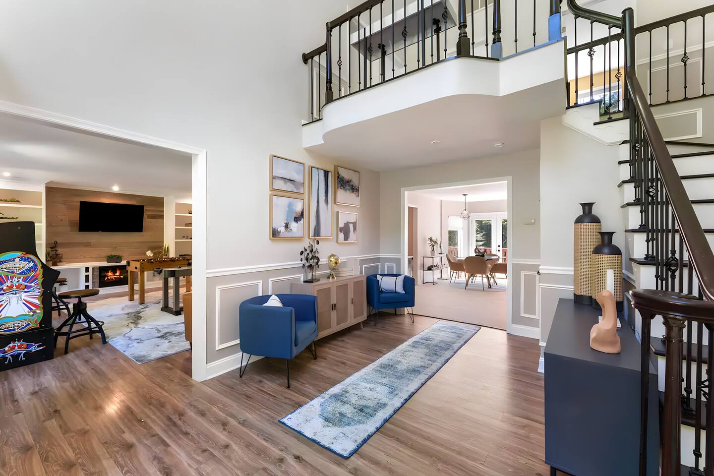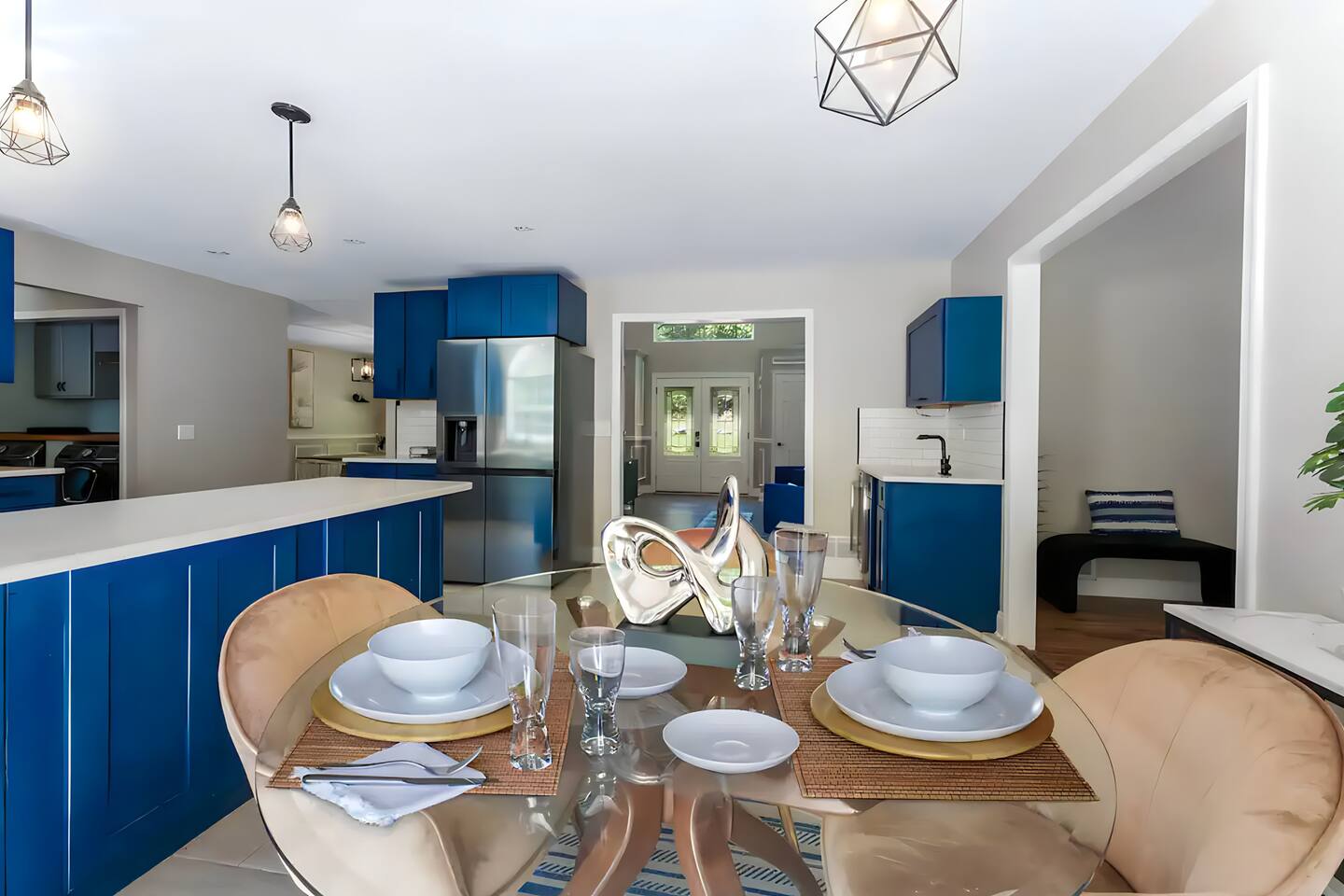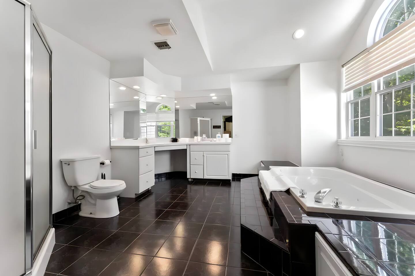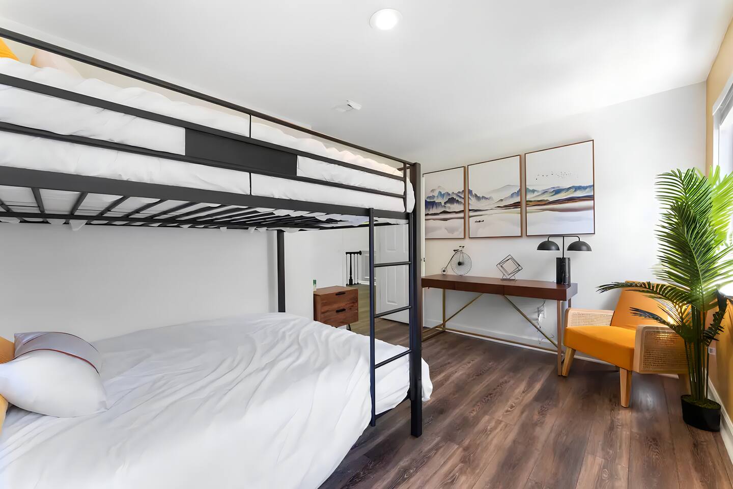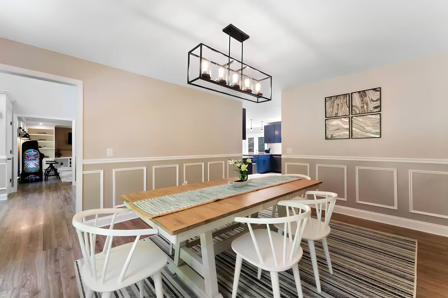 KEY FEATURES: ☀ 4 beautiful, spacious bedrooms - 3 kings, 2 queens (bunk bed) ☀ 2.5 bathrooms ☀ Beautifully renovated kitchen with modern appliances ☀ Open living room with lots of comfy seating & wood burning fireplace ☀ Game room with more seating & huge smart TV ☀ Gorgeous formal dining room ☀ INCREDIBLE backyard with a HEATED pool, hot tub, and more! ☀ Huge, private lot surrounded by the Poconos forest Here Are A Few Kind Words From Our Past Guests: “This was a great place to stay! The morning light through the windows was so beautiful. Overall, just a relaxing experience. The hosts were super responsive whenever I had a question. I would stay again!” - Emily “Sabrina was very accommodating and communicative. the house is beautiful and very comfortable, close to nature hikes.” - Jennifer “This place was lovely! Exactly as pictured! Very clean and excellent host experience!!! I plan to come back again!” - Regina ☆☆ BEDROOMS ☆☆ This modern estate boasts 4 beautiful bedrooms, all of which are located on the second floor. The master bedroom has a high vaulted ceiling, king size bed, smart TV, and an attached ensuite. The next bedroom has two queen beds (bunk bed), as well as a dedicated workspace. The next two bedrooms have one king bed each. All 3 secondary bedrooms share a hallway bathroom. ☆☆ BATHROOMS ☆☆ There are two and a half bathrooms, one of which is downstairs (the half bathroom), while the other two are accessible by the bedrooms upstairs. The downstairs bathroom is directly off of the kitchen hallway, right next to the washer & dryer. Upstairs, the master ensuite is equipped with a sink, vanity, and separate jetted tub & standing shower. The last bathroom upstairs has dual sinks & a shower/tub combo. ☆☆ KITCHEN & DINING ☆☆ Prepare to be amazed! The stunning kitchen will take your breath away. The unique, dark blue accents & open concept are unlike any other in the Poconos. Included in this kitchen is an eat-in breakfast nook & coffee station (including a Keurig & coffee pods). The full dining room is just steps away. With a large dining table that can seat 6 + the additional breakfast nook which can seat 4 more, there is an abundance of space for the entire group to enjoy a feast prepared in the chef's kitchen! ☆☆ LIVING ROOM & GAME ROOM ☆☆ The first living room is more formal, with lots of comfy seating, a wood burning fireplace, a smart TV, and gorgeous views of the private backyard. On the other side of the wall, you can let your inner child out as you enjoy the arcade games, foosball, air hockey, or all other entertainment that you can find on the huge smart TV! ☆☆ OUTDOOR SPACE ☆☆ This backyard has all the fun you can imagine! ☀ Private heated pool ☀ Hot tub ☀ Fire pit (wood burning) ☀ Sun loungers ☀ Outdoor dining ☀ BBQ grill ★☆ Book Now & Let Us Take Care Of You In The Poconos! ☆★