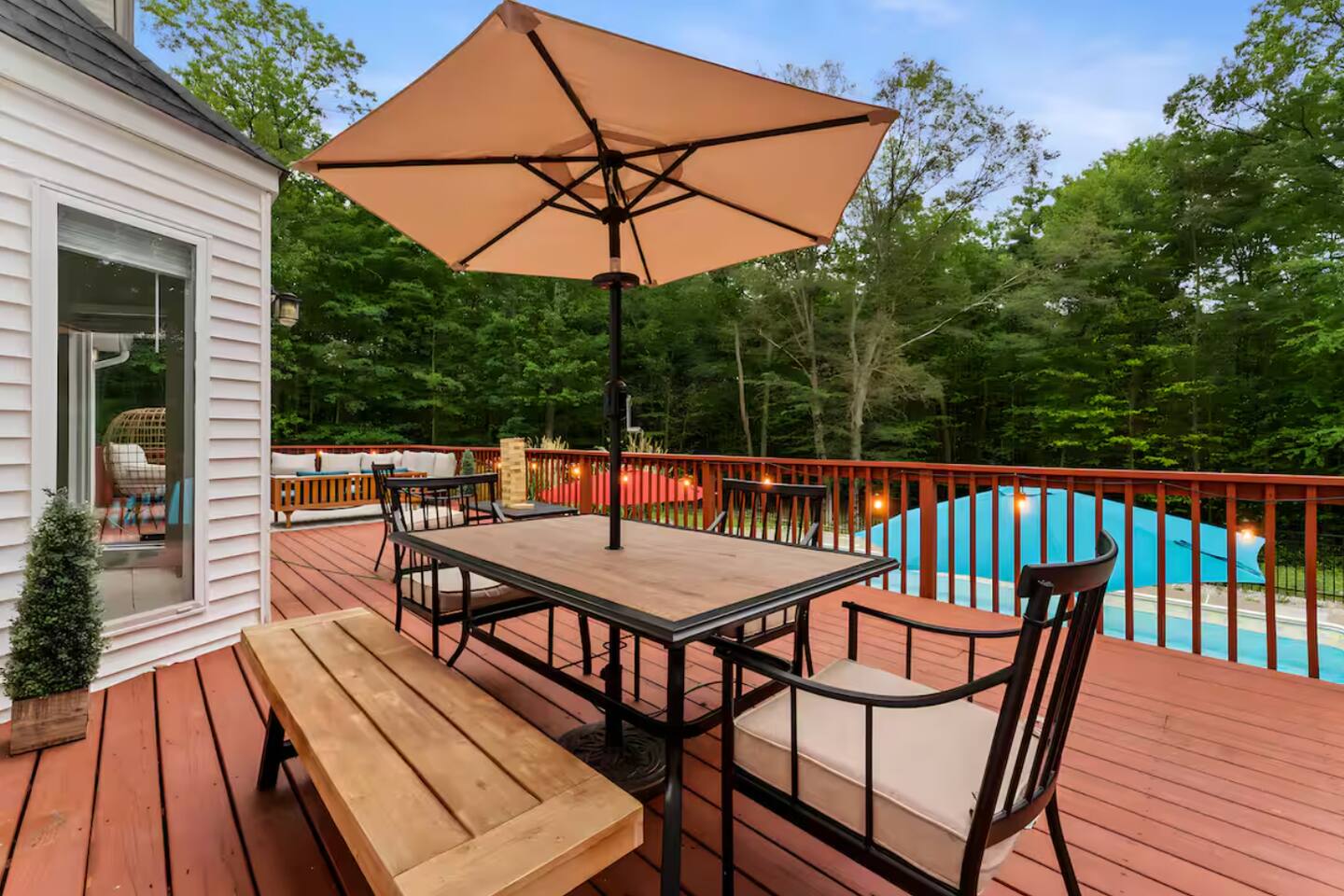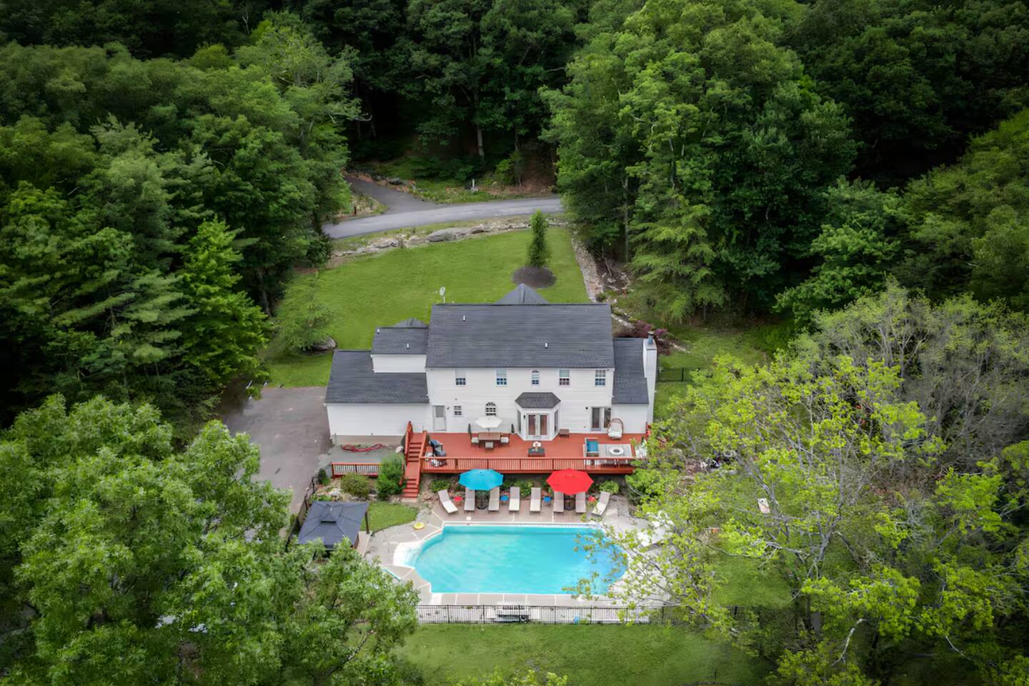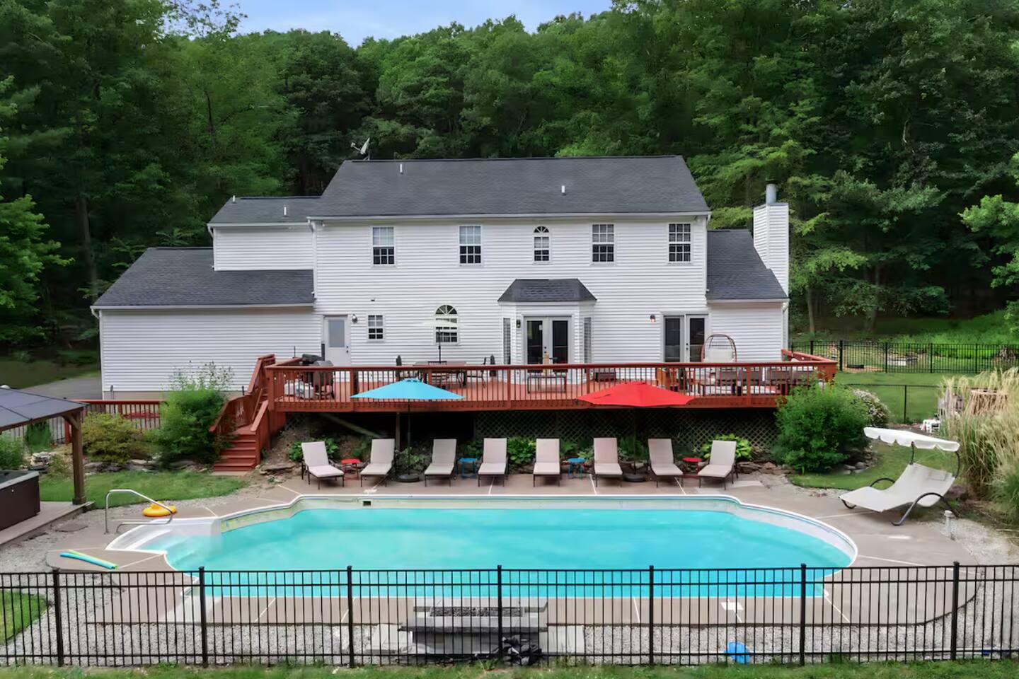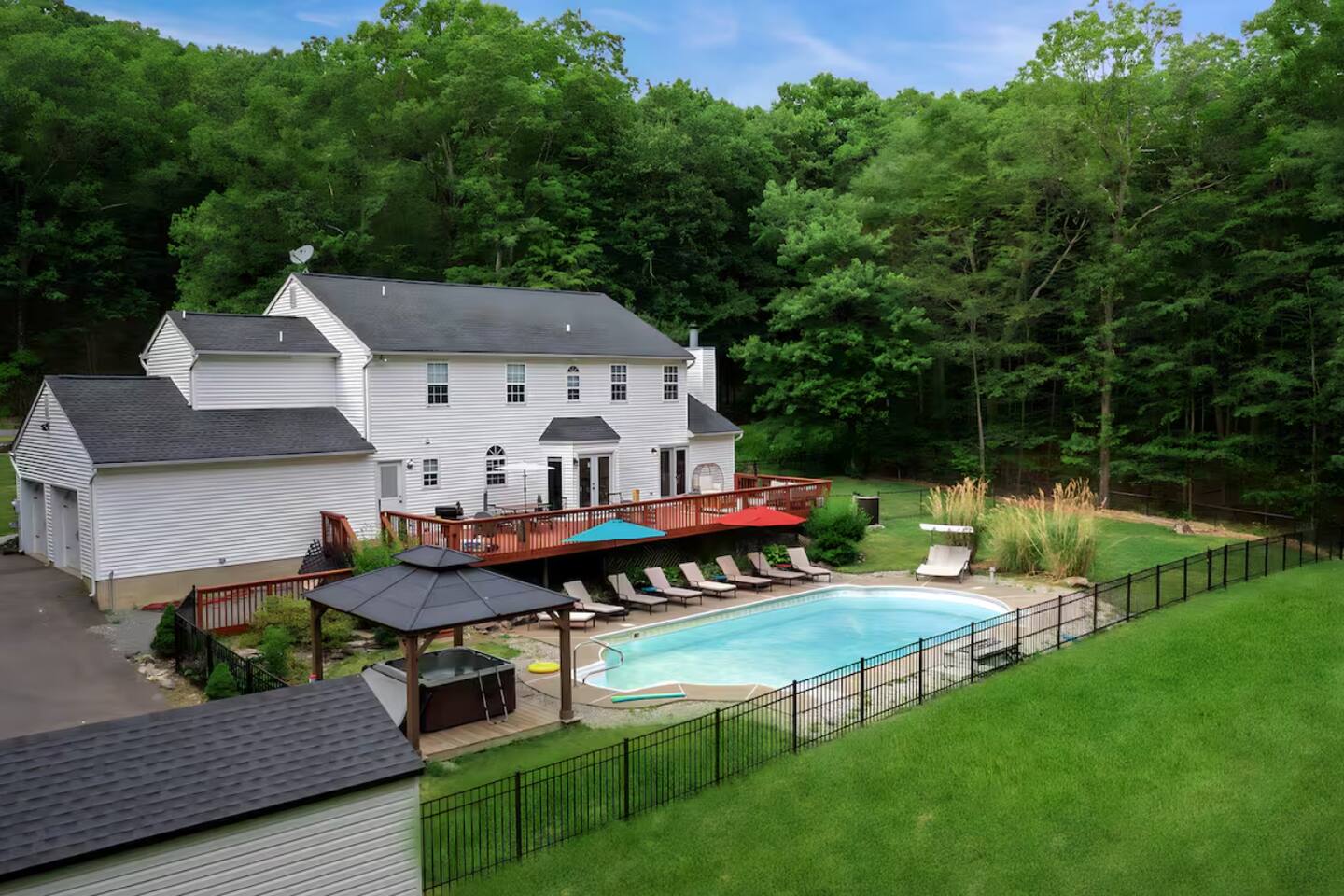 One of the few private estates in all of the Poconos, this house is a hidden gem! Secluded in the Poconos woodlands with complete privacy on the sprawling property, you will get to enjoy all of our amenities right at home! Hot tub, fire pit, private heated pool (AVAILABLE FROM MEMORIAL DAY WEEKEND TO MID SEPTEMBER), and much more - your dream vacation awaits! <15 min - Hiking Trails 20 min - Downtown Stroudsburg, Delaware Water Gap 30 min - Big Boulder & Shawnee Mountain Ski Resorts