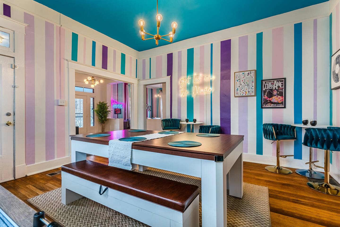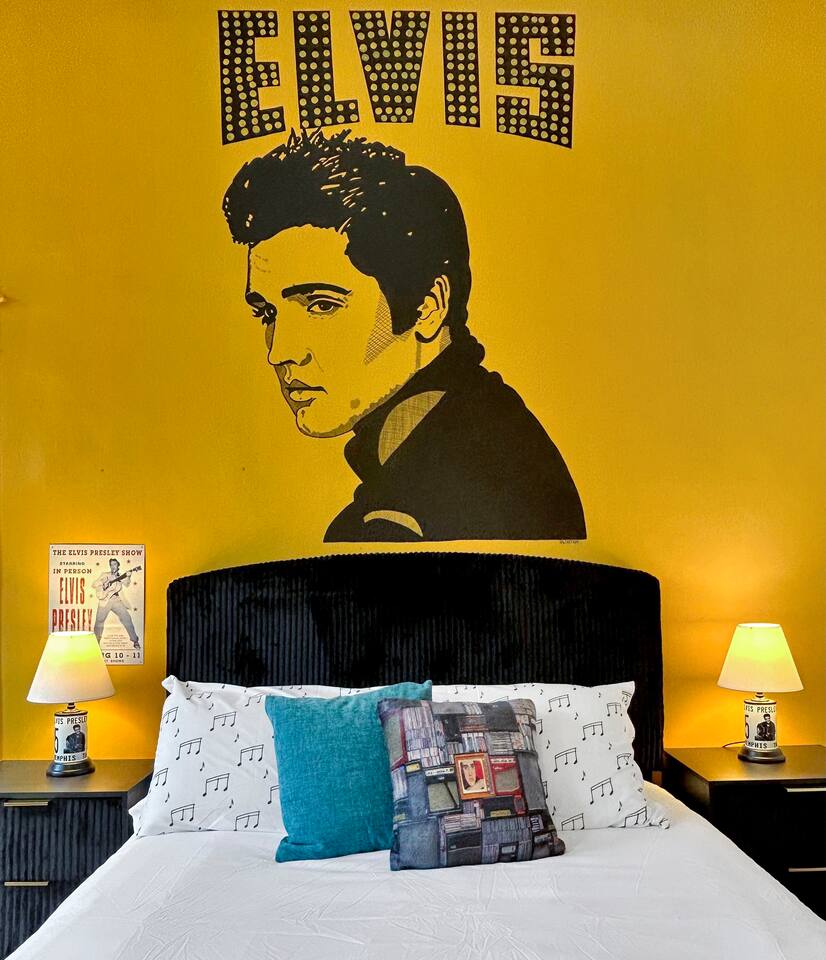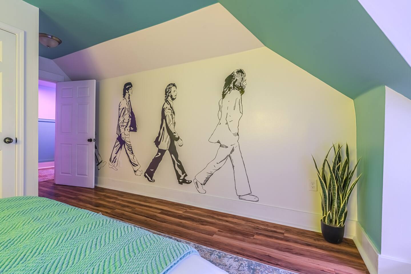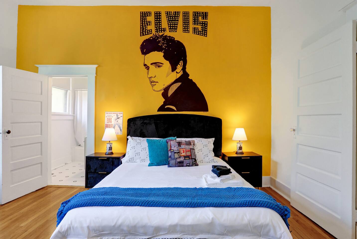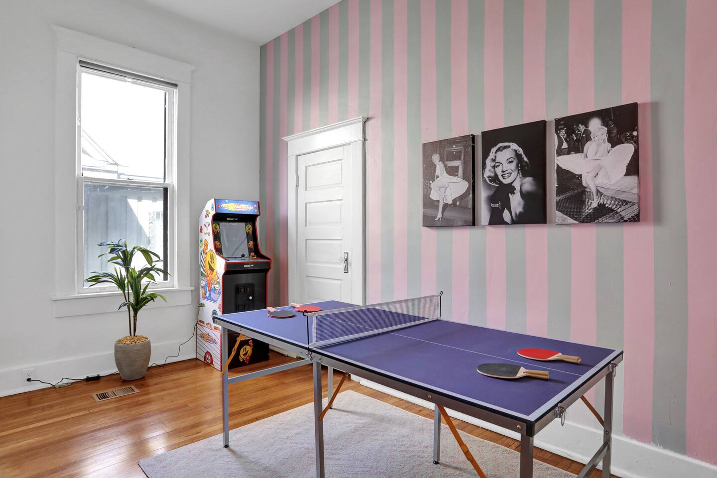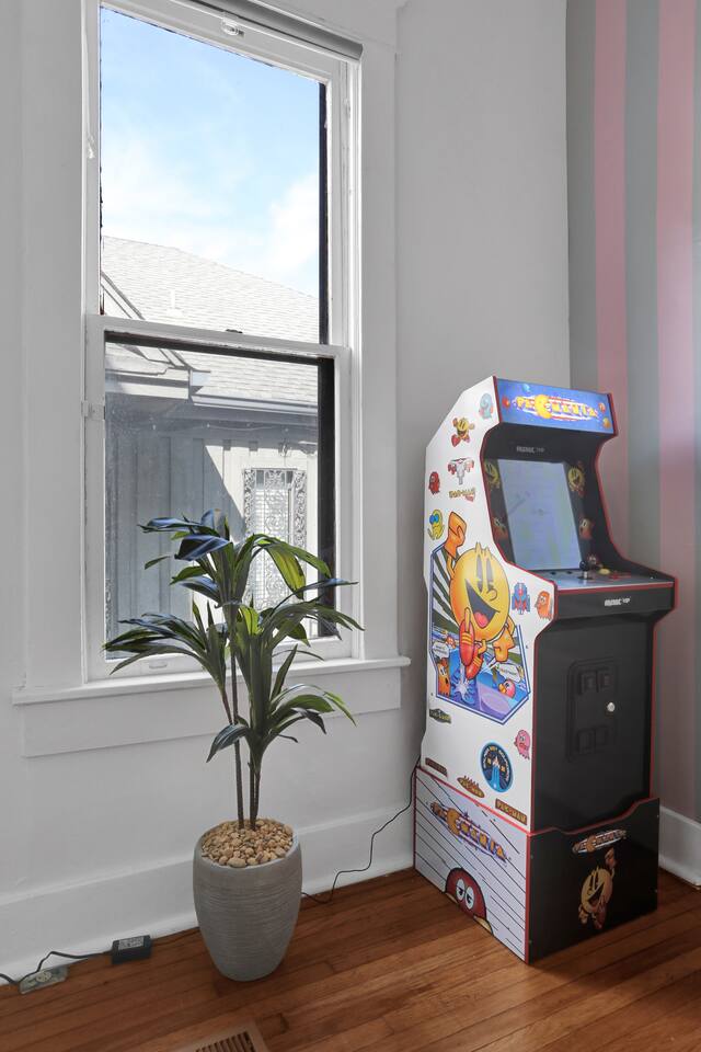 KEY FEATURES: ☀ Three gorgeously designed bedrooms; 1 king & 3 queens, & 2 full beds ☀ 3.5 bathrooms ☀ Historic kitchen with modern, stainless steel appliances ☀ Open, comfy living room with a fun musical design! ☀ Open dining room that doubles as a game-room ☀ Large backyard filled with amenities ☀ Pool, fire pit, games, and more! Here Are A Few Kind Words From Our Past Guests: “This was a great place to stay! The morning light through the windows was so beautiful. Overall, just a relaxing experience. The hosts were super responsive whenever I had a question. I would stay again!” - Emily “Sabrina was very accommodating and communicative. the house is beautiful and very comfortable, close to nature hikes.” - Jennifer “This place was lovely! Exactly as pictured! Very clean and excellent host experience!!! I plan to come back again!” - Regina ☆☆ BEDROOMS ☆☆ The bedrooms in this home are breathtaking! Each with a unique design, modeled after famous musicians. The downstairs bedroom (Elvis-themed), has three queen beds (one queen bed + a queen-over-queen bunk bed), smart TV, and a private ensuite bathroom, as well. The upstairs bedrooms will continue to blow you away. The "Prince" themed bedroom has two king beds, a smart TV, and a shared attached bathroom with the "Cavern Club" bedroom (Beatles-themed), which is equipped with a queen bed & a cute nook to relax below the natural light on a couple comfy bean bags. ☆☆ BATHROOMS ☆☆ There are three and a half bathrooms in this home. Downstairs, both bedrooms have their own bathrooms, each with a sink, toilet, & shower/tub combo. There is also a half-bath downstairs, with a sink & toilet only. Upstairs, the two bedrooms share one grand bathroom, with two sinks, a toilet, walk-in shower, and soaking tub. ☆☆ KITCHEN & DINING ☆☆ The kitchen and dining space opens up to the main living area of the home. The kitchen is historic and stays true to the original charm of the home, but with new, stainless steel appliances and a coffee station (including a Keurig & coffee pods). The dining room is just right down the hall from the kitchen, and doubles as a game room. The dining table converts to a full-size pool table, and is accompanied by shuffleboard & additional high top seating throughout the room. ☆☆ LIVING ROOM ☆☆ As you walk into the home, you will be greeted with a cozy living room, full of comfy seating, funky Memphis-musical inspired design, & a big smart TV. The perfect spot to relax with your friends & family after exploring the town! ☆☆ GAME ROOM ☆☆ Upstairs, you'll find a mini-arcade; two arcade games & a pinball machine complete this cozy nook to play some retro games! ☆☆ OUTDOOR SPACE ☆☆ This backyard is a truly special find in Memphis! A big, fully fenced yard loaded with amenities: ☀ Hot tub ☀ Fire pit (wood burning) ☀ Jungle gym ☀ Corn hole ☀ Horseshoe ☀ Giant Connect 4 ☀ Giant Jenga ☀ Outdoor lounge seating ☀ Covered outdoor dining When you're not spending your days exploring all that Memphis has to offer, you will have plenty to do right here at home, whether you're in the house or enjoying all the amenities offered right outside! ★☆ Book Now & Let Us Take Care Of You In Memphis! ☆★