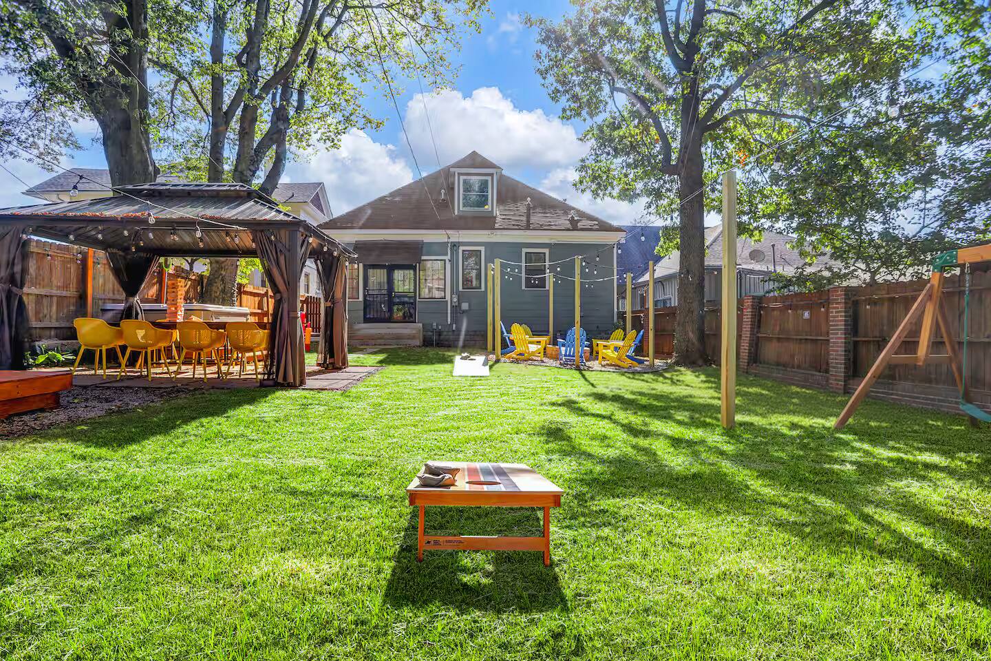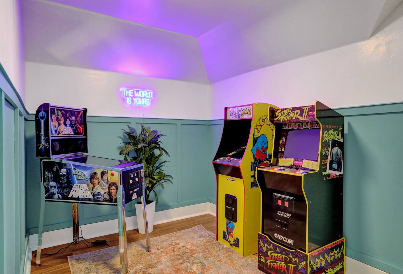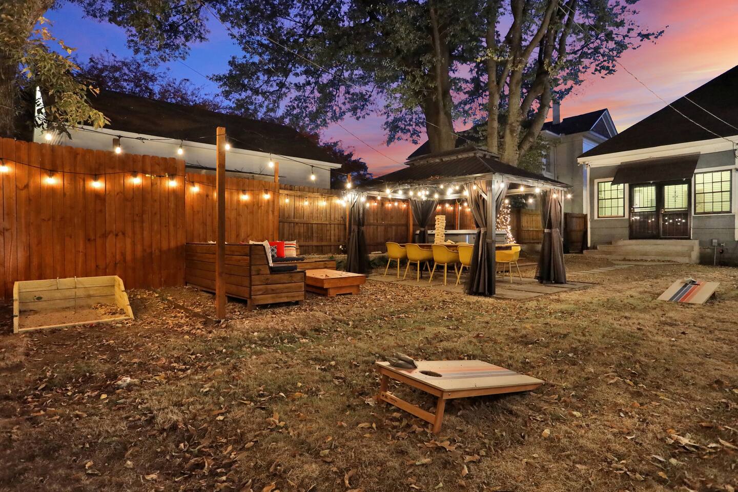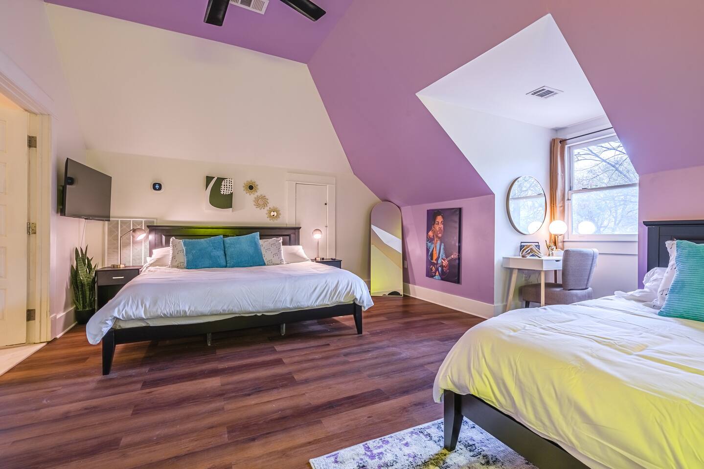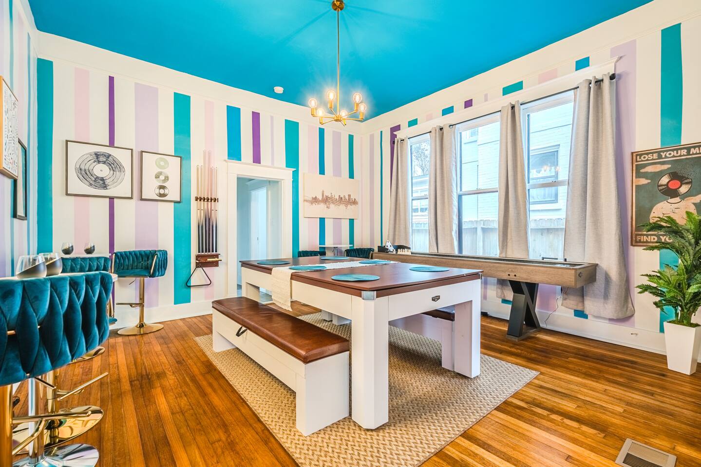 KEY FEATURES: ☀ Three gorgeously designed bedrooms; 1 king & 3 queens, & 2 full beds ☀ 3.5 bathrooms ☀ Historic kitchen with modern, stainless steel appliances ☀ Open, comfy living room with a fun musical design! ☀ Open dining room that doubles as a game-room ☀ Large backyard filled with amenities ☀ Pool, fire pit, games, and more! Here Are A Few Kind Words From Our Past Guests: “This was a great place to stay! The morning light through the windows was so beautiful. Overall, just a relaxing experience. The hosts were super responsive whenever I had a question. I would stay again!” - Emily “Sabrina was very accommodating and communicative. the house is beautiful and very comfortable, close to nature hikes.” - Jennifer “This place was lovely! Exactly as pictured! Very clean and excellent host experience!!! I plan to come back again!” - Regina ☆☆ BEDROOMS ☆☆ The bedrooms in this home are breathtaking! Each with a unique design, modeled after famous musicians. The downstairs bedroom (Elvis-themed), has three queen beds (one queen bed + a queen-over-queen bunk bed), smart TV, and a private ensuite bathroom, as well. The upstairs bedrooms will continue to blow you away. The "Prince" themed bedroom has two king beds, a smart TV, and a shared attached bathroom with the "Cavern Club" bedroom (Beatles-themed), which is equipped with a queen bed & a cute nook to relax below the natural light on a couple comfy bean bags. ☆☆ BATHROOMS ☆☆ There are three and a half bathrooms in this home. Downstairs, both bedrooms have their own bathrooms, each with a sink, toilet, & shower/tub combo. There is also a half-bath downstairs, with a sink & toilet only. Upstairs, the two bedrooms share one grand bathroom, with two sinks, a toilet, walk-in shower, and soaking tub. ☆☆ KITCHEN & DINING ☆☆ The kitchen and dining space opens up to the main living area of the home. The kitchen is historic and stays true to the original charm of the home, but with new, stainless steel appliances and a coffee station (including a Keurig & coffee pods). The dining room is just right down the hall from the kitchen, and doubles as a game room. The dining table converts to a full-size pool table, and is accompanied by shuffleboard & additional high top seating throughout the room. ☆☆ LIVING ROOM ☆☆ As you walk into the home, you will be greeted with a cozy living room, full of comfy seating, funky Memphis-musical inspired design, & a big smart TV. The perfect spot to relax with your friends & family after exploring the town! ☆☆ GAME ROOM ☆☆ Upstairs, you'll find a mini-arcade; two arcade games & a pinball machine complete this cozy nook to play some retro games! ☆☆ OUTDOOR SPACE ☆☆ This backyard is a truly special find in Memphis! A big, fully fenced yard loaded with amenities: ☀ Hot tub ☀ Fire pit (wood burning) ☀ Jungle gym ☀ Corn hole ☀ Horseshoe ☀ Giant Connect 4 ☀ Giant Jenga ☀ Outdoor lounge seating ☀ Covered outdoor dining When you're not spending your days exploring all that Memphis has to offer, you will have plenty to do right here at home, whether you're in the house or enjoying all the amenities offered right outside! ★☆ Book Now & Let Us Take Care Of You In Memphis! ☆★