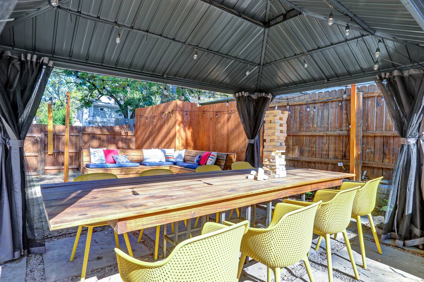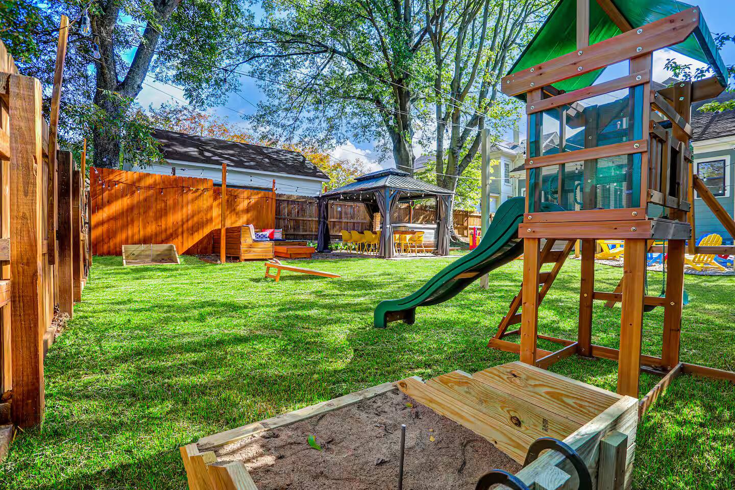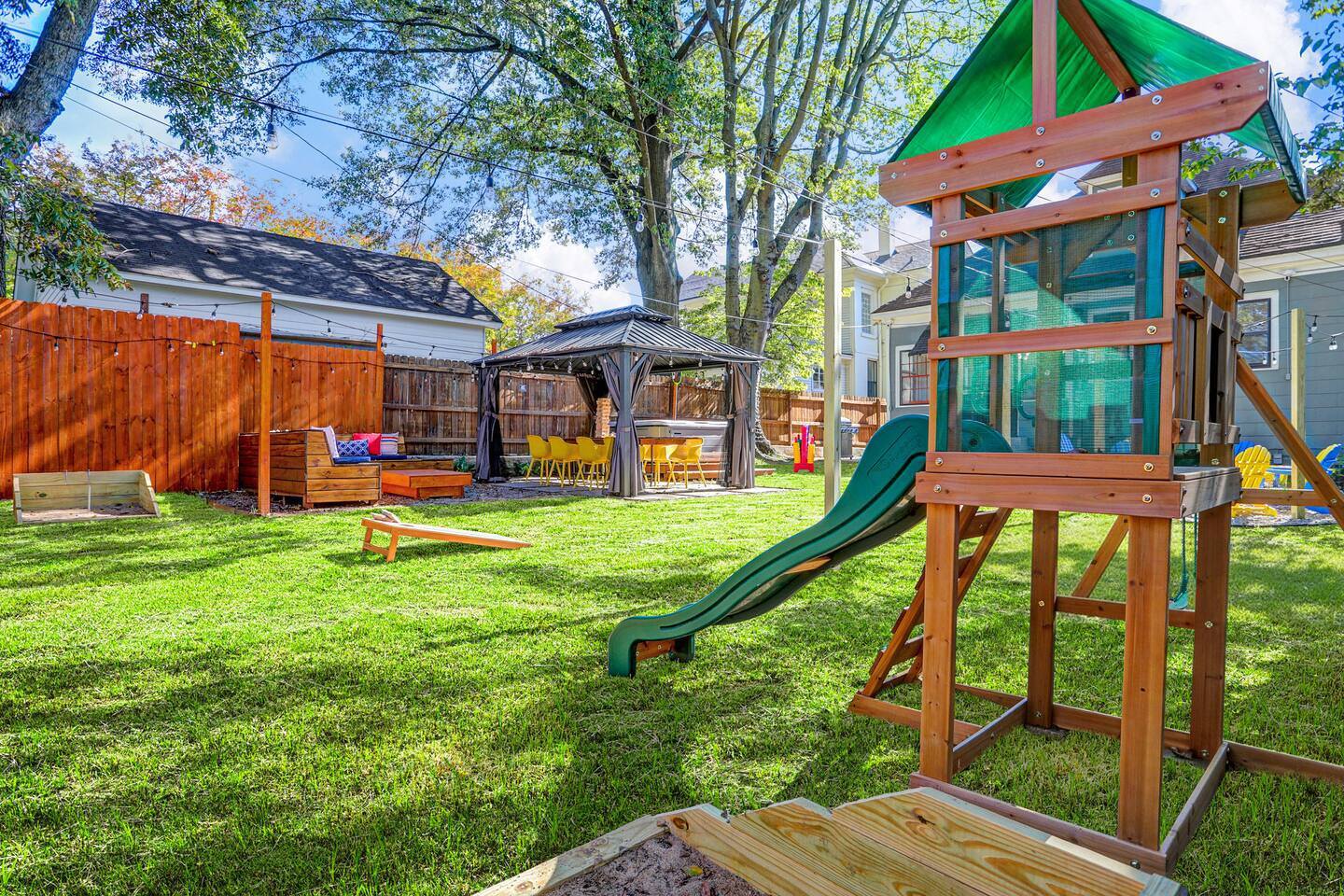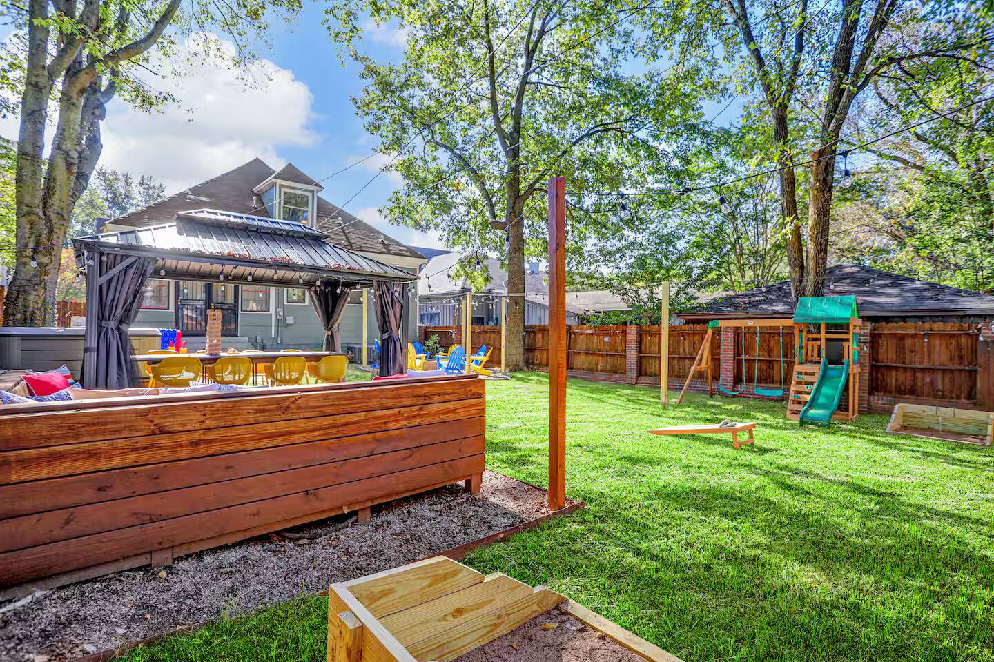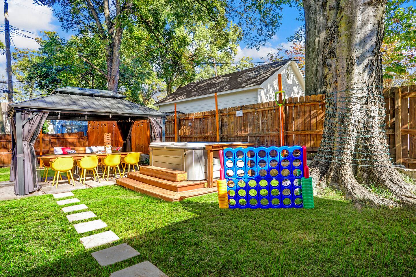 KEY FEATURES: ☀ Three gorgeously designed bedrooms; 1 king & 3 queens, & 2 full beds ☀ 3.5 bathrooms ☀ Historic kitchen with modern, stainless steel appliances ☀ Open, comfy living room with a fun musical design! ☀ Open dining room that doubles as a game-room ☀ Large backyard filled with amenities ☀ Pool, fire pit, games, and more! Here Are A Few Kind Words From Our Past Guests: “This was a great place to stay! The morning light through the windows was so beautiful. Overall, just a relaxing experience. The hosts were super responsive whenever I had a question. I would stay again!” - Emily “Sabrina was very accommodating and communicative. the house is beautiful and very comfortable, close to nature hikes.” - Jennifer “This place was lovely! Exactly as pictured! Very clean and excellent host experience!!! I plan to come back again!” - Regina ☆☆ BEDROOMS ☆☆ The bedrooms in this home are breathtaking! Each with a unique design, modeled after famous musicians. The downstairs bedroom (Elvis-themed), has three queen beds (one queen bed + a queen-over-queen bunk bed), smart TV, and a private ensuite bathroom, as well. The upstairs bedrooms will continue to blow you away. The "Prince" themed bedroom has two king beds, a smart TV, and a shared attached bathroom with the "Cavern Club" bedroom (Beatles-themed), which is equipped with a queen bed & a cute nook to relax below the natural light on a couple comfy bean bags. ☆☆ BATHROOMS ☆☆ There are three and a half bathrooms in this home. Downstairs, both bedrooms have their own bathrooms, each with a sink, toilet, & shower/tub combo. There is also a half-bath downstairs, with a sink & toilet only. Upstairs, the two bedrooms share one grand bathroom, with two sinks, a toilet, walk-in shower, and soaking tub. ☆☆ KITCHEN & DINING ☆☆ The kitchen and dining space opens up to the main living area of the home. The kitchen is historic and stays true to the original charm of the home, but with new, stainless steel appliances and a coffee station (including a Keurig & coffee pods). The dining room is just right down the hall from the kitchen, and doubles as a game room. The dining table converts to a full-size pool table, and is accompanied by shuffleboard & additional high top seating throughout the room. ☆☆ LIVING ROOM ☆☆ As you walk into the home, you will be greeted with a cozy living room, full of comfy seating, funky Memphis-musical inspired design, & a big smart TV. The perfect spot to relax with your friends & family after exploring the town! ☆☆ GAME ROOM ☆☆ Upstairs, you'll find a mini-arcade; two arcade games & a pinball machine complete this cozy nook to play some retro games! ☆☆ OUTDOOR SPACE ☆☆ This backyard is a truly special find in Memphis! A big, fully fenced yard loaded with amenities: ☀ Hot tub ☀ Fire pit (wood burning) ☀ Jungle gym ☀ Corn hole ☀ Horseshoe ☀ Giant Connect 4 ☀ Giant Jenga ☀ Outdoor lounge seating ☀ Covered outdoor dining When you're not spending your days exploring all that Memphis has to offer, you will have plenty to do right here at home, whether you're in the house or enjoying all the amenities offered right outside! ★☆ Book Now & Let Us Take Care Of You In Memphis! ☆★