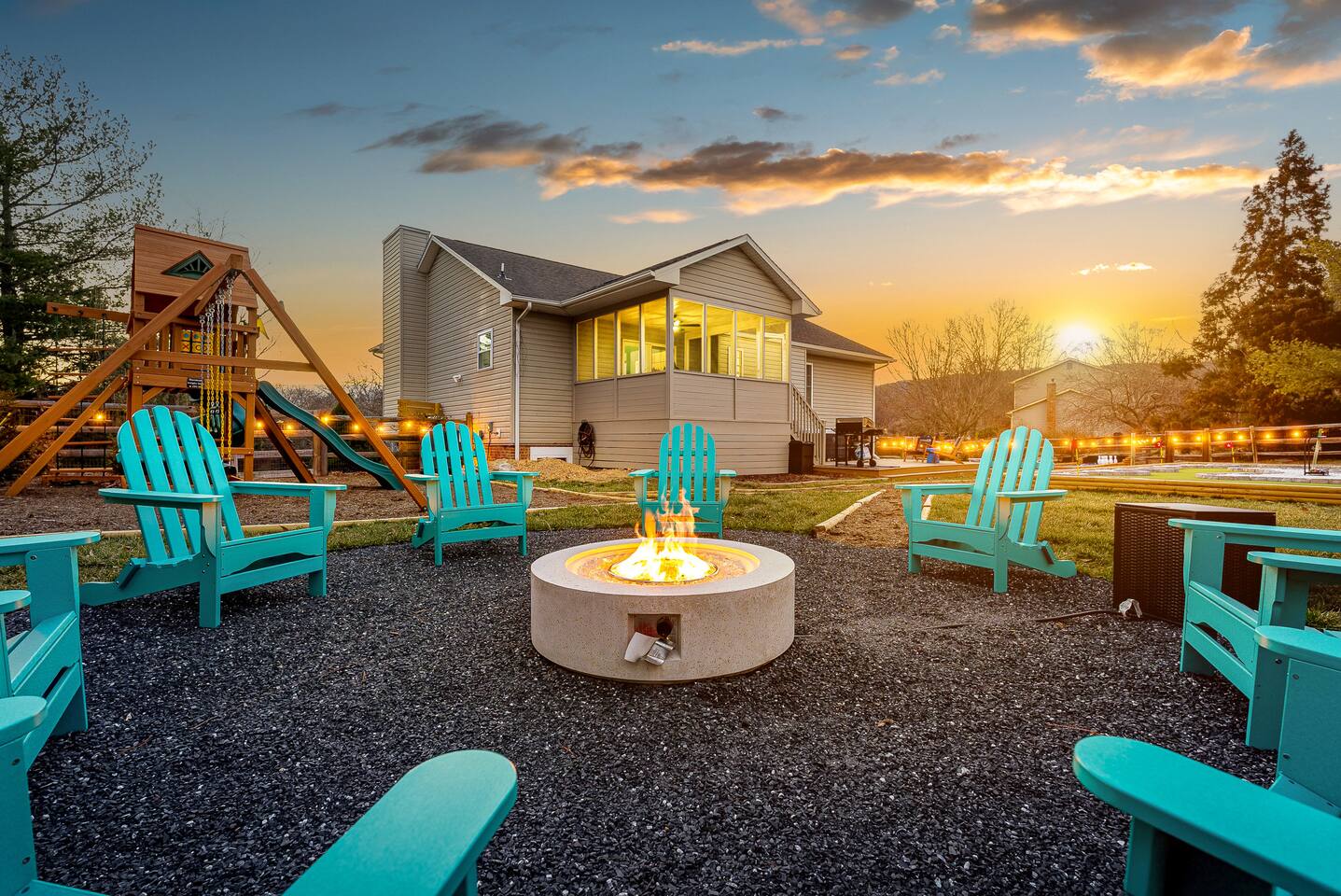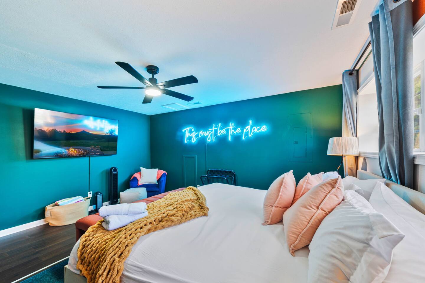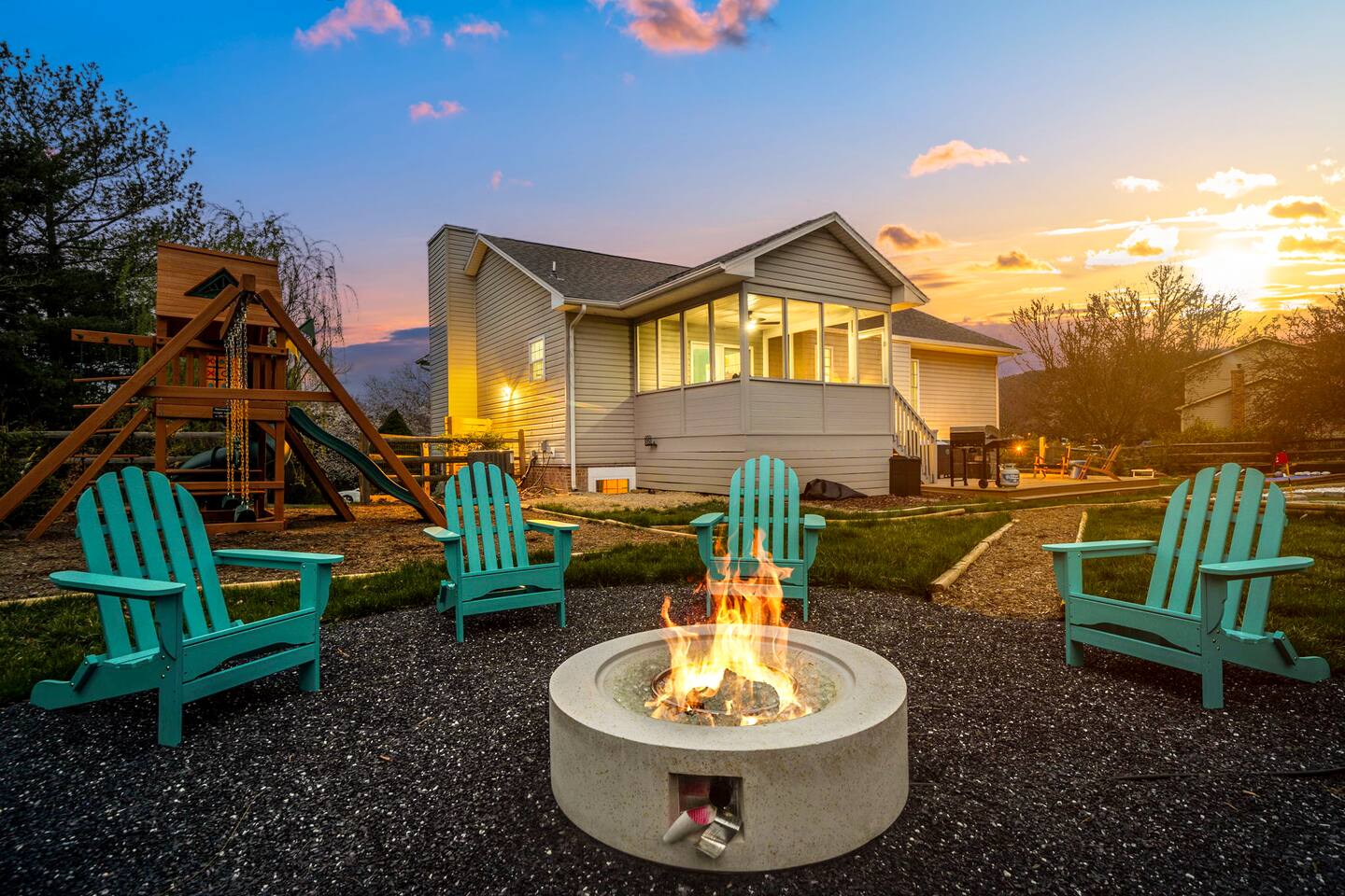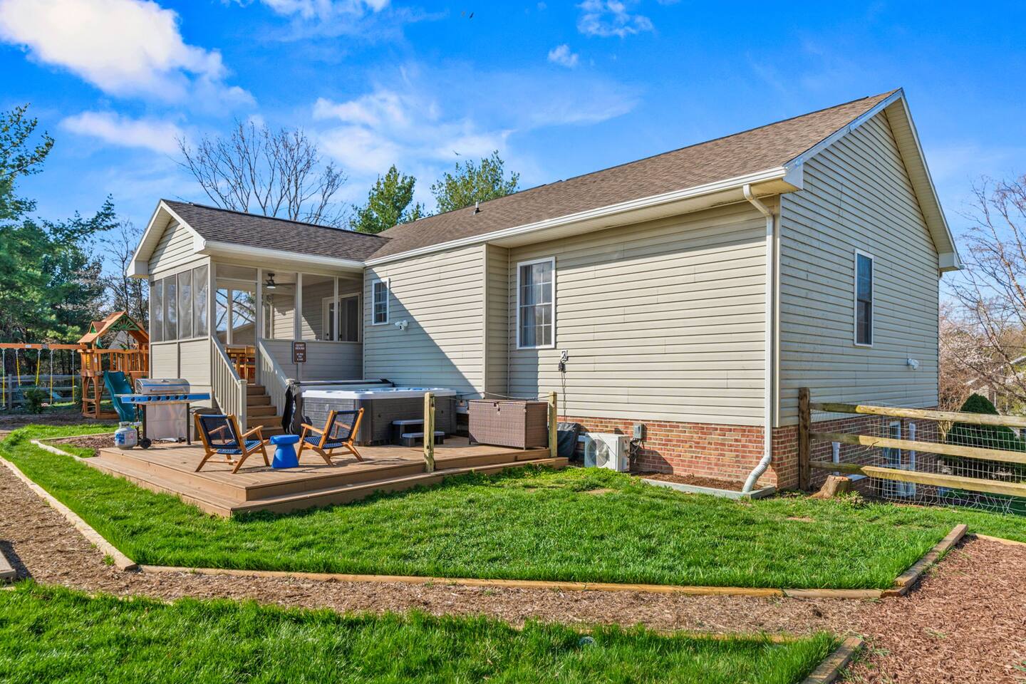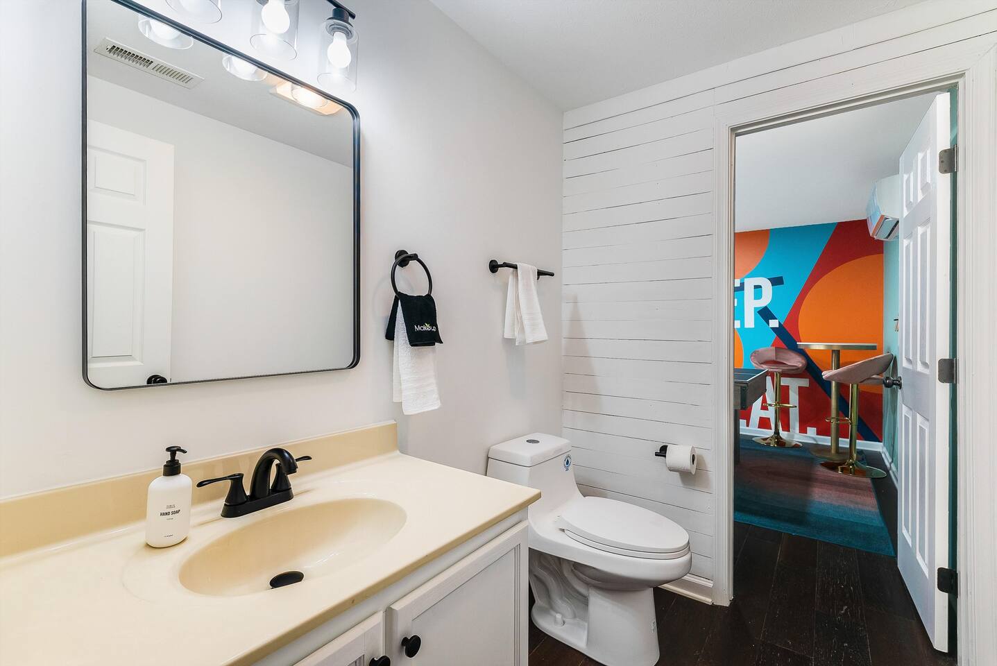 KEY FEATURES: ☀ 6 beautiful bedrooms; 3 kings, 3 queens, & 2 full beds ☀ 2.5 bathrooms ☀ Modern kitchen with new, stainless steel appliances ☀ Open living room with lots of comfy seating & smart TV ☀ Dining room with seating to comfortably accommodate 10 (+ 4 seats in the screened in porch) ☀ AMAZING game room; pool table, poker table, arcade games & more! ☀ One-of-a-kind CUSTOM movie theater, with huge projector screen & classic movie theater seats! ☀ Beautiful, private, fully-fenced backyard, including a hot tub, fire pit, mini golf and more! Here Are A Few Kind Words From Our Past Guests: “This was a great place to stay! The morning light through the windows was so beautiful. Overall, just a relaxing experience. The hosts were super responsive whenever I had a question. I would stay again!” - Emily “Sabrina was very accommodating and communicative. the house is beautiful and very comfortable, close to nature hikes.” - Jennifer “This place was lovely! Exactly as pictured! Very clean and excellent host experience!!! I plan to come back again!” - Regina ☆☆ BEDROOMS ☆☆ There are 6 gorgeous bedrooms throughout this home, each with their own smart TV! You'll find 3 bedrooms on the main floor. The master bedroom has a king bed & private ensuite bathroom. The second bedroom has another king bed, while the third has a queen-over-queen bunk bed. On the bottom floor, the fourth bedroom has a king, the fifth bedroom has a queen, and the sixth has a custom full-over-full bunk bed with a SLIDE! You have to see it to believe it! ☆☆ BATHROOMS ☆☆ This home has 2 and a half bathrooms. The upstairs master ensuite bathroom has two sinks, a toilet, and shower/tub combo. Right down the hall, the second bathroom has 1 sink, a toilet, and a walk-in shower only. Downstairs, the half bathroom is accessible off of the queen bedroom & game room, with a sink & toilet only. ☆☆ KITCHEN & DINING ☆☆ The kitchen is located right off of the main living areas, and is loaded with all new stainless steel appliances & a coffee station (including a Keurig & coffee pods). The dining room is right next to the kitchen, with enough seating to comfortably fit 10 people, plus additional dining space in the private back screened in porch! ☆☆ LIVING ROOM ☆☆ In the living room, you’ll be greeted with high vaulted ceilings, lots of comfy seating, a big smart TV, a fireplace, and gorgeous, colorful design along with a massive, fun mural. This is the perfect spot to host your movie nights & games with your friends and family! ☆☆ GAME ROOM ☆☆ Keep your family and friends entertained throughout your stay in our super fun game room! With a pool table, ping pong, poker table, arcade games, pop-a-shot basketball, & a big smart TV, this is the ideal hangout spot to keep you entertained for hours! ☆☆ MOVIE THEATER ☆☆ A truly unique space! In this home, you'll have your own PRIVATE movie theater, with a HUGE projector screen and 2 rows of movie theater seating. This room will take your breath away! ☆☆ OUTDOOR SPACE ☆☆ This private back deck is everything you could ask for, and more! ☀ Hot tub ☀ Fire pit ☀ Mini golf ☀ Bowling ☀ Corn hole ☀ Jungle gym ☀ BBQ grill ☀ Outdoor dining There is so much to do here, that all of your friends & family will be thoroughly entertained throughout your entire stay. No matter the season, this backyard has it all. Book your stay with us today and you will NOT be disappointed. Get ready for a vacation you will never forget! ★☆ Book Now & Let Us Take Care Of You In Shenandoah Valley ! ☆★
