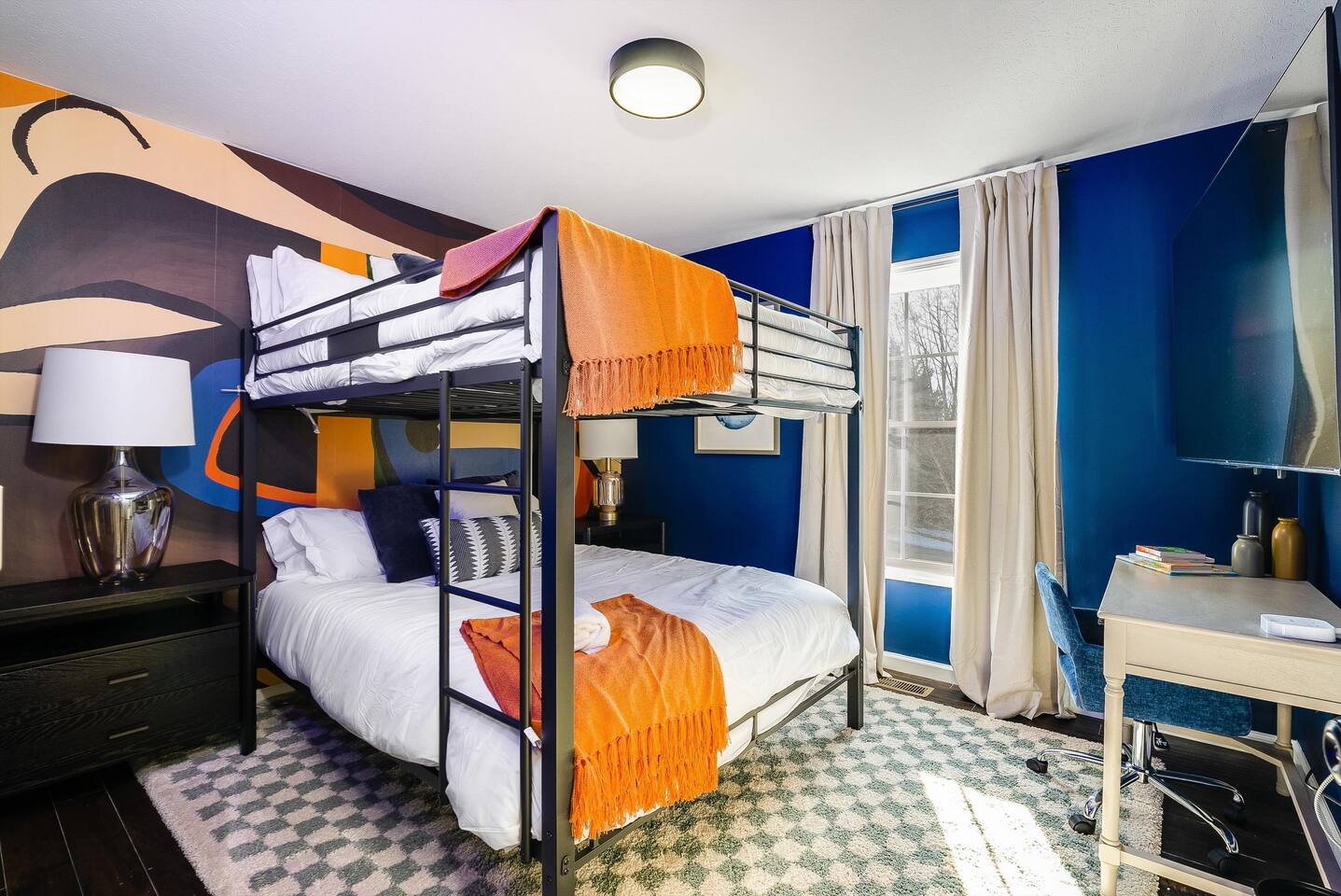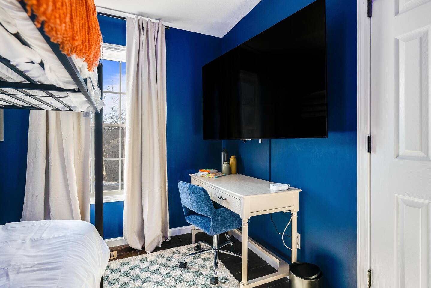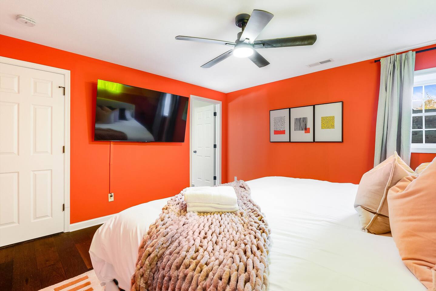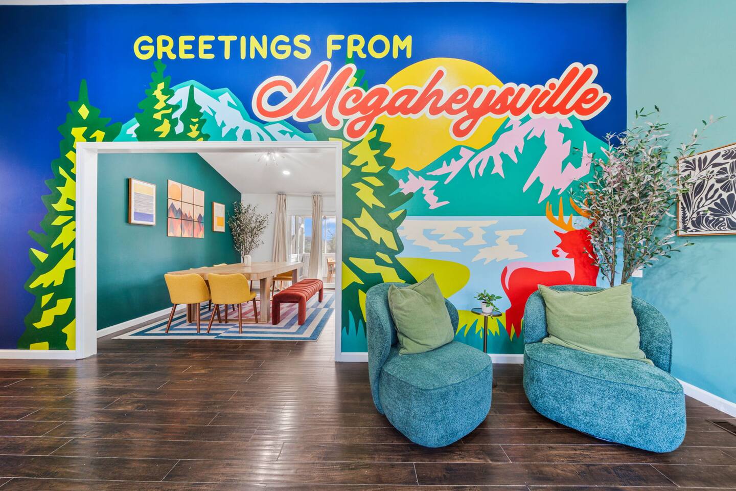 KEY FEATURES: ☀ 6 beautiful bedrooms; 3 kings, 3 queens, & 2 full beds ☀ 2.5 bathrooms ☀ Modern kitchen with new, stainless steel appliances ☀ Open living room with lots of comfy seating & smart TV ☀ Dining room with seating to comfortably accommodate 10 (+ 4 seats in the screened in porch) ☀ AMAZING game room; pool table, poker table, arcade games & more! ☀ One-of-a-kind CUSTOM movie theater, with huge projector screen & classic movie theater seats! ☀ Beautiful, private, fully-fenced backyard, including a hot tub, fire pit, mini golf and more! Here Are A Few Kind Words From Our Past Guests: “This was a great place to stay! The morning light through the windows was so beautiful. Overall, just a relaxing experience. The hosts were super responsive whenever I had a question. I would stay again!” - Emily “Sabrina was very accommodating and communicative. the house is beautiful and very comfortable, close to nature hikes.” - Jennifer “This place was lovely! Exactly as pictured! Very clean and excellent host experience!!! I plan to come back again!” - Regina ☆☆ BEDROOMS ☆☆ There are 6 gorgeous bedrooms throughout this home, each with their own smart TV! You'll find 3 bedrooms on the main floor. The master bedroom has a king bed & private ensuite bathroom. The second bedroom has another king bed, while the third has a queen-over-queen bunk bed. On the bottom floor, the fourth bedroom has a king, the fifth bedroom has a queen, and the sixth has a custom full-over-full bunk bed with a SLIDE! You have to see it to believe it! ☆☆ BATHROOMS ☆☆ This home has 2 and a half bathrooms. The upstairs master ensuite bathroom has two sinks, a toilet, and shower/tub combo. Right down the hall, the second bathroom has 1 sink, a toilet, and a walk-in shower only. Downstairs, the half bathroom is accessible off of the queen bedroom & game room, with a sink & toilet only. ☆☆ KITCHEN & DINING ☆☆ The kitchen is located right off of the main living areas, and is loaded with all new stainless steel appliances & a coffee station (including a Keurig & coffee pods). The dining room is right next to the kitchen, with enough seating to comfortably fit 10 people, plus additional dining space in the private back screened in porch! ☆☆ LIVING ROOM ☆☆ In the living room, you’ll be greeted with high vaulted ceilings, lots of comfy seating, a big smart TV, a fireplace, and gorgeous, colorful design along with a massive, fun mural. This is the perfect spot to host your movie nights & games with your friends and family! ☆☆ GAME ROOM ☆☆ Keep your family and friends entertained throughout your stay in our super fun game room! With a pool table, ping pong, poker table, arcade games, pop-a-shot basketball, & a big smart TV, this is the ideal hangout spot to keep you entertained for hours! ☆☆ MOVIE THEATER ☆☆ A truly unique space! In this home, you'll have your own PRIVATE movie theater, with a HUGE projector screen and 2 rows of movie theater seating. This room will take your breath away! ☆☆ OUTDOOR SPACE ☆☆ This private back deck is everything you could ask for, and more! ☀ Hot tub ☀ Fire pit ☀ Mini golf ☀ Bowling ☀ Corn hole ☀ Jungle gym ☀ BBQ grill ☀ Outdoor dining There is so much to do here, that all of your friends & family will be thoroughly entertained throughout your entire stay. No matter the season, this backyard has it all. Book your stay with us today and you will NOT be disappointed. Get ready for a vacation you will never forget! ★☆ Book Now & Let Us Take Care Of You In Shenandoah Valley ! ☆★