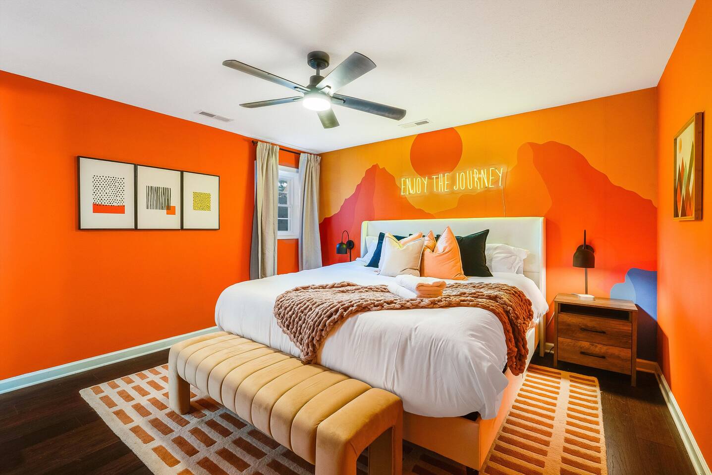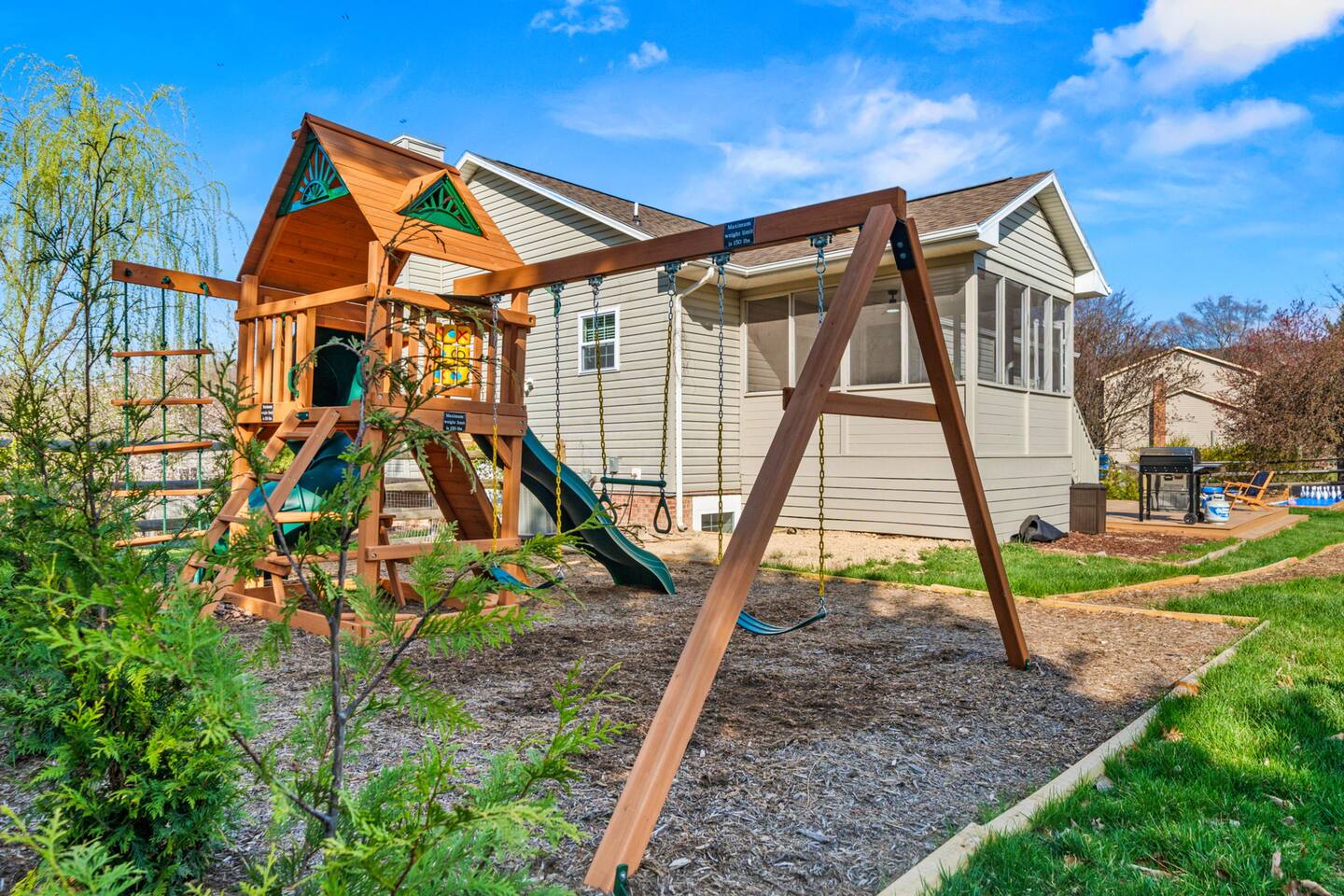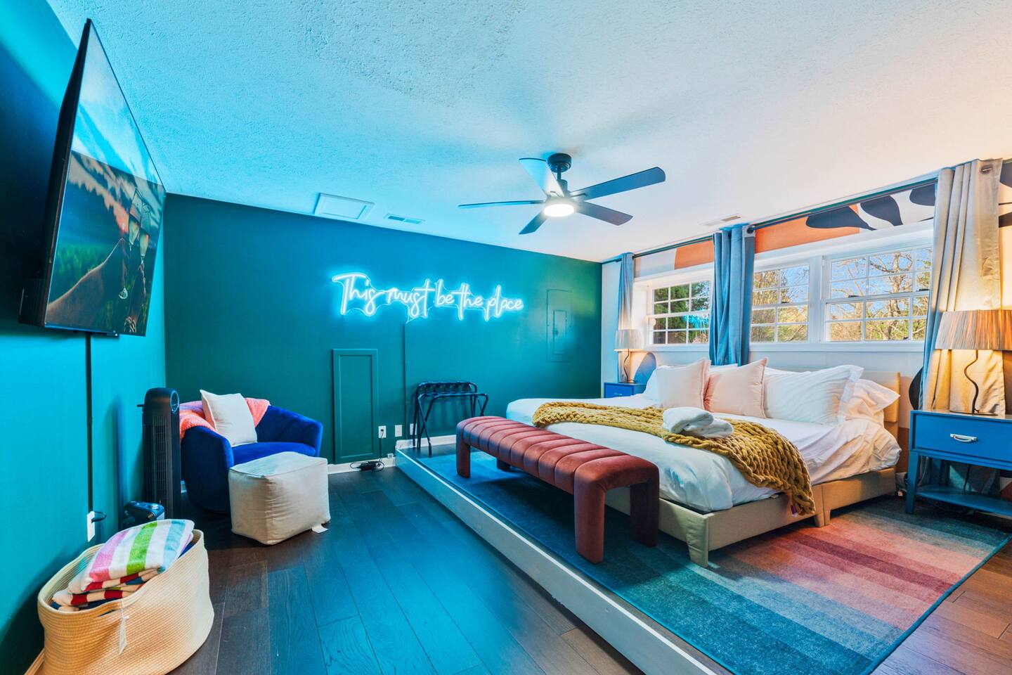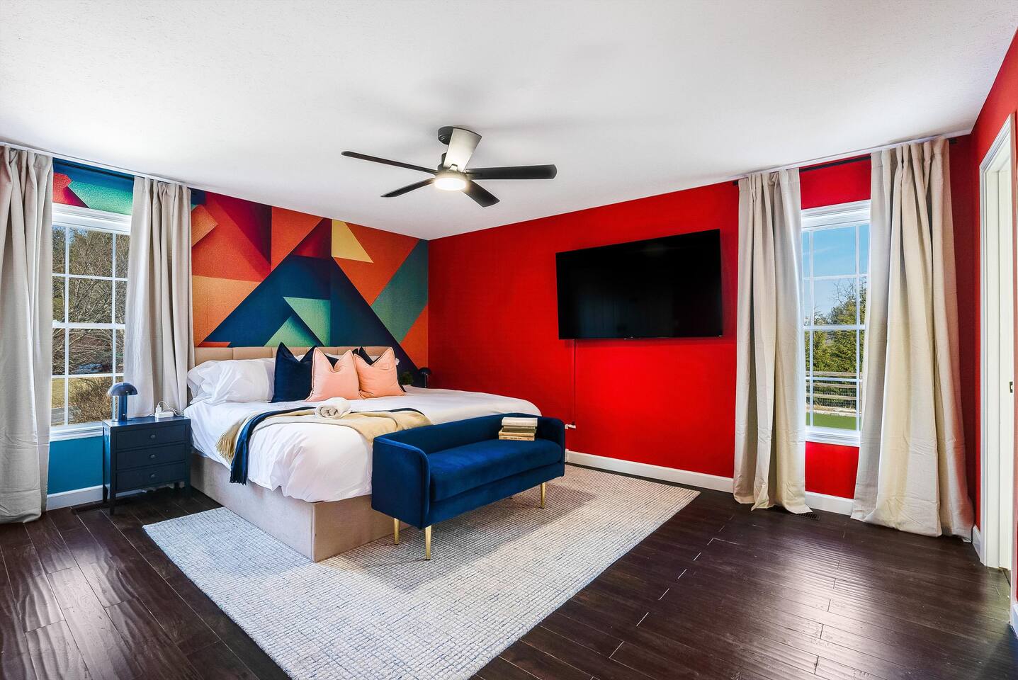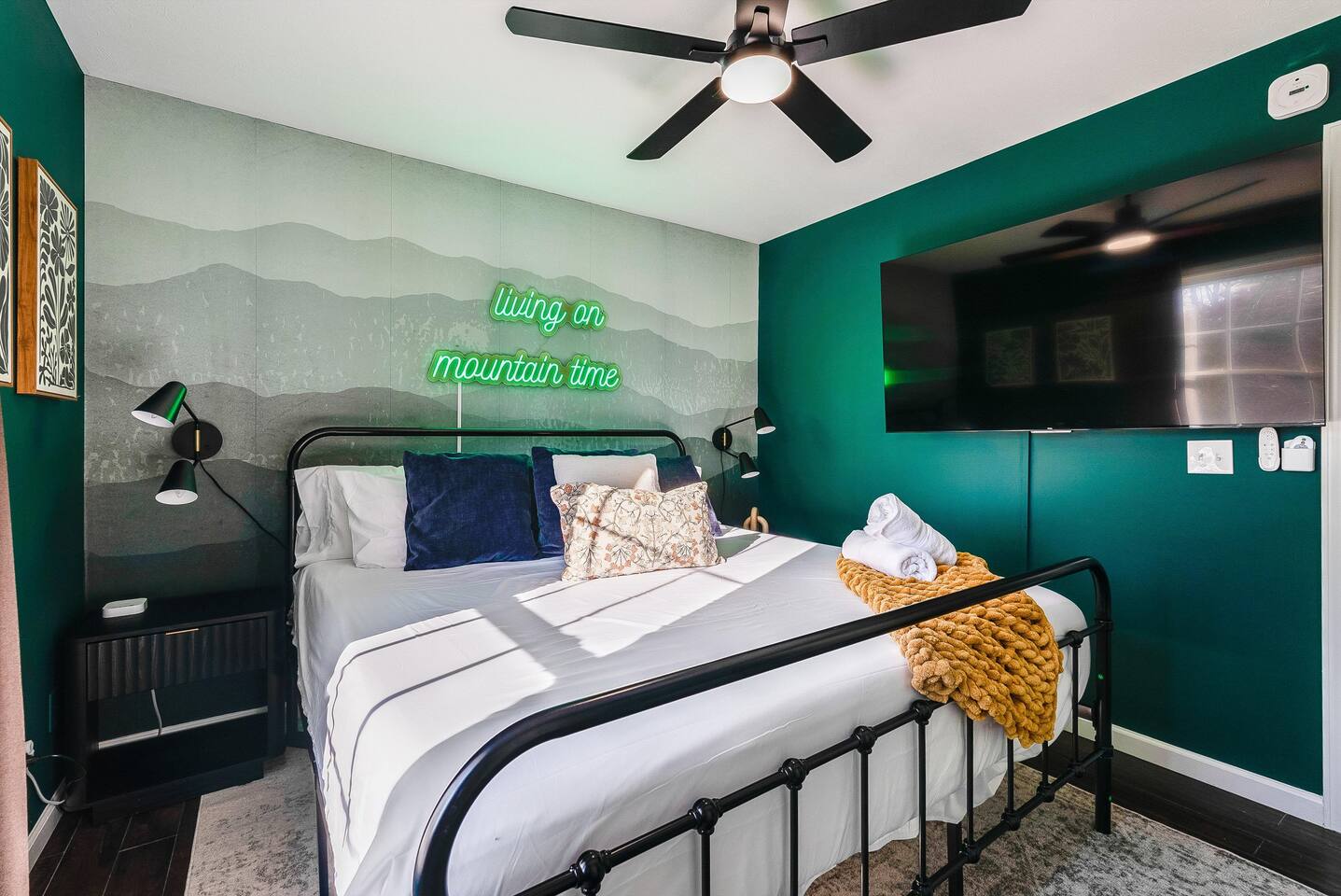 KEY FEATURES: ☀ 6 beautiful bedrooms; 3 kings, 3 queens, & 2 full beds ☀ 2.5 bathrooms ☀ Modern kitchen with new, stainless steel appliances ☀ Open living room with lots of comfy seating & smart TV ☀ Dining room with seating to comfortably accommodate 10 (+ 4 seats in the screened in porch) ☀ AMAZING game room; pool table, poker table, arcade games & more! ☀ One-of-a-kind CUSTOM movie theater, with huge projector screen & classic movie theater seats! ☀ Beautiful, private, fully-fenced backyard, including a hot tub, fire pit, mini golf and more! Here Are A Few Kind Words From Our Past Guests: “This was a great place to stay! The morning light through the windows was so beautiful. Overall, just a relaxing experience. The hosts were super responsive whenever I had a question. I would stay again!” - Emily “Sabrina was very accommodating and communicative. the house is beautiful and very comfortable, close to nature hikes.” - Jennifer “This place was lovely! Exactly as pictured! Very clean and excellent host experience!!! I plan to come back again!” - Regina ☆☆ BEDROOMS ☆☆ There are 6 gorgeous bedrooms throughout this home, each with their own smart TV! You'll find 3 bedrooms on the main floor. The master bedroom has a king bed & private ensuite bathroom. The second bedroom has another king bed, while the third has a queen-over-queen bunk bed. On the bottom floor, the fourth bedroom has a king, the fifth bedroom has a queen, and the sixth has a custom full-over-full bunk bed with a SLIDE! You have to see it to believe it! ☆☆ BATHROOMS ☆☆ This home has 2 and a half bathrooms. The upstairs master ensuite bathroom has two sinks, a toilet, and shower/tub combo. Right down the hall, the second bathroom has 1 sink, a toilet, and a walk-in shower only. Downstairs, the half bathroom is accessible off of the queen bedroom & game room, with a sink & toilet only. ☆☆ KITCHEN & DINING ☆☆ The kitchen is located right off of the main living areas, and is loaded with all new stainless steel appliances & a coffee station (including a Keurig & coffee pods). The dining room is right next to the kitchen, with enough seating to comfortably fit 10 people, plus additional dining space in the private back screened in porch! ☆☆ LIVING ROOM ☆☆ In the living room, you’ll be greeted with high vaulted ceilings, lots of comfy seating, a big smart TV, a fireplace, and gorgeous, colorful design along with a massive, fun mural. This is the perfect spot to host your movie nights & games with your friends and family! ☆☆ GAME ROOM ☆☆ Keep your family and friends entertained throughout your stay in our super fun game room! With a pool table, ping pong, poker table, arcade games, pop-a-shot basketball, & a big smart TV, this is the ideal hangout spot to keep you entertained for hours! ☆☆ MOVIE THEATER ☆☆ A truly unique space! In this home, you'll have your own PRIVATE movie theater, with a HUGE projector screen and 2 rows of movie theater seating. This room will take your breath away! ☆☆ OUTDOOR SPACE ☆☆ This private back deck is everything you could ask for, and more! ☀ Hot tub ☀ Fire pit ☀ Mini golf ☀ Bowling ☀ Corn hole ☀ Jungle gym ☀ BBQ grill ☀ Outdoor dining There is so much to do here, that all of your friends & family will be thoroughly entertained throughout your entire stay. No matter the season, this backyard has it all. Book your stay with us today and you will NOT be disappointed. Get ready for a vacation you will never forget! ★☆ Book Now & Let Us Take Care Of You In Shenandoah Valley ! ☆★