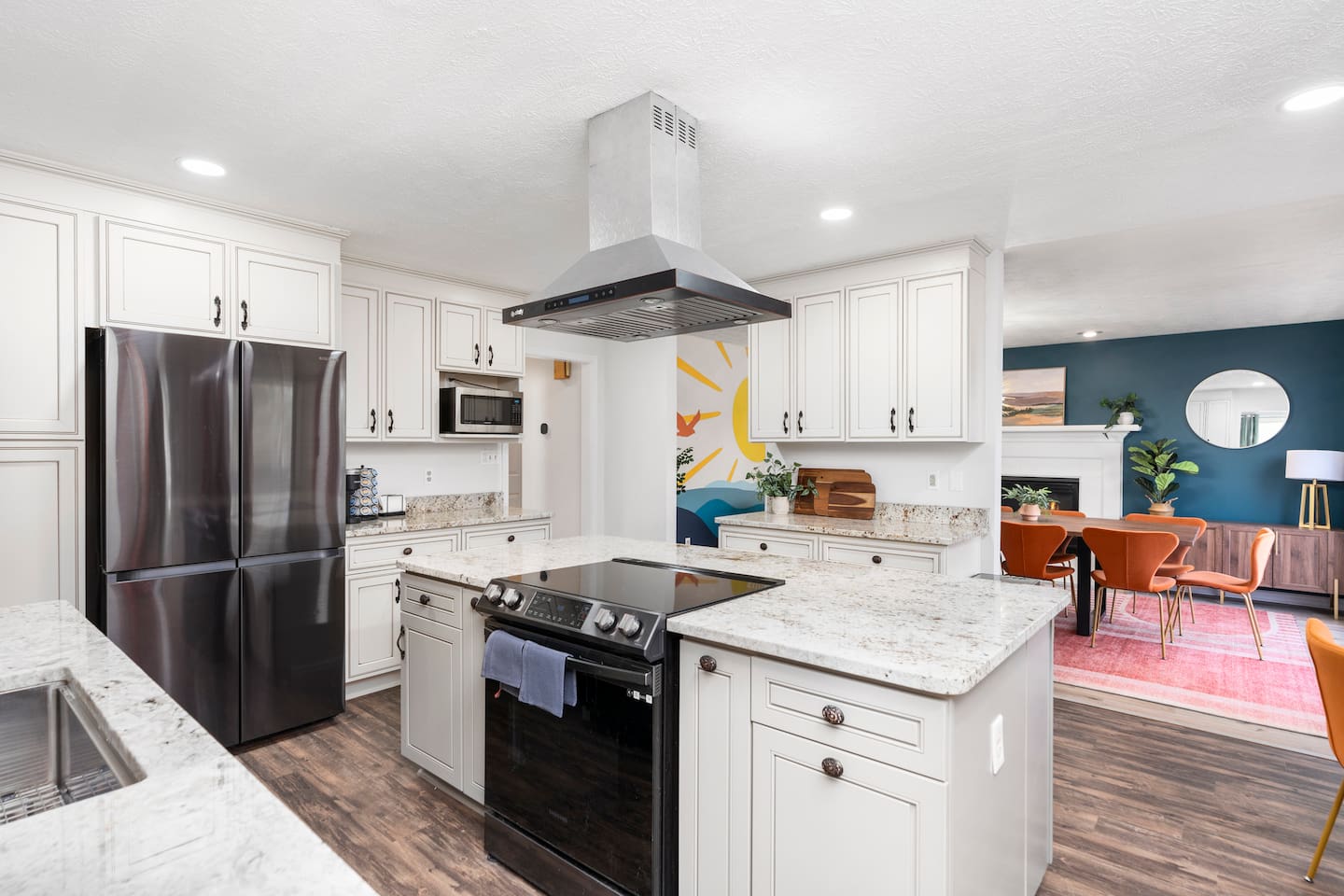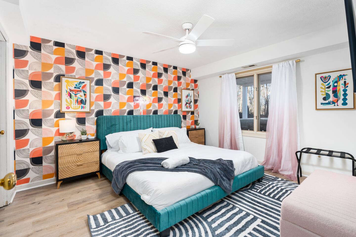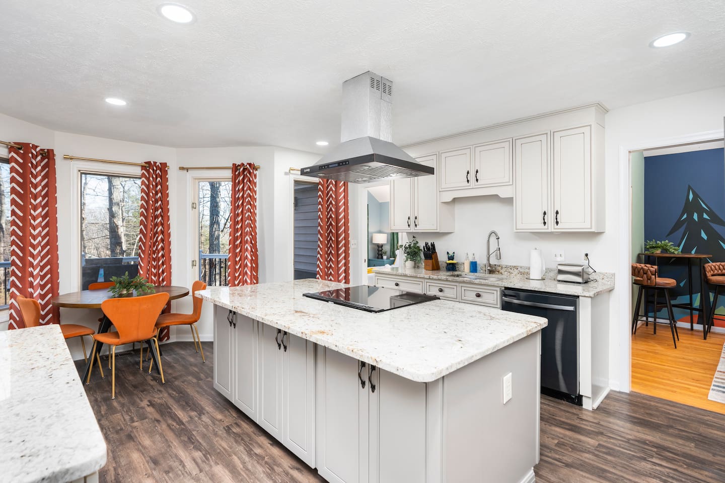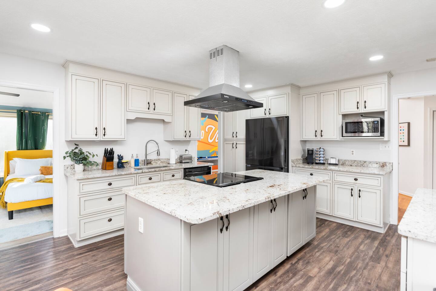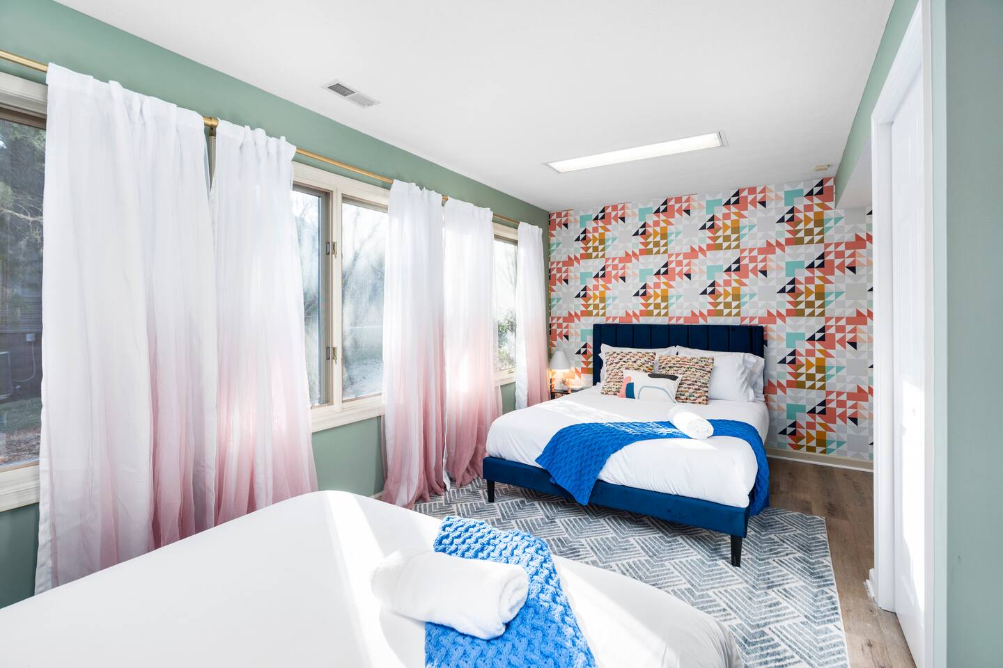 KEY FEATURES: ☀ 6 beautiful bedrooms; 4 kings & 4 queen beds ☀ 3.5 clean, modern bathrooms ☀ Modern kitchen with new, stainless steel appliances ☀ Open living room with lots of comfy seating & smart TV ☀ Dining room with seating to comfortably accommodate 16 ☀ AMAZING game rooms; pool table, shuffleboard, poker table, basketball, & much more! ☀ One-of-a-kind movie theater, with huge TV & tons of theater seating! ☀ Beautiful, private backyard; hot tub, fire pit, bowling, jungle gym, games & more! Here Are A Few Kind Words From Our Past Guests: “This was a great place to stay! The morning light through the windows was so beautiful. Overall, just a relaxing experience. The hosts were super responsive whenever I had a question. I would stay again!” - Emily “Sabrina was very accommodating and communicative. the house is beautiful and very comfortable, close to nature hikes.” - Jennifer “This place was lovely! Exactly as pictured! Very clean and excellent host experience!!! I plan to come back again!” - Regina ☆☆ BEDROOMS ☆☆ There are 6 gorgeous bedrooms throughout this home. Four of the bedrooms have one king bed in each. The 5th and 6th bedrooms have two queen beds in each. ☆☆ BATHROOMS ☆☆ This home has 3 full bathrooms & one half bath. On the first level, the hallway bathroom has 1 sink, toilet, and a shower/tub combo. On the main level there is a half bathroom with a sink & toilet only. On the top level, the master bedroom has a private ensuite bathroom, with two sinks, a toilet, walk-in shower, & luxurious soaking tub. The final bathroom on this floor is a Jack-n-Jill, with 2 sinks, a toilet, & shower/tub combo. ☆☆ KITCHEN & DINING ☆☆ The modern kitchen is located right off of the main living areas, and is loaded with all new stainless steel appliances & a coffee station (including a Keurig & coffee pods). The dining room is right next to the kitchen, with enough seating to comfortably fit 16 people between the large dining table & breakfast nook seating. ☆☆ LIVING ROOM ☆☆ In the living room, you’ll be greeted with lots of comfy seating, a big smart TV, and gorgeous, colorful design along with a massive, fun mural. This is the perfect spot to host your movie nights & games with your friends and family! ☆☆ GAME ROOM ☆☆ Keep your family and friends entertained throughout your stay in our amenity-filled game rooms! Pool table, Pop-a-Shot basketball, shuffle board, poker table, air hockey, arcade games, card games, a big smart TV, & comfy seating. Whether your reason for staying is to explore the town or stay at home and relax, this place will be the perfect spot to unwind! ☆☆ MOVIE THEATER ☆☆ A truly unique space! In this home, you'll find a private movie theater, complete with classic theater seating, a big, 75 inch TV, and true theater ambiance. ☆☆ OUTDOOR SPACE ☆☆ This backyard is everything you could ask for, and more! ☀ Hot tub ☀ TWO fire pits ☀ Bowling ☀ Jungle gym ☀ Mini golf ☀ Corn hole ☀ Giant Connect 4 ☀ BBQ grill ☀ Comfy lounge seating ☀ Outdoor dining There is so much to do here, that all of your friends & family will be thoroughly entertained throughout your entire stay. No matter the season, this backyard has it all. Book your stay with us today and you will NOT be disappointed. Get ready for a vacation you will never forget! ★☆ Book Now & Let Us Take Care Of You In Shenandoah Valley ! ☆★