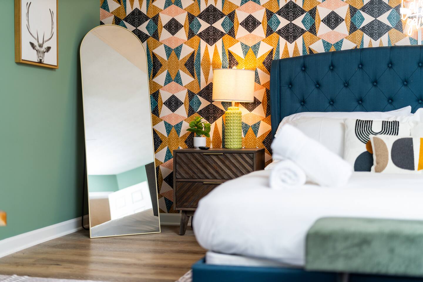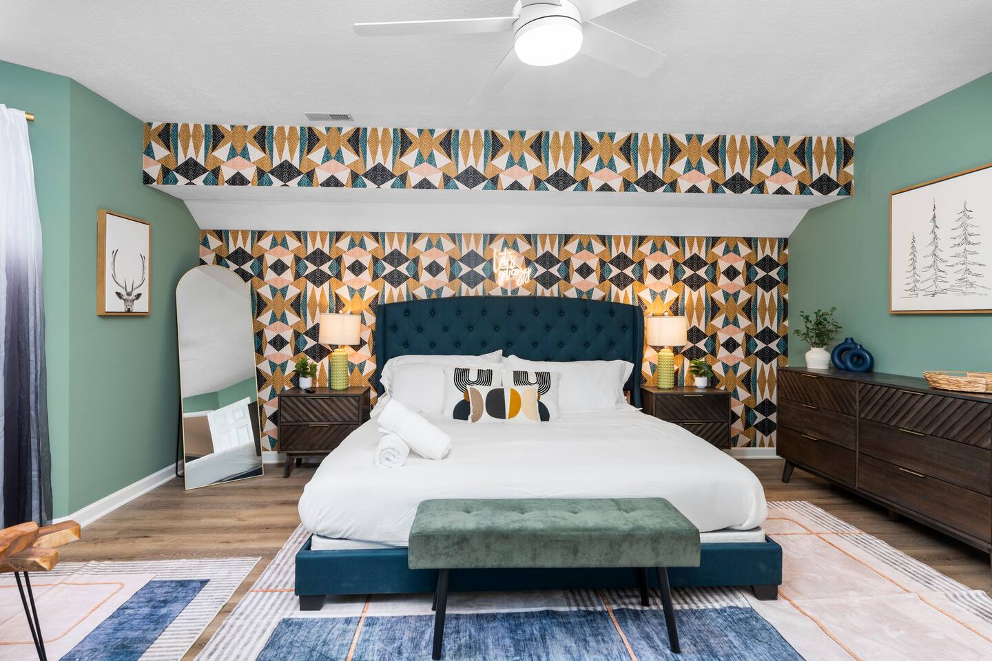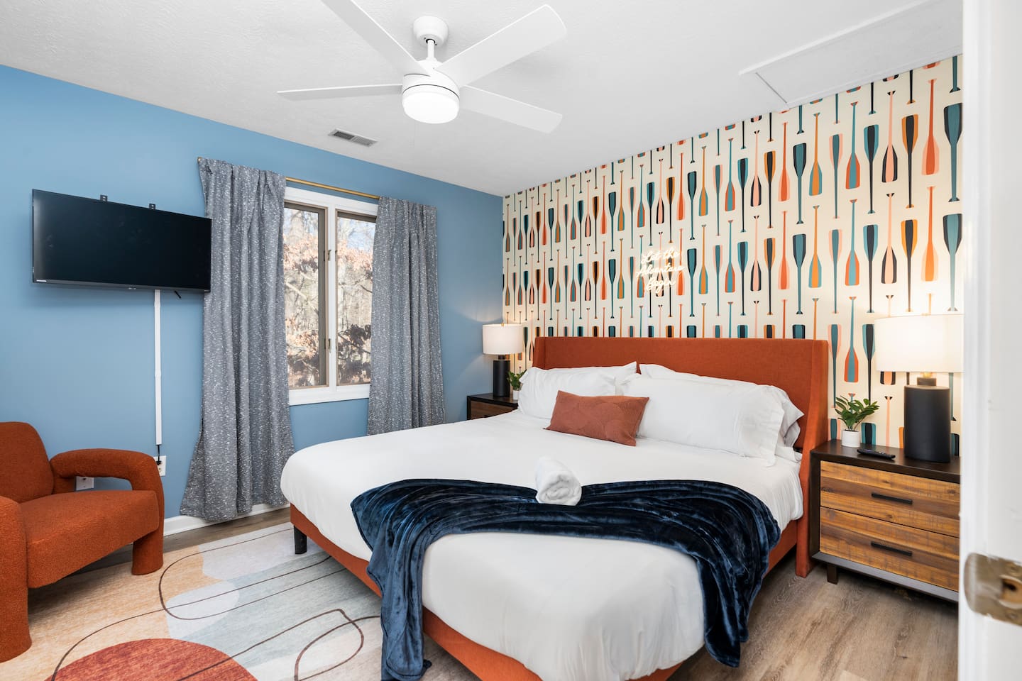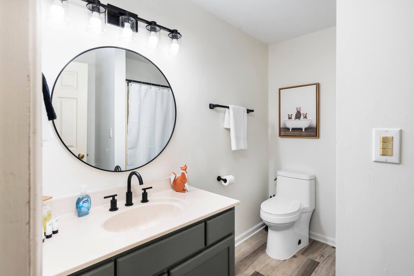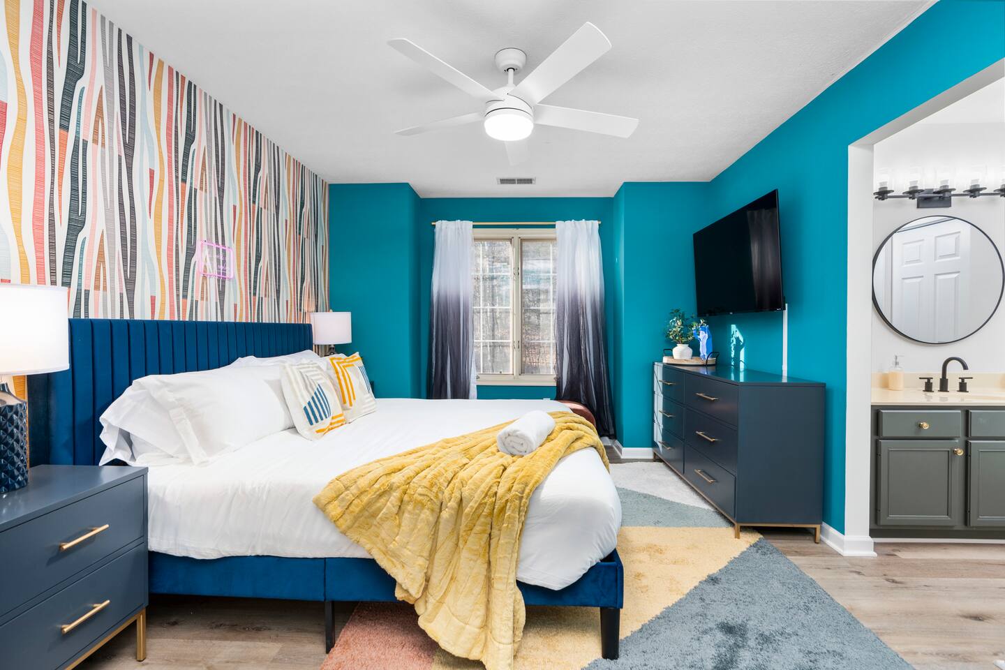 KEY FEATURES: ☀ 6 beautiful bedrooms; 4 kings & 4 queen beds ☀ 3.5 clean, modern bathrooms ☀ Modern kitchen with new, stainless steel appliances ☀ Open living room with lots of comfy seating & smart TV ☀ Dining room with seating to comfortably accommodate 16 ☀ AMAZING game rooms; pool table, shuffleboard, poker table, basketball, & much more! ☀ One-of-a-kind movie theater, with huge TV & tons of theater seating! ☀ Beautiful, private backyard; hot tub, fire pit, bowling, jungle gym, games & more! Here Are A Few Kind Words From Our Past Guests: “This was a great place to stay! The morning light through the windows was so beautiful. Overall, just a relaxing experience. The hosts were super responsive whenever I had a question. I would stay again!” - Emily “Sabrina was very accommodating and communicative. the house is beautiful and very comfortable, close to nature hikes.” - Jennifer “This place was lovely! Exactly as pictured! Very clean and excellent host experience!!! I plan to come back again!” - Regina ☆☆ BEDROOMS ☆☆ There are 6 gorgeous bedrooms throughout this home. Four of the bedrooms have one king bed in each. The 5th and 6th bedrooms have two queen beds in each. ☆☆ BATHROOMS ☆☆ This home has 3 full bathrooms & one half bath. On the first level, the hallway bathroom has 1 sink, toilet, and a shower/tub combo. On the main level there is a half bathroom with a sink & toilet only. On the top level, the master bedroom has a private ensuite bathroom, with two sinks, a toilet, walk-in shower, & luxurious soaking tub. The final bathroom on this floor is a Jack-n-Jill, with 2 sinks, a toilet, & shower/tub combo. ☆☆ KITCHEN & DINING ☆☆ The modern kitchen is located right off of the main living areas, and is loaded with all new stainless steel appliances & a coffee station (including a Keurig & coffee pods). The dining room is right next to the kitchen, with enough seating to comfortably fit 16 people between the large dining table & breakfast nook seating. ☆☆ LIVING ROOM ☆☆ In the living room, you’ll be greeted with lots of comfy seating, a big smart TV, and gorgeous, colorful design along with a massive, fun mural. This is the perfect spot to host your movie nights & games with your friends and family! ☆☆ GAME ROOM ☆☆ Keep your family and friends entertained throughout your stay in our amenity-filled game rooms! Pool table, Pop-a-Shot basketball, shuffle board, poker table, air hockey, arcade games, card games, a big smart TV, & comfy seating. Whether your reason for staying is to explore the town or stay at home and relax, this place will be the perfect spot to unwind! ☆☆ MOVIE THEATER ☆☆ A truly unique space! In this home, you'll find a private movie theater, complete with classic theater seating, a big, 75 inch TV, and true theater ambiance. ☆☆ OUTDOOR SPACE ☆☆ This backyard is everything you could ask for, and more! ☀ Hot tub ☀ TWO fire pits ☀ Bowling ☀ Jungle gym ☀ Mini golf ☀ Corn hole ☀ Giant Connect 4 ☀ BBQ grill ☀ Comfy lounge seating ☀ Outdoor dining There is so much to do here, that all of your friends & family will be thoroughly entertained throughout your entire stay. No matter the season, this backyard has it all. Book your stay with us today and you will NOT be disappointed. Get ready for a vacation you will never forget! ★☆ Book Now & Let Us Take Care Of You In Shenandoah Valley ! ☆★