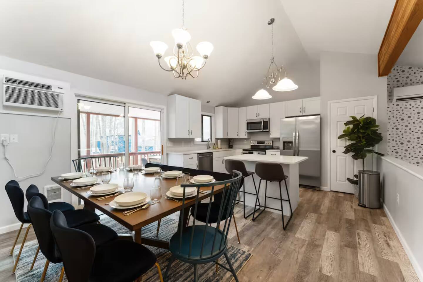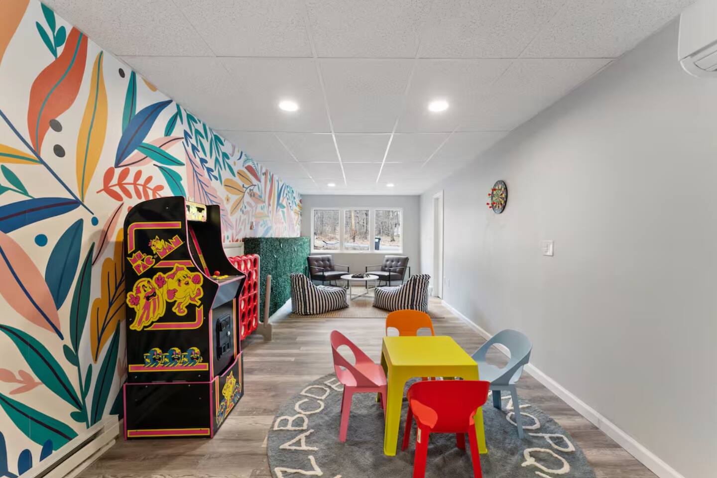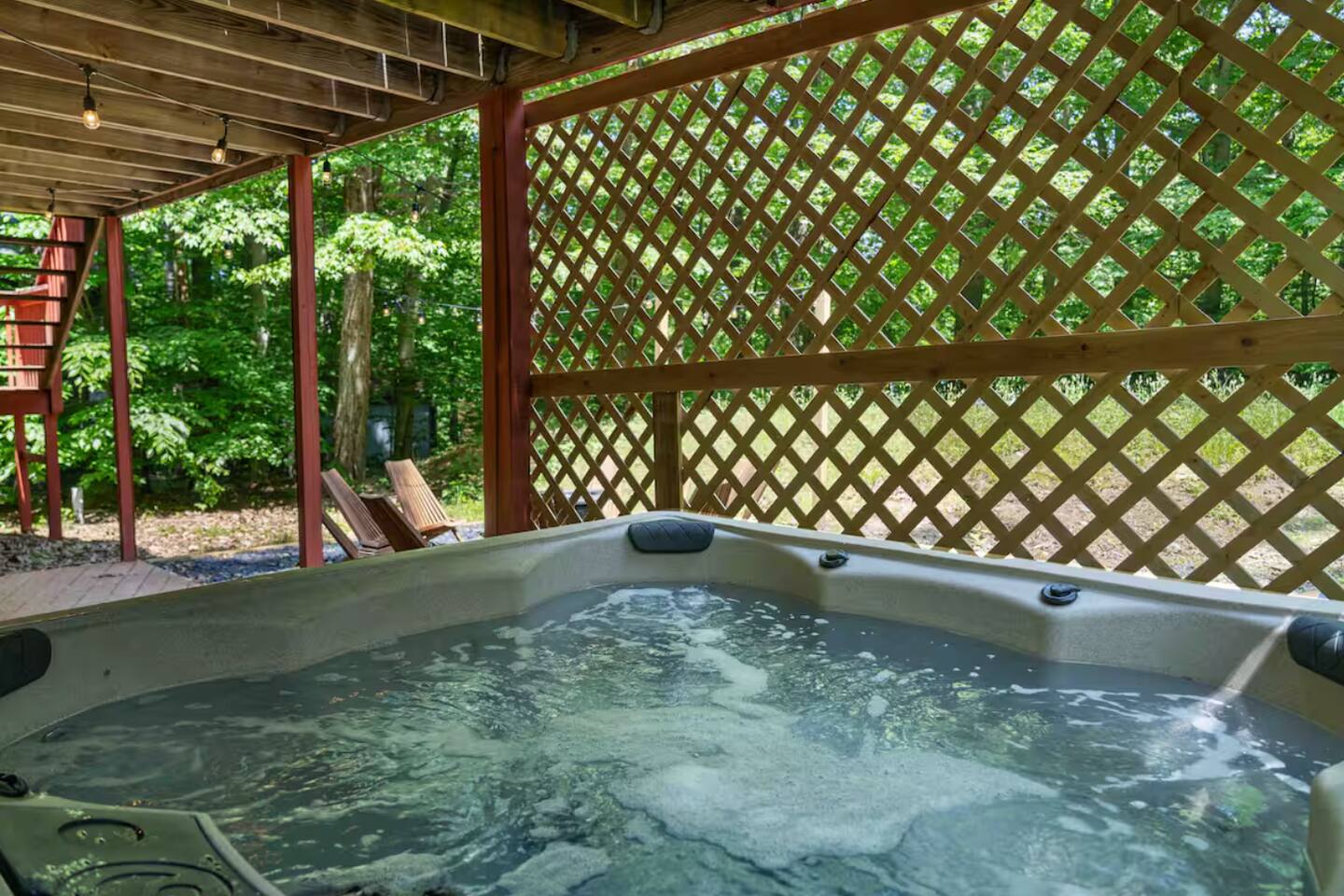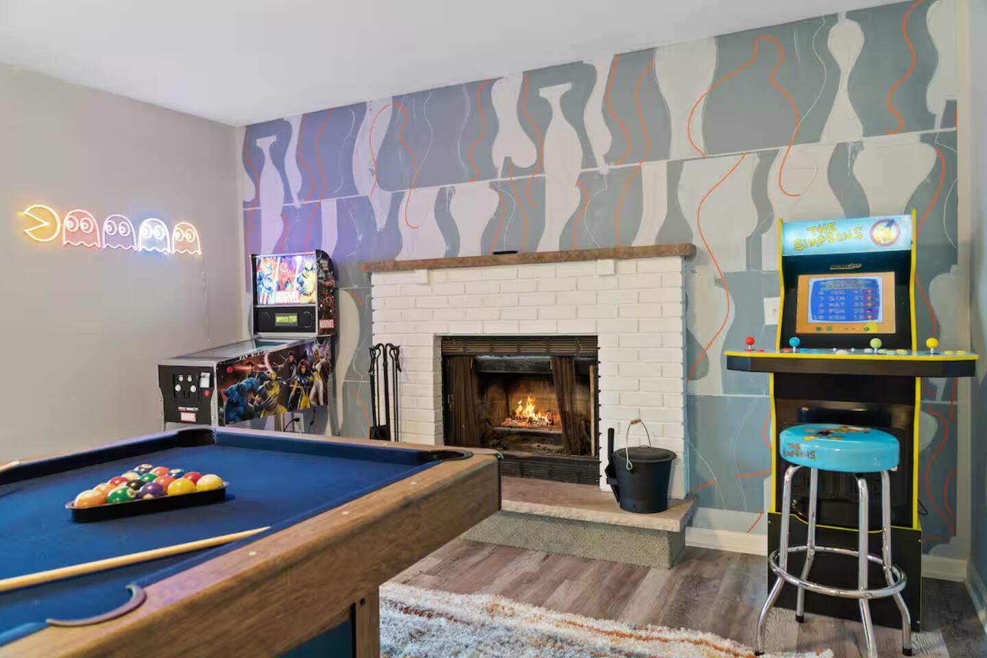 Modern Poconos cabin with TONS of games & amenities! Hot tub, fire pit, pool table, arcade games, two game rooms, and modern upgrades throughout the entire home! This four bedroom cabin has enough space to comfortably accommodate 10 people, with plenty of entertainment for everyone! Enjoy the beauty of the Poconos nature right here at home during your vacation! 10 min – Mount Pocono | 15 min – Kalahari | 30 min – Big Boulder Note: Wood-burning fire pit Experience the Poconos!