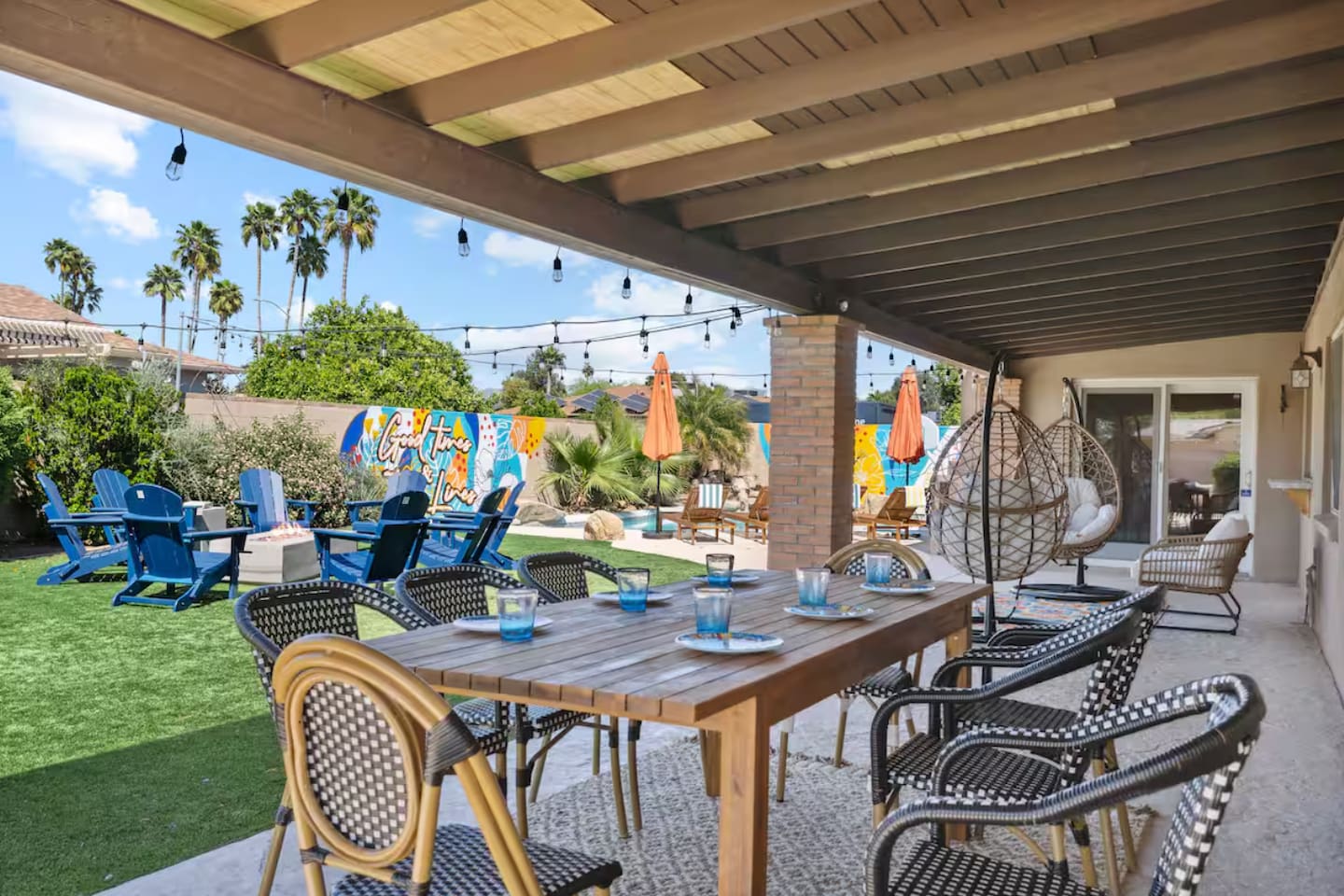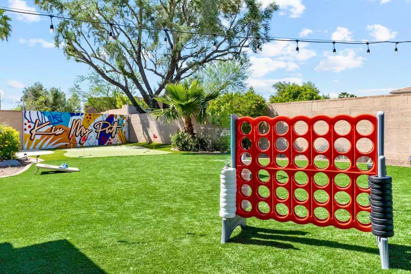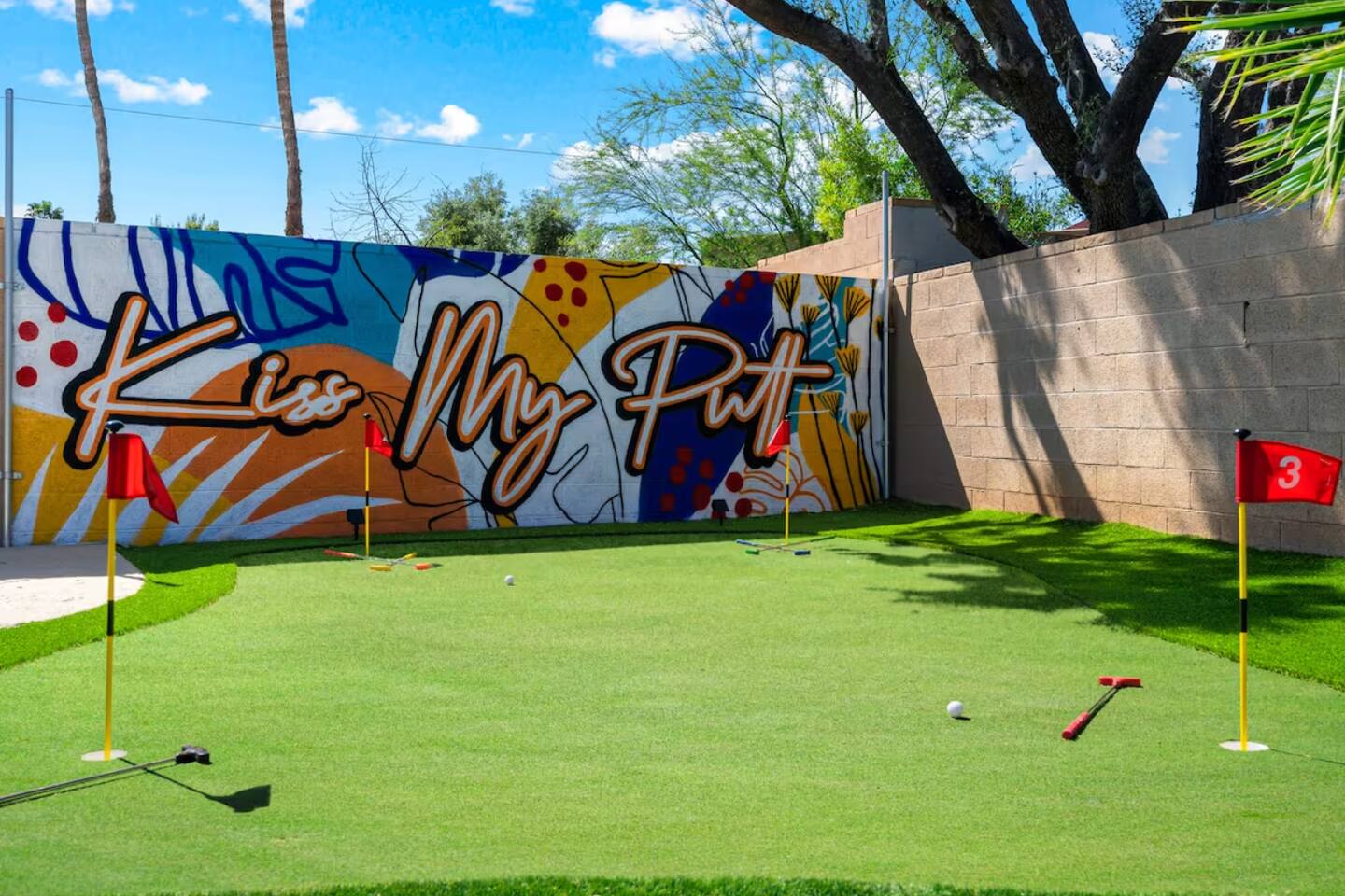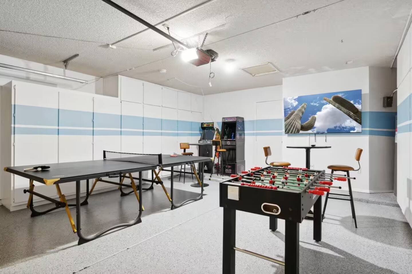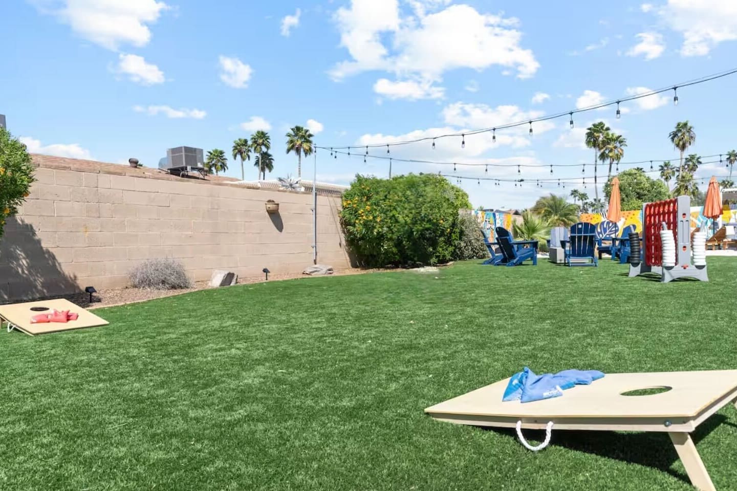 KEY FEATURES: ☀ 4 beautiful bedrooms; 1 king, 1 queen, and 4 full beds (including one full-over-full bunk bed) ☀ 2 full bathrooms ☀ Modern kitchen with new, stainless steel appliances ☀ Open living room with lots of comfy seating & smart TV ☀ Dining room with seating to comfortably accommodate 8 (plus countertop seating & outdoor dining) ☀ Fully-loaded game rooms; pool table, ping pong, arcade games, & more! ☀ AMAZING backyard; heated pool, hot tub, mini golf, fire pit, lots of games, & more! Here Are A Few Kind Words From Our Past Guests: “This was a great place to stay! The morning light through the windows was so beautiful. Overall, just a relaxing experience. The hosts were super responsive whenever I had a question. I would stay again!” - Emily “Sabrina was very accommodating and communicative. the house is beautiful and very comfortable, close to nature hikes.” - Jennifer “This place was lovely! Exactly as pictured! Very clean and excellent host experience!!! I plan to come back again!” - Regina ☆☆ BEDROOMS ☆☆ This home boasts 4 beautiful bedrooms, all carrying through the Spanish theme of the home. The master bedroom has a king bed, smart TV, direct access to the unbelievable backyard, and an attached private ensuite bathroom. Down the hall, one bedroom has a queen bed, while the last two bedrooms have two full beds in each. ☆☆ BATHROOMS ☆☆ You will find two full bathrooms throughout this home. The master bathroom has two sinks, toilet, and a grand walk-in shower. The common area bathroom also has two full sinks, a toilet, and a shower/tub combo, ☆☆ KITCHEN & DINING ☆☆ The modern kitchen is located right off of the main living areas, and is loaded with all new stainless steel appliances & a coffee station (including a Keurig & coffee pods). This gorgeous kitchen overlooks the rest of the main living space, making this a great area for entertaining. The dining room is right next to the kitchen, with enough seating to comfortably fit 8 people. ☆☆ LIVING ROOM ☆☆ In the living room, you’ll be greeted with lots of comfy seating, a big smart TV, and direct access to all the fun that awaits in the backyard. This space is set up in the center of the home, between the amazing outdoors, the open kitchen, and the multiple game rooms, making this a great layout to connect the whole group together. This is the perfect spot to host your movie nights & games with your friends and family! ☆☆ GAME ROOMS ☆☆ Our home has not just one, but TWO game rooms! You will be greeted with the first game room as you enter the home, filled with a pool table, smart TV, and a fun, Spanish-style mural. On the other end of the home, the second game room is PACKED with entertainment. Ping pong, foosball, arcade games, high-top seating, and a smart TV. When you're not enjoying all the amenities in the backyard, you will surely be entertained indoors! ☆☆ OUTDOOR SPACE ☆☆ Not only is this backyard filled with every amenity you could ask for, but it is also masterfully designed to bring the Spanish theme to every corner of the private yard! ☀ Heated pool ☀ Hot Tub ☀ Margarita bar ☀ Mini golf ☀ Bocce ball ☀ Fire pit ☀ Corn hole ☀ Giant Connect 4 ☀ BBQ grill ☀ Sun lounging chairs ☀ Outdoor fireplace ☀ Outdoor lounge seating ☀ Outdoor dining There is so much to do here, that all of your friends & family will be thoroughly entertained throughout your entire stay. No matter the season, this backyard has it all. Book your stay with us today and you will NOT be disappointed. Get ready for a vacation you will never forget! ★☆ Book Now & Let Us Take Care Of You In Scottsdale! ☆★