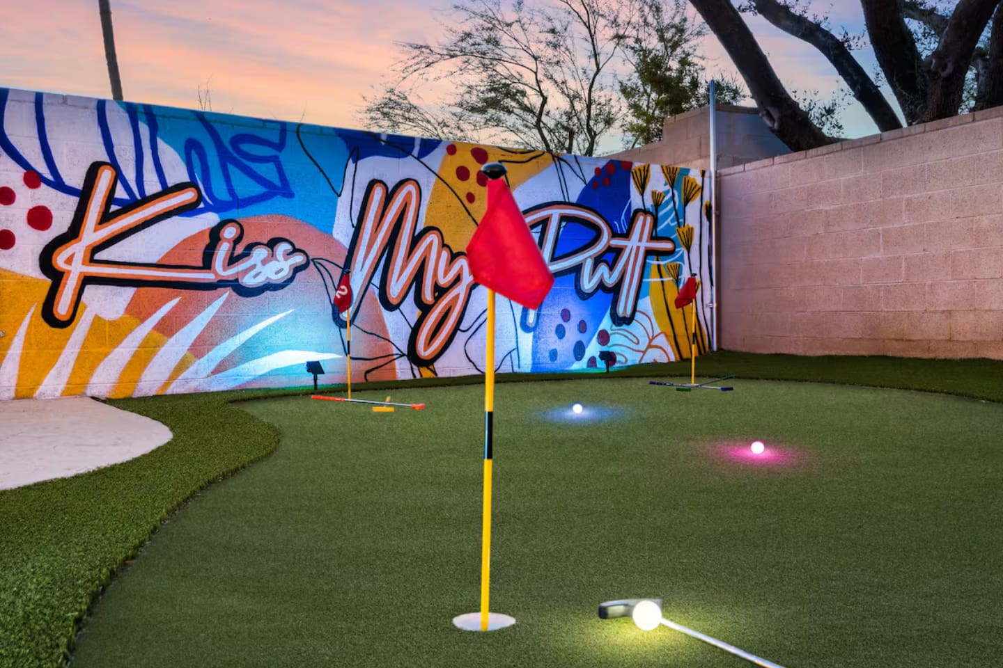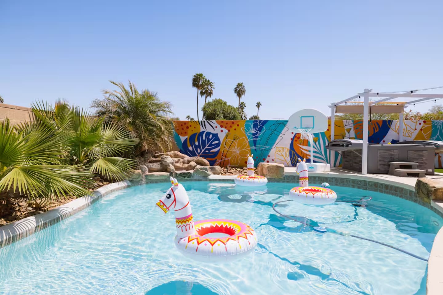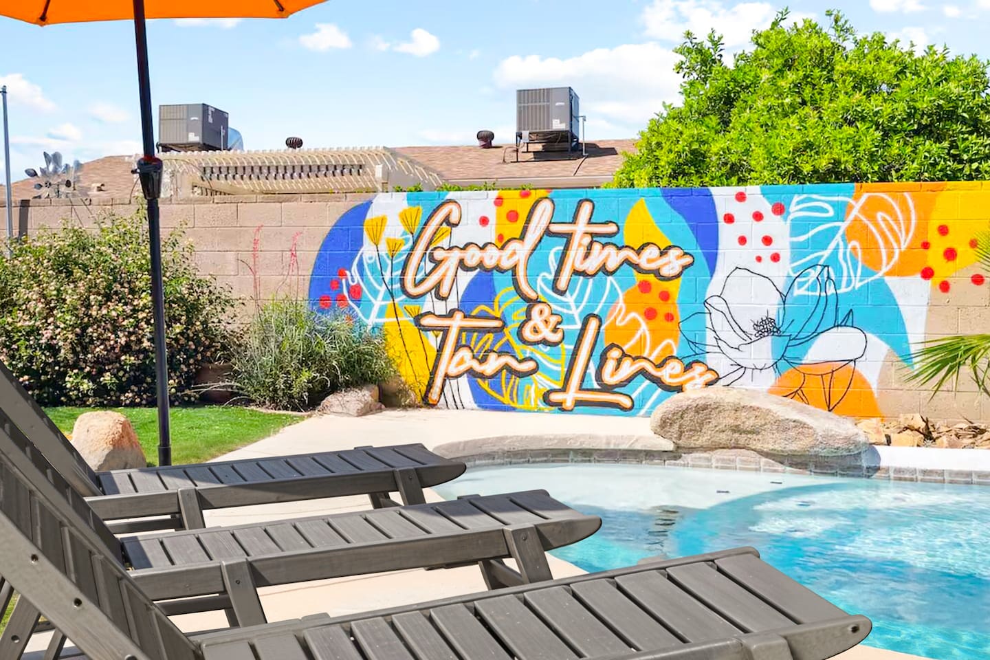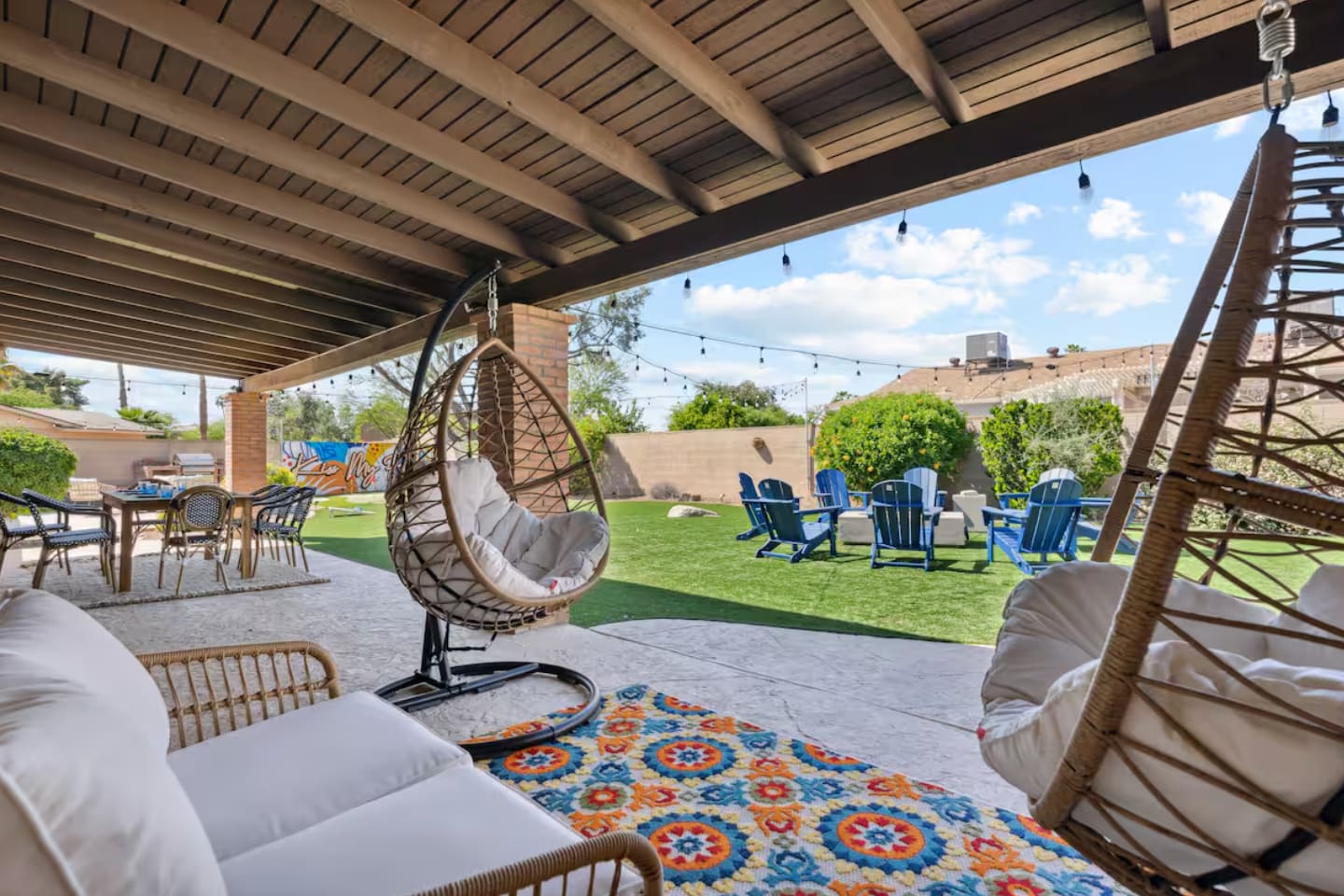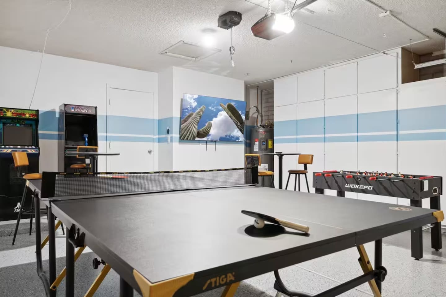 KEY FEATURES: ☀ 4 beautiful bedrooms; 1 king, 1 queen, and 4 full beds (including one full-over-full bunk bed) ☀ 2 full bathrooms ☀ Modern kitchen with new, stainless steel appliances ☀ Open living room with lots of comfy seating & smart TV ☀ Dining room with seating to comfortably accommodate 8 (plus countertop seating & outdoor dining) ☀ Fully-loaded game rooms; pool table, ping pong, arcade games, & more! ☀ AMAZING backyard; heated pool, hot tub, mini golf, fire pit, lots of games, & more! Here Are A Few Kind Words From Our Past Guests: “This was a great place to stay! The morning light through the windows was so beautiful. Overall, just a relaxing experience. The hosts were super responsive whenever I had a question. I would stay again!” - Emily “Sabrina was very accommodating and communicative. the house is beautiful and very comfortable, close to nature hikes.” - Jennifer “This place was lovely! Exactly as pictured! Very clean and excellent host experience!!! I plan to come back again!” - Regina ☆☆ BEDROOMS ☆☆ This home boasts 4 beautiful bedrooms, all carrying through the Spanish theme of the home. The master bedroom has a king bed, smart TV, direct access to the unbelievable backyard, and an attached private ensuite bathroom. Down the hall, one bedroom has a queen bed, while the last two bedrooms have two full beds in each. ☆☆ BATHROOMS ☆☆ You will find two full bathrooms throughout this home. The master bathroom has two sinks, toilet, and a grand walk-in shower. The common area bathroom also has two full sinks, a toilet, and a shower/tub combo, ☆☆ KITCHEN & DINING ☆☆ The modern kitchen is located right off of the main living areas, and is loaded with all new stainless steel appliances & a coffee station (including a Keurig & coffee pods). This gorgeous kitchen overlooks the rest of the main living space, making this a great area for entertaining. The dining room is right next to the kitchen, with enough seating to comfortably fit 8 people. ☆☆ LIVING ROOM ☆☆ In the living room, you’ll be greeted with lots of comfy seating, a big smart TV, and direct access to all the fun that awaits in the backyard. This space is set up in the center of the home, between the amazing outdoors, the open kitchen, and the multiple game rooms, making this a great layout to connect the whole group together. This is the perfect spot to host your movie nights & games with your friends and family! ☆☆ GAME ROOMS ☆☆ Our home has not just one, but TWO game rooms! You will be greeted with the first game room as you enter the home, filled with a pool table, smart TV, and a fun, Spanish-style mural. On the other end of the home, the second game room is PACKED with entertainment. Ping pong, foosball, arcade games, high-top seating, and a smart TV. When you're not enjoying all the amenities in the backyard, you will surely be entertained indoors! ☆☆ OUTDOOR SPACE ☆☆ Not only is this backyard filled with every amenity you could ask for, but it is also masterfully designed to bring the Spanish theme to every corner of the private yard! ☀ Heated pool ☀ Hot Tub ☀ Margarita bar ☀ Mini golf ☀ Bocce ball ☀ Fire pit ☀ Corn hole ☀ Giant Connect 4 ☀ BBQ grill ☀ Sun lounging chairs ☀ Outdoor fireplace ☀ Outdoor lounge seating ☀ Outdoor dining There is so much to do here, that all of your friends & family will be thoroughly entertained throughout your entire stay. No matter the season, this backyard has it all. Book your stay with us today and you will NOT be disappointed. Get ready for a vacation you will never forget! ★☆ Book Now & Let Us Take Care Of You In Scottsdale! ☆★