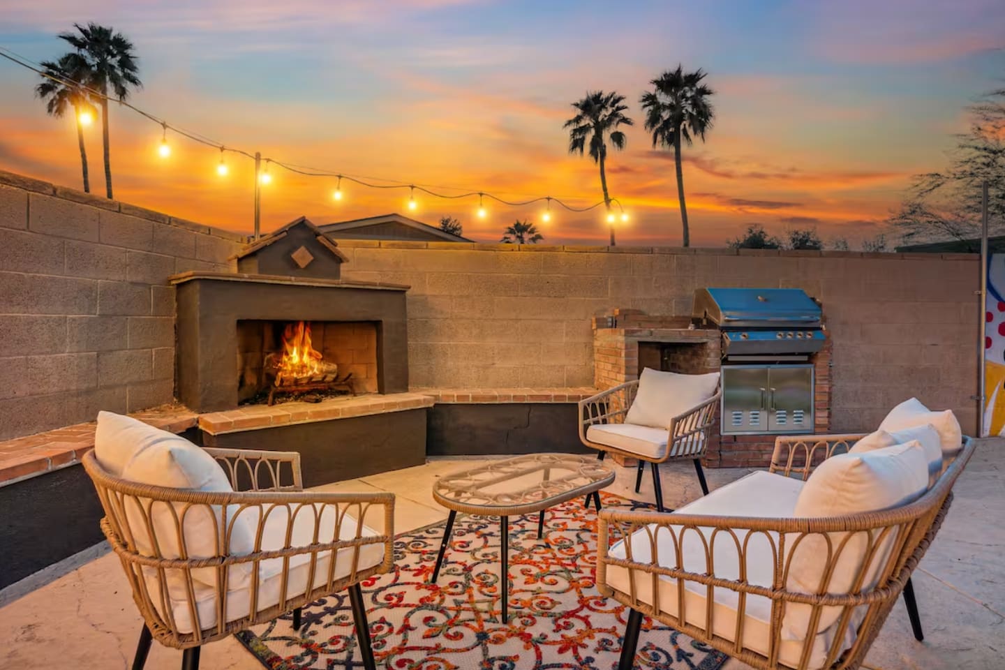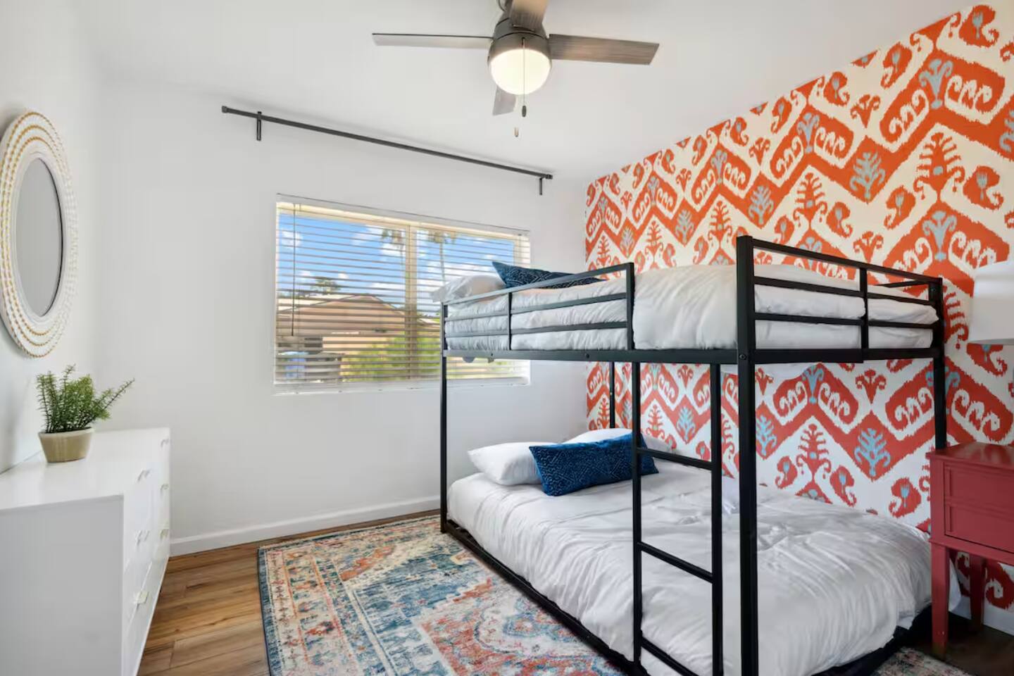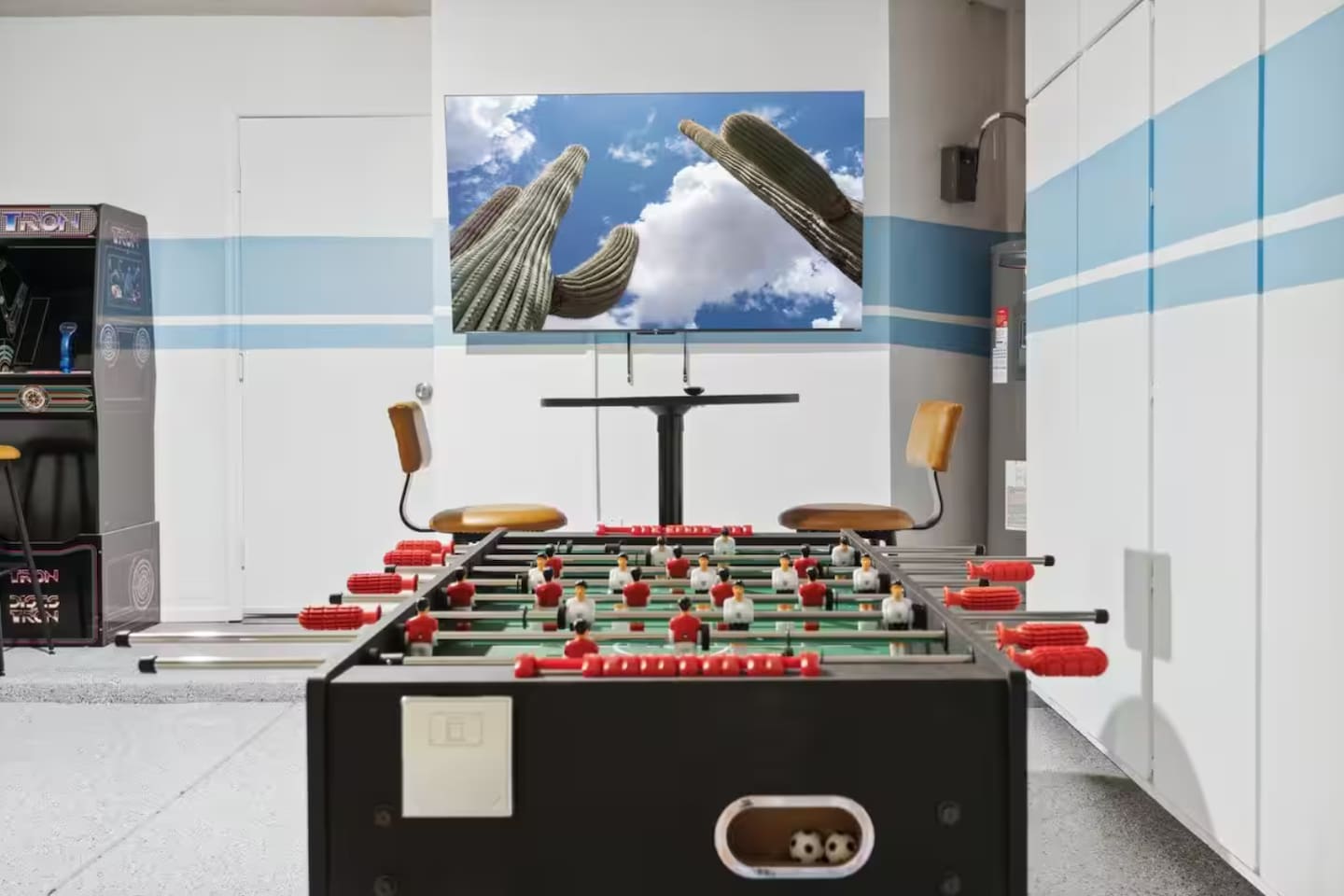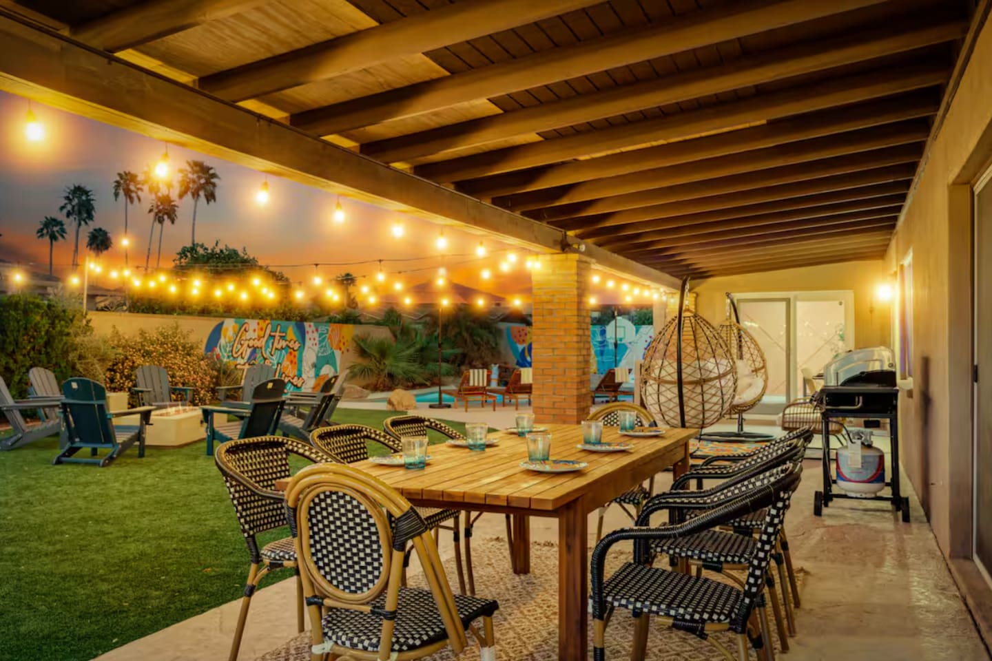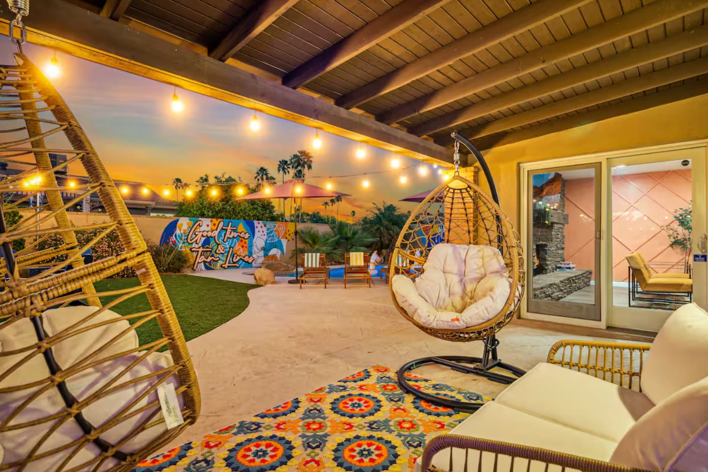 KEY FEATURES: ☀ 4 beautiful bedrooms; 1 king, 1 queen, and 4 full beds (including one full-over-full bunk bed) ☀ 2 full bathrooms ☀ Modern kitchen with new, stainless steel appliances ☀ Open living room with lots of comfy seating & smart TV ☀ Dining room with seating to comfortably accommodate 8 (plus countertop seating & outdoor dining) ☀ Fully-loaded game rooms; pool table, ping pong, arcade games, & more! ☀ AMAZING backyard; heated pool, hot tub, mini golf, fire pit, lots of games, & more! Here Are A Few Kind Words From Our Past Guests: “This was a great place to stay! The morning light through the windows was so beautiful. Overall, just a relaxing experience. The hosts were super responsive whenever I had a question. I would stay again!” - Emily “Sabrina was very accommodating and communicative. the house is beautiful and very comfortable, close to nature hikes.” - Jennifer “This place was lovely! Exactly as pictured! Very clean and excellent host experience!!! I plan to come back again!” - Regina ☆☆ BEDROOMS ☆☆ This home boasts 4 beautiful bedrooms, all carrying through the Spanish theme of the home. The master bedroom has a king bed, smart TV, direct access to the unbelievable backyard, and an attached private ensuite bathroom. Down the hall, one bedroom has a queen bed, while the last two bedrooms have two full beds in each. ☆☆ BATHROOMS ☆☆ You will find two full bathrooms throughout this home. The master bathroom has two sinks, toilet, and a grand walk-in shower. The common area bathroom also has two full sinks, a toilet, and a shower/tub combo, ☆☆ KITCHEN & DINING ☆☆ The modern kitchen is located right off of the main living areas, and is loaded with all new stainless steel appliances & a coffee station (including a Keurig & coffee pods). This gorgeous kitchen overlooks the rest of the main living space, making this a great area for entertaining. The dining room is right next to the kitchen, with enough seating to comfortably fit 8 people. ☆☆ LIVING ROOM ☆☆ In the living room, you’ll be greeted with lots of comfy seating, a big smart TV, and direct access to all the fun that awaits in the backyard. This space is set up in the center of the home, between the amazing outdoors, the open kitchen, and the multiple game rooms, making this a great layout to connect the whole group together. This is the perfect spot to host your movie nights & games with your friends and family! ☆☆ GAME ROOMS ☆☆ Our home has not just one, but TWO game rooms! You will be greeted with the first game room as you enter the home, filled with a pool table, smart TV, and a fun, Spanish-style mural. On the other end of the home, the second game room is PACKED with entertainment. Ping pong, foosball, arcade games, high-top seating, and a smart TV. When you're not enjoying all the amenities in the backyard, you will surely be entertained indoors! ☆☆ OUTDOOR SPACE ☆☆ Not only is this backyard filled with every amenity you could ask for, but it is also masterfully designed to bring the Spanish theme to every corner of the private yard! ☀ Heated pool ☀ Hot Tub ☀ Margarita bar ☀ Mini golf ☀ Bocce ball ☀ Fire pit ☀ Corn hole ☀ Giant Connect 4 ☀ BBQ grill ☀ Sun lounging chairs ☀ Outdoor fireplace ☀ Outdoor lounge seating ☀ Outdoor dining There is so much to do here, that all of your friends & family will be thoroughly entertained throughout your entire stay. No matter the season, this backyard has it all. Book your stay with us today and you will NOT be disappointed. Get ready for a vacation you will never forget! ★☆ Book Now & Let Us Take Care Of You In Scottsdale! ☆★
