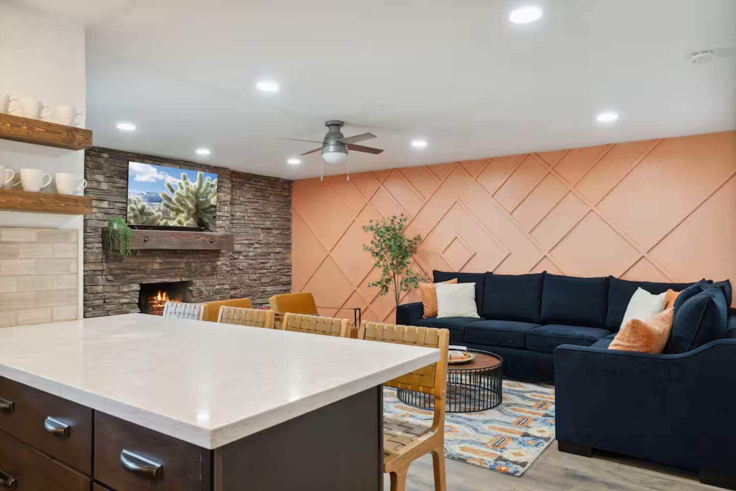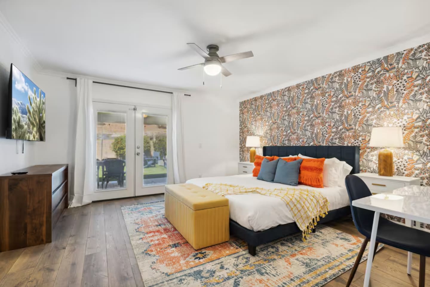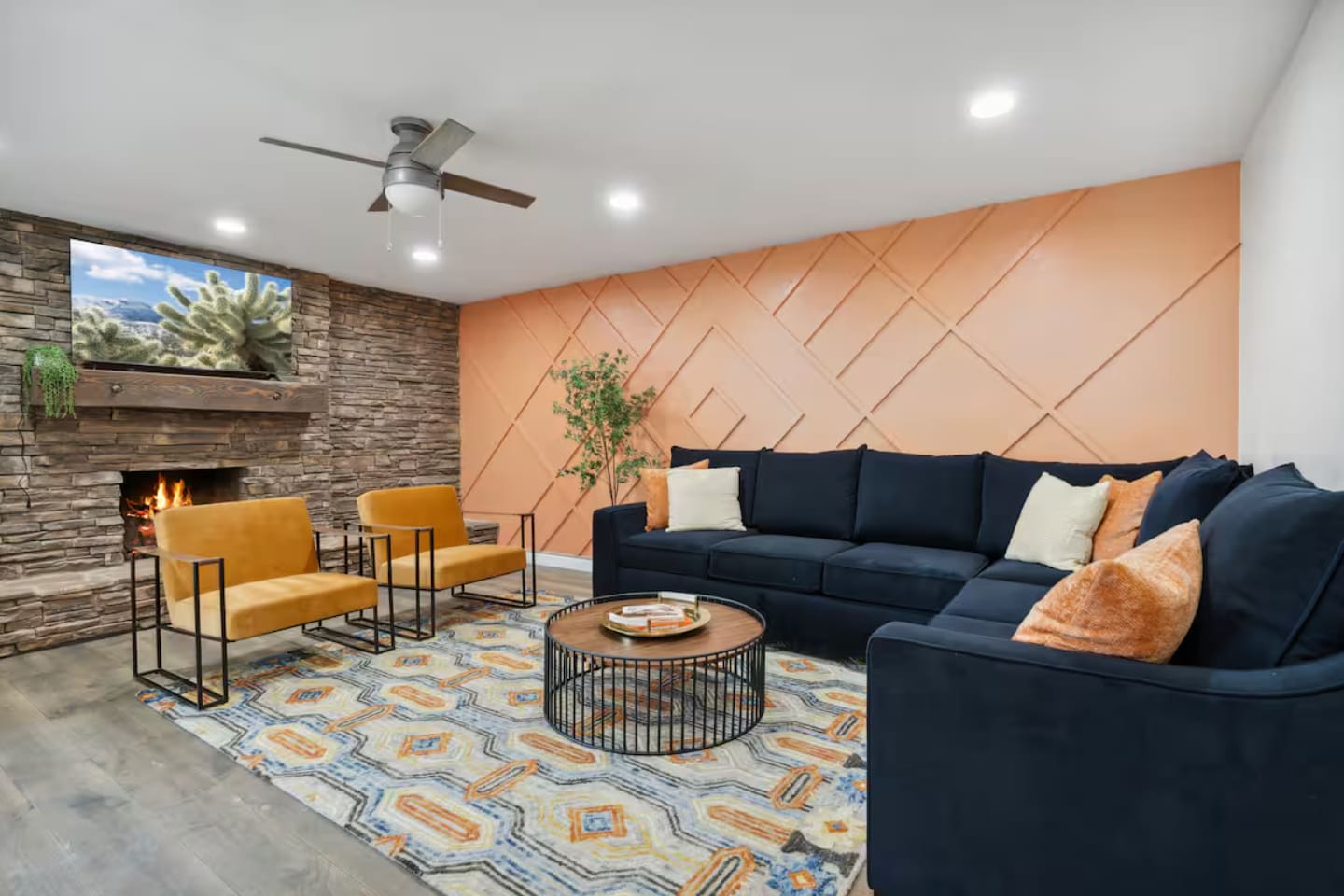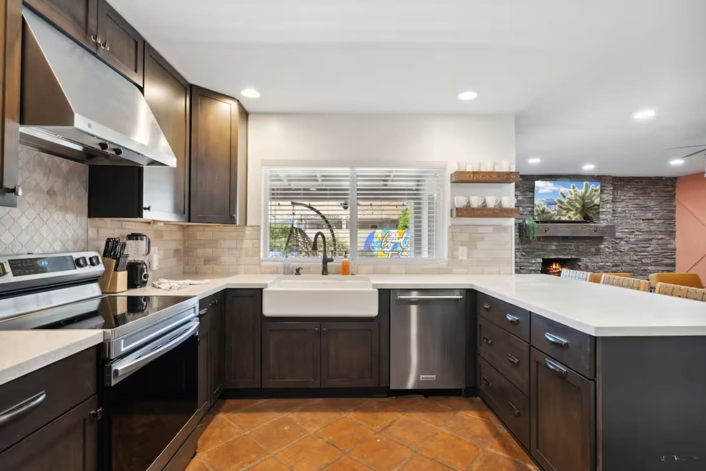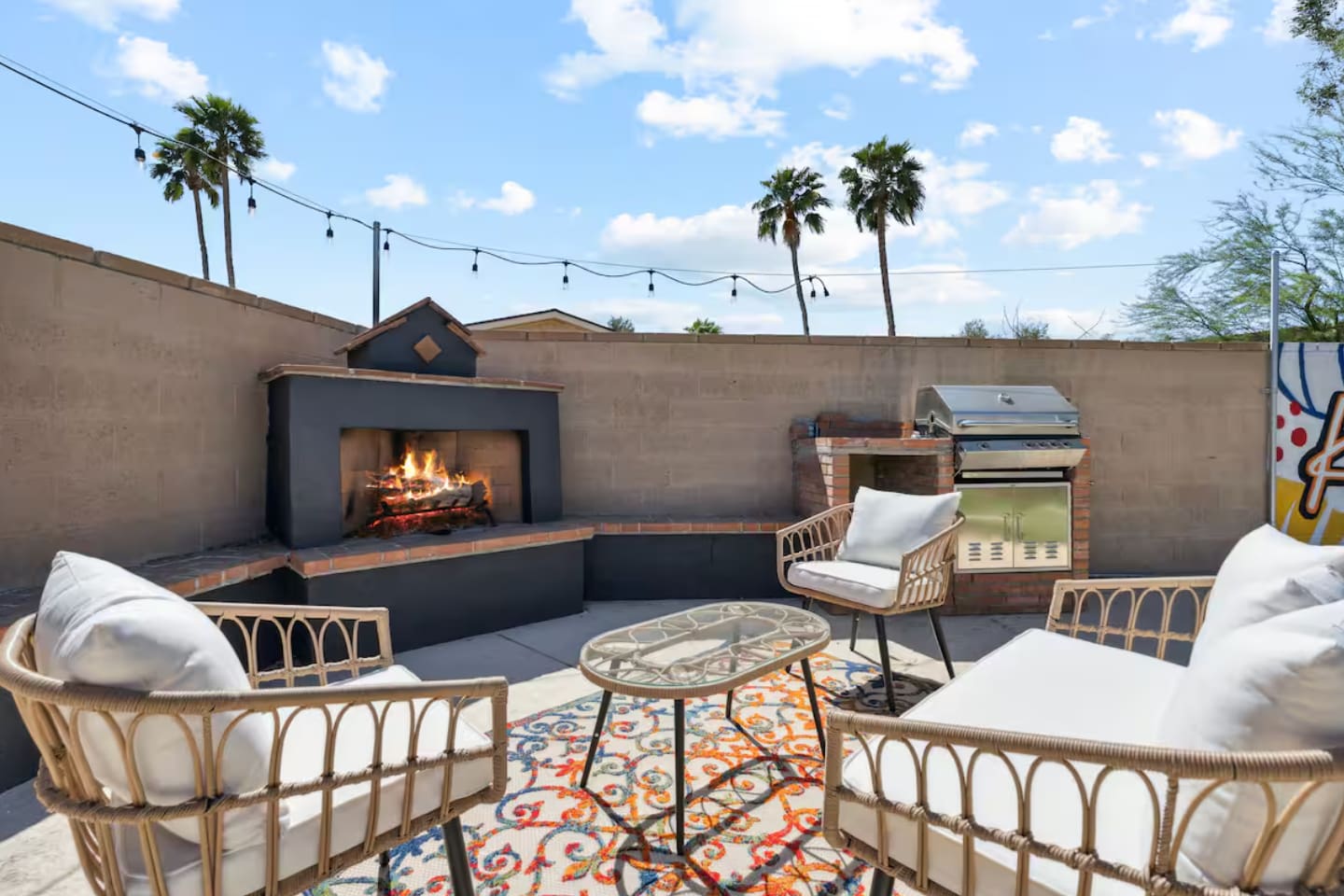 KEY FEATURES: ☀ 4 beautiful bedrooms; 1 king, 1 queen, and 4 full beds (including one full-over-full bunk bed) ☀ 2 full bathrooms ☀ Modern kitchen with new, stainless steel appliances ☀ Open living room with lots of comfy seating & smart TV ☀ Dining room with seating to comfortably accommodate 8 (plus countertop seating & outdoor dining) ☀ Fully-loaded game rooms; pool table, ping pong, arcade games, & more! ☀ AMAZING backyard; heated pool, hot tub, mini golf, fire pit, lots of games, & more! Here Are A Few Kind Words From Our Past Guests: “This was a great place to stay! The morning light through the windows was so beautiful. Overall, just a relaxing experience. The hosts were super responsive whenever I had a question. I would stay again!” - Emily “Sabrina was very accommodating and communicative. the house is beautiful and very comfortable, close to nature hikes.” - Jennifer “This place was lovely! Exactly as pictured! Very clean and excellent host experience!!! I plan to come back again!” - Regina ☆☆ BEDROOMS ☆☆ This home boasts 4 beautiful bedrooms, all carrying through the Spanish theme of the home. The master bedroom has a king bed, smart TV, direct access to the unbelievable backyard, and an attached private ensuite bathroom. Down the hall, one bedroom has a queen bed, while the last two bedrooms have two full beds in each. ☆☆ BATHROOMS ☆☆ You will find two full bathrooms throughout this home. The master bathroom has two sinks, toilet, and a grand walk-in shower. The common area bathroom also has two full sinks, a toilet, and a shower/tub combo, ☆☆ KITCHEN & DINING ☆☆ The modern kitchen is located right off of the main living areas, and is loaded with all new stainless steel appliances & a coffee station (including a Keurig & coffee pods). This gorgeous kitchen overlooks the rest of the main living space, making this a great area for entertaining. The dining room is right next to the kitchen, with enough seating to comfortably fit 8 people. ☆☆ LIVING ROOM ☆☆ In the living room, you’ll be greeted with lots of comfy seating, a big smart TV, and direct access to all the fun that awaits in the backyard. This space is set up in the center of the home, between the amazing outdoors, the open kitchen, and the multiple game rooms, making this a great layout to connect the whole group together. This is the perfect spot to host your movie nights & games with your friends and family! ☆☆ GAME ROOMS ☆☆ Our home has not just one, but TWO game rooms! You will be greeted with the first game room as you enter the home, filled with a pool table, smart TV, and a fun, Spanish-style mural. On the other end of the home, the second game room is PACKED with entertainment. Ping pong, foosball, arcade games, high-top seating, and a smart TV. When you're not enjoying all the amenities in the backyard, you will surely be entertained indoors! ☆☆ OUTDOOR SPACE ☆☆ Not only is this backyard filled with every amenity you could ask for, but it is also masterfully designed to bring the Spanish theme to every corner of the private yard! ☀ Heated pool ☀ Hot Tub ☀ Margarita bar ☀ Mini golf ☀ Bocce ball ☀ Fire pit ☀ Corn hole ☀ Giant Connect 4 ☀ BBQ grill ☀ Sun lounging chairs ☀ Outdoor fireplace ☀ Outdoor lounge seating ☀ Outdoor dining There is so much to do here, that all of your friends & family will be thoroughly entertained throughout your entire stay. No matter the season, this backyard has it all. Book your stay with us today and you will NOT be disappointed. Get ready for a vacation you will never forget! ★☆ Book Now & Let Us Take Care Of You In Scottsdale! ☆★