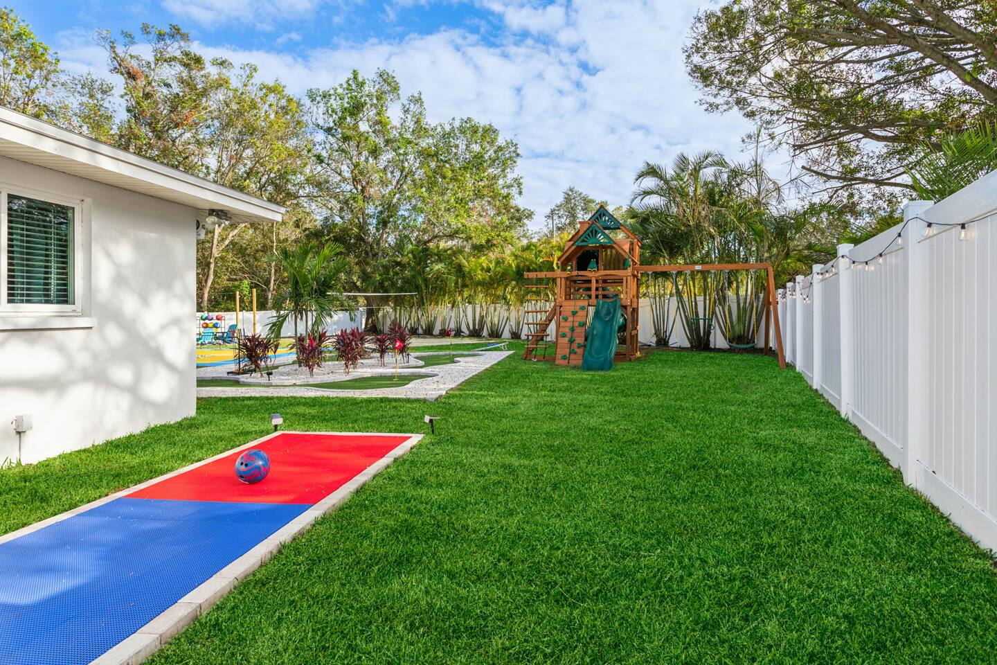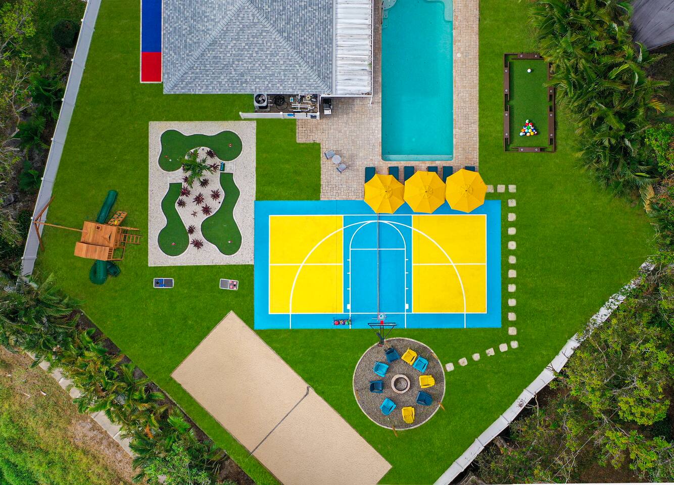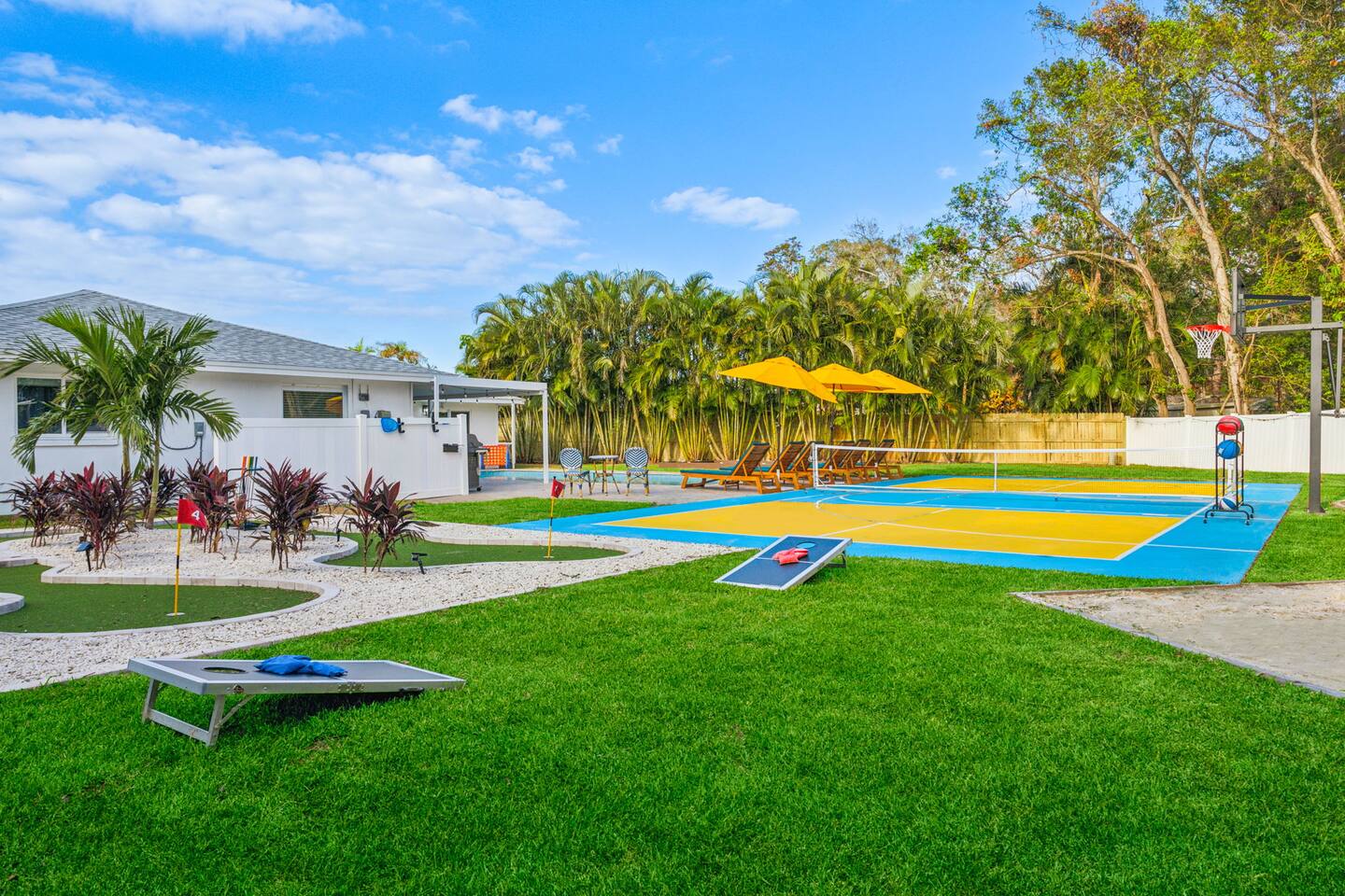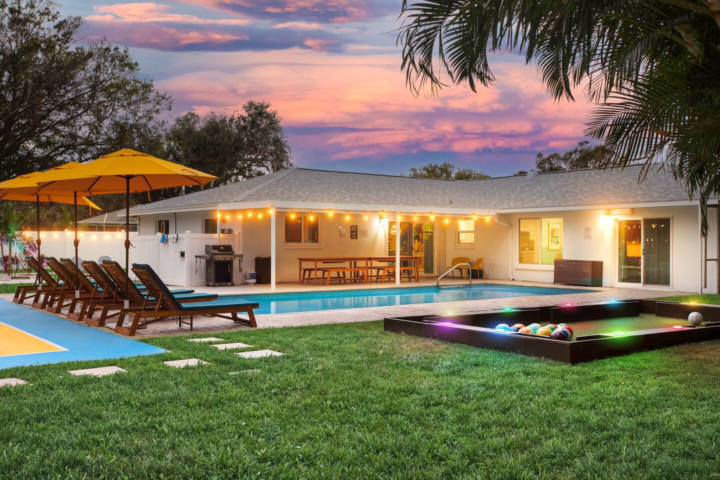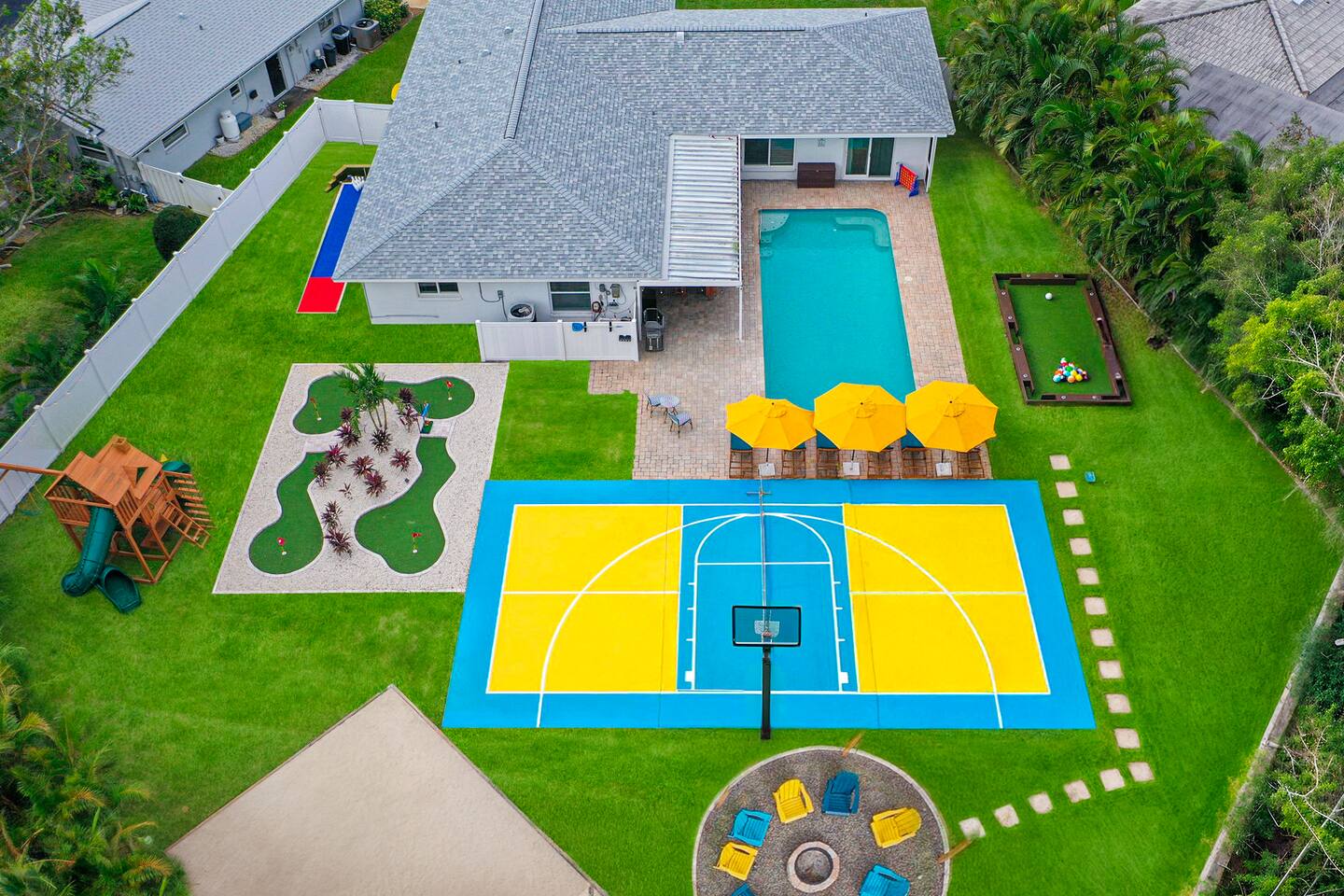 KEY FEATURES: β 5 spacious bedrooms with fun, unique designs; 2 king, 1 queen, & 8 full beds (4 full-over-full bunk beds) β 2 full, modern bathrooms β Beautiful kitchen with modern appliances & design β Living room with tons of comfy seating and large smart TV β Game room with pool table & arcade games β Vibrant dining room that opens up to the main living area; great for entertaining! β Unbelievable resort-style backyard with heated pool, pickleball, mini golf, bowling, fire pit, foot billiards, and more β Quiet, private neighborhood just minutes away from beautiful beaches Here Are A Few Kind Words From Our Past Guests: βThis was a great place to stay! The morning light through the windows was so beautiful. Overall, just a relaxing experience. The hosts were super responsive whenever I had a question. I would stay again!β - Emily βSabrina was very accommodating and communicative. the house is beautiful and very comfortable, close to nature hikes.β - Jennifer βThis place was lovely! Exactly as pictured! Very clean and excellent host experience!!! I plan to come back again!β - Regina ββ BEDROOMS ββ These 5 bedrooms will BLOW YOU AWAY! Each have their own smart TV. The most unique (& fun!) room is one of the bunk bedrooms, which has two full-over-full bunk beds, along with a SLIDE! There are 4 remaining bedrooms; the master bedroom has a king bed & private ensuite bathroom. The third bedroom has a king bed, fourth bedroom has a queen bed, and the fifth bedroom has two more full-over-full bunk beds. ββ BATHROOMS ββ There are 2 full bathrooms throughout this home. The private ensuite master bathroom has a sink, toilet, and walk-in shower. The second bathroom in this home is accessible from the hallway, including a sink, toilet, and shower/tub combo. ββ KITCHEN & DINING ββ The kitchen is bright & open, with brand new stainless steel appliances. With lots of counter space and bar top seating, it's a great kitchen for entertaining! Just one room over is the dining room, which is bright and welcoming. The formal dining room seats 12, and there is also a second dining table in the backyard. ββ LIVING ROOM ββ As you walk into the home, you're greeted with the big, open living room, which has tons of comfy seating and a fun, tropical design! It's a great place for your movie or game nights, where the whole family can sit together in this cozy space! ββ GAME ROOM ββ The fun game room in this home opens right up to the incredible backyard, and includes a pool table, arcade games, and a smart TV! ββ OUTDOOR SPACE ββ This backyard is everything you could ask for, and more! β Heated pool β Fire pit (wood burning) β Mini golf β Basketball court β Pickleball court β Volleyball court β Foot billiards (GIANT pool table built into the ground, using soccer balls!) β Bowling β Jungle gym β Corn hole β BBQ grill β Covered outdoor dining β Outdoor lounge seating β Sun loungers There is so much to do here, that all of your friends & family will be thoroughly entertained throughout your entire stay. No matter the season, this backyard has it all. Book your stay with us today and you will NOT be disappointed. Get ready for a vacation you will never forget! β β Book Now & Let Us Take Care Of You In Largo! ββ