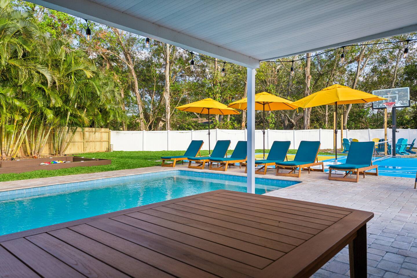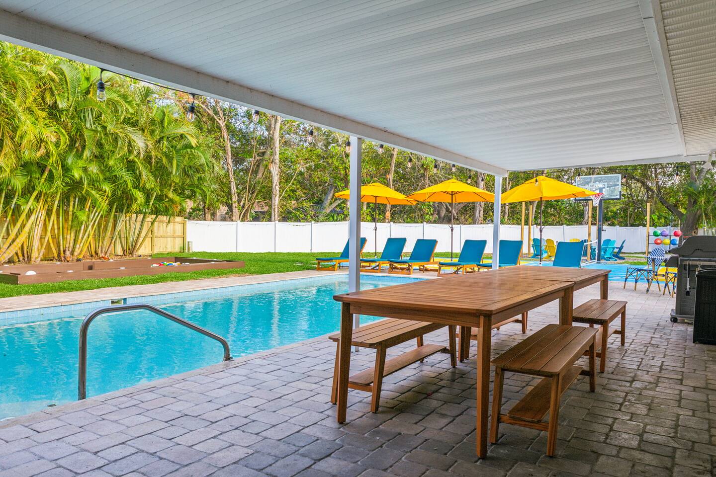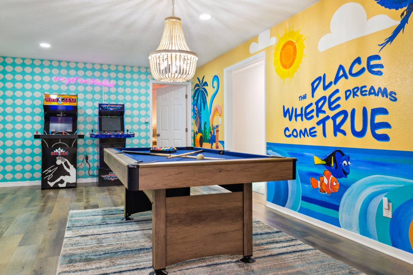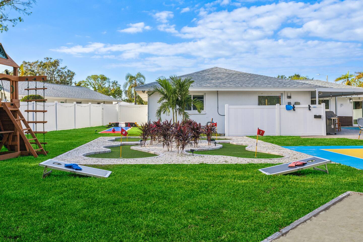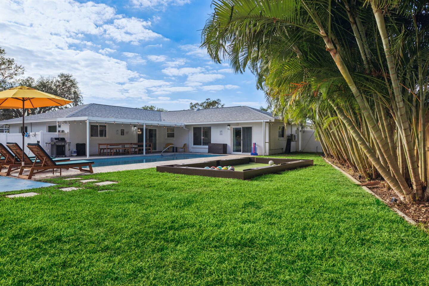 KEY FEATURES: β 5 spacious bedrooms with fun, unique designs; 2 king, 1 queen, & 8 full beds (4 full-over-full bunk beds) β 2 full, modern bathrooms β Beautiful kitchen with modern appliances & design β Living room with tons of comfy seating and large smart TV β Game room with pool table & arcade games β Vibrant dining room that opens up to the main living area; great for entertaining! β Unbelievable resort-style backyard with heated pool, pickleball, mini golf, bowling, fire pit, foot billiards, and more β Quiet, private neighborhood just minutes away from beautiful beaches Here Are A Few Kind Words From Our Past Guests: βThis was a great place to stay! The morning light through the windows was so beautiful. Overall, just a relaxing experience. The hosts were super responsive whenever I had a question. I would stay again!β - Emily βSabrina was very accommodating and communicative. the house is beautiful and very comfortable, close to nature hikes.β - Jennifer βThis place was lovely! Exactly as pictured! Very clean and excellent host experience!!! I plan to come back again!β - Regina ββ BEDROOMS ββ These 5 bedrooms will BLOW YOU AWAY! Each have their own smart TV. The most unique (& fun!) room is one of the bunk bedrooms, which has two full-over-full bunk beds, along with a SLIDE! There are 4 remaining bedrooms; the master bedroom has a king bed & private ensuite bathroom. The third bedroom has a king bed, fourth bedroom has a queen bed, and the fifth bedroom has two more full-over-full bunk beds. ββ BATHROOMS ββ There are 2 full bathrooms throughout this home. The private ensuite master bathroom has a sink, toilet, and walk-in shower. The second bathroom in this home is accessible from the hallway, including a sink, toilet, and shower/tub combo. ββ KITCHEN & DINING ββ The kitchen is bright & open, with brand new stainless steel appliances. With lots of counter space and bar top seating, it's a great kitchen for entertaining! Just one room over is the dining room, which is bright and welcoming. The formal dining room seats 12, and there is also a second dining table in the backyard. ββ LIVING ROOM ββ As you walk into the home, you're greeted with the big, open living room, which has tons of comfy seating and a fun, tropical design! It's a great place for your movie or game nights, where the whole family can sit together in this cozy space! ββ GAME ROOM ββ The fun game room in this home opens right up to the incredible backyard, and includes a pool table, arcade games, and a smart TV! ββ OUTDOOR SPACE ββ This backyard is everything you could ask for, and more! β Heated pool β Fire pit (wood burning) β Mini golf β Basketball court β Pickleball court β Volleyball court β Foot billiards (GIANT pool table built into the ground, using soccer balls!) β Bowling β Jungle gym β Corn hole β BBQ grill β Covered outdoor dining β Outdoor lounge seating β Sun loungers There is so much to do here, that all of your friends & family will be thoroughly entertained throughout your entire stay. No matter the season, this backyard has it all. Book your stay with us today and you will NOT be disappointed. Get ready for a vacation you will never forget! β β Book Now & Let Us Take Care Of You In Largo! ββ