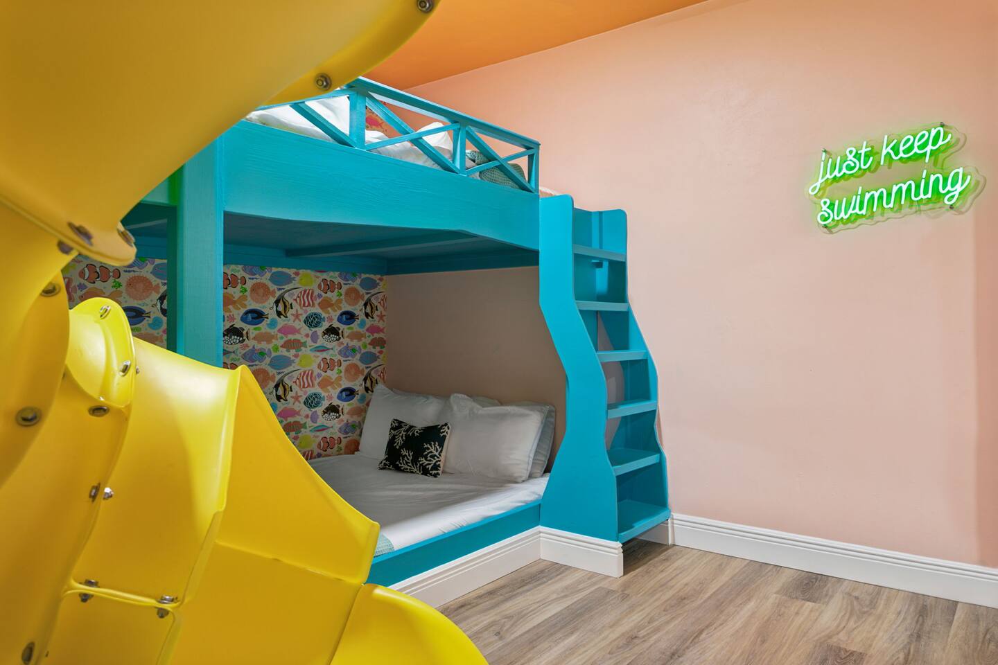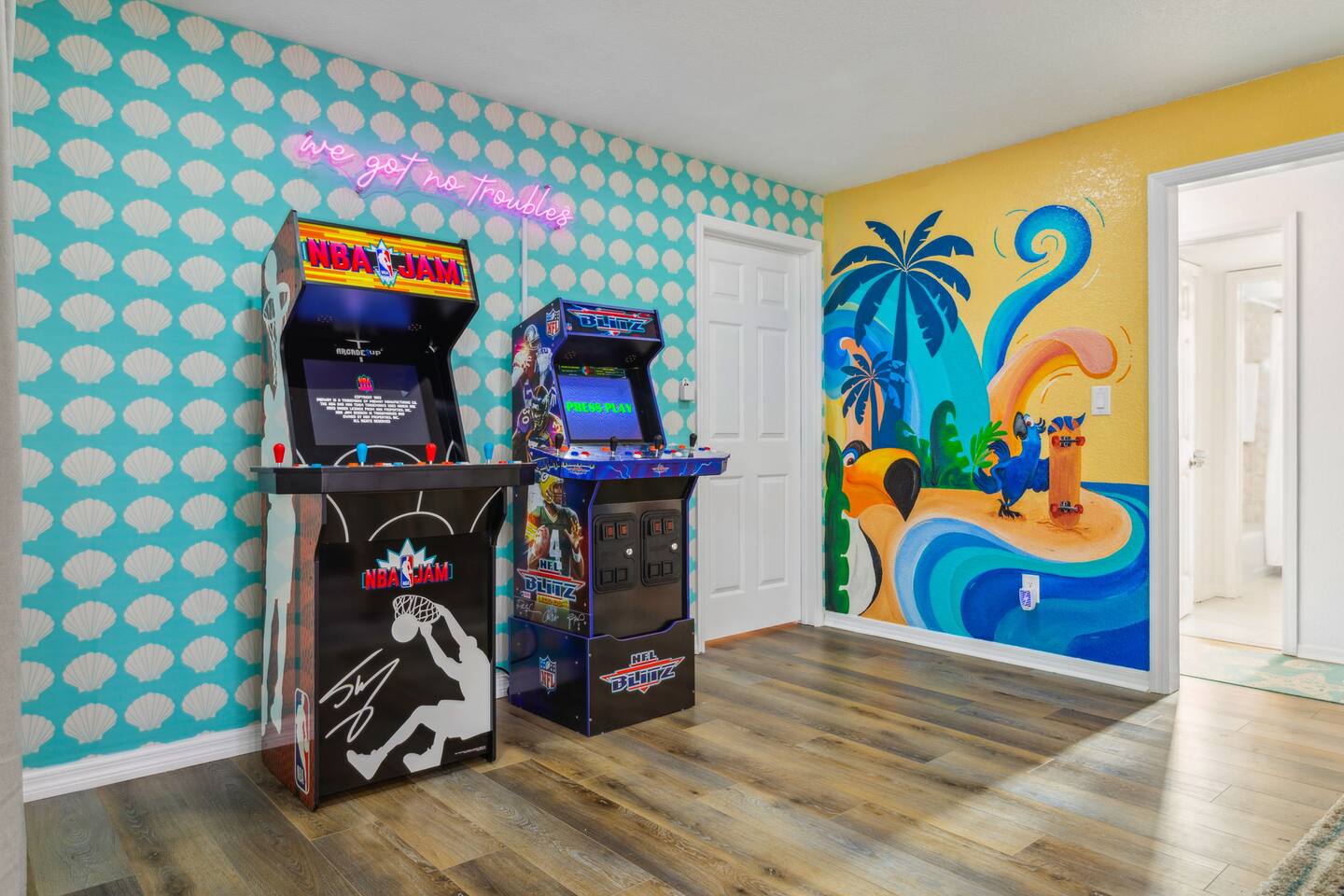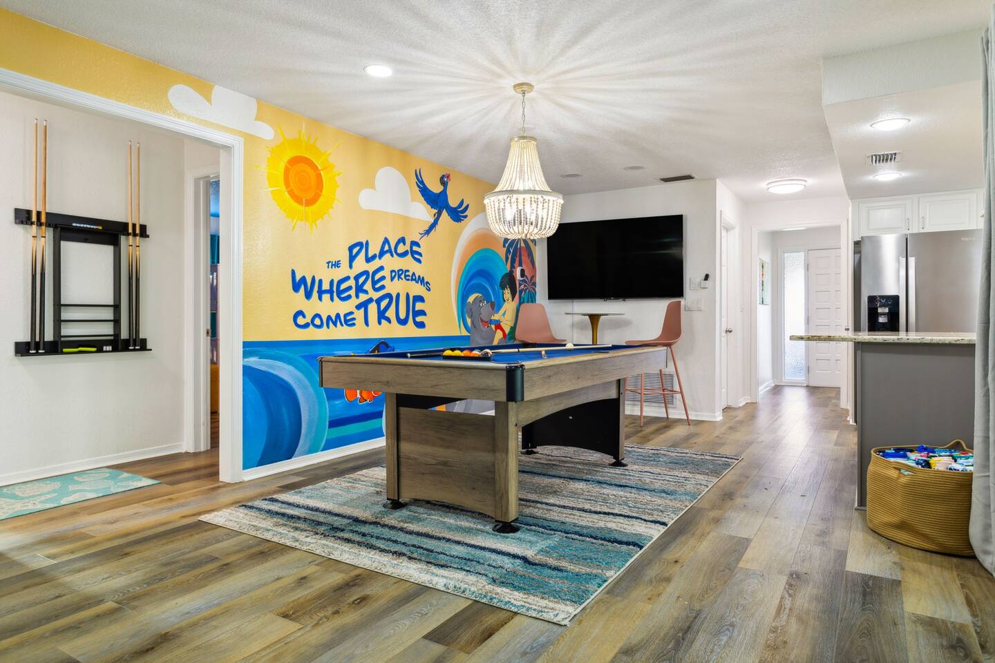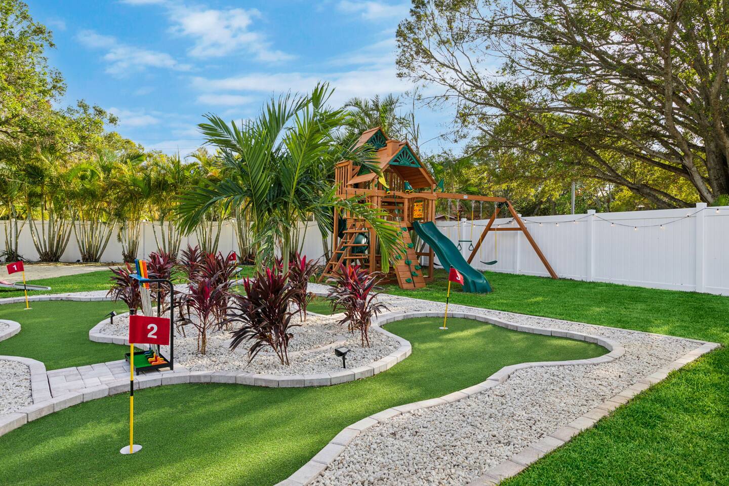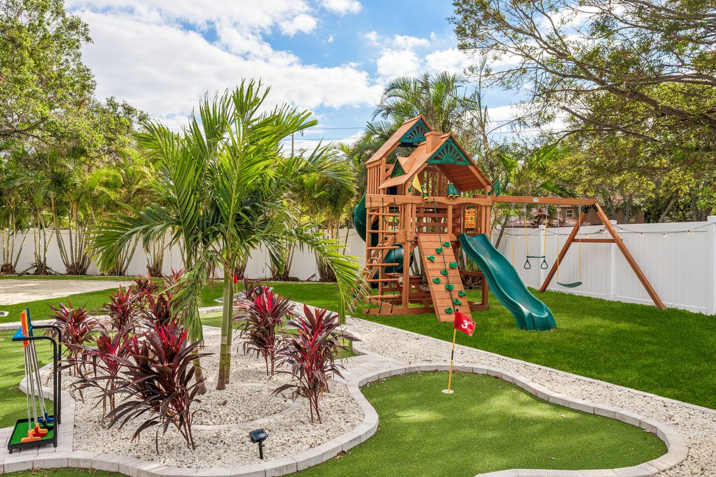 KEY FEATURES: β 5 spacious bedrooms with fun, unique designs; 2 king, 1 queen, & 8 full beds (4 full-over-full bunk beds) β 2 full, modern bathrooms β Beautiful kitchen with modern appliances & design β Living room with tons of comfy seating and large smart TV β Game room with pool table & arcade games β Vibrant dining room that opens up to the main living area; great for entertaining! β Unbelievable resort-style backyard with heated pool, pickleball, mini golf, bowling, fire pit, foot billiards, and more β Quiet, private neighborhood just minutes away from beautiful beaches Here Are A Few Kind Words From Our Past Guests: βThis was a great place to stay! The morning light through the windows was so beautiful. Overall, just a relaxing experience. The hosts were super responsive whenever I had a question. I would stay again!β - Emily βSabrina was very accommodating and communicative. the house is beautiful and very comfortable, close to nature hikes.β - Jennifer βThis place was lovely! Exactly as pictured! Very clean and excellent host experience!!! I plan to come back again!β - Regina ββ BEDROOMS ββ These 5 bedrooms will BLOW YOU AWAY! Each have their own smart TV. The most unique (& fun!) room is one of the bunk bedrooms, which has two full-over-full bunk beds, along with a SLIDE! There are 4 remaining bedrooms; the master bedroom has a king bed & private ensuite bathroom. The third bedroom has a king bed, fourth bedroom has a queen bed, and the fifth bedroom has two more full-over-full bunk beds. ββ BATHROOMS ββ There are 2 full bathrooms throughout this home. The private ensuite master bathroom has a sink, toilet, and walk-in shower. The second bathroom in this home is accessible from the hallway, including a sink, toilet, and shower/tub combo. ββ KITCHEN & DINING ββ The kitchen is bright & open, with brand new stainless steel appliances. With lots of counter space and bar top seating, it's a great kitchen for entertaining! Just one room over is the dining room, which is bright and welcoming. The formal dining room seats 12, and there is also a second dining table in the backyard. ββ LIVING ROOM ββ As you walk into the home, you're greeted with the big, open living room, which has tons of comfy seating and a fun, tropical design! It's a great place for your movie or game nights, where the whole family can sit together in this cozy space! ββ GAME ROOM ββ The fun game room in this home opens right up to the incredible backyard, and includes a pool table, arcade games, and a smart TV! ββ OUTDOOR SPACE ββ This backyard is everything you could ask for, and more! β Heated pool β Fire pit (wood burning) β Mini golf β Basketball court β Pickleball court β Volleyball court β Foot billiards (GIANT pool table built into the ground, using soccer balls!) β Bowling β Jungle gym β Corn hole β BBQ grill β Covered outdoor dining β Outdoor lounge seating β Sun loungers There is so much to do here, that all of your friends & family will be thoroughly entertained throughout your entire stay. No matter the season, this backyard has it all. Book your stay with us today and you will NOT be disappointed. Get ready for a vacation you will never forget! β β Book Now & Let Us Take Care Of You In Largo! ββ