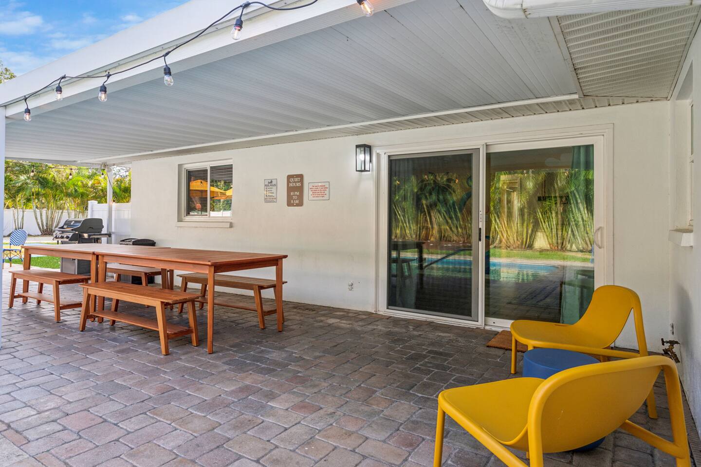 We are pet-friendly! Pet fee is $75 per pet, per night, max of 4 pets. Pool heating: We charge $100 for pool heating and will pre-heat the pool to 85 degrees. However, outdoor weather can affect the pool temperature, and in colder conditions, the heaters may not raise the water significantly above the ambient air temperature. From December through February, pool heaters will be turned on at no additional charge. This property includes security features, such as Schlage smart locks and Ring floodlight cameras, for your safety and peace of mind. Smoking: Smoking or vaping of any kind is strictly prohibited inside the home or on the property. A violation of this policy will result in a minimum $250 fine to cover deep cleaning and odor removal.