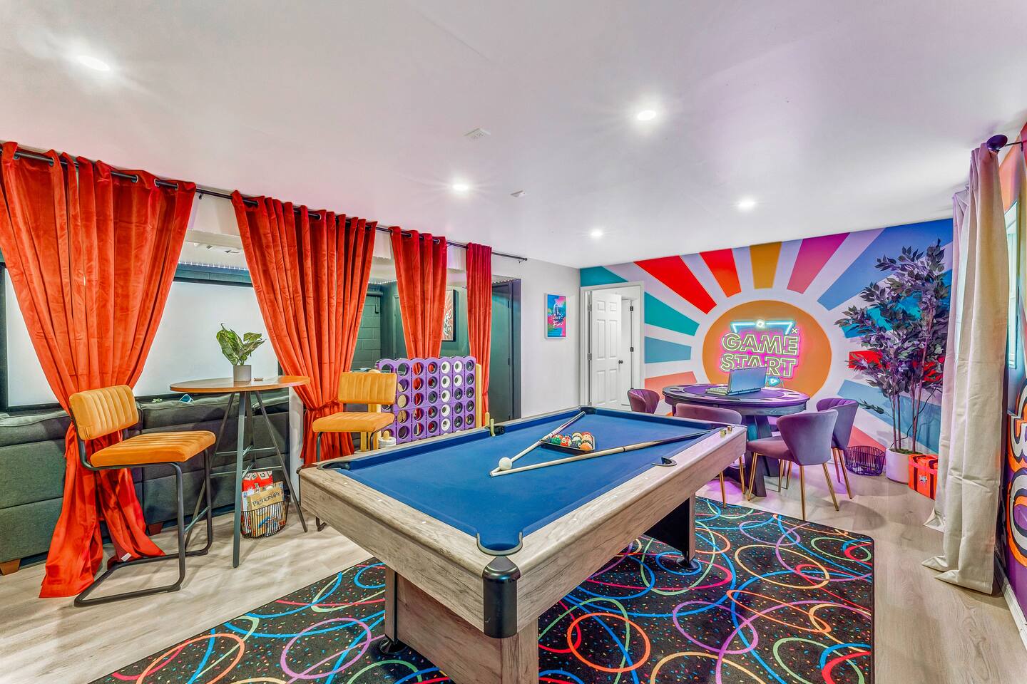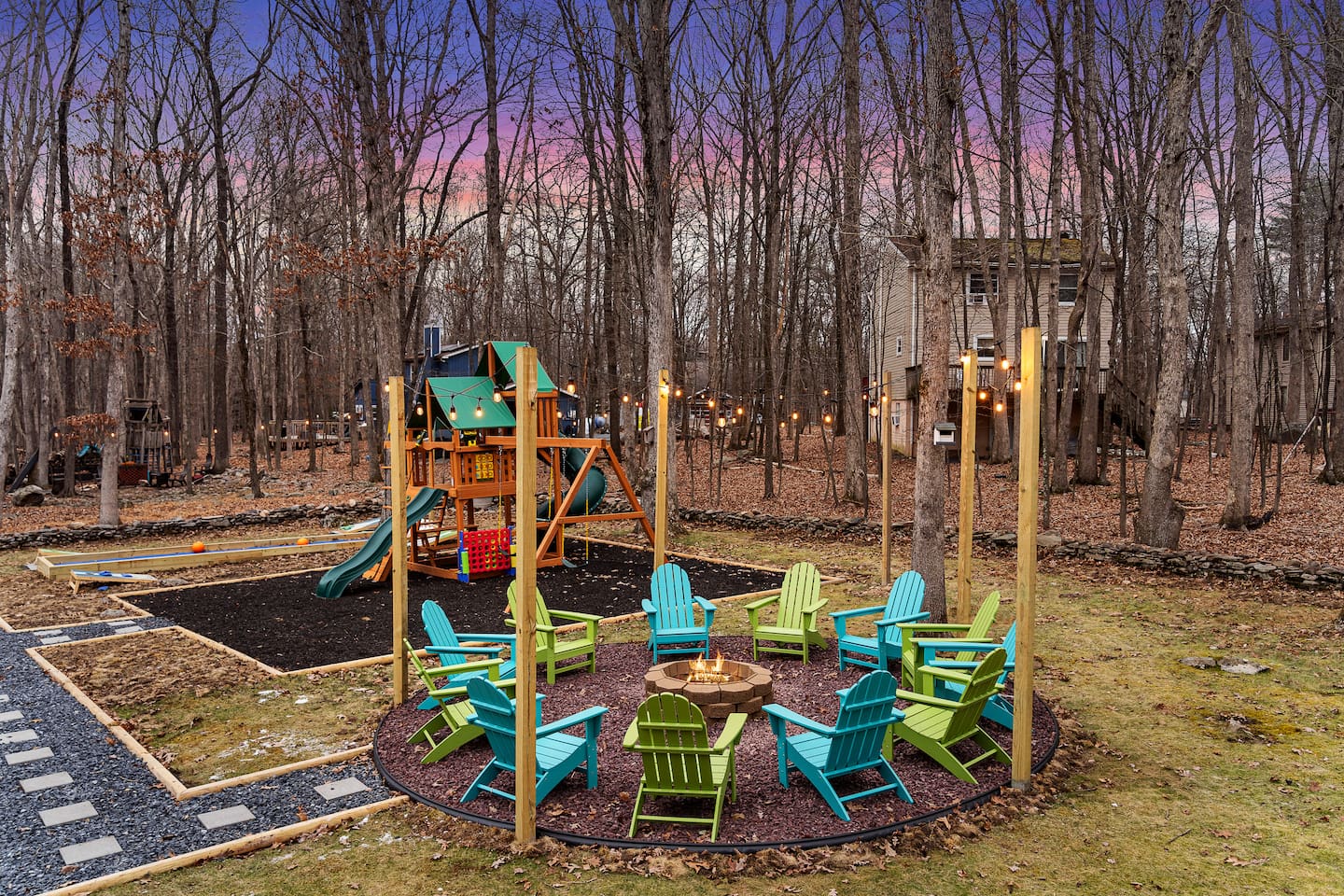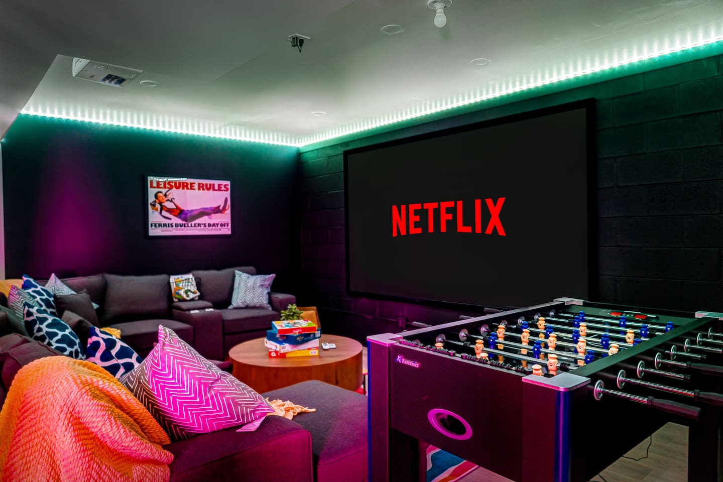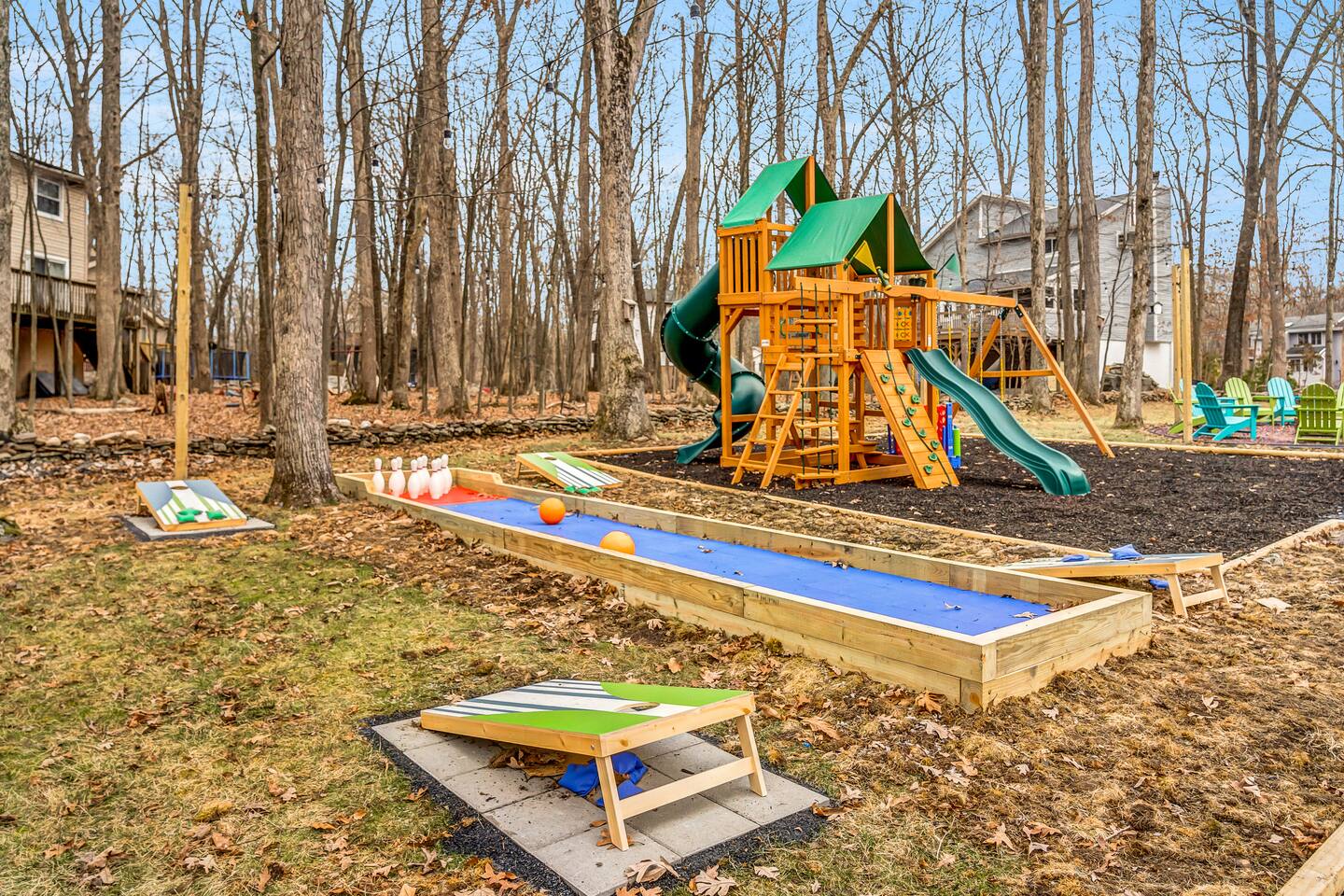 **During the summer months (Memorial Day weekend - Labor Day weekend), you will receive amenity badges that allow you to access the following amenities. If you’re staying with us outside of these dates, these amenities will be closed.** ☀ Lakes (with beach access - swimming allowed!) ☀ Pools ☀ Tennis courts ☀ Basketball courts ☀ Volleyball courts ☀ Dog park ☀ Playground areas KEY FEATURES: ☀ 5 beautiful bedrooms; 2 kings, 2 queens, and 2 full beds ☀ 3 full, modern bathrooms ☀ Modern kitchen ☀ Open living room with lots of comfy seating & smart TV ☀ Stylish dining room that opens up to the rest of the living space ☀ Super fun game room with pool table, poker table, pop-a-shot, & more! ☀ A private MOVIE THEATER with a massive projector screen ☀ AMAZING backyard, with a hot tub, fire pit, bowling & more! Here Are A Few Kind Words From Our Past Guests: “This was a great place to stay! The morning light through the windows was so beautiful. Overall, just a relaxing experience. The hosts were super responsive whenever I had a question. I would stay again!” - Emily “Sabrina was very accommodating and communicative. the house is beautiful and very comfortable, close to nature hikes.” - Jennifer “This place was lovely! Exactly as pictured! Very clean and excellent host experience!!! I plan to come back again!” - Regina ☆☆ BEDROOMS ☆☆ These 5 bedrooms in this home are truly designed for style & comfort, each with their own smart TV! Upstairs, the large master bedroom has a king bed and a private ensuite bathroom. Right across the hall, there are two more bedrooms, with 1 queen bed in each. Downstairs, there is a second "master" bedroom, with a king bed, fire place, and little seating area - super cozy! Right next door is the fifth & final bedroom, with two full beds. ☆☆ BATHROOMS ☆☆ There are 3 full, modern bathrooms throughout this home. Upstairs, the private master ensuite has a sink, toilet, soaking tub, and walk-in shower. Right down the hall is the second bathroom, with a sink, toilet, and shower/tub combo. Downstairs, the third bathroom also has a sink, toilet, and shower/tub combo. ☆☆ KITCHEN & DINING ☆☆ The modern kitchen is located right off of the main living areas, and is loaded with all you'll need during your stay (including a coffee maker & coffee pods). The kitchen also has a 4-seater table in its little breakfast nook. The dining room is right next to the kitchen, with enough seating to comfortably fit 8 more people. This space is truly sleek & stylish! ☆☆ LIVING ROOM ☆☆ In the living room, you’ll be greeted with tall vaulted ceilings, skylights, lots of comfy seating & a big smart TV. This is the perfect spot to gather with your friends and family! ☆☆ GAME ROOM ☆☆ The game room is located on the lower level, filled with a pool table, poker table, and pop-a-shot, and giant Connect 4. Such a fun space to provide you with all the entertainment you need during your stay! ☆☆ MOVIE THEATER ☆☆ Right next to the game room is your very own, private movie theater! With a huge theater-style sectional couch (built-in cup holders), foosball, and a HUGE projector screen, this is a DREAM spot to host your movie nights with your friends and family! ☆☆ OUTDOOR SPACE ☆☆ This backyard is everything you could ask for, and more! ☀ Basketball court ☀ Hot tub ☀ Fire pits (one wood burning, one propane) ☀ Mini golf (in sun room, next to deck) ☀ Bowling ☀ Jungle gym ☀ Corn hole ☀ Giant Connect 4 ☀ BBQ grill ☀ Outdoor lounge seating There is so much to do here, that all of your friends & family will be thoroughly entertained throughout your entire stay. No matter the season, this backyard has it all. Book your stay with us today and you will NOT be disappointed. Get ready for a vacation you will never forget! ★☆ Book Now & Let Us Take Care Of You In The Poconos! ☆★