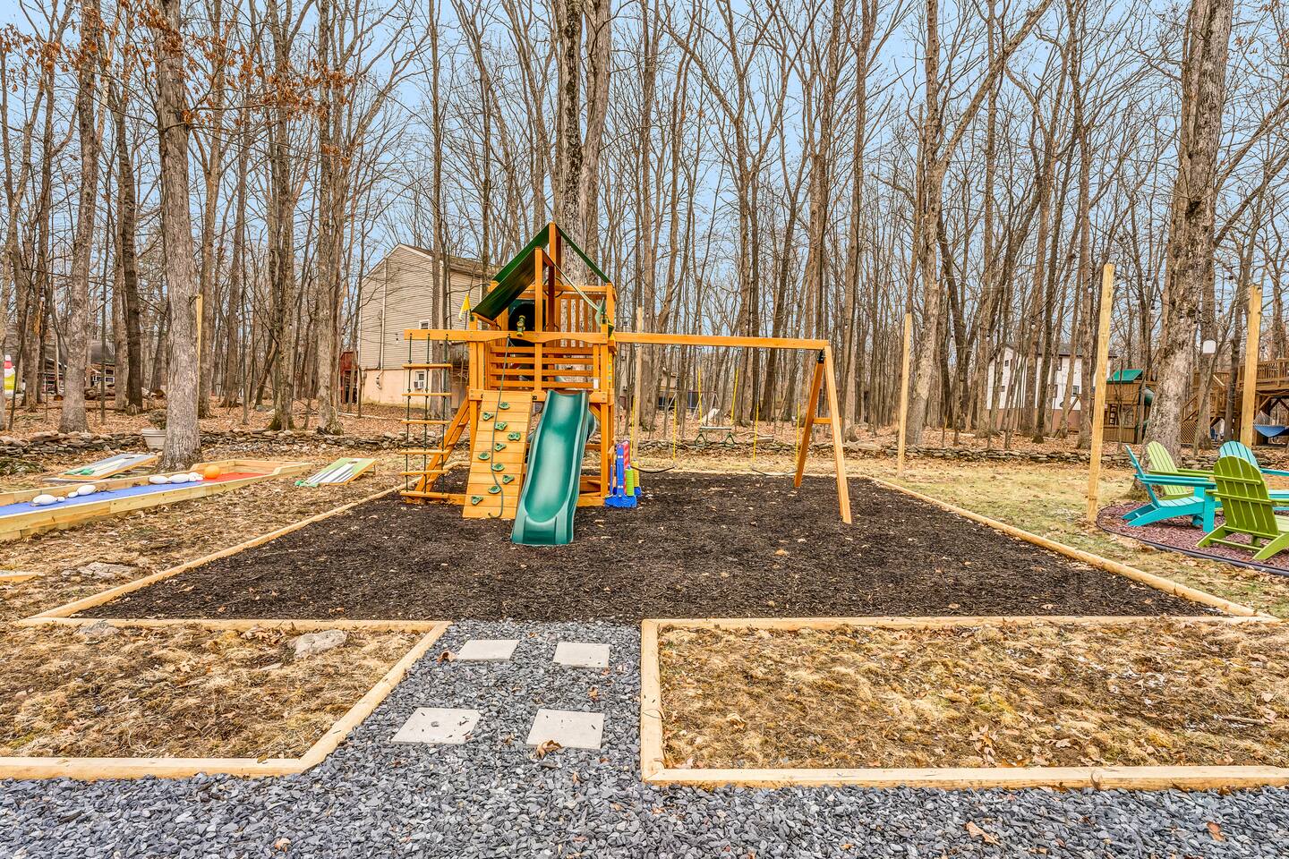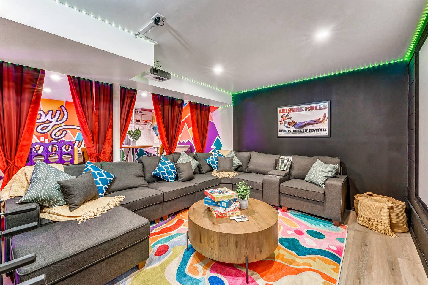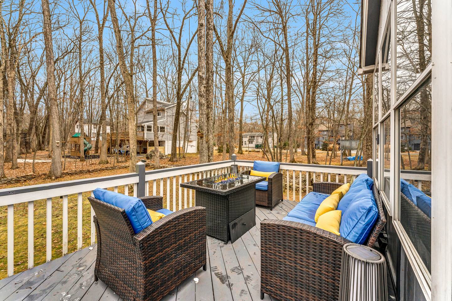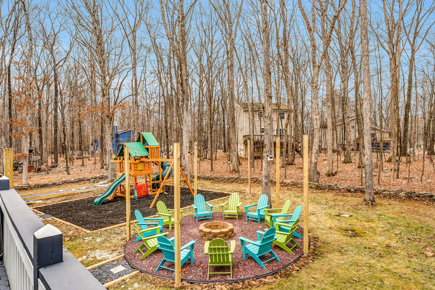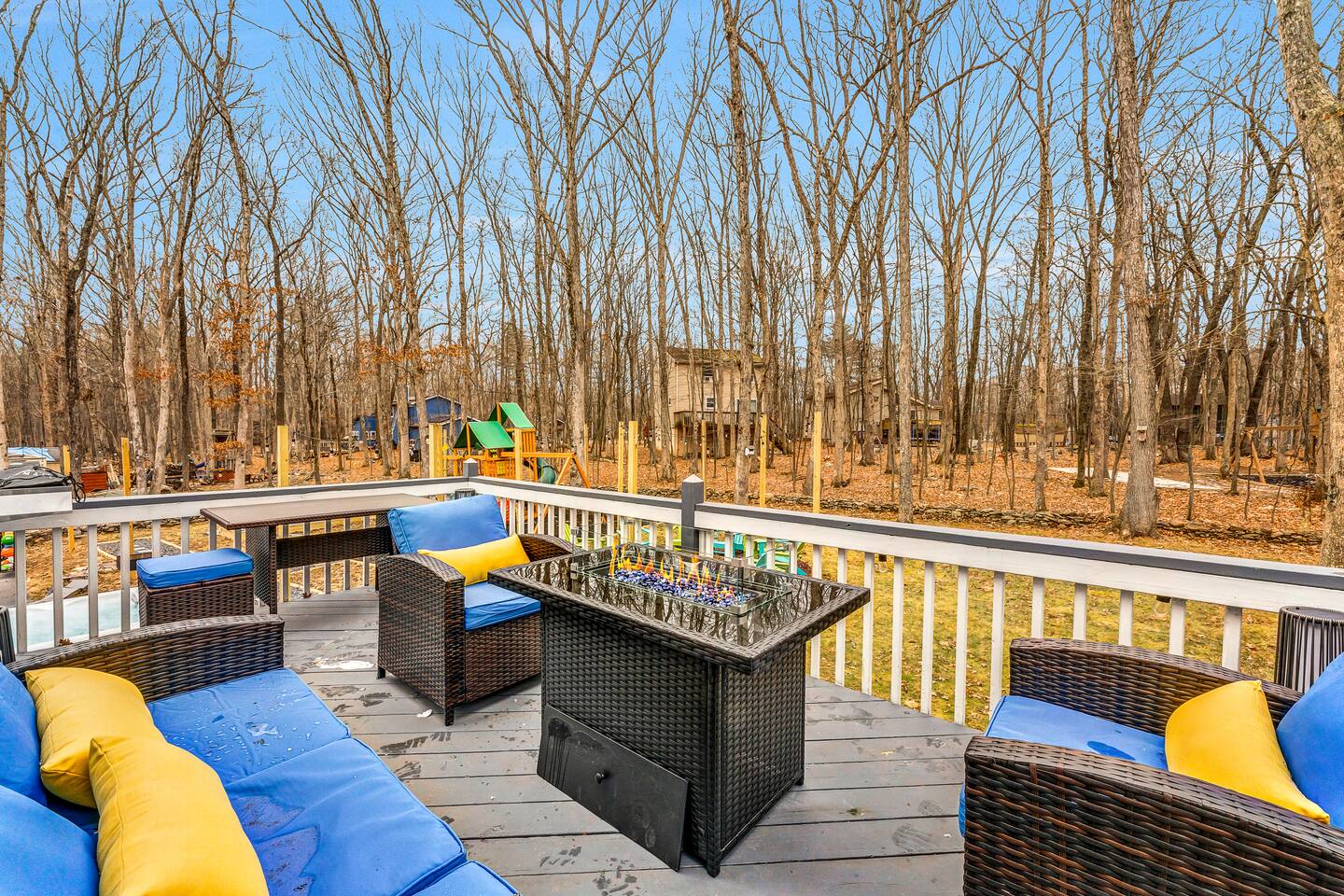 **During the summer months (Memorial Day weekend - Labor Day weekend), you will receive amenity badges that allow you to access the following amenities. If you’re staying with us outside of these dates, these amenities will be closed.** ☀ Lakes (with beach access - swimming allowed!) ☀ Pools ☀ Tennis courts ☀ Basketball courts ☀ Volleyball courts ☀ Dog park ☀ Playground areas KEY FEATURES: ☀ 5 beautiful bedrooms; 2 kings, 2 queens, and 2 full beds ☀ 3 full, modern bathrooms ☀ Modern kitchen ☀ Open living room with lots of comfy seating & smart TV ☀ Stylish dining room that opens up to the rest of the living space ☀ Super fun game room with pool table, poker table, pop-a-shot, & more! ☀ A private MOVIE THEATER with a massive projector screen ☀ AMAZING backyard, with a hot tub, fire pit, bowling & more! Here Are A Few Kind Words From Our Past Guests: “This was a great place to stay! The morning light through the windows was so beautiful. Overall, just a relaxing experience. The hosts were super responsive whenever I had a question. I would stay again!” - Emily “Sabrina was very accommodating and communicative. the house is beautiful and very comfortable, close to nature hikes.” - Jennifer “This place was lovely! Exactly as pictured! Very clean and excellent host experience!!! I plan to come back again!” - Regina ☆☆ BEDROOMS ☆☆ These 5 bedrooms in this home are truly designed for style & comfort, each with their own smart TV! Upstairs, the large master bedroom has a king bed and a private ensuite bathroom. Right across the hall, there are two more bedrooms, with 1 queen bed in each. Downstairs, there is a second "master" bedroom, with a king bed, fire place, and little seating area - super cozy! Right next door is the fifth & final bedroom, with two full beds. ☆☆ BATHROOMS ☆☆ There are 3 full, modern bathrooms throughout this home. Upstairs, the private master ensuite has a sink, toilet, soaking tub, and walk-in shower. Right down the hall is the second bathroom, with a sink, toilet, and shower/tub combo. Downstairs, the third bathroom also has a sink, toilet, and shower/tub combo. ☆☆ KITCHEN & DINING ☆☆ The modern kitchen is located right off of the main living areas, and is loaded with all you'll need during your stay (including a coffee maker & coffee pods). The kitchen also has a 4-seater table in its little breakfast nook. The dining room is right next to the kitchen, with enough seating to comfortably fit 8 more people. This space is truly sleek & stylish! ☆☆ LIVING ROOM ☆☆ In the living room, you’ll be greeted with tall vaulted ceilings, skylights, lots of comfy seating & a big smart TV. This is the perfect spot to gather with your friends and family! ☆☆ GAME ROOM ☆☆ The game room is located on the lower level, filled with a pool table, poker table, and pop-a-shot, and giant Connect 4. Such a fun space to provide you with all the entertainment you need during your stay! ☆☆ MOVIE THEATER ☆☆ Right next to the game room is your very own, private movie theater! With a huge theater-style sectional couch (built-in cup holders), foosball, and a HUGE projector screen, this is a DREAM spot to host your movie nights with your friends and family! ☆☆ OUTDOOR SPACE ☆☆ This backyard is everything you could ask for, and more! ☀ Basketball court ☀ Hot tub ☀ Fire pits (one wood burning, one propane) ☀ Mini golf (in sun room, next to deck) ☀ Bowling ☀ Jungle gym ☀ Corn hole ☀ Giant Connect 4 ☀ BBQ grill ☀ Outdoor lounge seating There is so much to do here, that all of your friends & family will be thoroughly entertained throughout your entire stay. No matter the season, this backyard has it all. Book your stay with us today and you will NOT be disappointed. Get ready for a vacation you will never forget! ★☆ Book Now & Let Us Take Care Of You In The Poconos! ☆★