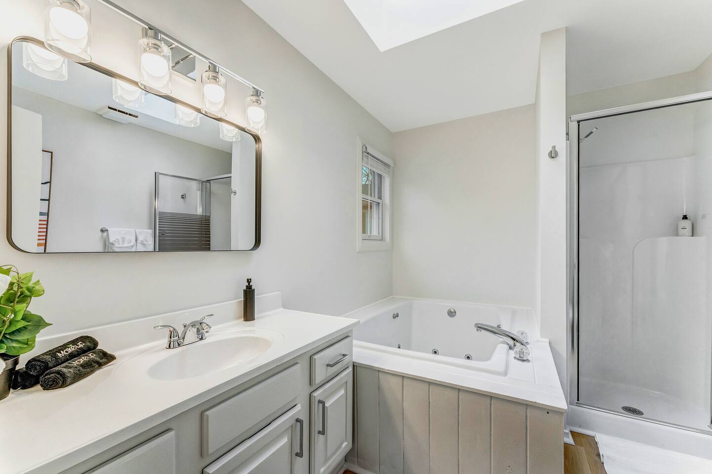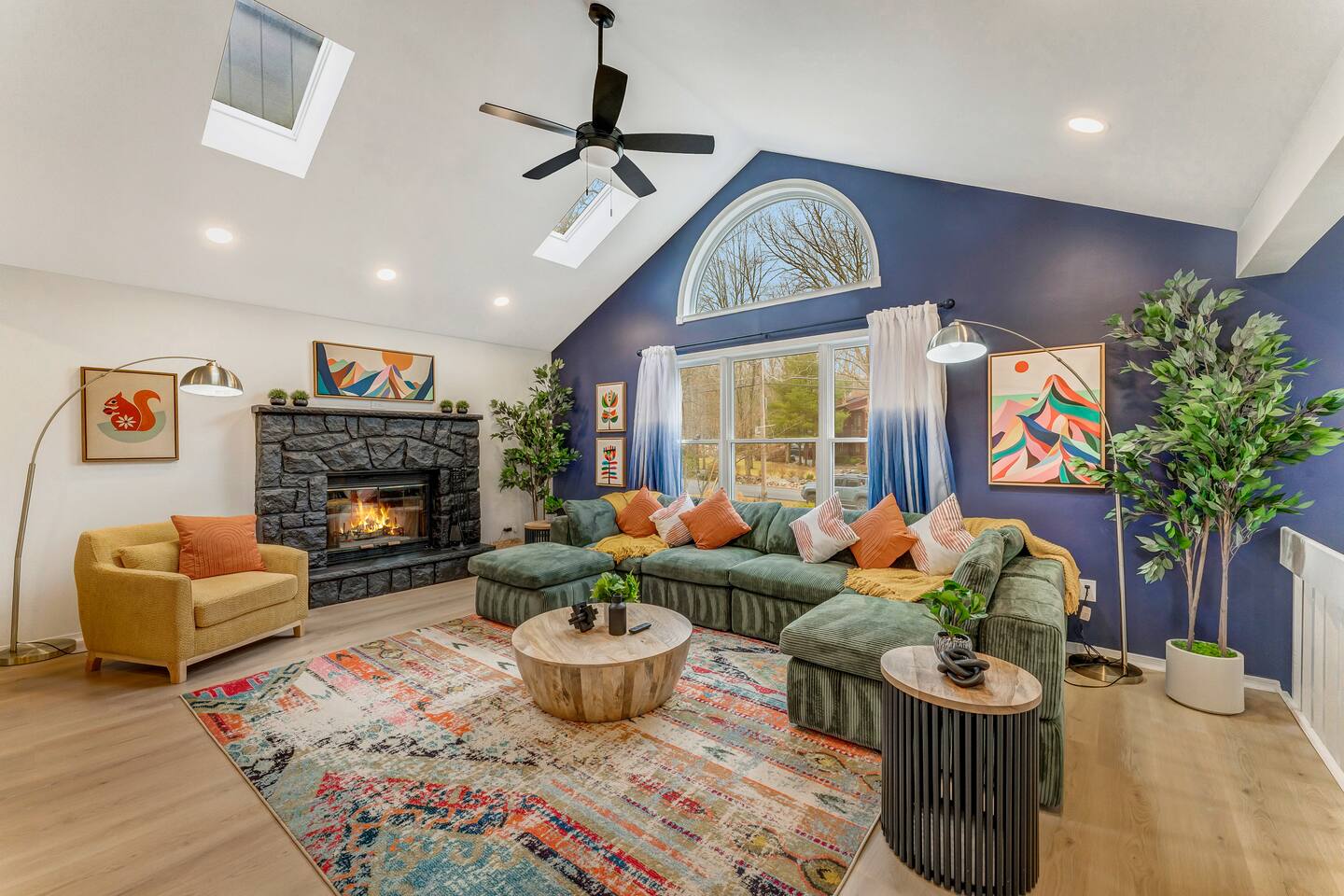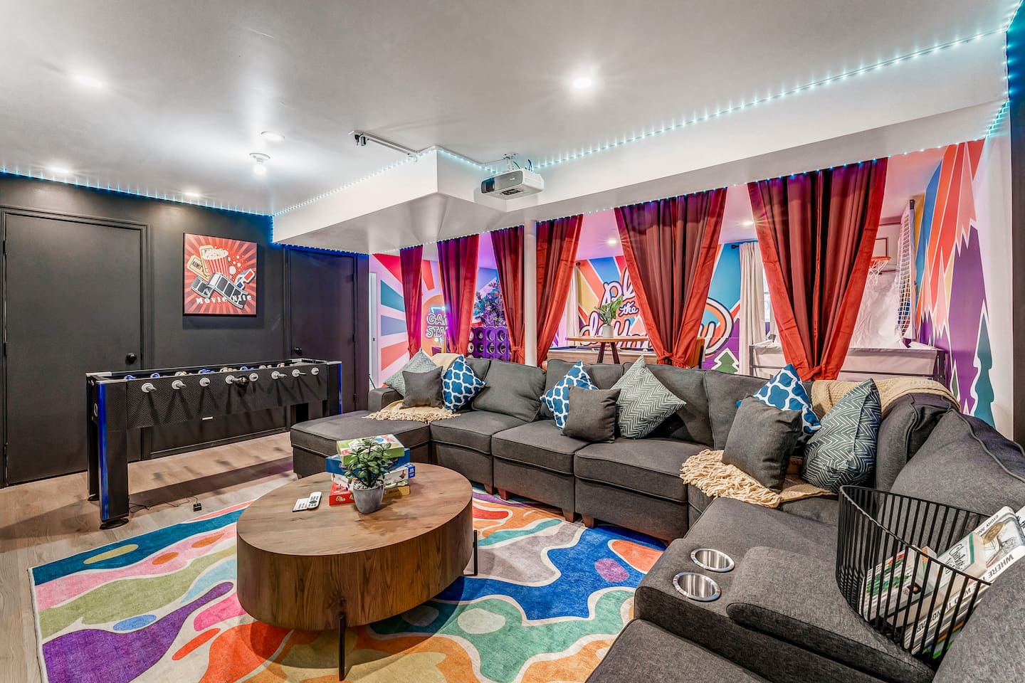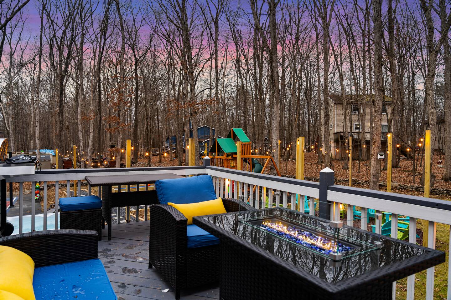 **During the summer months (Memorial Day weekend - Labor Day weekend), you will receive amenity badges that allow you to access the following amenities. If you’re staying with us outside of these dates, these amenities will be closed.** ☀ Lakes (with beach access - swimming allowed!) ☀ Pools ☀ Tennis courts ☀ Basketball courts ☀ Volleyball courts ☀ Dog park ☀ Playground areas KEY FEATURES: ☀ 5 beautiful bedrooms; 2 kings, 2 queens, and 2 full beds ☀ 3 full, modern bathrooms ☀ Modern kitchen ☀ Open living room with lots of comfy seating & smart TV ☀ Stylish dining room that opens up to the rest of the living space ☀ Super fun game room with pool table, poker table, pop-a-shot, & more! ☀ A private MOVIE THEATER with a massive projector screen ☀ AMAZING backyard, with a hot tub, fire pit, bowling & more! Here Are A Few Kind Words From Our Past Guests: “This was a great place to stay! The morning light through the windows was so beautiful. Overall, just a relaxing experience. The hosts were super responsive whenever I had a question. I would stay again!” - Emily “Sabrina was very accommodating and communicative. the house is beautiful and very comfortable, close to nature hikes.” - Jennifer “This place was lovely! Exactly as pictured! Very clean and excellent host experience!!! I plan to come back again!” - Regina ☆☆ BEDROOMS ☆☆ These 5 bedrooms in this home are truly designed for style & comfort, each with their own smart TV! Upstairs, the large master bedroom has a king bed and a private ensuite bathroom. Right across the hall, there are two more bedrooms, with 1 queen bed in each. Downstairs, there is a second "master" bedroom, with a king bed, fire place, and little seating area - super cozy! Right next door is the fifth & final bedroom, with two full beds. ☆☆ BATHROOMS ☆☆ There are 3 full, modern bathrooms throughout this home. Upstairs, the private master ensuite has a sink, toilet, soaking tub, and walk-in shower. Right down the hall is the second bathroom, with a sink, toilet, and shower/tub combo. Downstairs, the third bathroom also has a sink, toilet, and shower/tub combo. ☆☆ KITCHEN & DINING ☆☆ The modern kitchen is located right off of the main living areas, and is loaded with all you'll need during your stay (including a coffee maker & coffee pods). The kitchen also has a 4-seater table in its little breakfast nook. The dining room is right next to the kitchen, with enough seating to comfortably fit 8 more people. This space is truly sleek & stylish! ☆☆ LIVING ROOM ☆☆ In the living room, you’ll be greeted with tall vaulted ceilings, skylights, lots of comfy seating & a big smart TV. This is the perfect spot to gather with your friends and family! ☆☆ GAME ROOM ☆☆ The game room is located on the lower level, filled with a pool table, poker table, and pop-a-shot, and giant Connect 4. Such a fun space to provide you with all the entertainment you need during your stay! ☆☆ MOVIE THEATER ☆☆ Right next to the game room is your very own, private movie theater! With a huge theater-style sectional couch (built-in cup holders), foosball, and a HUGE projector screen, this is a DREAM spot to host your movie nights with your friends and family! ☆☆ OUTDOOR SPACE ☆☆ This backyard is everything you could ask for, and more! ☀ Basketball court ☀ Hot tub ☀ Fire pits (one wood burning, one propane) ☀ Mini golf (in sun room, next to deck) ☀ Bowling ☀ Jungle gym ☀ Corn hole ☀ Giant Connect 4 ☀ BBQ grill ☀ Outdoor lounge seating There is so much to do here, that all of your friends & family will be thoroughly entertained throughout your entire stay. No matter the season, this backyard has it all. Book your stay with us today and you will NOT be disappointed. Get ready for a vacation you will never forget! ★☆ Book Now & Let Us Take Care Of You In The Poconos! ☆★