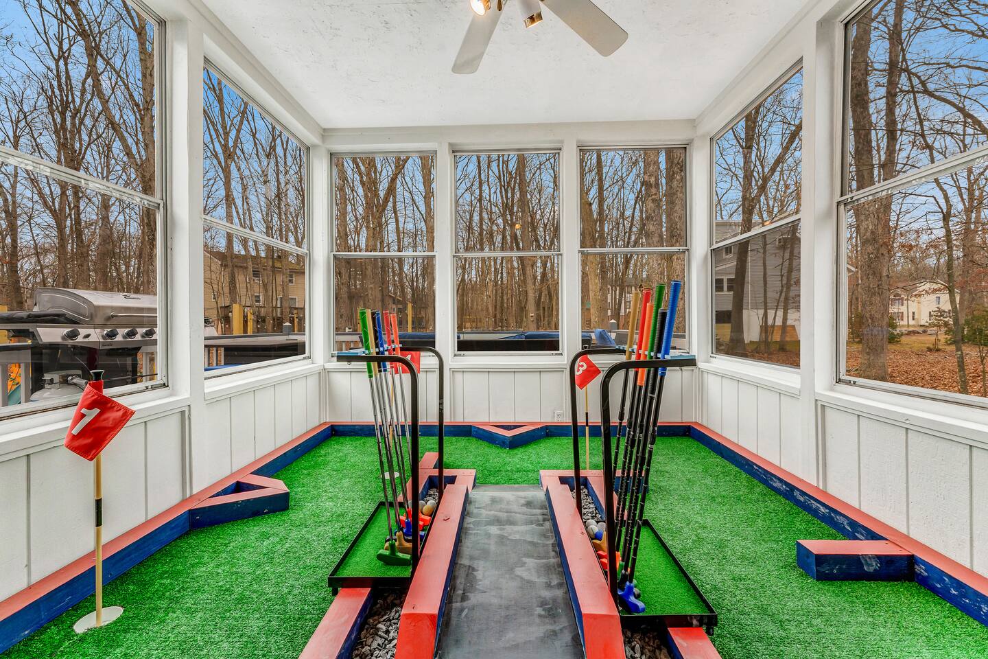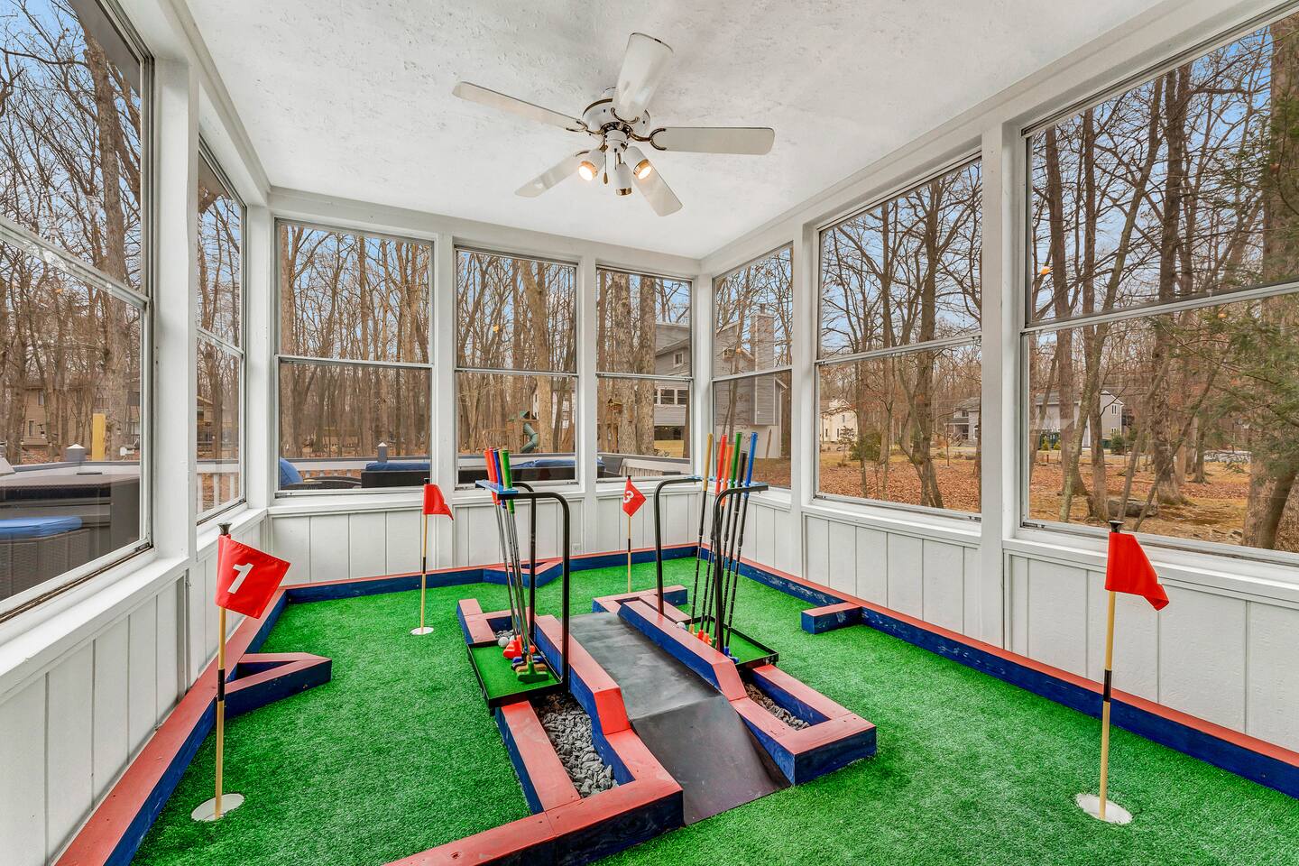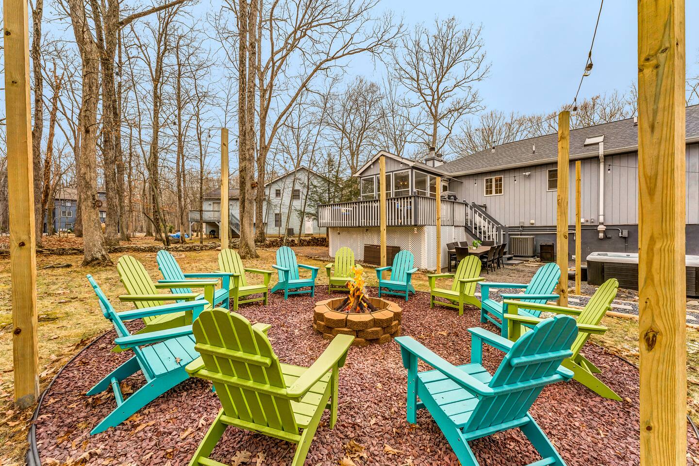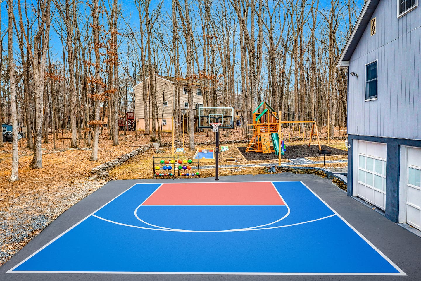 Conveniently located just minutes away from all the natural attractions that the Poconos has to offer (lakes, hiking, & more!), you will have all the amenities & entertainment you could need right here at home. Basketball court, hot tub, fire pit, mini golf, pool table, and much more! 15 min - Delaware Water Gap, Downtown Stroudsburg 20 min - Kalahari Resort, Shawnee Mountain, Big Pocono State Park 30 min - Bushkill Falls Experience The Poconos With Us & Learn More Below!