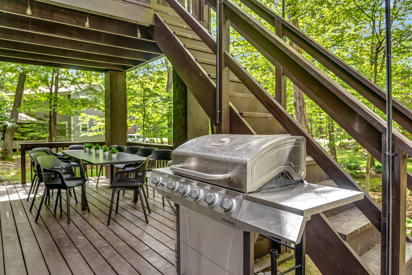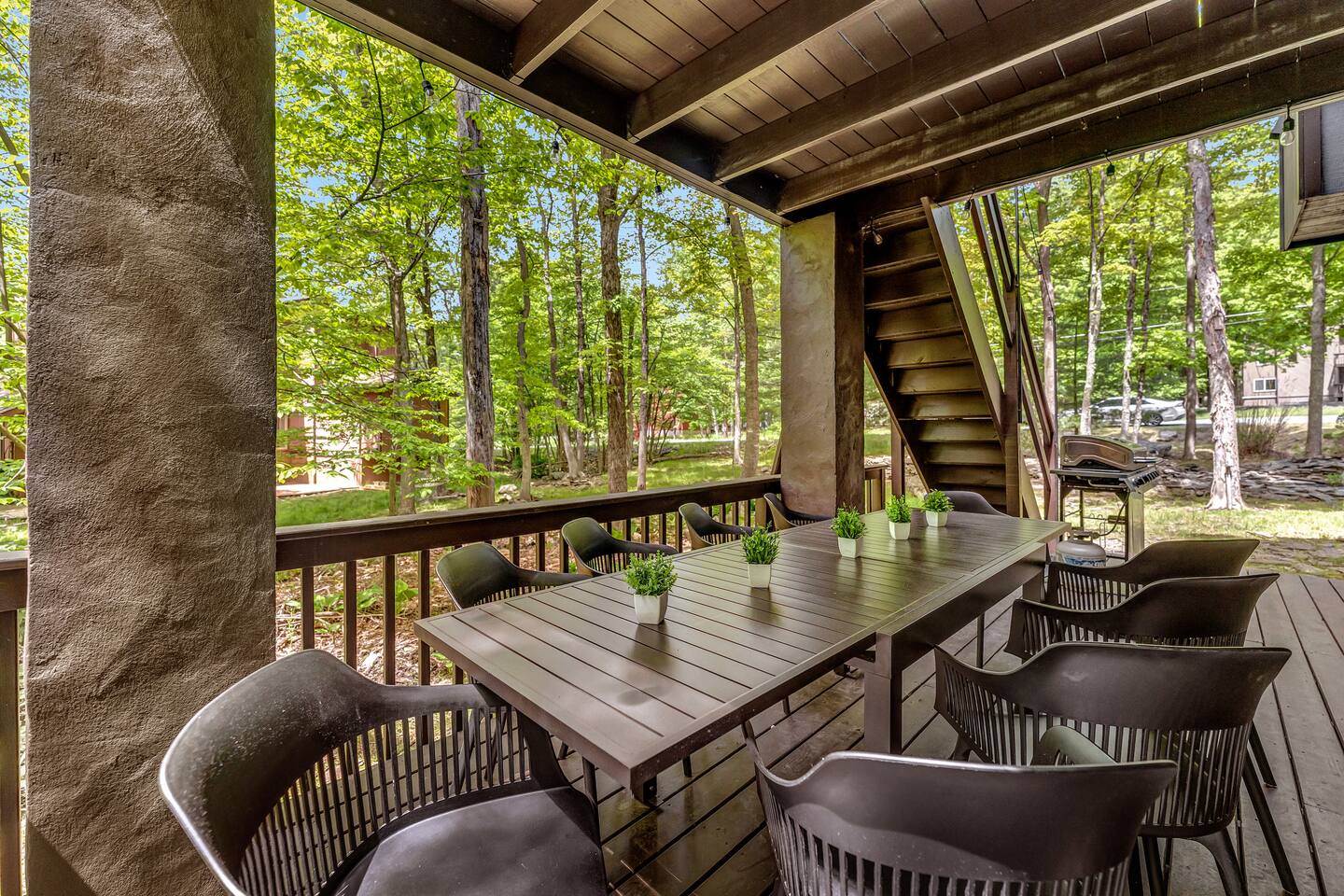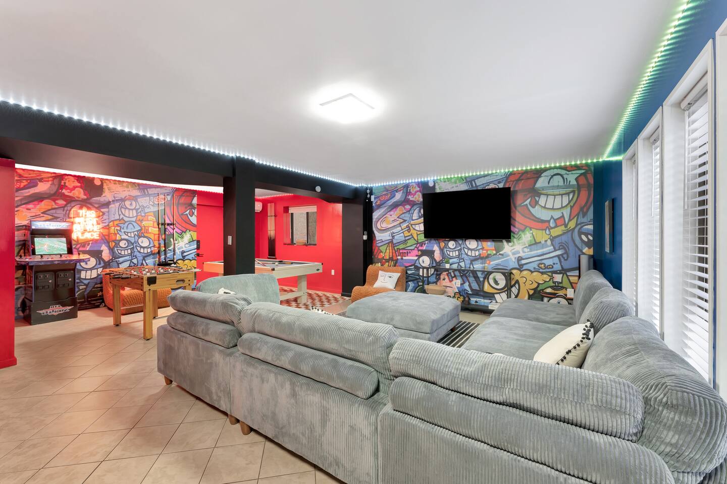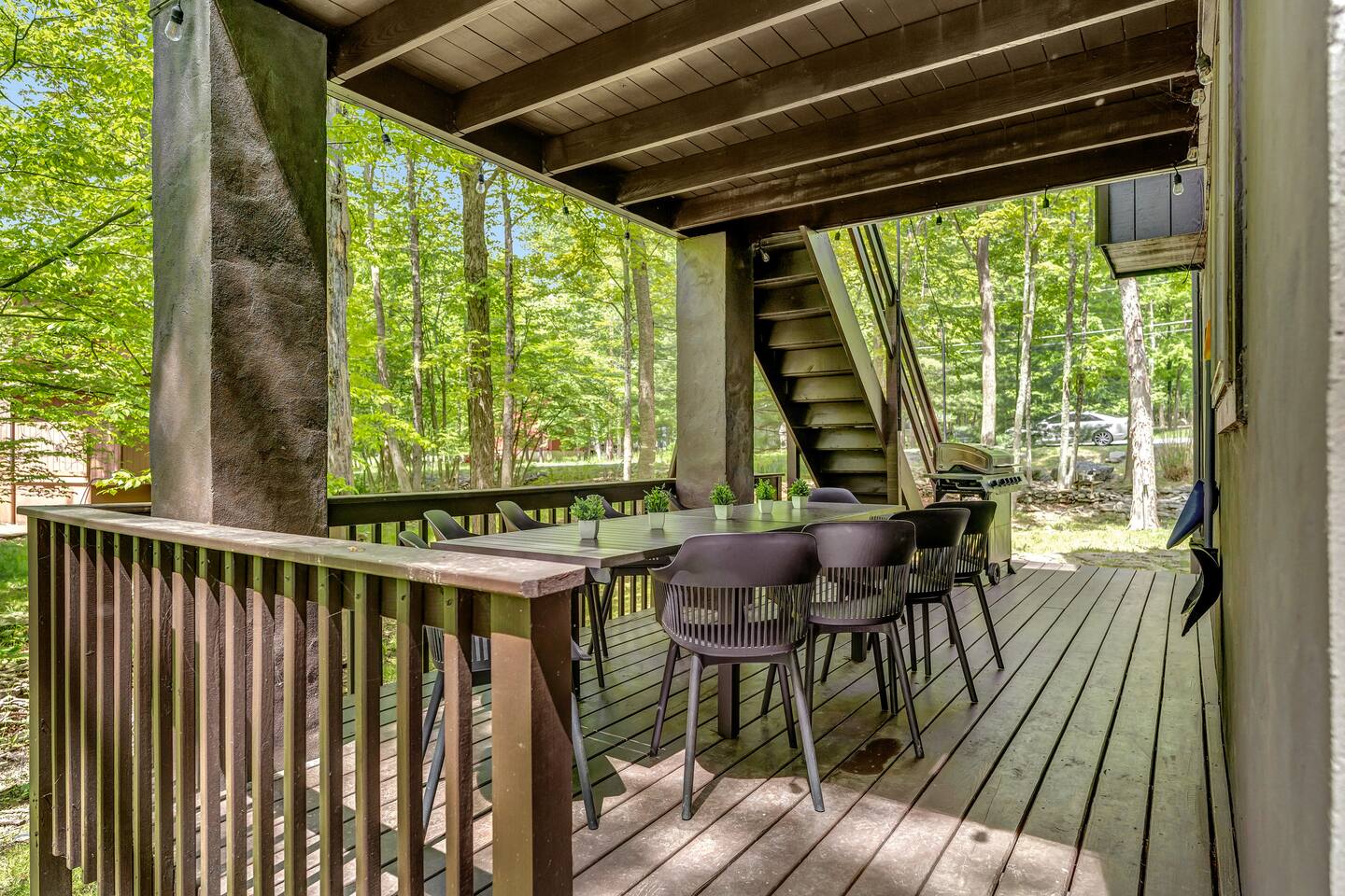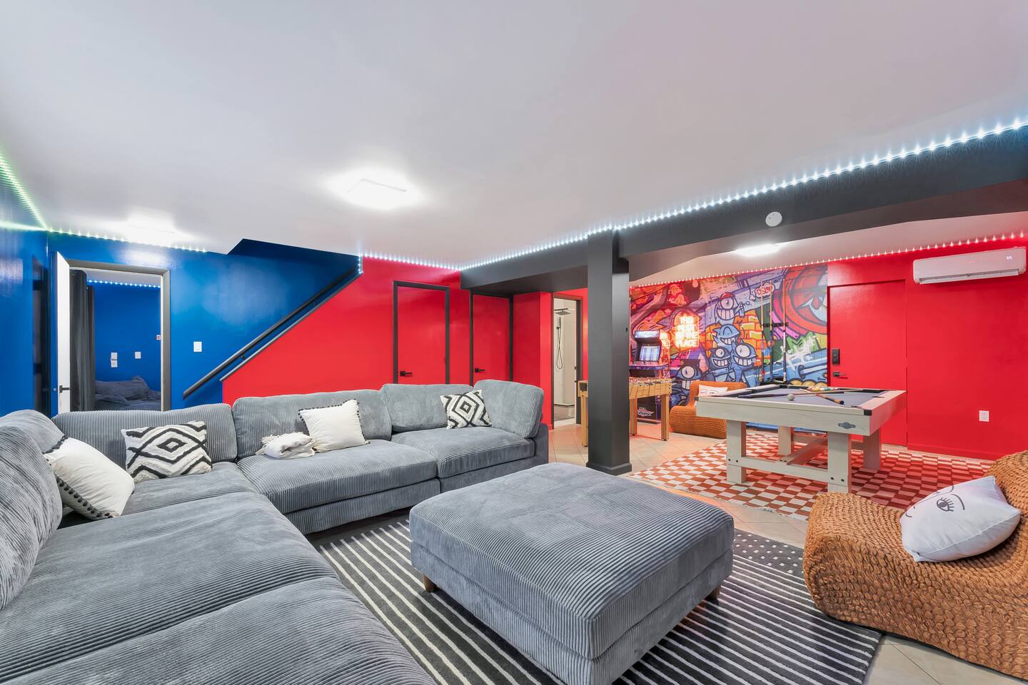 **During the summer months (Memorial Day weekend - Labor Day weekend), you will receive amenity badges that allow you to access the following amenities. If you’re staying with us outside of these dates, these amenities will be closed.** ☀ Lakes (with beach access - swimming allowed!) ☀ Pools ☀ Tennis courts ☀ Basketball courts ☀ Volleyball courts ☀ Dog park ☀ Playground areas KEY FEATURES: ☀ 5 beautiful bedrooms; 2 kings, 1 queen, 1 full, & 5 twin beds ☀ 3 modern, full bathrooms ☀ Modern kitchen with new, stainless steel appliances ☀ Open living room with lots of comfy seating & smart TV ☀ Dining room with seating to comfortably accommodate 12 (+ outdoor dining) ☀ Incredible game room with pool table, arcade games & more! ☀ Private & serene backyard, with a hot tub, fire pit, & more! Here Are A Few Kind Words From Our Past Guests: “This was a great place to stay! The morning light through the windows was so beautiful. Overall, just a relaxing experience. The hosts were super responsive whenever I had a question. I would stay again!” - Emily “Sabrina was very accommodating and communicative. the house is beautiful and very comfortable, close to nature hikes.” - Jennifer “This place was lovely! Exactly as pictured! Very clean and excellent host experience!!! I plan to come back again!” - Regina ☆☆ BEDROOMS ☆☆ Each of the 5 bedrooms in this home have been beautifully designed for comfort - every bedroom in this home has a 55" smart TV. On the bottom floor, one of the game rooms also doubles as a bedroom, with a twin-over-full bunk, smart TV, and an attached full bathroom. On the main floor, the second bedroom has a queen bed. On the third floor, the third & fourth bedrooms have one king bed in each. The fifth bedroom has two twin-over-twin bunk beds (4 twin beds total). ☆☆ BATHROOMS ☆☆ There are three full, modern bathrooms in this home - each with a sink, toilet, and walk-in shower only. The bathroom on the first floor is shared between the two game rooms. On the main floor, the bathroom is accessible right off of the bedroom, and also accessible from the hallway. The third bathroom on the top floor is accessible off the hallway, for all bedrooms on this floor to share. ☆☆ KITCHEN & DINING ☆☆ The modern kitchen is located right off of the main living areas, and is loaded with all new stainless steel appliances & a coffee station (including a Keurig & coffee pods). The dining room is right next to the kitchen, with enough seating to comfortably fit 12 people, plus outdoor dining options! ☆☆ LIVING ROOM ☆☆ In the living room, you’ll be greeted with lots of comfy seating & a big smart TV. This is the perfect spot to host your movie nights & games with your friends and family! ☆☆ GAME ROOMS ☆☆ Keep your family and friends entertained throughout your stay in our fun game rooms! Pool table, foosball, arcade games, basketball Pop-a-Short, comfy seating with a smart TV, and lots of board games & card games. Whether your reason for staying is to explore the town or stay at home and relax, this place will be the perfect spot to unwind! ☆☆ OUTDOOR SPACE ☆☆ This backyard is everything you could ask for, and more! ☀ Hot tub ☀ Fire pit ☀ Kids' play house with slide ☀ Corn hole ☀ Giant Connect 4 ☀ Giant Jenga ☀ BBQ grill ☀ Outdoor dining ☀ Outdoor lounge seating There is so much to do here, that all of your friends & family will be thoroughly entertained throughout your entire stay. No matter the season, this backyard has it all. Book your stay with us today and you will NOT be disappointed. Get ready for a vacation you will never forget! ★☆ Book Now & Let Us Take Care Of You In The Poconos! ☆★