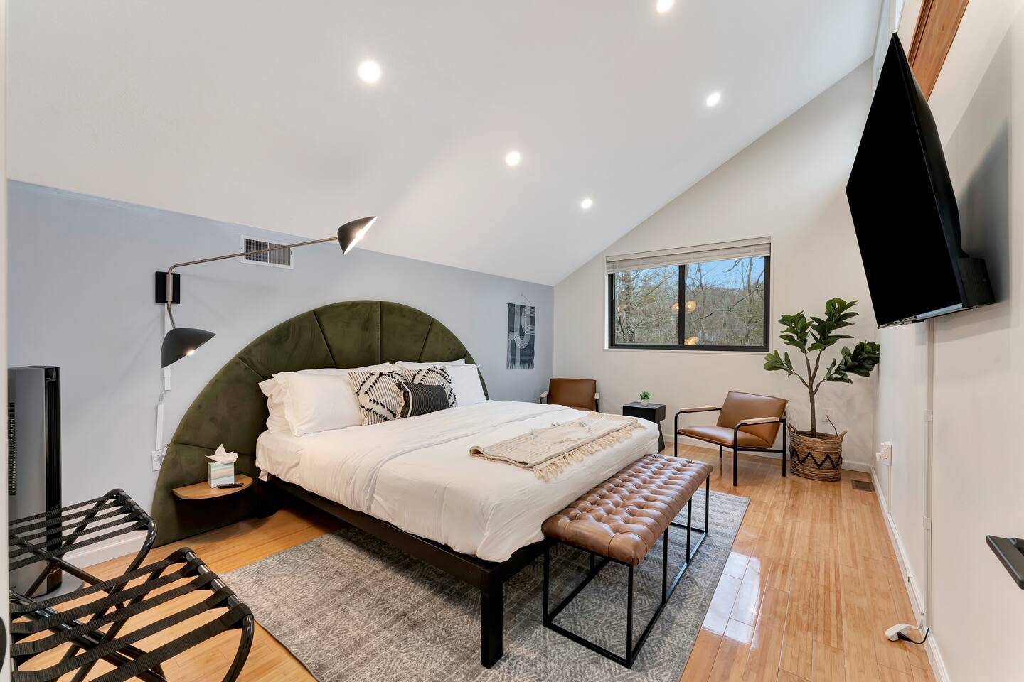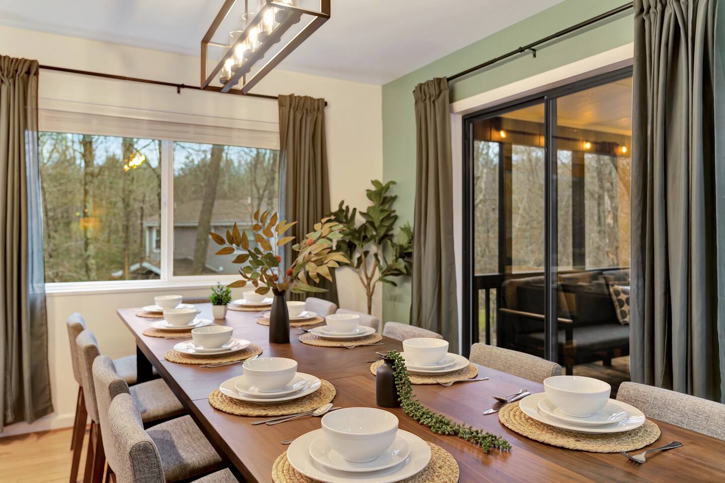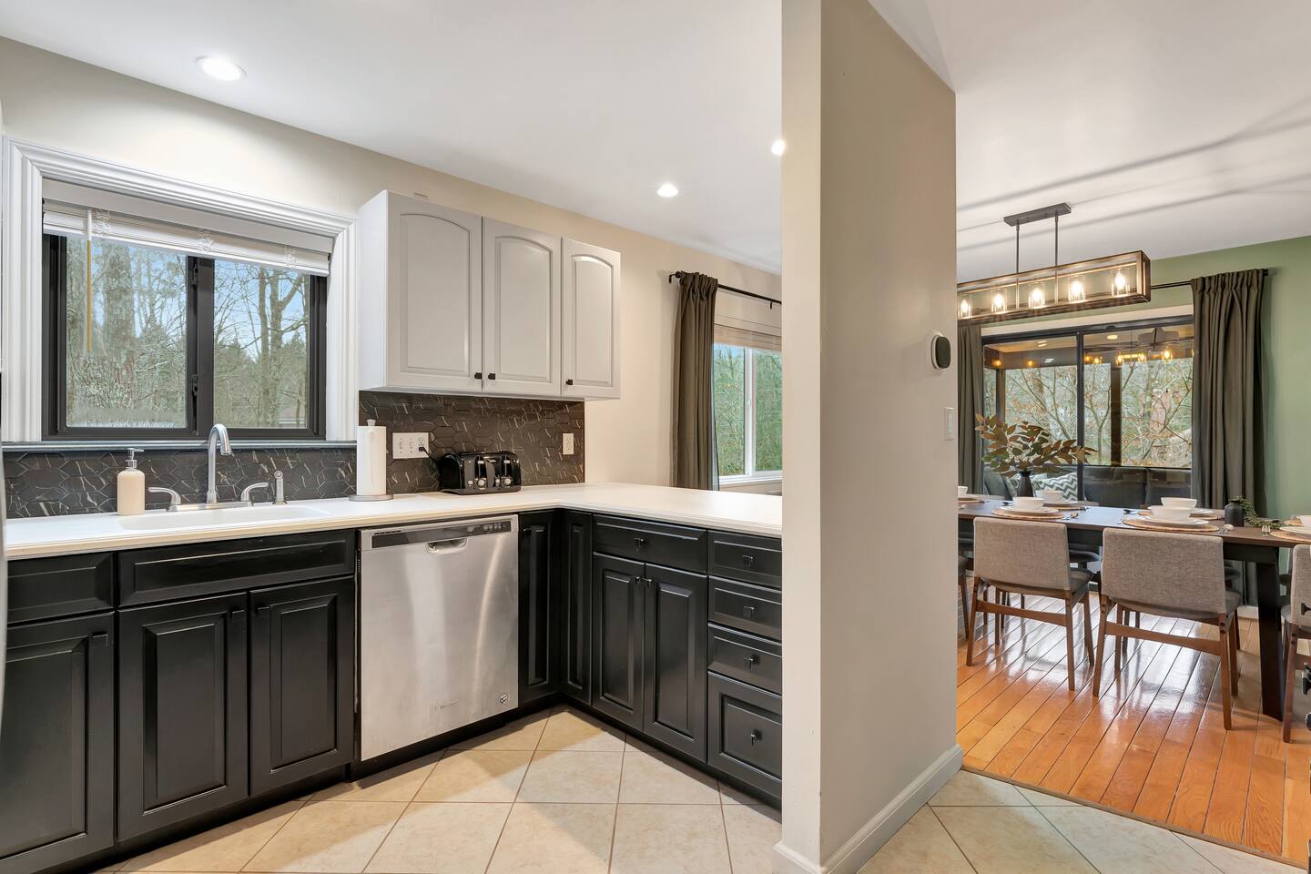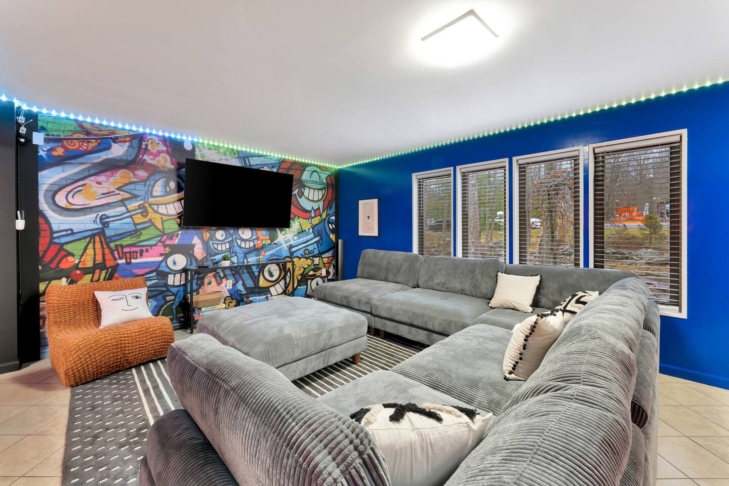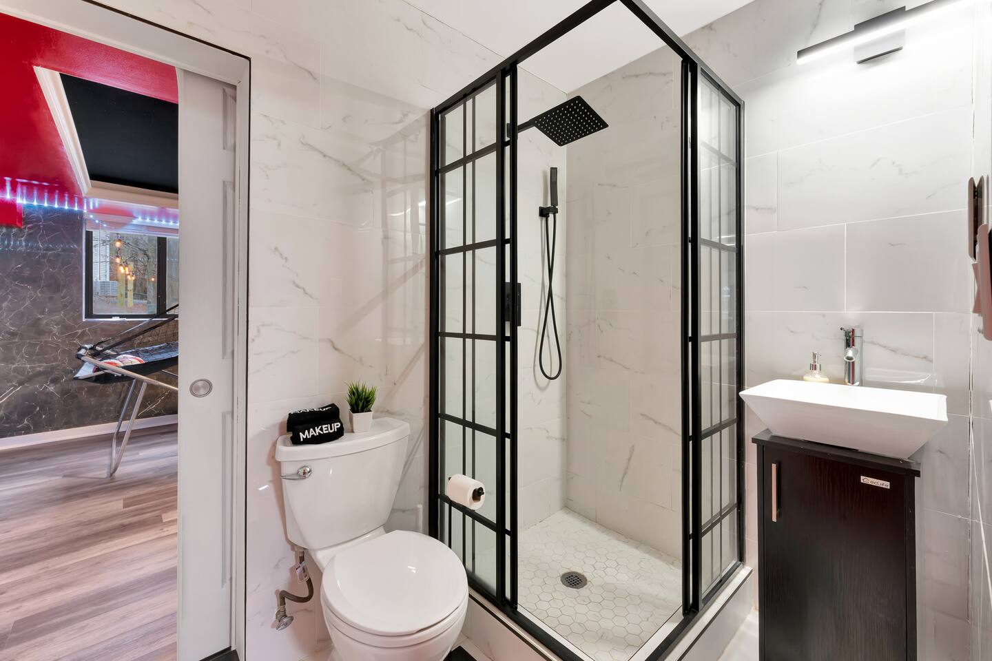 **During the summer months (Memorial Day weekend - Labor Day weekend), you will receive amenity badges that allow you to access the following amenities. If you’re staying with us outside of these dates, these amenities will be closed.** ☀ Lakes (with beach access - swimming allowed!) ☀ Pools ☀ Tennis courts ☀ Basketball courts ☀ Volleyball courts ☀ Dog park ☀ Playground areas KEY FEATURES: ☀ 5 beautiful bedrooms; 2 kings, 1 queen, 1 full, & 5 twin beds ☀ 3 modern, full bathrooms ☀ Modern kitchen with new, stainless steel appliances ☀ Open living room with lots of comfy seating & smart TV ☀ Dining room with seating to comfortably accommodate 12 (+ outdoor dining) ☀ Incredible game room with pool table, arcade games & more! ☀ Private & serene backyard, with a hot tub, fire pit, & more! Here Are A Few Kind Words From Our Past Guests: “This was a great place to stay! The morning light through the windows was so beautiful. Overall, just a relaxing experience. The hosts were super responsive whenever I had a question. I would stay again!” - Emily “Sabrina was very accommodating and communicative. the house is beautiful and very comfortable, close to nature hikes.” - Jennifer “This place was lovely! Exactly as pictured! Very clean and excellent host experience!!! I plan to come back again!” - Regina ☆☆ BEDROOMS ☆☆ Each of the 5 bedrooms in this home have been beautifully designed for comfort - every bedroom in this home has a 55" smart TV. On the bottom floor, one of the game rooms also doubles as a bedroom, with a twin-over-full bunk, smart TV, and an attached full bathroom. On the main floor, the second bedroom has a queen bed. On the third floor, the third & fourth bedrooms have one king bed in each. The fifth bedroom has two twin-over-twin bunk beds (4 twin beds total). ☆☆ BATHROOMS ☆☆ There are three full, modern bathrooms in this home - each with a sink, toilet, and walk-in shower only. The bathroom on the first floor is shared between the two game rooms. On the main floor, the bathroom is accessible right off of the bedroom, and also accessible from the hallway. The third bathroom on the top floor is accessible off the hallway, for all bedrooms on this floor to share. ☆☆ KITCHEN & DINING ☆☆ The modern kitchen is located right off of the main living areas, and is loaded with all new stainless steel appliances & a coffee station (including a Keurig & coffee pods). The dining room is right next to the kitchen, with enough seating to comfortably fit 12 people, plus outdoor dining options! ☆☆ LIVING ROOM ☆☆ In the living room, you’ll be greeted with lots of comfy seating & a big smart TV. This is the perfect spot to host your movie nights & games with your friends and family! ☆☆ GAME ROOMS ☆☆ Keep your family and friends entertained throughout your stay in our fun game rooms! Pool table, foosball, arcade games, basketball Pop-a-Short, comfy seating with a smart TV, and lots of board games & card games. Whether your reason for staying is to explore the town or stay at home and relax, this place will be the perfect spot to unwind! ☆☆ OUTDOOR SPACE ☆☆ This backyard is everything you could ask for, and more! ☀ Hot tub ☀ Fire pit ☀ Kids' play house with slide ☀ Corn hole ☀ Giant Connect 4 ☀ Giant Jenga ☀ BBQ grill ☀ Outdoor dining ☀ Outdoor lounge seating There is so much to do here, that all of your friends & family will be thoroughly entertained throughout your entire stay. No matter the season, this backyard has it all. Book your stay with us today and you will NOT be disappointed. Get ready for a vacation you will never forget! ★☆ Book Now & Let Us Take Care Of You In The Poconos! ☆★