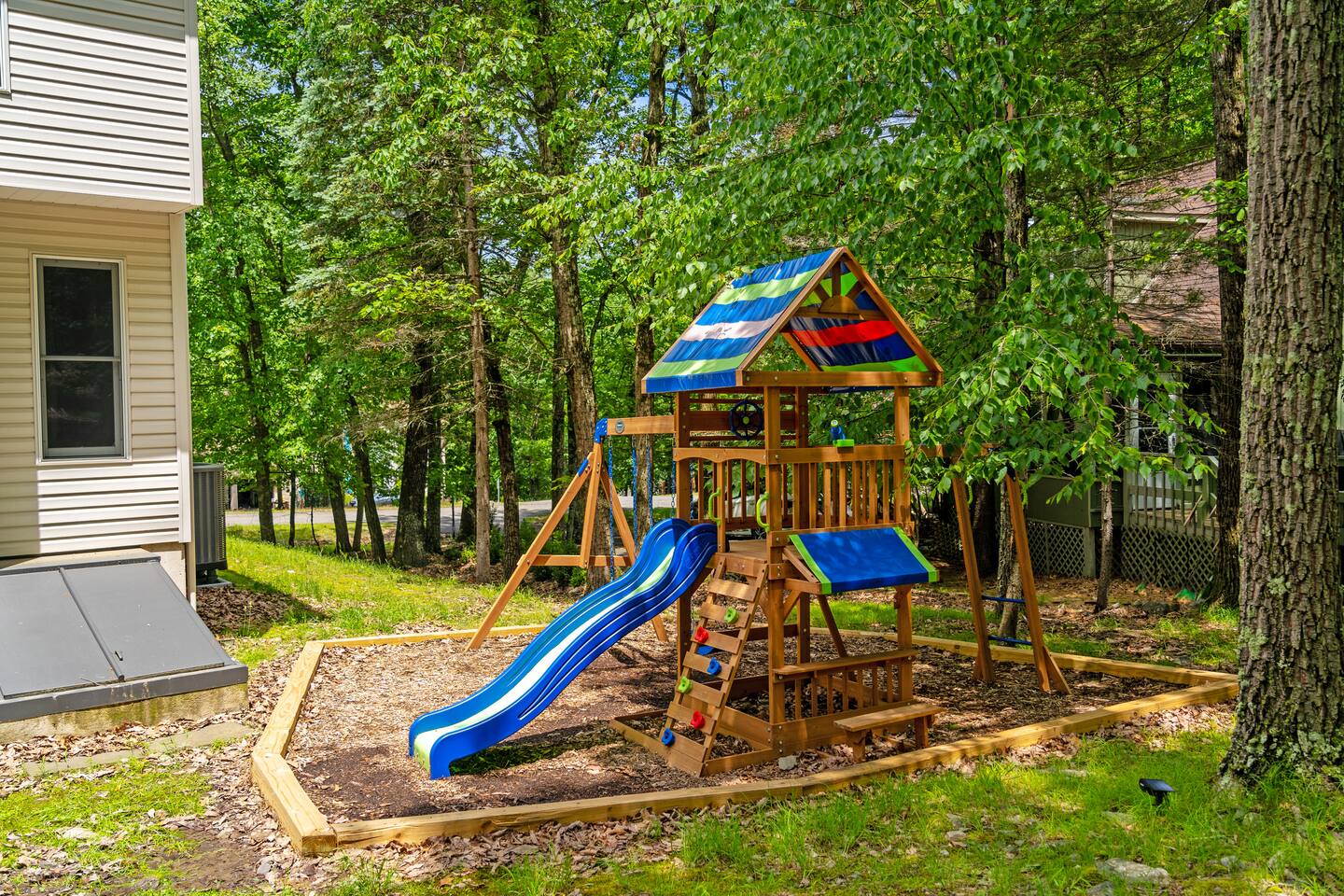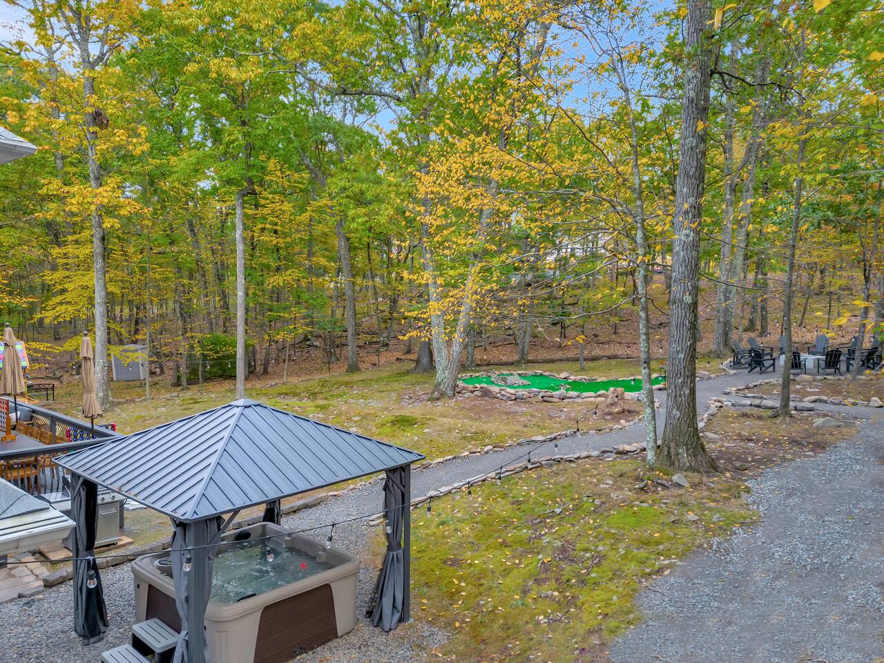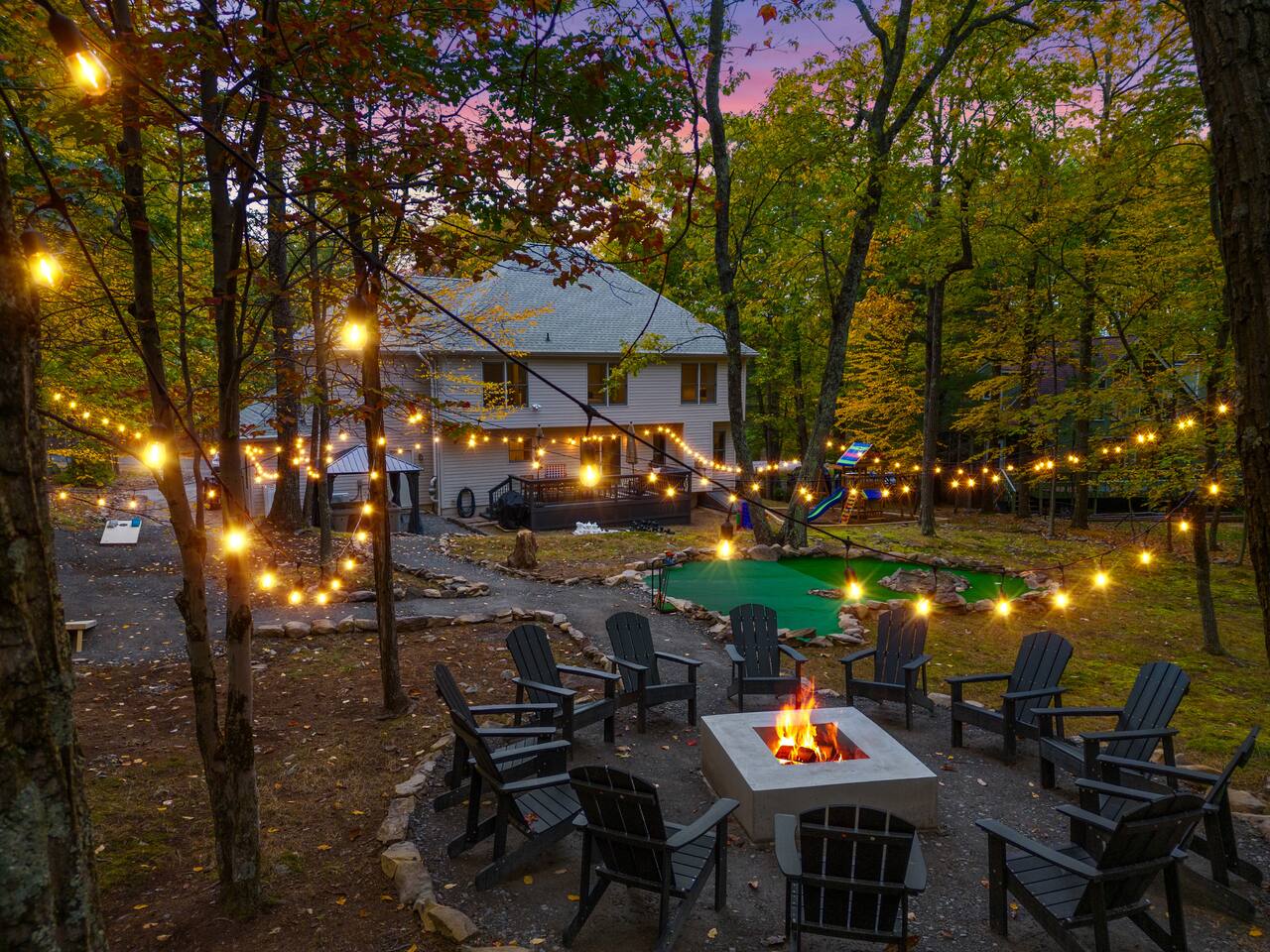 Conveniently located just minutes away from all the natural attractions that the Poconos has to offer (lakes, hiking, & more!), you will have all the amenities & entertainment you could need right here at home. Hot tub, fire pit, jungle gym, mini golf, pool table, arcade games, and much more! 15 min - Delaware Water Gap, Downtown Stroudsburg 20 min - Kalahari Resort, Shawnee Mountain, Big Pocono State Park 30 min - Bushkill Falls Experience The Poconos With Us & Learn More Below!