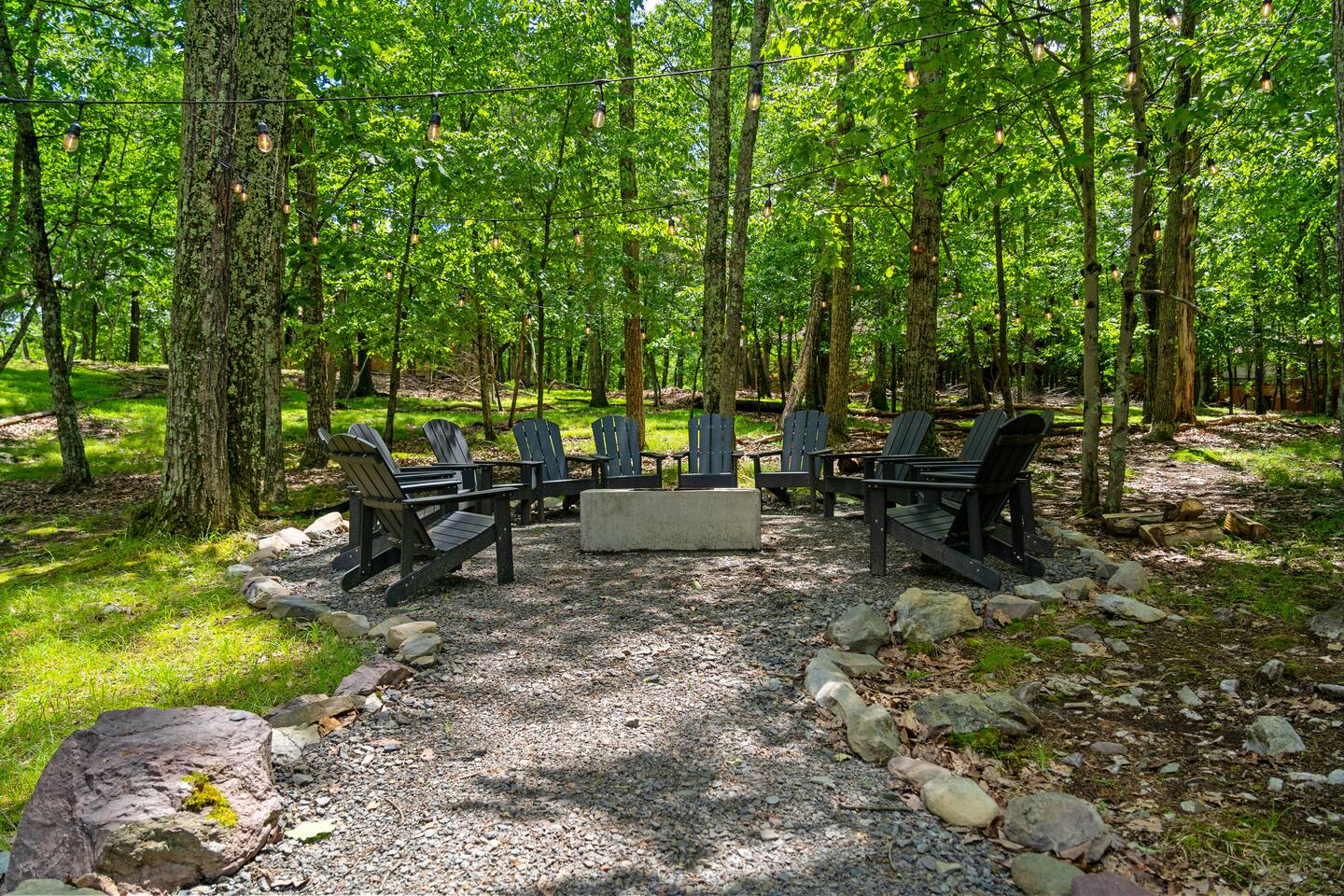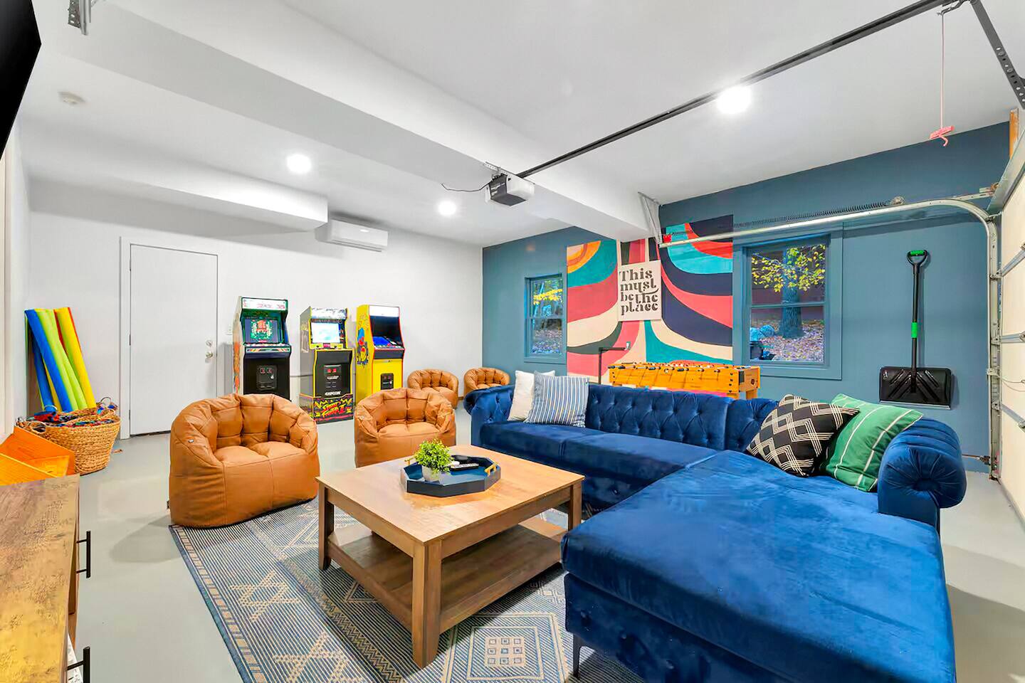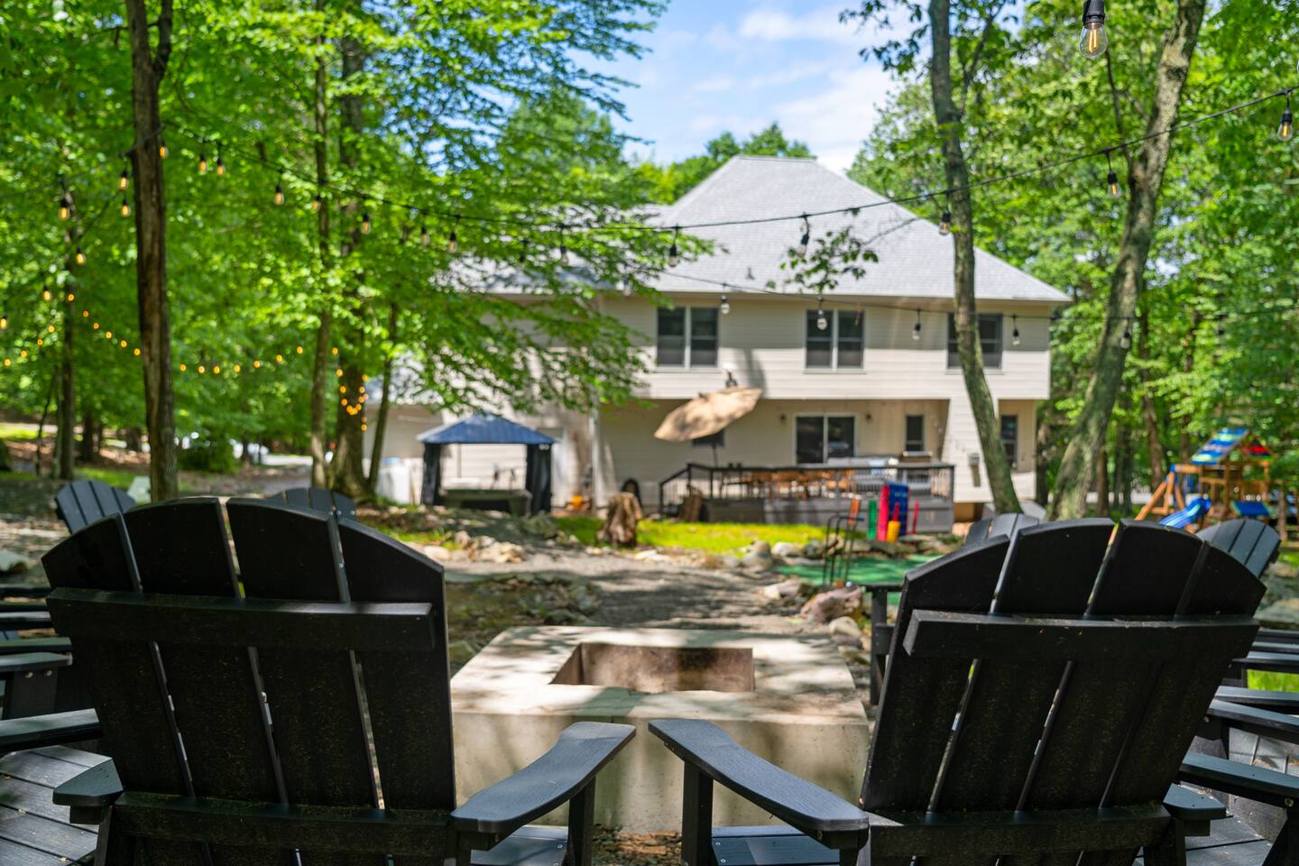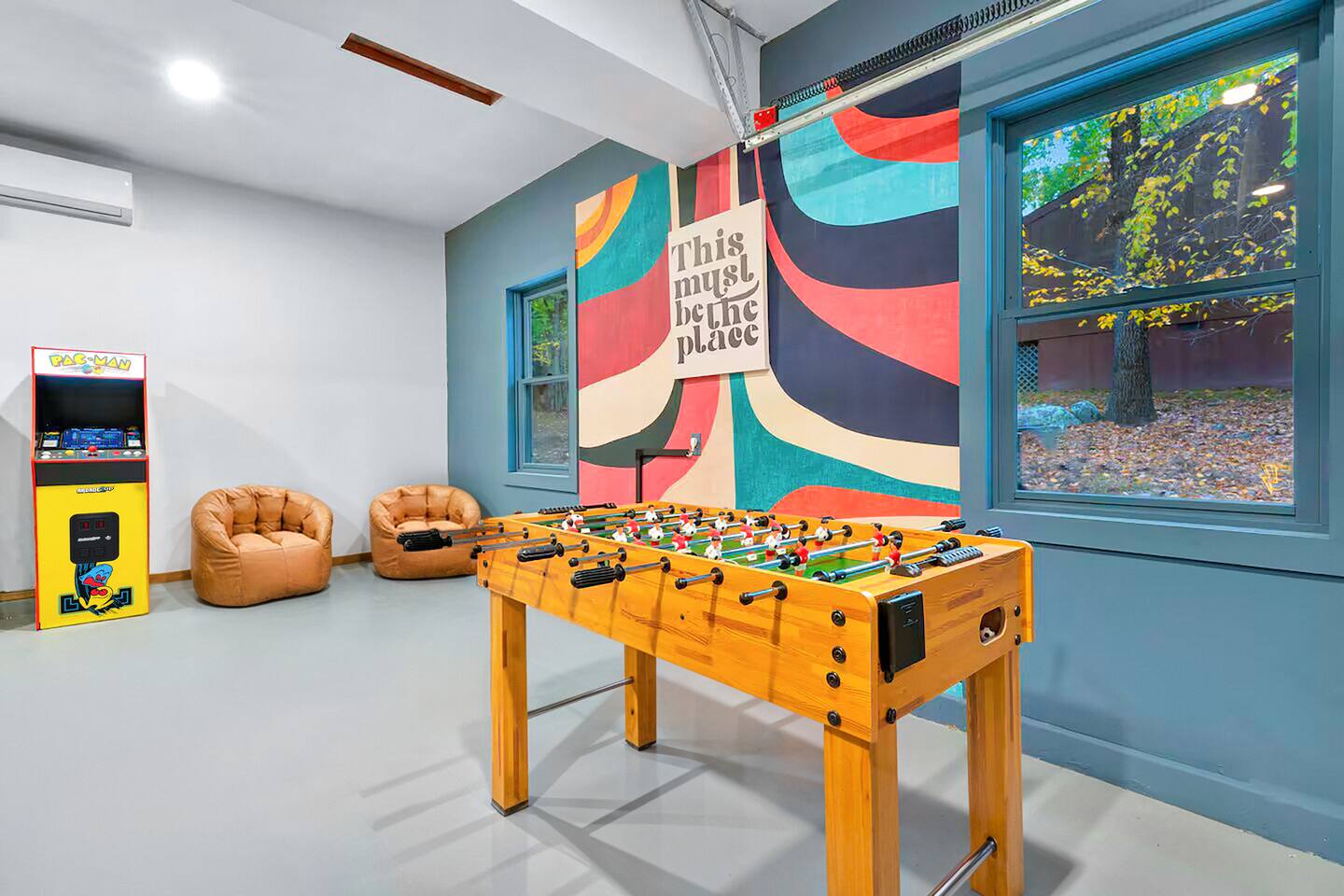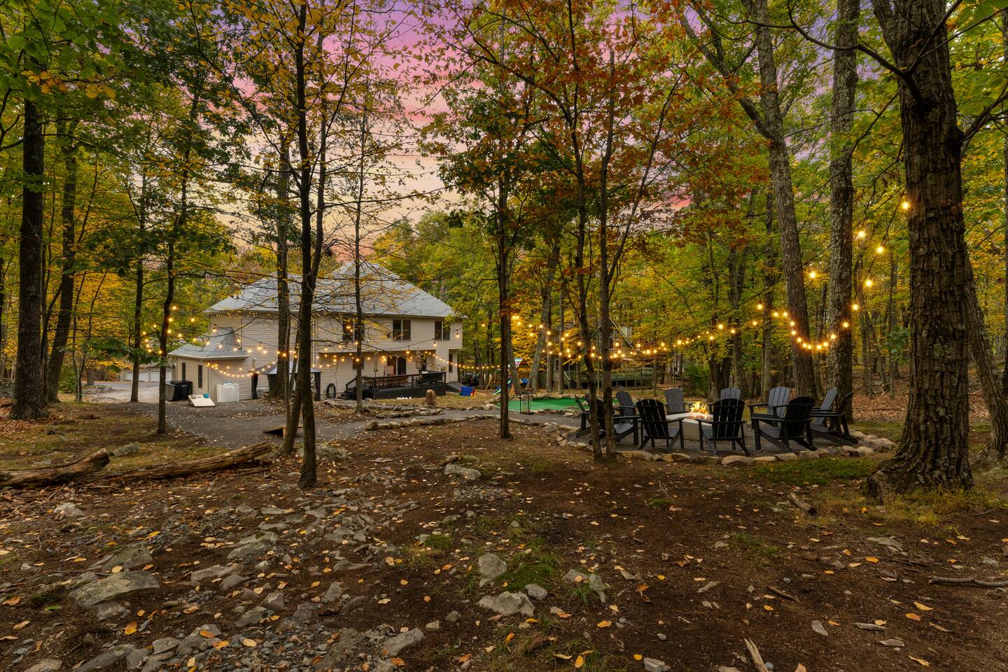 **During the summer months (Memorial Day weekend - Labor Day weekend), you will receive amenity badges that allow you to access the following amenities. If you’re staying with us outside of these dates, these amenities will be closed.** ☀ Lakes (with beach access - swimming allowed!) ☀ Pools ☀ Tennis courts ☀ Basketball courts ☀ Volleyball courts ☀ Dog park ☀ Playground areas KEY FEATURES: ☀ 5 beautiful bedrooms; 2 kings, 2 queens, & 4 twin beds ☀ 2.5 bathrooms ☀ Modern kitchen with new, stainless steel appliances ☀ Open living room with lots of comfy seating & smart TV ☀ Dining room with seating to comfortably accommodate 12 (+ breakfast nook seating & outdoor dining) ☀ Fun game room with foosball, ping pong, arcade games, pool table & more! ☀ Resort-style amenities in the private backyard; hot tub, mini golf, fire pit, jungle gym, & more! Here Are A Few Kind Words From Our Past Guests: “This was a great place to stay! The morning light through the windows was so beautiful. Overall, just a relaxing experience. The hosts were super responsive whenever I had a question. I would stay again!” - Emily “Sabrina was very accommodating and communicative. the house is beautiful and very comfortable, close to nature hikes.” - Jennifer “This place was lovely! Exactly as pictured! Very clean and excellent host experience!!! I plan to come back again!” - Regina ☆☆ BEDROOMS ☆☆ Each of the 5 bedrooms in this home have been masterfully designed for beauty & comfort, all of which are upstairs. Two bedrooms have one king bed & smart TV in each, the third & fourth bedrooms with one queen & smart TV in each, and the fifth bedroom has 4 twin beds (1 bunk beds and 1 twin over twin trundle). ☆☆ BATHROOMS ☆☆ There are two & a half bathrooms in this home. The first is on the lower level, with a sink & toilet only. The other two bathrooms are on the top level. One is a private ensuite bathroom to the master bedroom, with two sinks, toilet, walk-in shower, & soaking tub. The third bathroom has one sink, toilet, and walk-in shower only ☆☆ KITCHEN & DINING ☆☆ The modern kitchen is located right off of the main living areas, and is loaded with all new stainless steel appliances & a coffee station (including a Keurig & coffee pods). The dining room is right next to the kitchen, with enough seating to comfortably fit 12 people, plus a breakfast nook in the kitchen with seating for 6 more & outdoor dining options! ☆☆ LIVING ROOM ☆☆ In the living room, you’ll be greeted with lots of comfy seating & a big smart TV. This is the perfect spot to host your movie nights & games with your friends and family! ☆☆ GAME ROOMS ☆☆ Keep your family and friends entertained throughout your stay in our amenity-filled game rooms! Pool table, arcade games, foosball, ping pong, comfy seating with a smart TV, and lots of board games & card games. Whether your reason for staying is to explore the town or stay at home and relax, this place will be the perfect spot to unwind! ☆☆ MOVIE THEATER ☆☆ The basement has been transformed into a private movie theater, right at home! With a massive TV, lots of comfy theater-style seating, and a dark ambiance to set the mood, this is a great spot to hang out with your group that you won't be able to find anywhere else! ☆☆ OUTDOOR SPACE ☆☆ This backyard is everything you could ask for, and more! ☀ Hot tub ☀ Mini golf ☀ Fire pit ☀ Jungle gym ☀ Giant chess ☀ Giant Connect 4 ☀ Giant Jenga ☀ Outdoor dining ☀ Outdoor lounge seating There is so much to do here, that all of your friends & family will be thoroughly entertained throughout your entire stay. No matter the season, this backyard has it all. Book your stay with us today and you will NOT be disappointed. Get ready for a vacation you will never forget! ★☆ Book Now & Let Us Take Care Of You In The Poconos! ☆★