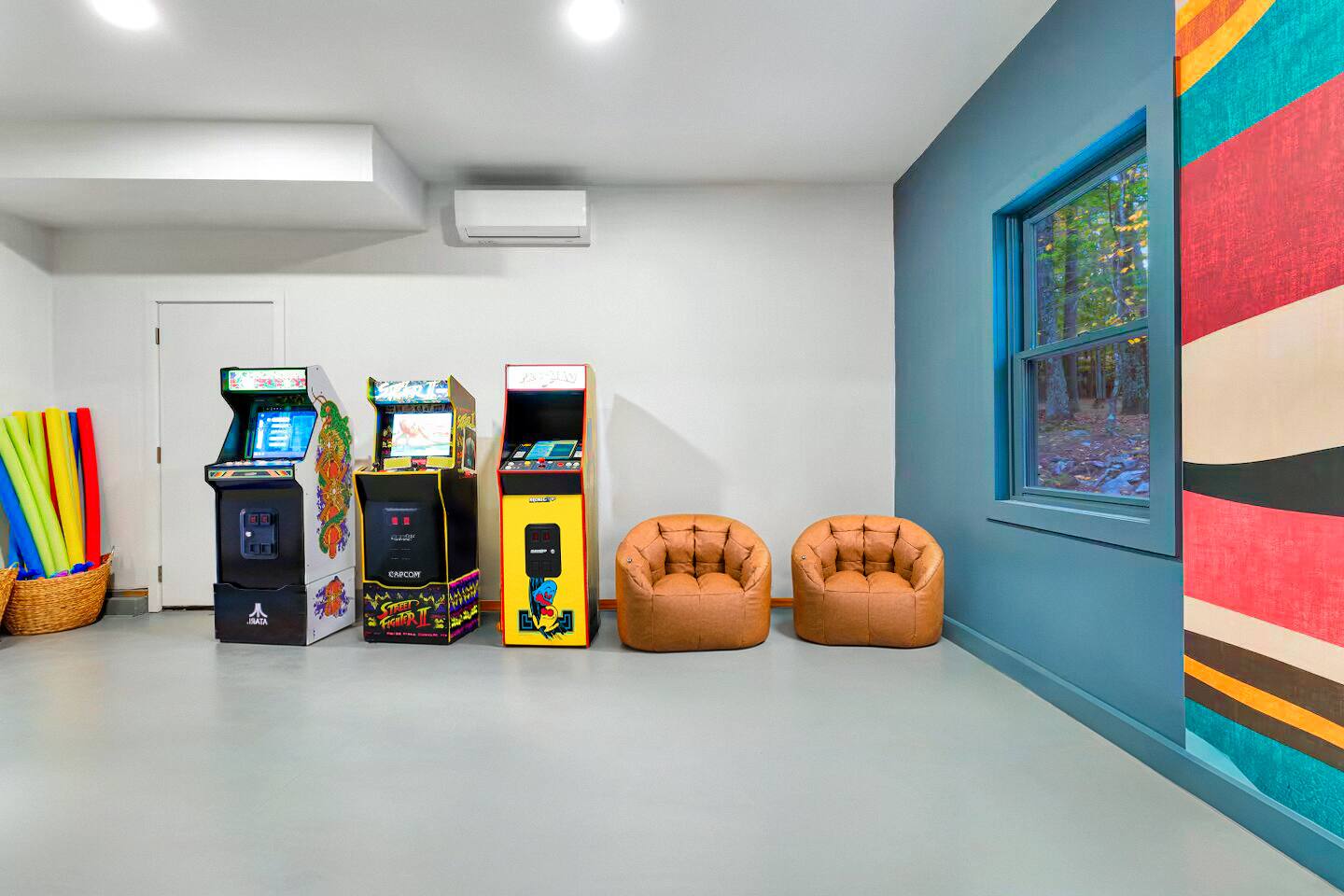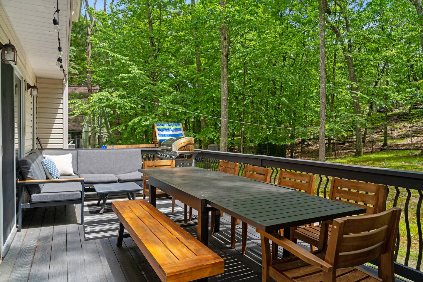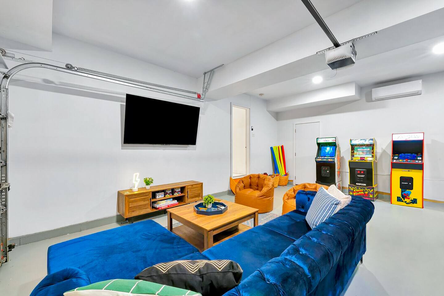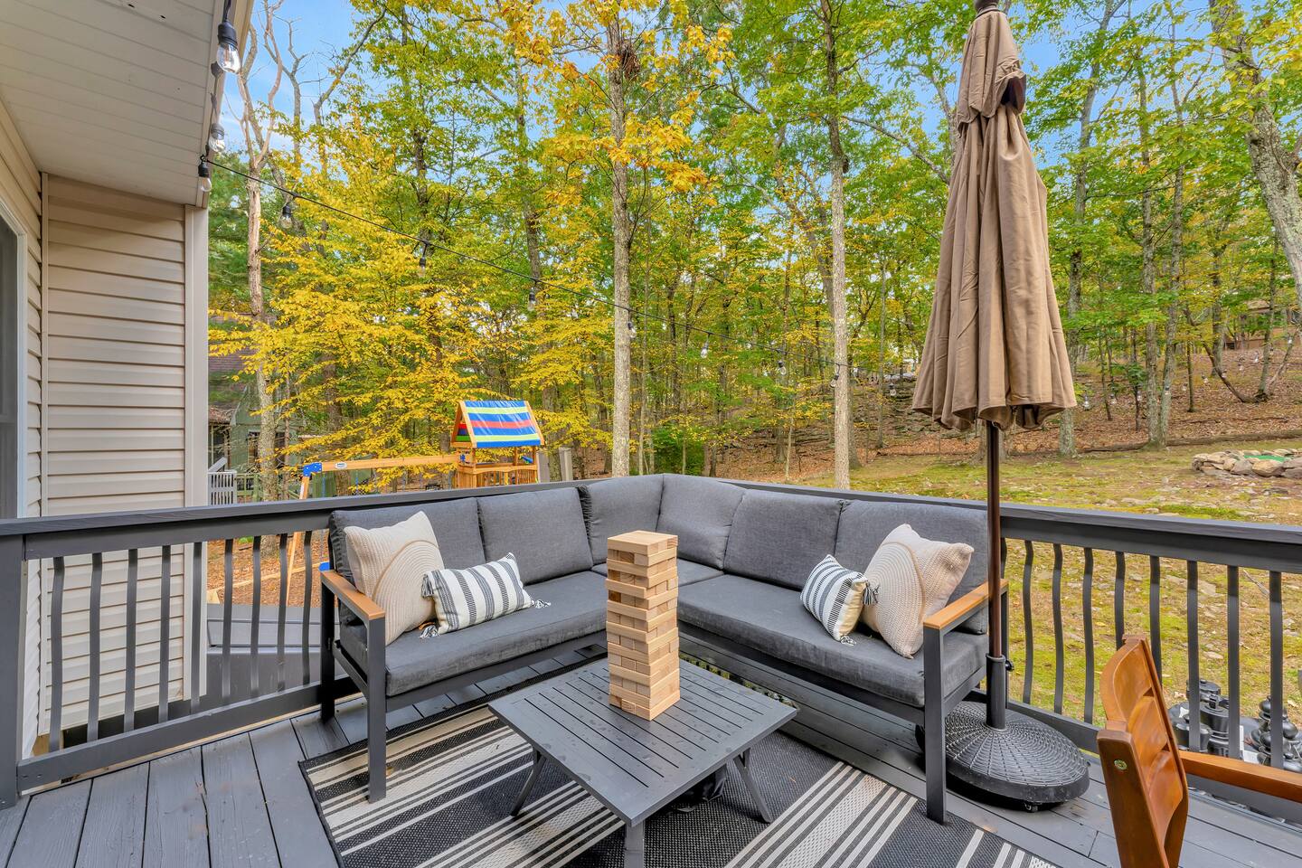 **During the summer months (Memorial Day weekend - Labor Day weekend), you will receive amenity badges that allow you to access the following amenities. If you’re staying with us outside of these dates, these amenities will be closed.** ☀ Lakes (with beach access - swimming allowed!) ☀ Pools ☀ Tennis courts ☀ Basketball courts ☀ Volleyball courts ☀ Dog park ☀ Playground areas KEY FEATURES: ☀ 5 beautiful bedrooms; 2 kings, 2 queens, & 4 twin beds ☀ 2.5 bathrooms ☀ Modern kitchen with new, stainless steel appliances ☀ Open living room with lots of comfy seating & smart TV ☀ Dining room with seating to comfortably accommodate 12 (+ breakfast nook seating & outdoor dining) ☀ Fun game room with foosball, ping pong, arcade games, pool table & more! ☀ Resort-style amenities in the private backyard; hot tub, mini golf, fire pit, jungle gym, & more! Here Are A Few Kind Words From Our Past Guests: “This was a great place to stay! The morning light through the windows was so beautiful. Overall, just a relaxing experience. The hosts were super responsive whenever I had a question. I would stay again!” - Emily “Sabrina was very accommodating and communicative. the house is beautiful and very comfortable, close to nature hikes.” - Jennifer “This place was lovely! Exactly as pictured! Very clean and excellent host experience!!! I plan to come back again!” - Regina ☆☆ BEDROOMS ☆☆ Each of the 5 bedrooms in this home have been masterfully designed for beauty & comfort, all of which are upstairs. Two bedrooms have one king bed & smart TV in each, the third & fourth bedrooms with one queen & smart TV in each, and the fifth bedroom has 4 twin beds (1 bunk beds and 1 twin over twin trundle). ☆☆ BATHROOMS ☆☆ There are two & a half bathrooms in this home. The first is on the lower level, with a sink & toilet only. The other two bathrooms are on the top level. One is a private ensuite bathroom to the master bedroom, with two sinks, toilet, walk-in shower, & soaking tub. The third bathroom has one sink, toilet, and walk-in shower only ☆☆ KITCHEN & DINING ☆☆ The modern kitchen is located right off of the main living areas, and is loaded with all new stainless steel appliances & a coffee station (including a Keurig & coffee pods). The dining room is right next to the kitchen, with enough seating to comfortably fit 12 people, plus a breakfast nook in the kitchen with seating for 6 more & outdoor dining options! ☆☆ LIVING ROOM ☆☆ In the living room, you’ll be greeted with lots of comfy seating & a big smart TV. This is the perfect spot to host your movie nights & games with your friends and family! ☆☆ GAME ROOMS ☆☆ Keep your family and friends entertained throughout your stay in our amenity-filled game rooms! Pool table, arcade games, foosball, ping pong, comfy seating with a smart TV, and lots of board games & card games. Whether your reason for staying is to explore the town or stay at home and relax, this place will be the perfect spot to unwind! ☆☆ MOVIE THEATER ☆☆ The basement has been transformed into a private movie theater, right at home! With a massive TV, lots of comfy theater-style seating, and a dark ambiance to set the mood, this is a great spot to hang out with your group that you won't be able to find anywhere else! ☆☆ OUTDOOR SPACE ☆☆ This backyard is everything you could ask for, and more! ☀ Hot tub ☀ Mini golf ☀ Fire pit ☀ Jungle gym ☀ Giant chess ☀ Giant Connect 4 ☀ Giant Jenga ☀ Outdoor dining ☀ Outdoor lounge seating There is so much to do here, that all of your friends & family will be thoroughly entertained throughout your entire stay. No matter the season, this backyard has it all. Book your stay with us today and you will NOT be disappointed. Get ready for a vacation you will never forget! ★☆ Book Now & Let Us Take Care Of You In The Poconos! ☆★