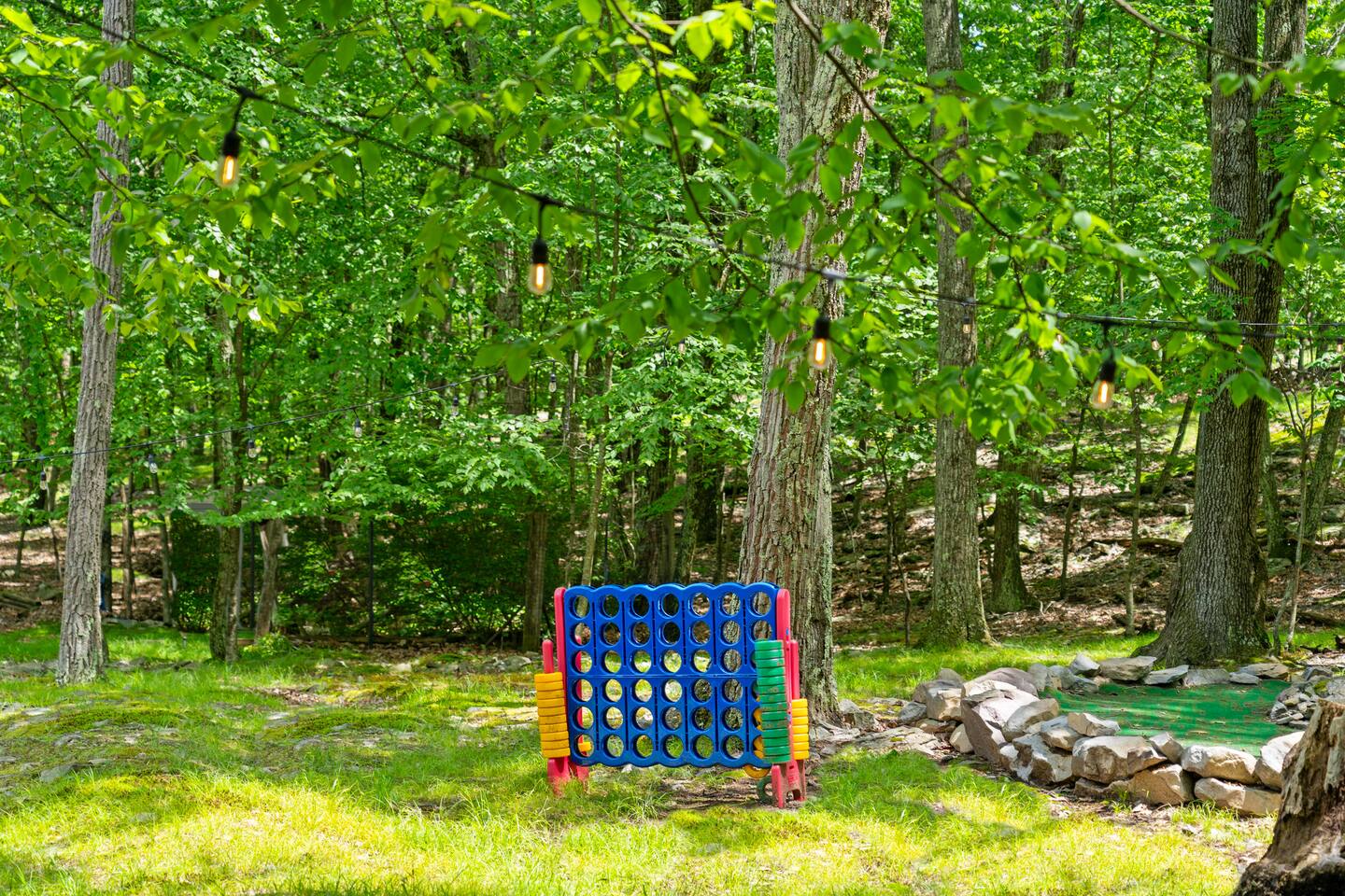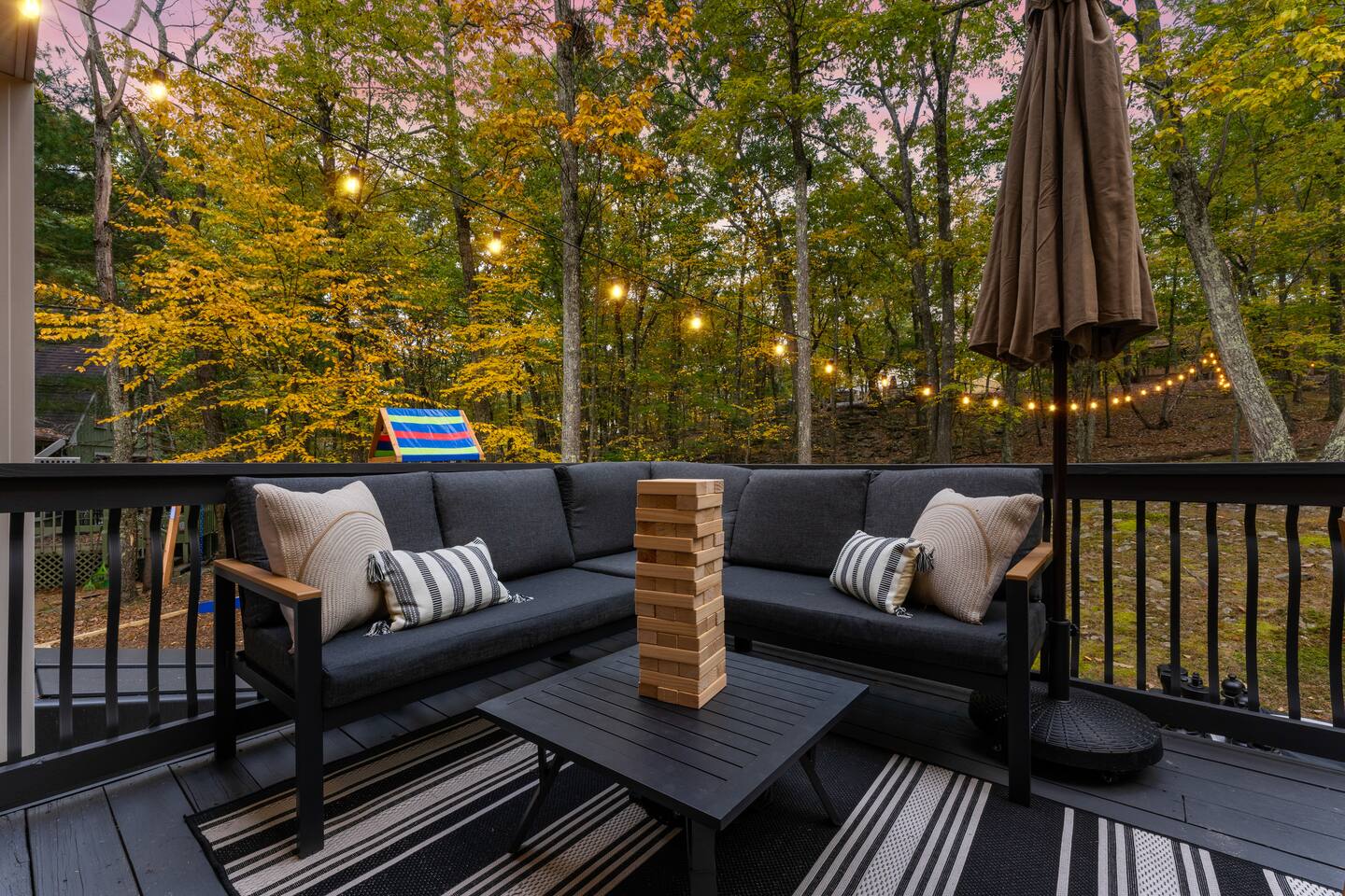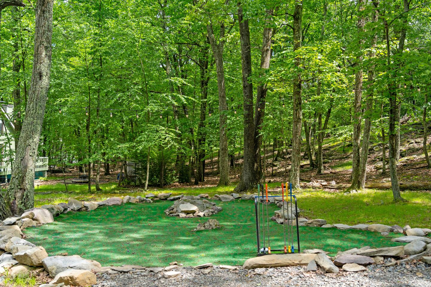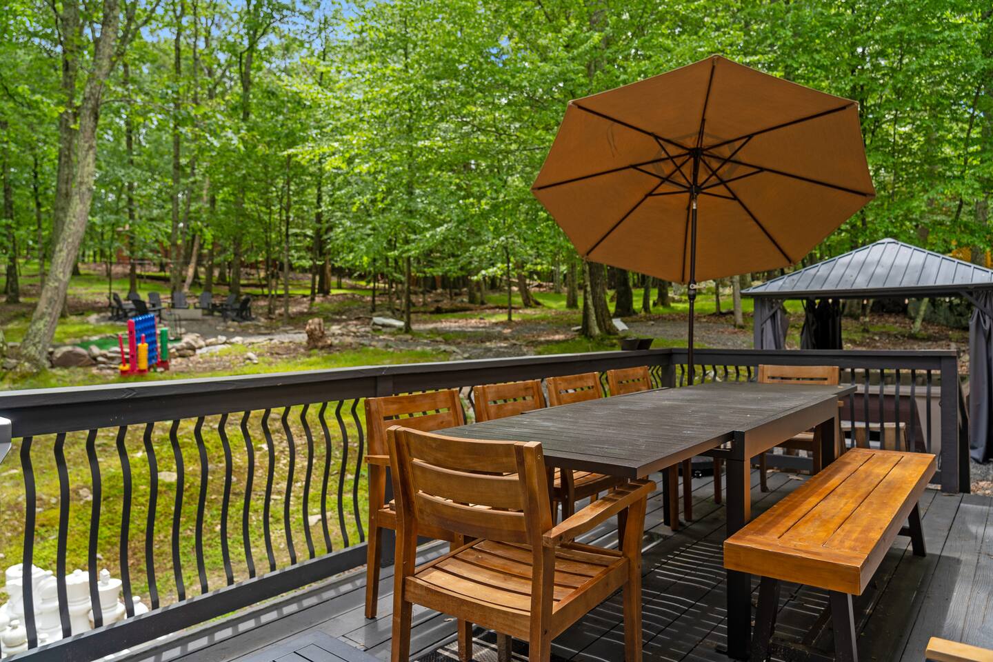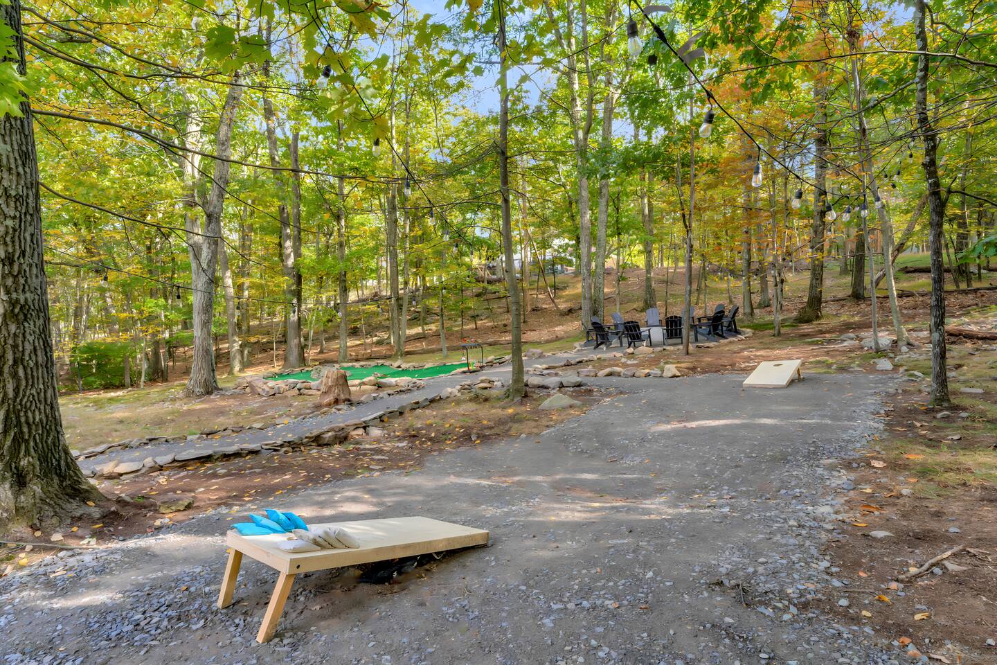 **During the summer months (Memorial Day weekend - Labor Day weekend), you will receive amenity badges that allow you to access the following amenities. If you’re staying with us outside of these dates, these amenities will be closed.** ☀ Lakes (with beach access - swimming allowed!) ☀ Pools ☀ Tennis courts ☀ Basketball courts ☀ Volleyball courts ☀ Dog park ☀ Playground areas KEY FEATURES: ☀ 5 beautiful bedrooms; 2 kings, 2 queens, & 4 twin beds ☀ 2.5 bathrooms ☀ Modern kitchen with new, stainless steel appliances ☀ Open living room with lots of comfy seating & smart TV ☀ Dining room with seating to comfortably accommodate 12 (+ breakfast nook seating & outdoor dining) ☀ Fun game room with foosball, ping pong, arcade games, pool table & more! ☀ Resort-style amenities in the private backyard; hot tub, mini golf, fire pit, jungle gym, & more! Here Are A Few Kind Words From Our Past Guests: “This was a great place to stay! The morning light through the windows was so beautiful. Overall, just a relaxing experience. The hosts were super responsive whenever I had a question. I would stay again!” - Emily “Sabrina was very accommodating and communicative. the house is beautiful and very comfortable, close to nature hikes.” - Jennifer “This place was lovely! Exactly as pictured! Very clean and excellent host experience!!! I plan to come back again!” - Regina ☆☆ BEDROOMS ☆☆ Each of the 5 bedrooms in this home have been masterfully designed for beauty & comfort, all of which are upstairs. Two bedrooms have one king bed & smart TV in each, the third & fourth bedrooms with one queen & smart TV in each, and the fifth bedroom has 4 twin beds (1 bunk beds and 1 twin over twin trundle). ☆☆ BATHROOMS ☆☆ There are two & a half bathrooms in this home. The first is on the lower level, with a sink & toilet only. The other two bathrooms are on the top level. One is a private ensuite bathroom to the master bedroom, with two sinks, toilet, walk-in shower, & soaking tub. The third bathroom has one sink, toilet, and walk-in shower only ☆☆ KITCHEN & DINING ☆☆ The modern kitchen is located right off of the main living areas, and is loaded with all new stainless steel appliances & a coffee station (including a Keurig & coffee pods). The dining room is right next to the kitchen, with enough seating to comfortably fit 12 people, plus a breakfast nook in the kitchen with seating for 6 more & outdoor dining options! ☆☆ LIVING ROOM ☆☆ In the living room, you’ll be greeted with lots of comfy seating & a big smart TV. This is the perfect spot to host your movie nights & games with your friends and family! ☆☆ GAME ROOMS ☆☆ Keep your family and friends entertained throughout your stay in our amenity-filled game rooms! Pool table, arcade games, foosball, ping pong, comfy seating with a smart TV, and lots of board games & card games. Whether your reason for staying is to explore the town or stay at home and relax, this place will be the perfect spot to unwind! ☆☆ MOVIE THEATER ☆☆ The basement has been transformed into a private movie theater, right at home! With a massive TV, lots of comfy theater-style seating, and a dark ambiance to set the mood, this is a great spot to hang out with your group that you won't be able to find anywhere else! ☆☆ OUTDOOR SPACE ☆☆ This backyard is everything you could ask for, and more! ☀ Hot tub ☀ Mini golf ☀ Fire pit ☀ Jungle gym ☀ Giant chess ☀ Giant Connect 4 ☀ Giant Jenga ☀ Outdoor dining ☀ Outdoor lounge seating There is so much to do here, that all of your friends & family will be thoroughly entertained throughout your entire stay. No matter the season, this backyard has it all. Book your stay with us today and you will NOT be disappointed. Get ready for a vacation you will never forget! ★☆ Book Now & Let Us Take Care Of You In The Poconos! ☆★